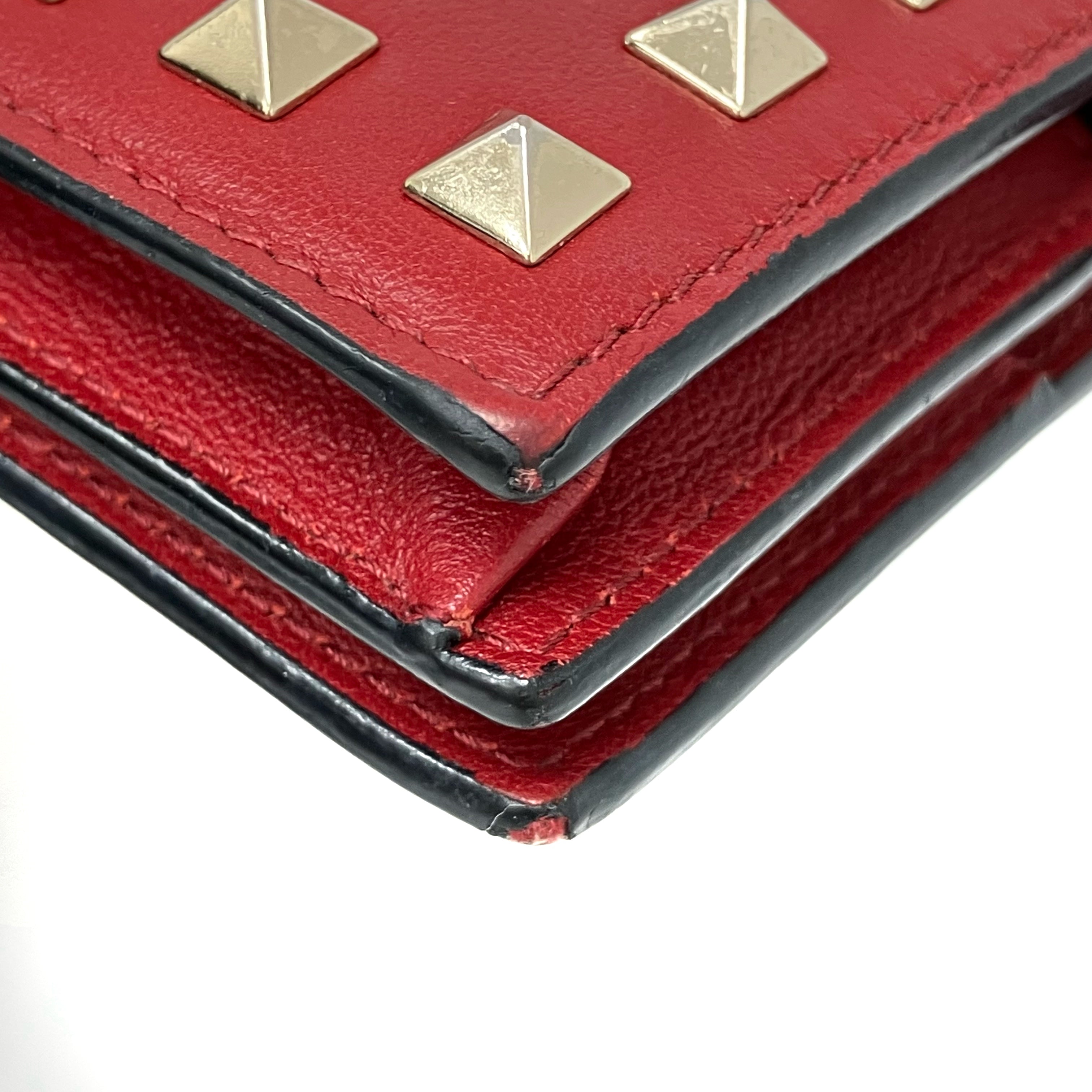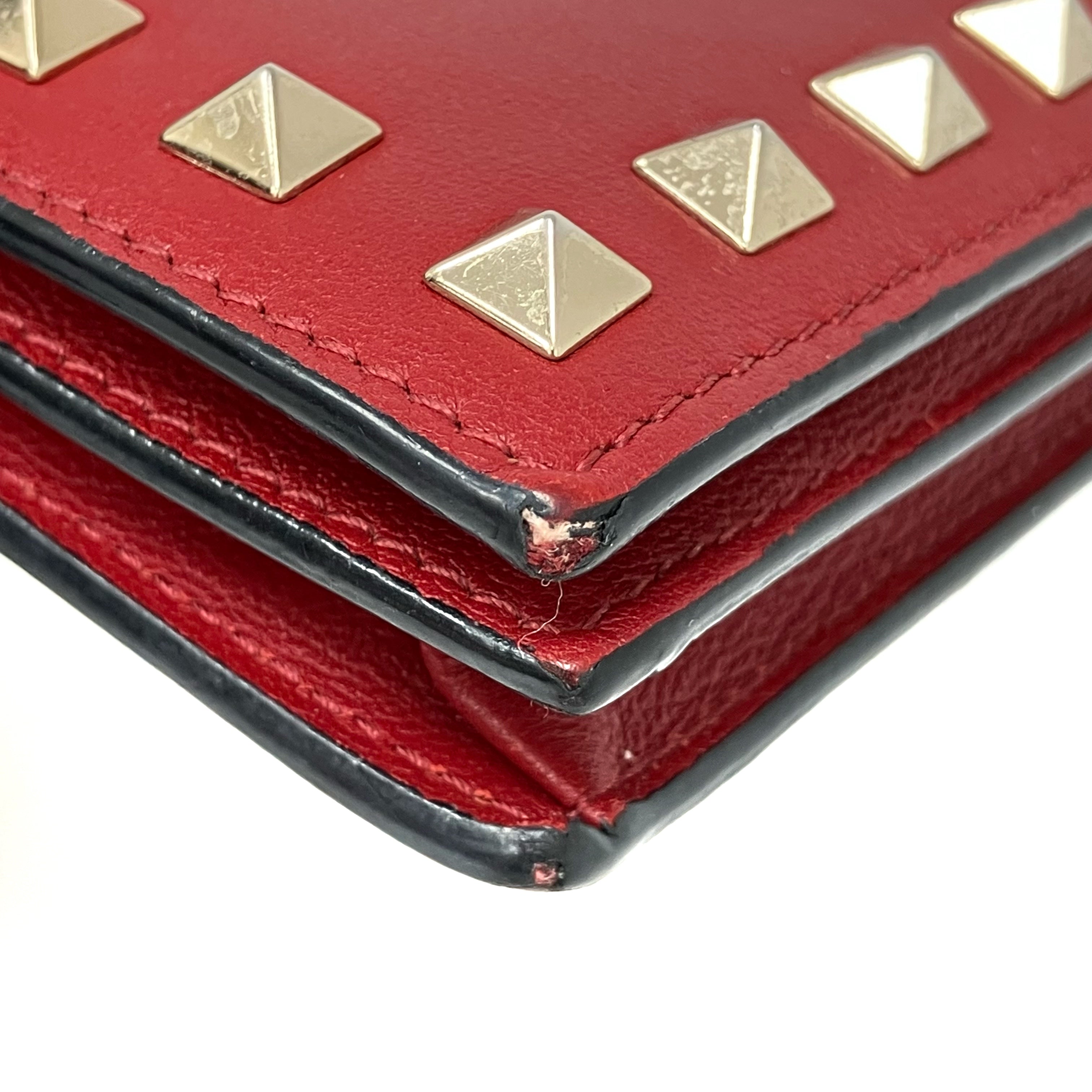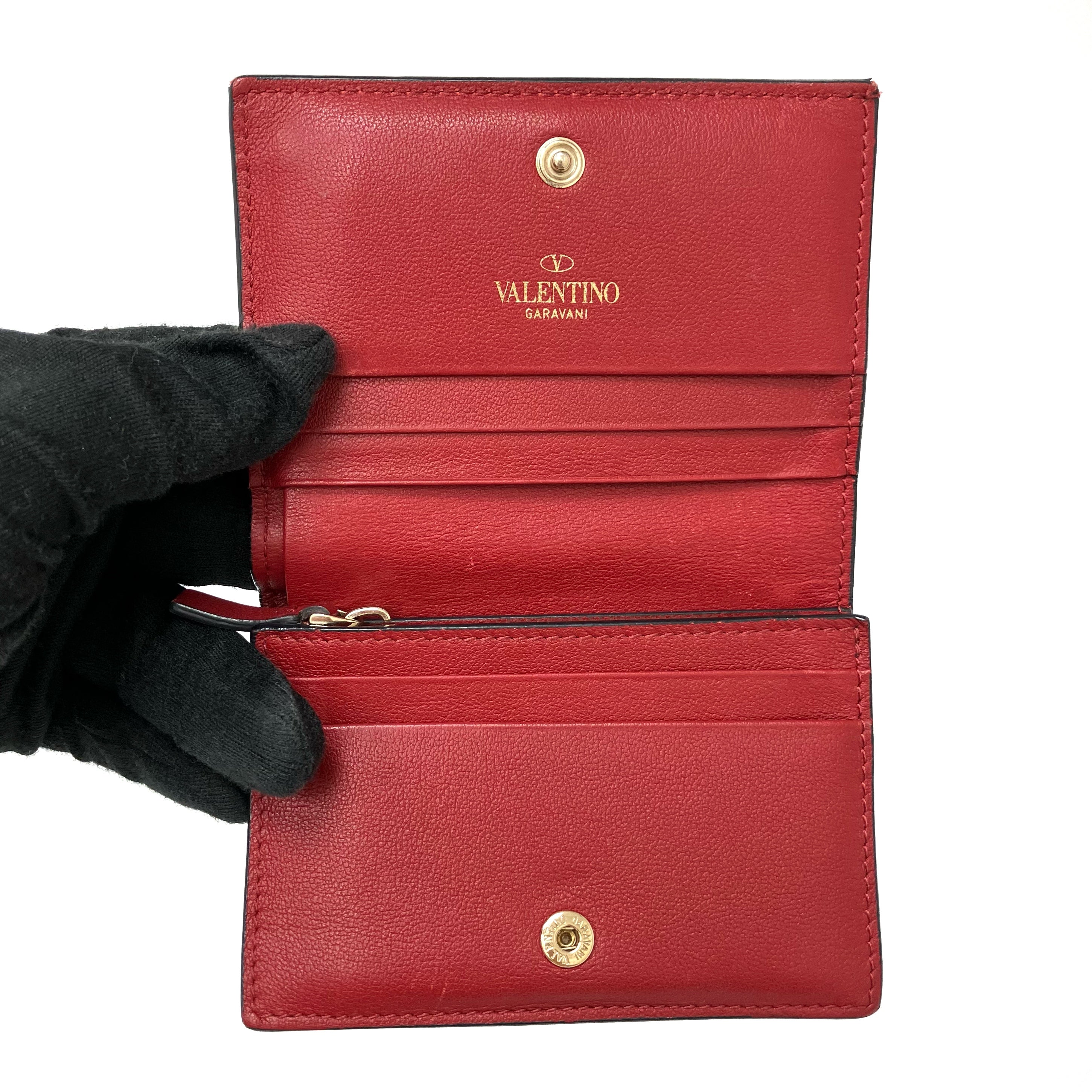 ☆ Valentino 華倫天奴 Red Lambskin Short Wallet 紅色小羊皮短銀包 - 267000555