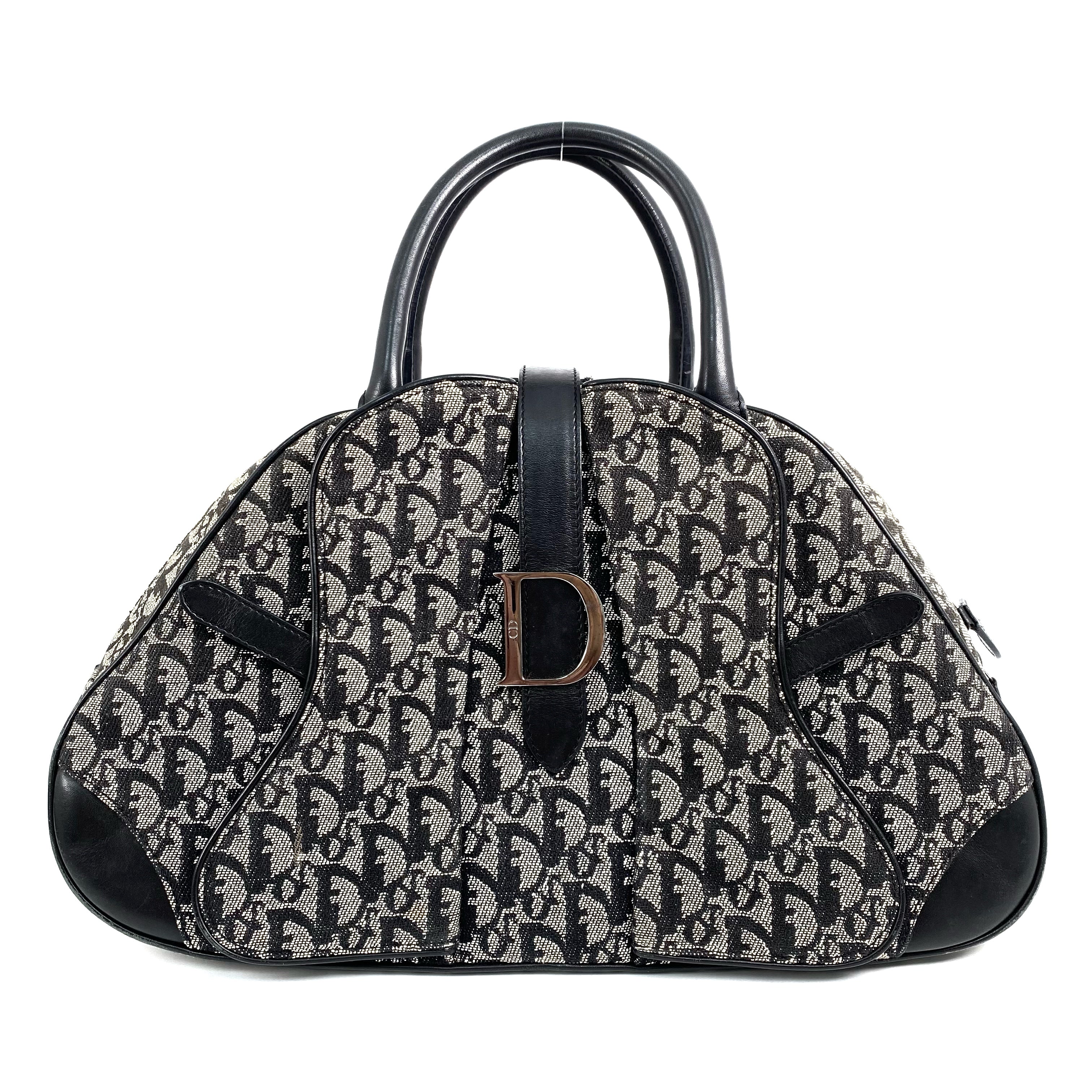 ☆ Christian Dior 迪奧 Navy Beige Canvas Trotter Hand Bag 深藍色米色手袋 - 267006825