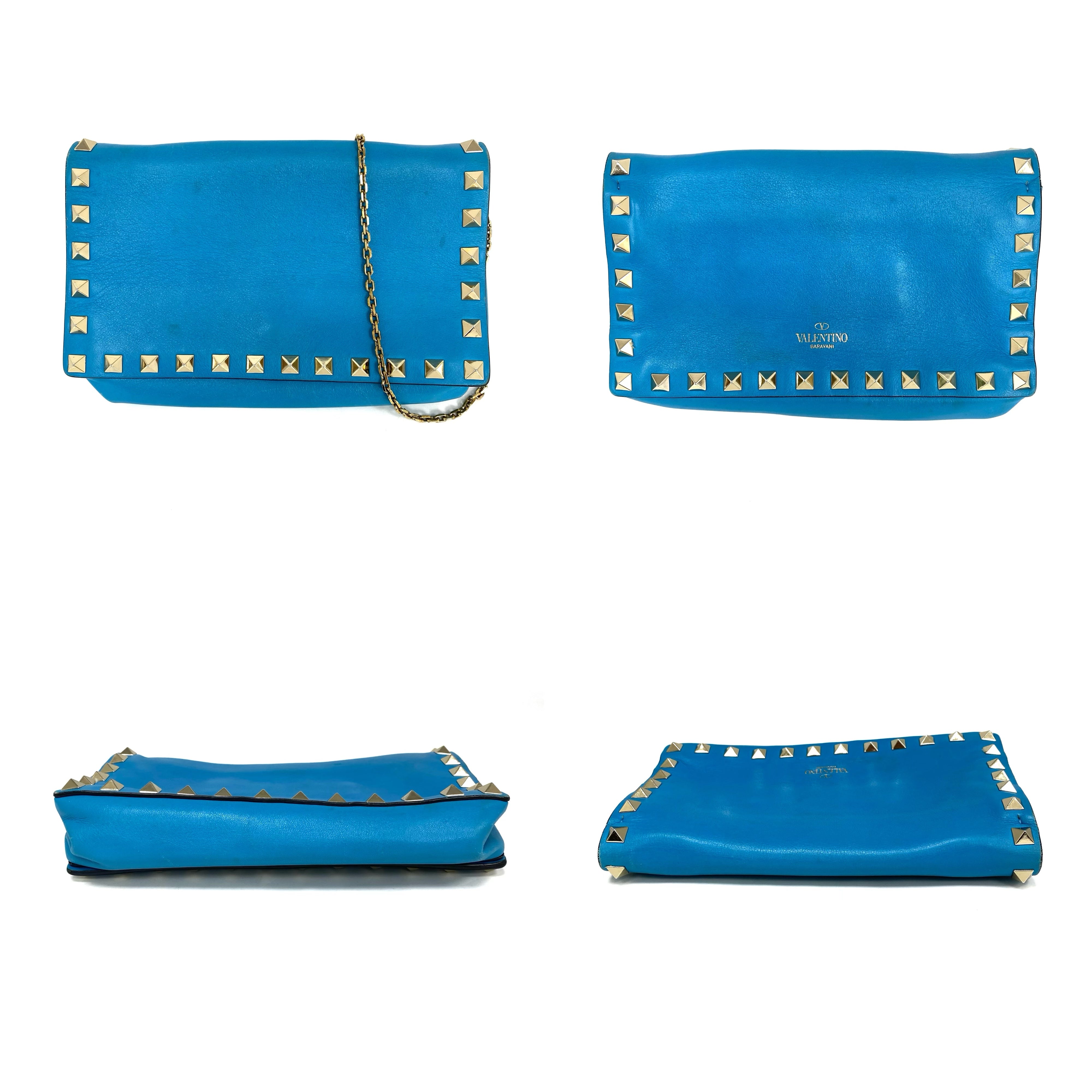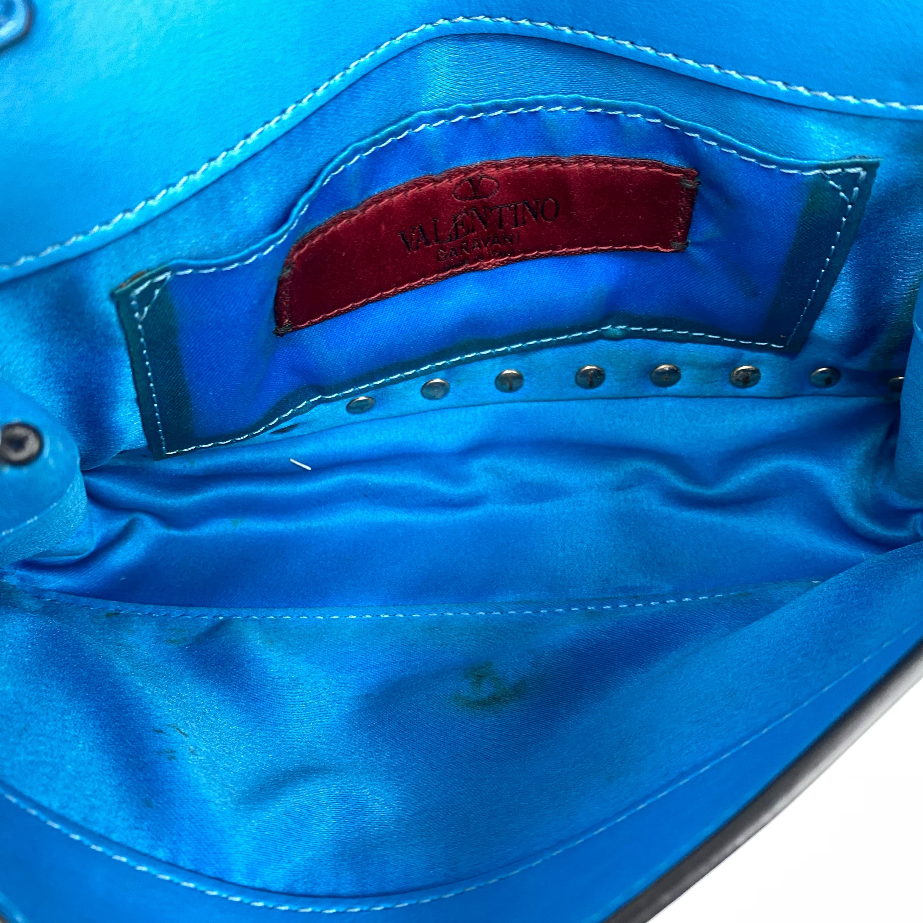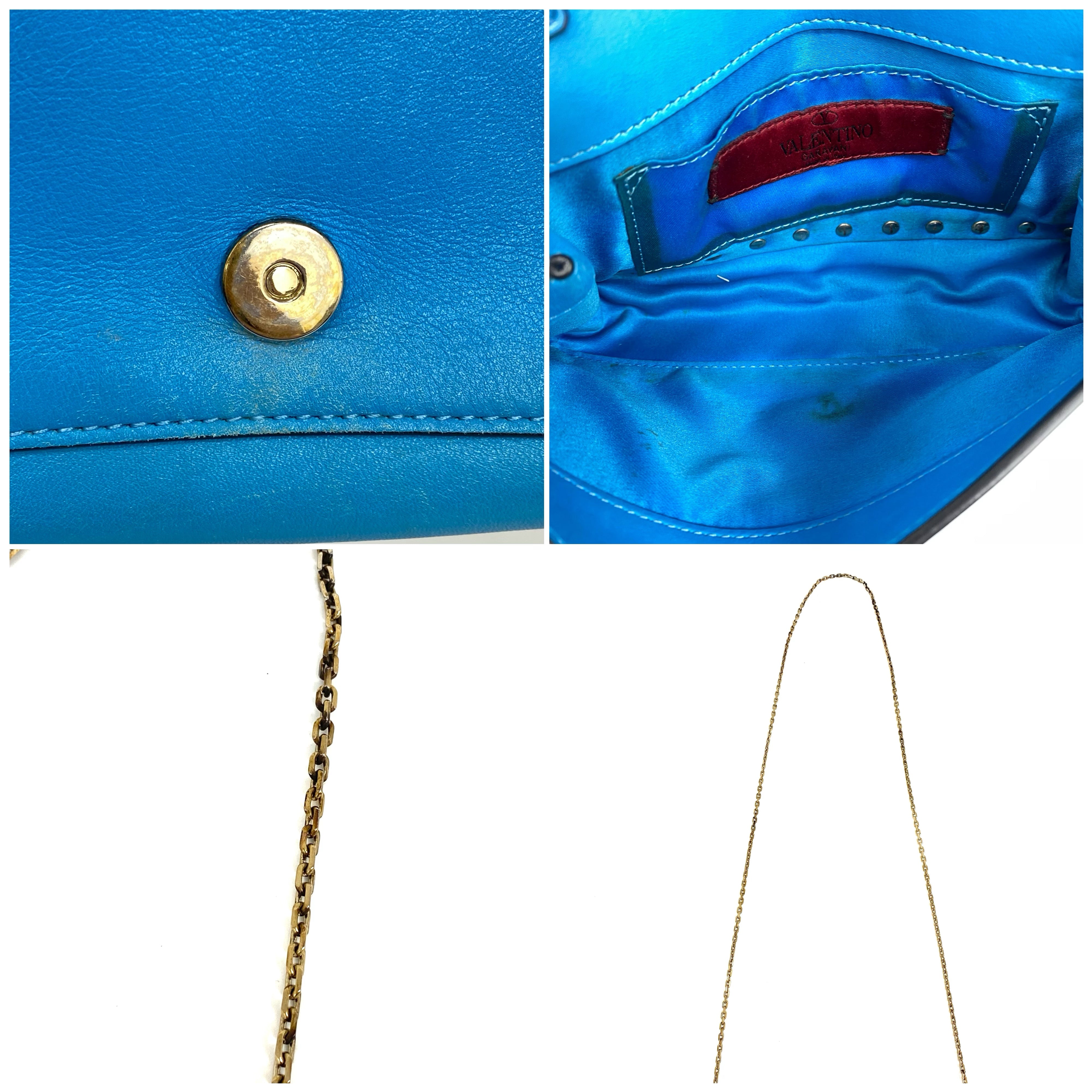 ☆ Valentino 華倫天奴 Blue Calfskin Chain Shoulder Bag 藍色小牛皮鏈條肩背袋 - 257025286