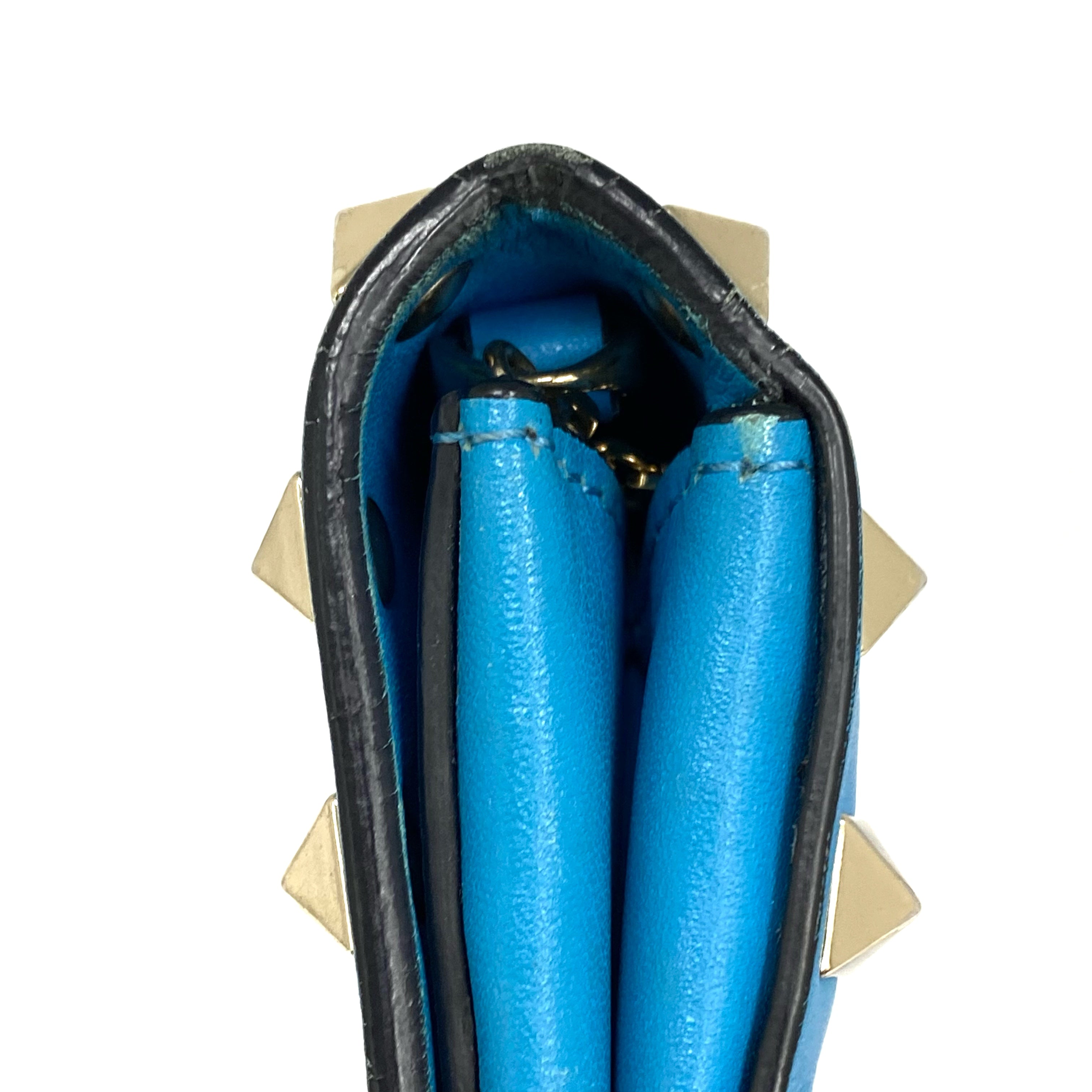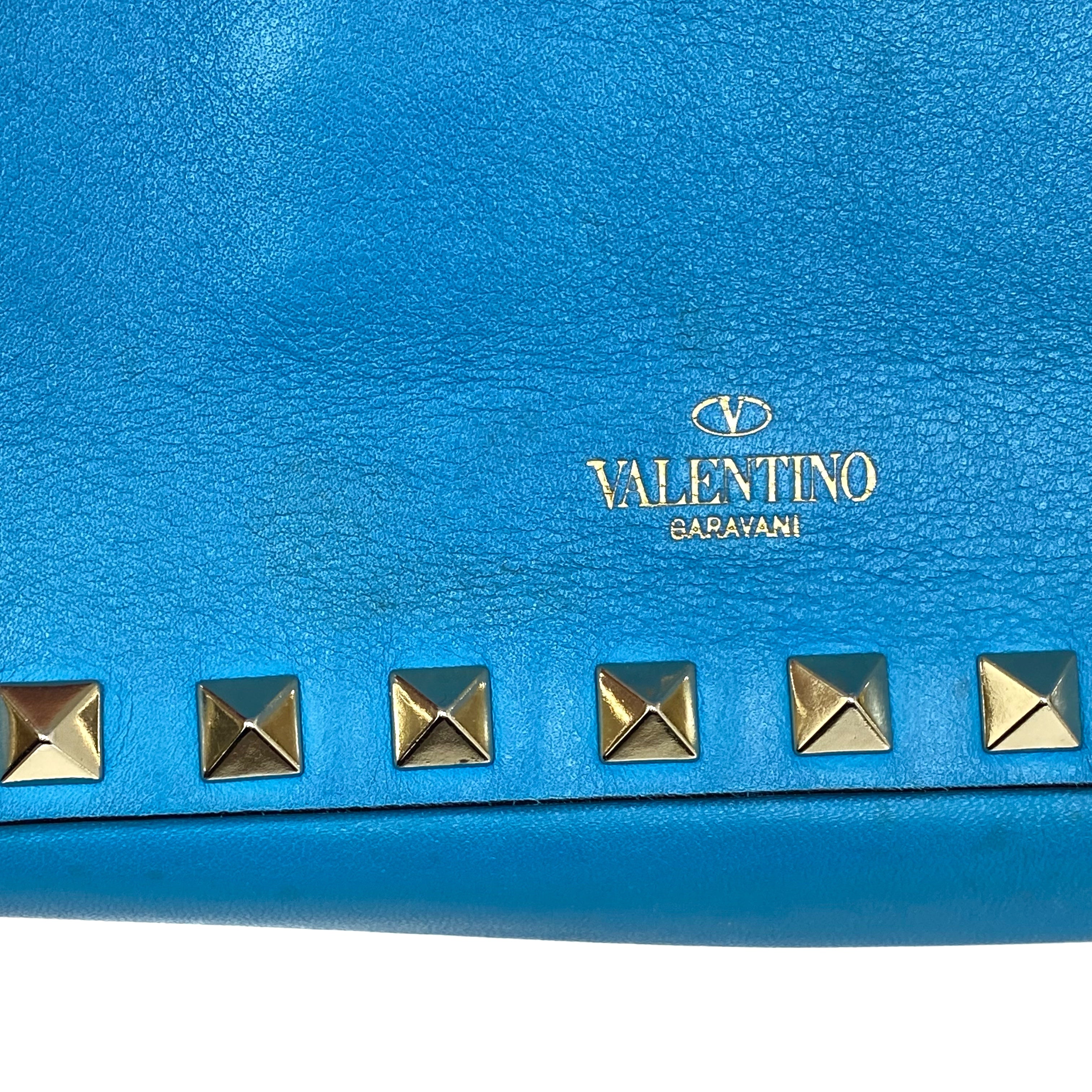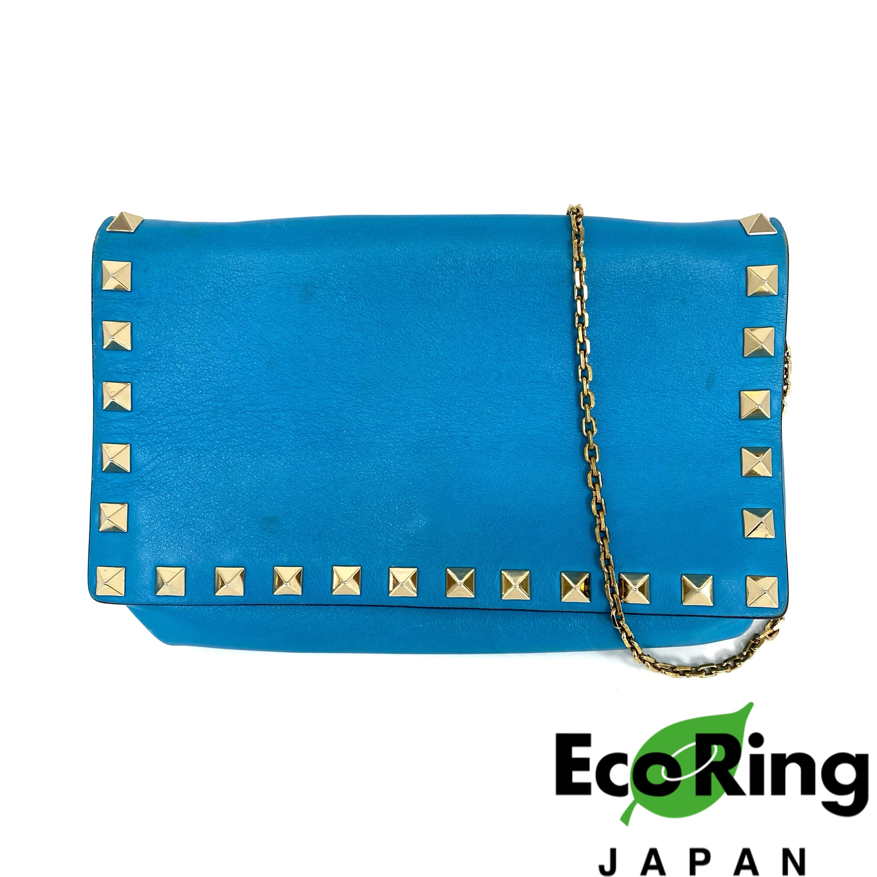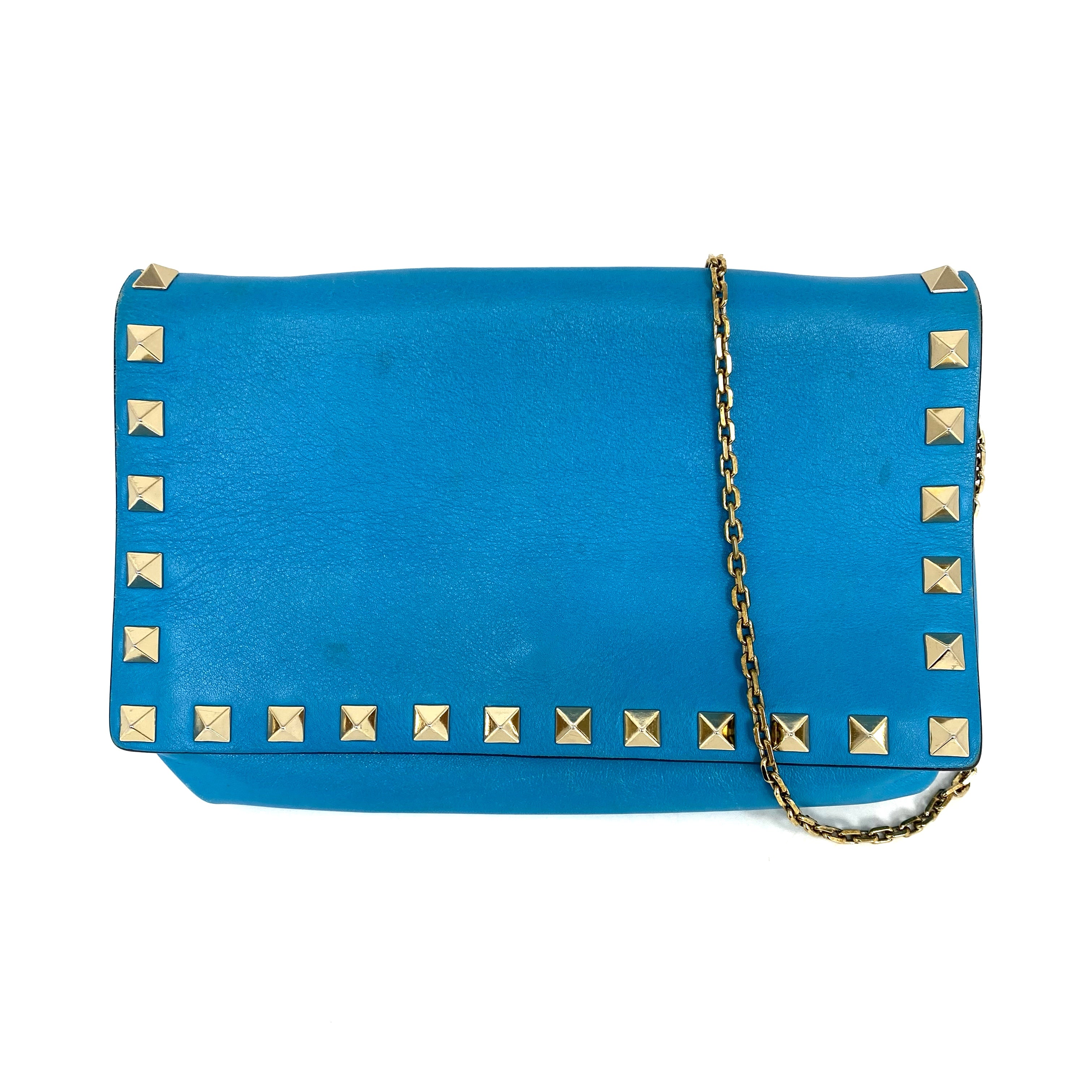 ☆ Valentino 華倫天奴 Blue Calfskin Chain Shoulder Bag 藍色小牛皮鏈條肩背袋 - 257025286