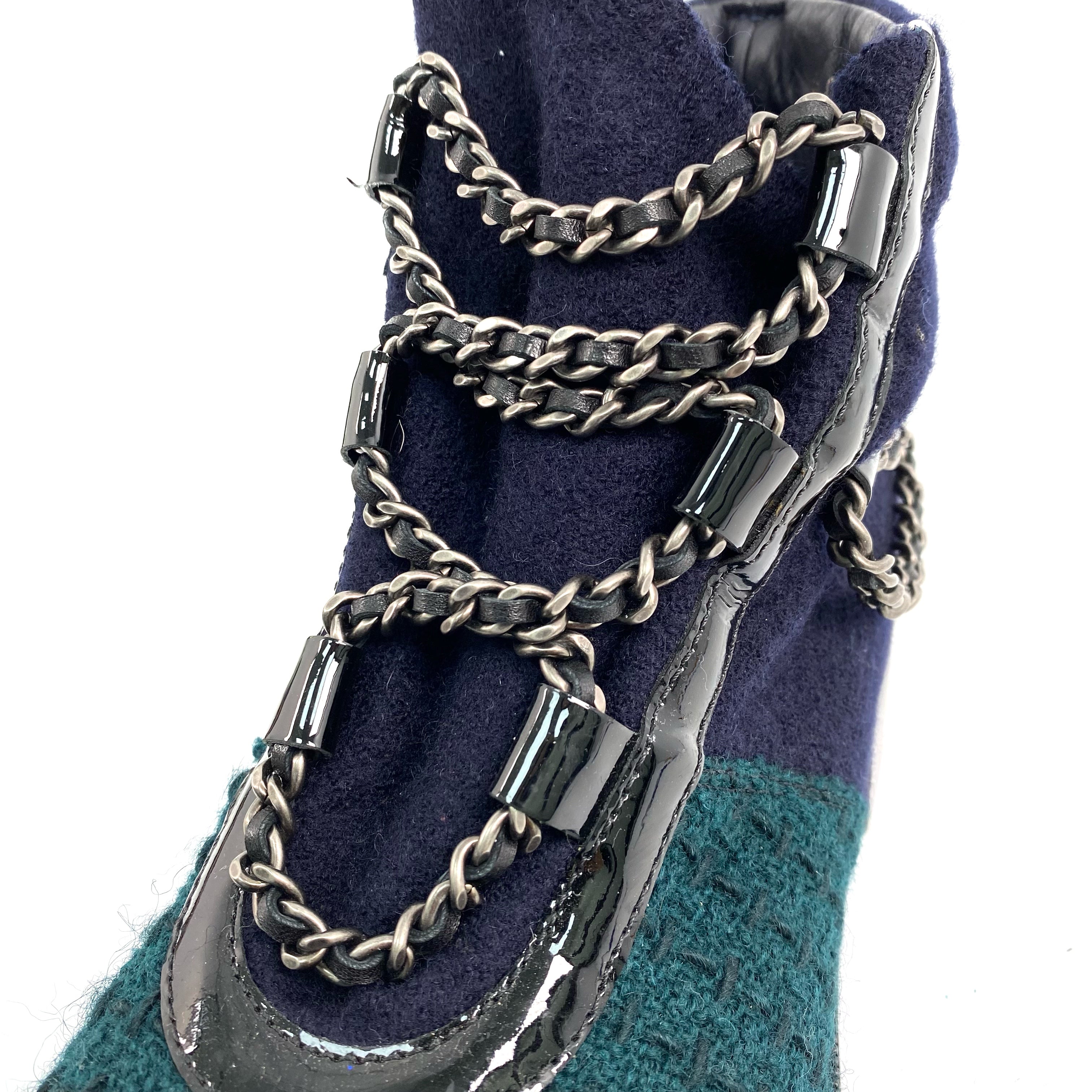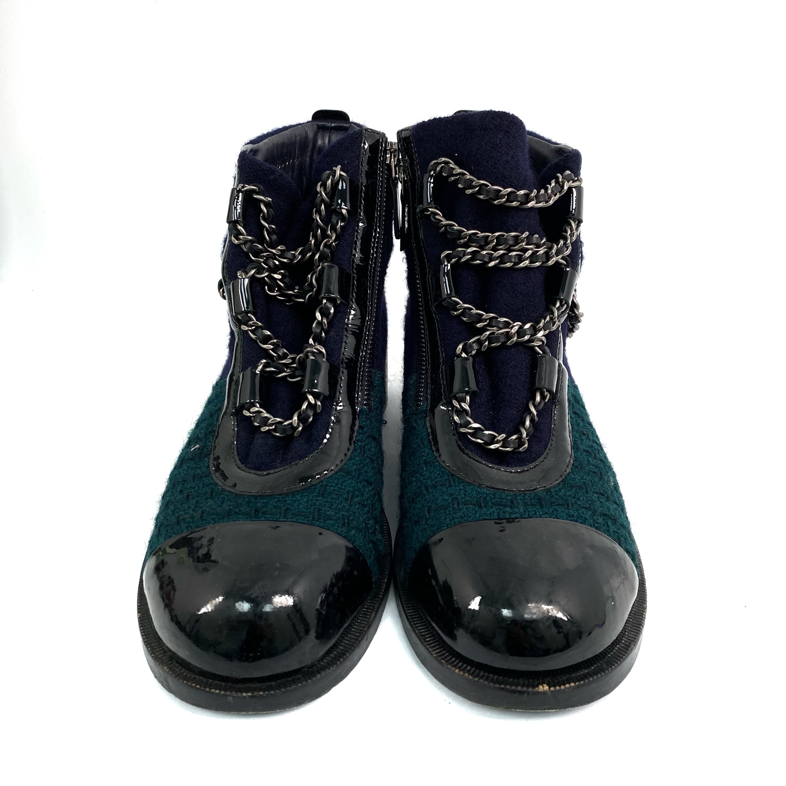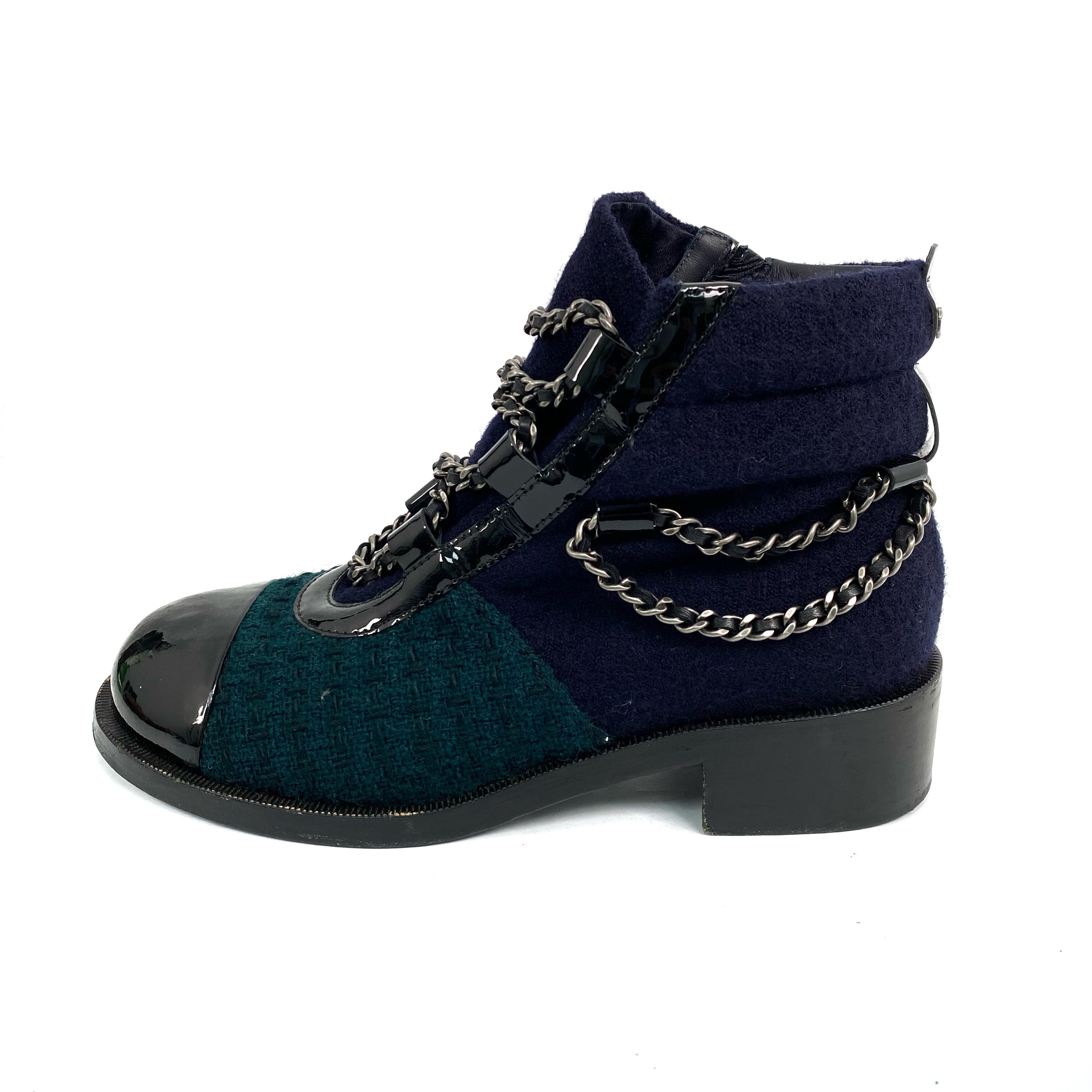 ☆ Chanel 香奈兒 Navy & Green Wool Short Boots #39 深藍色綠色羊毛短靴39碼 - 267008067