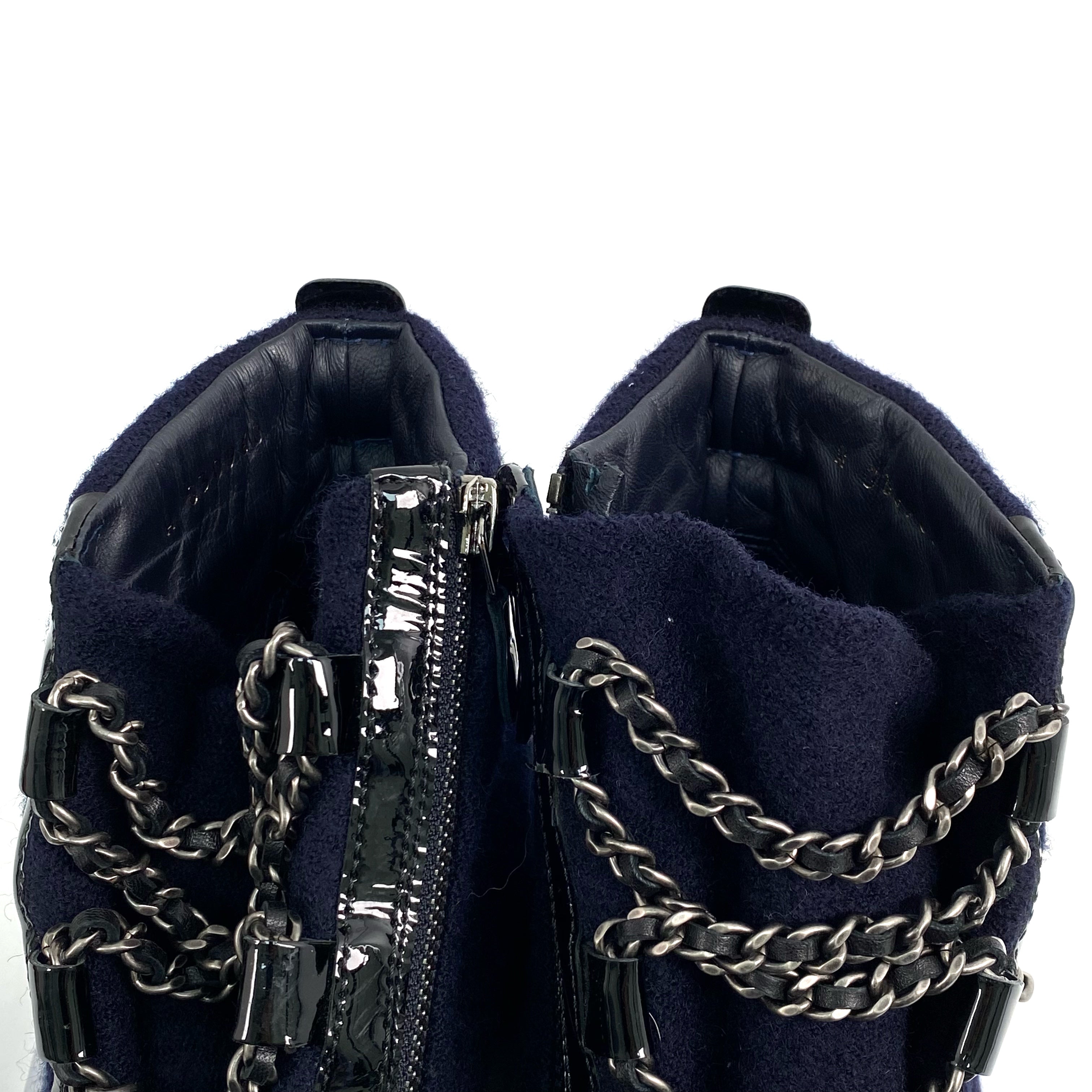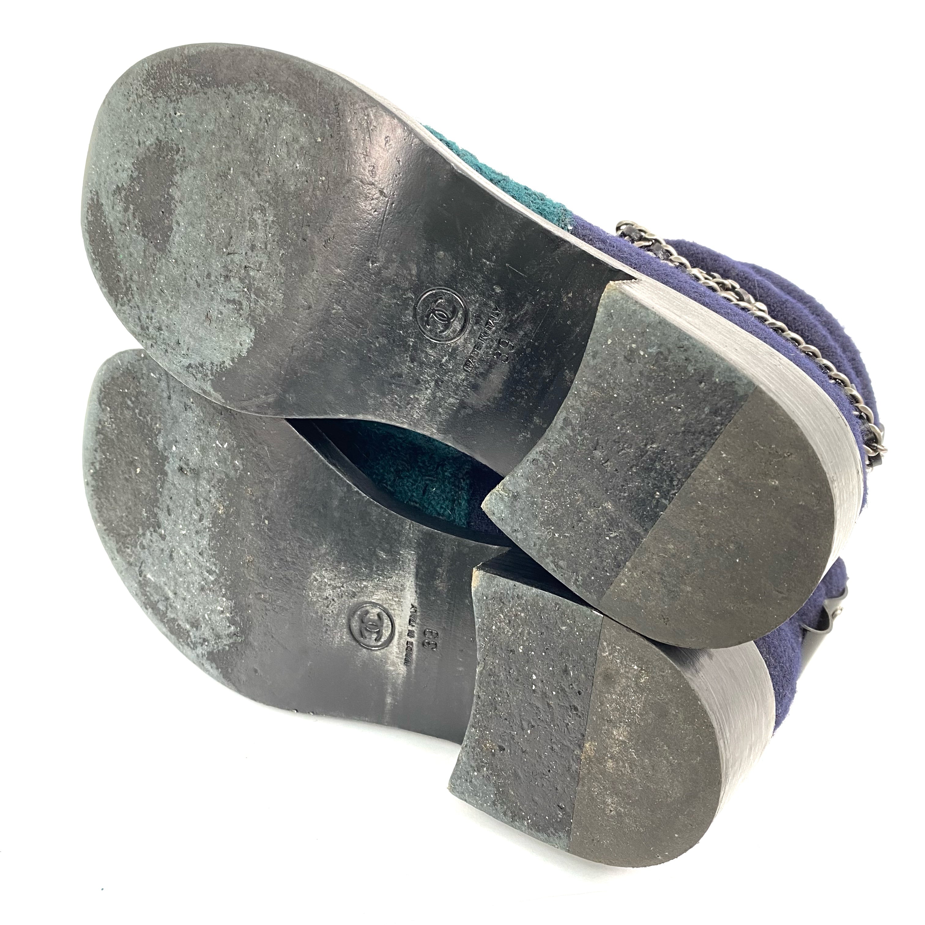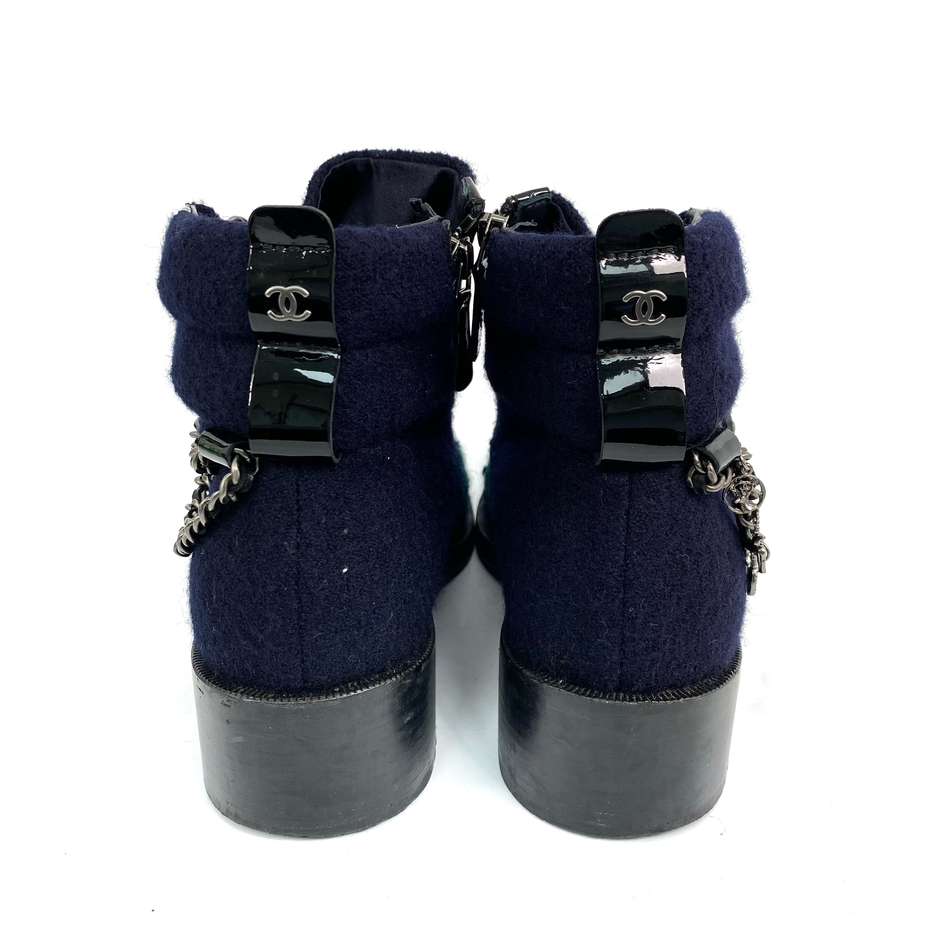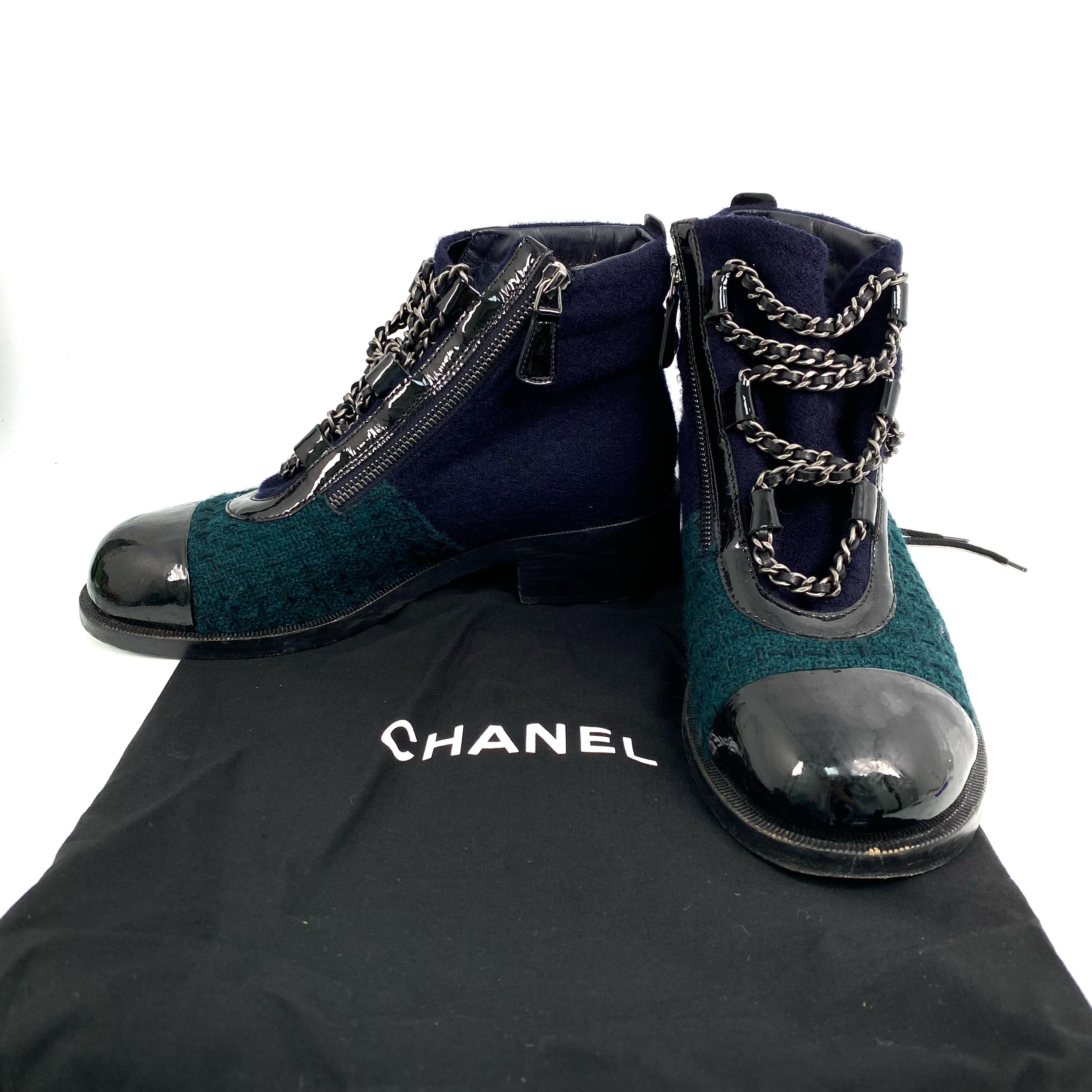 ☆ Chanel 香奈兒 Navy & Green Wool Short Boots #39 深藍色綠色羊毛短靴39碼 - 267008067