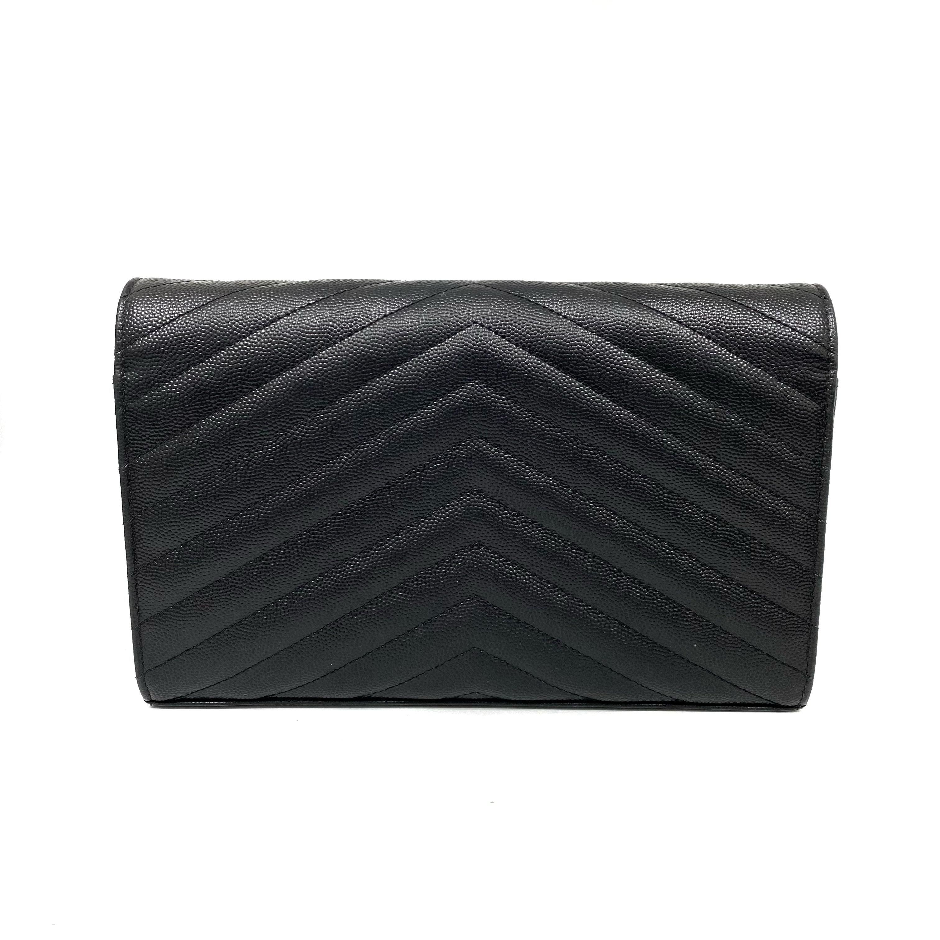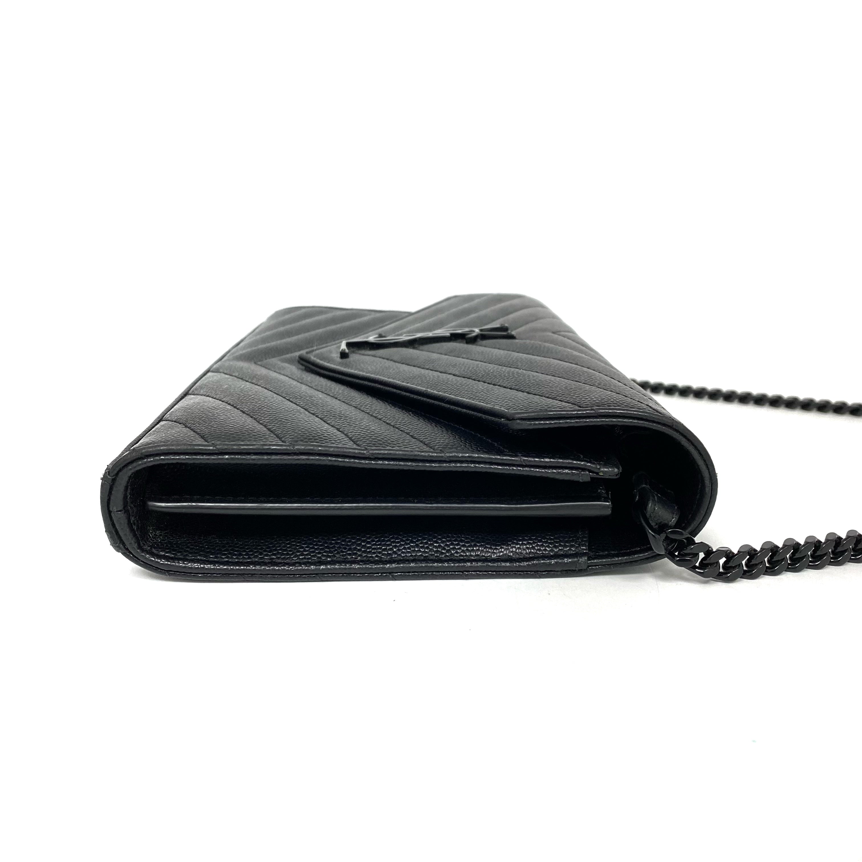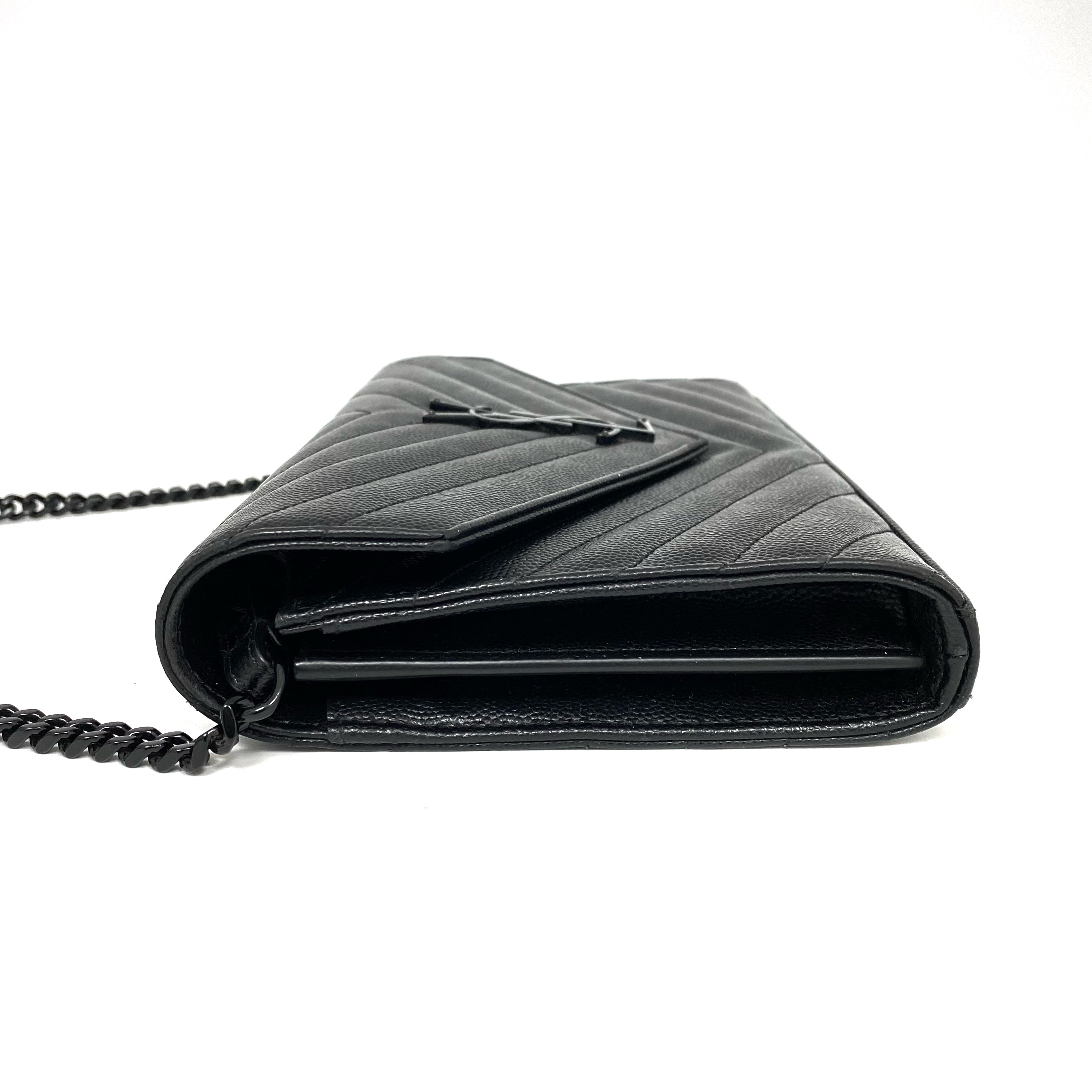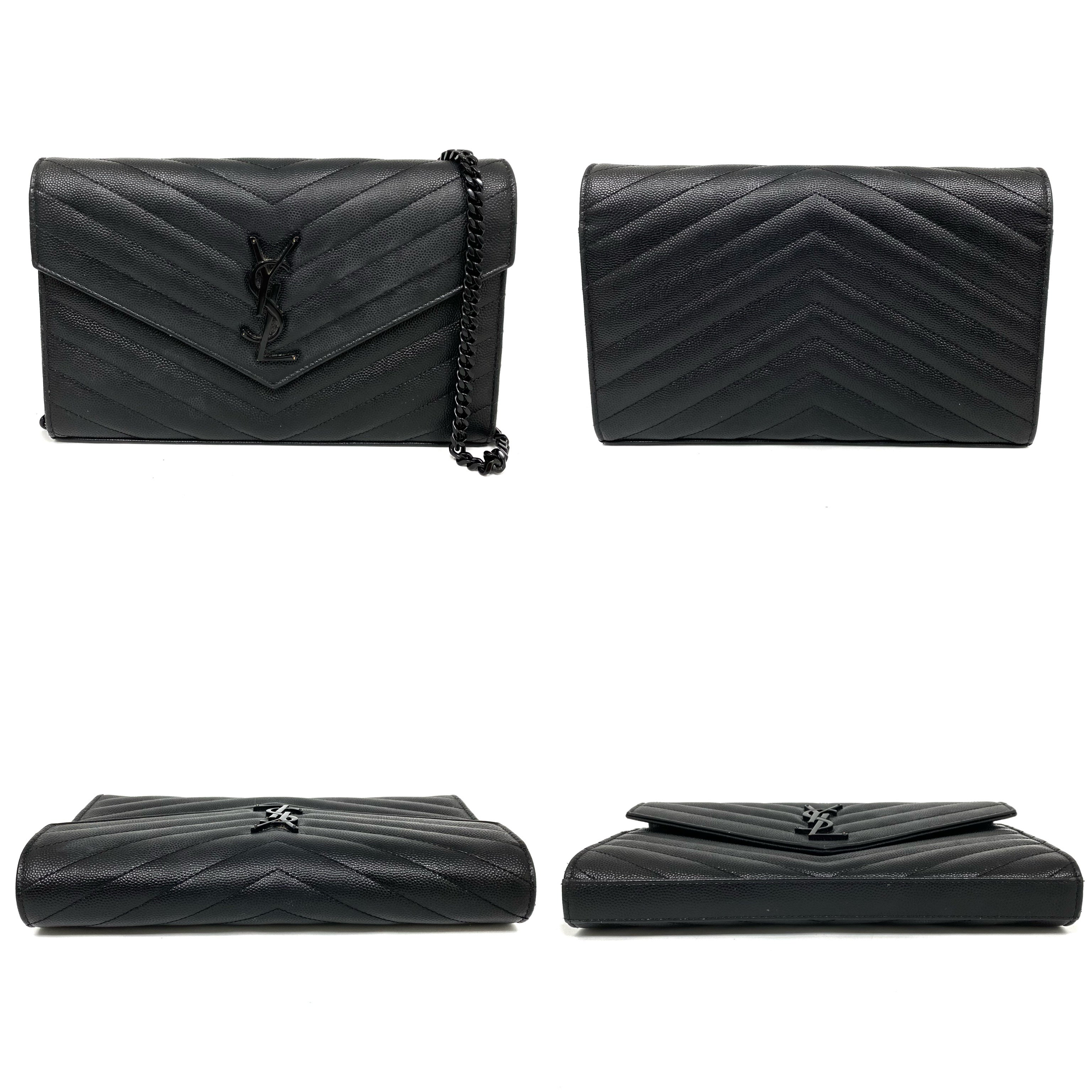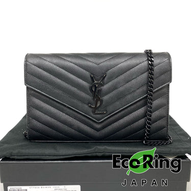△ Saint Laurent 聖羅蘭 So Black Caviar Skin Loulou Chain Wallet On Chain 黑色粒紋小牛皮鎖鏈銀包 - 257027375