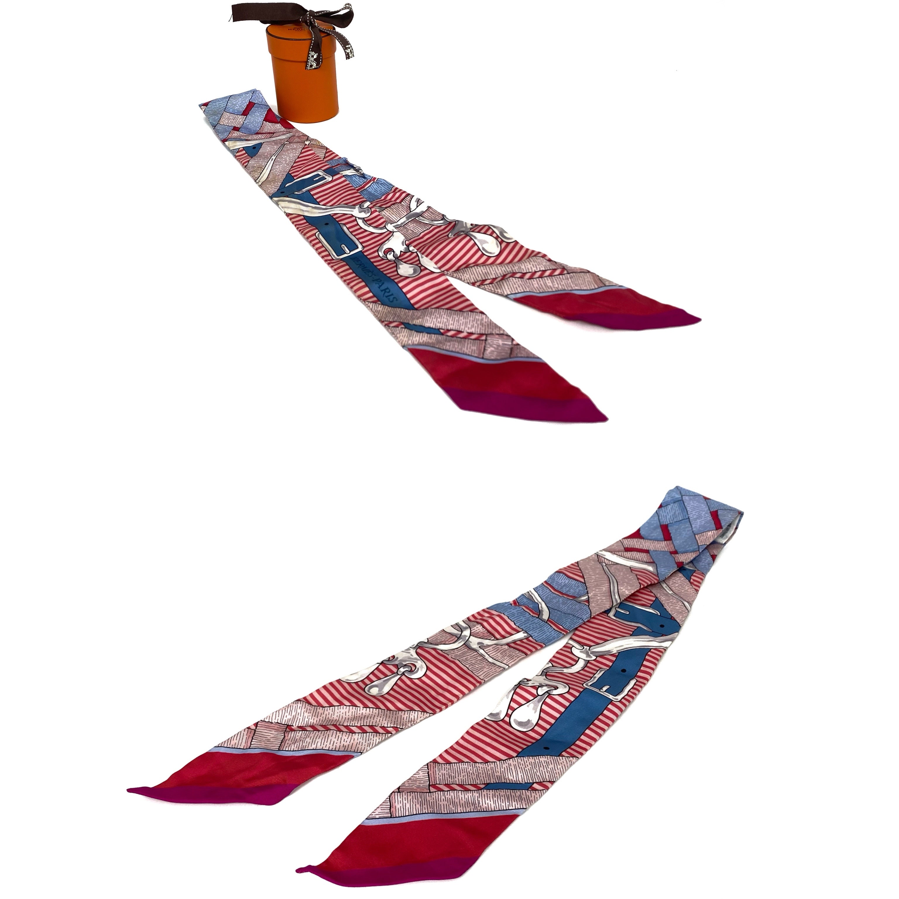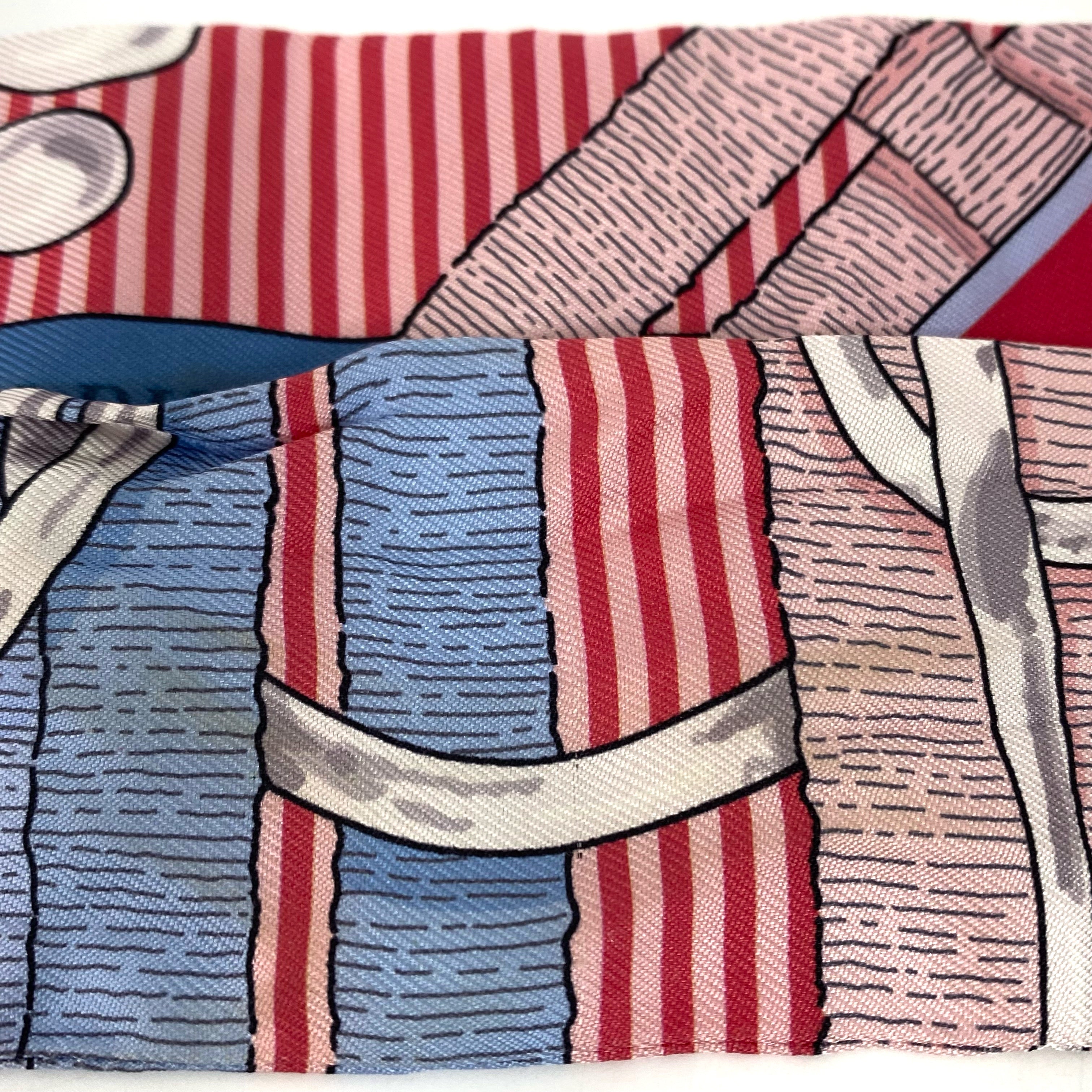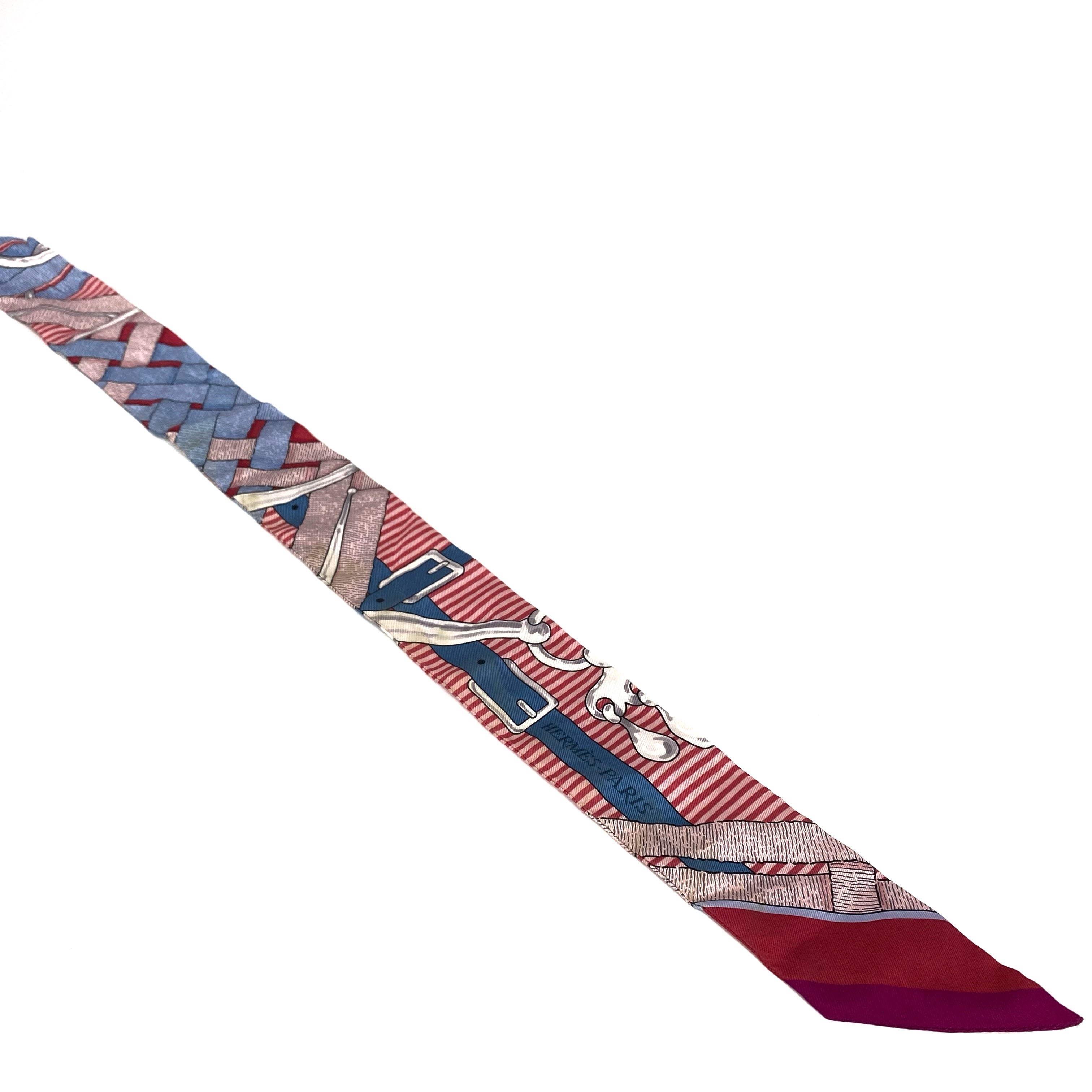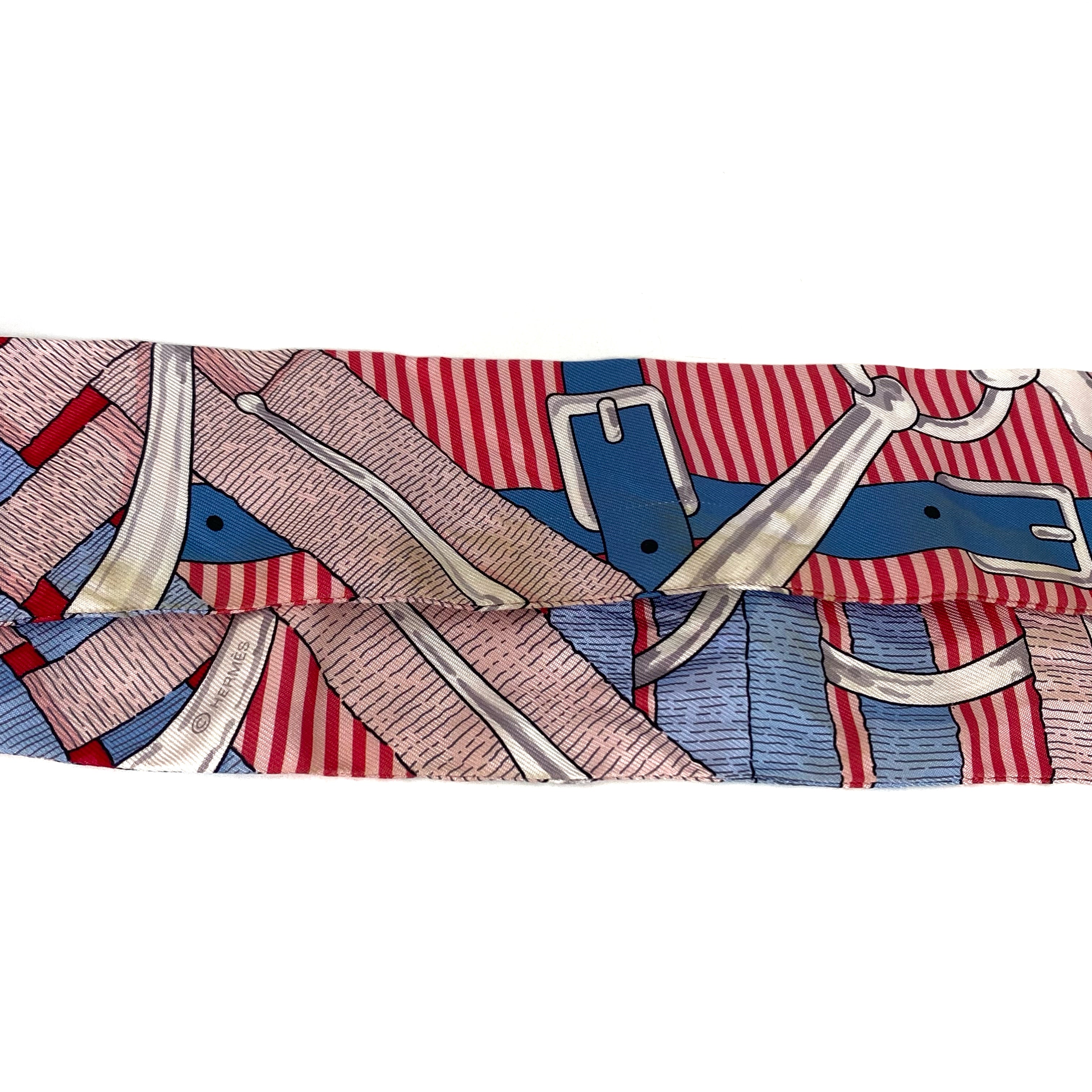 ☆ Hermes 愛馬仕 Pink And Blue 100% Silk Twilly Scarf 粉紅色和藍色100%絲質巾 - 257022130