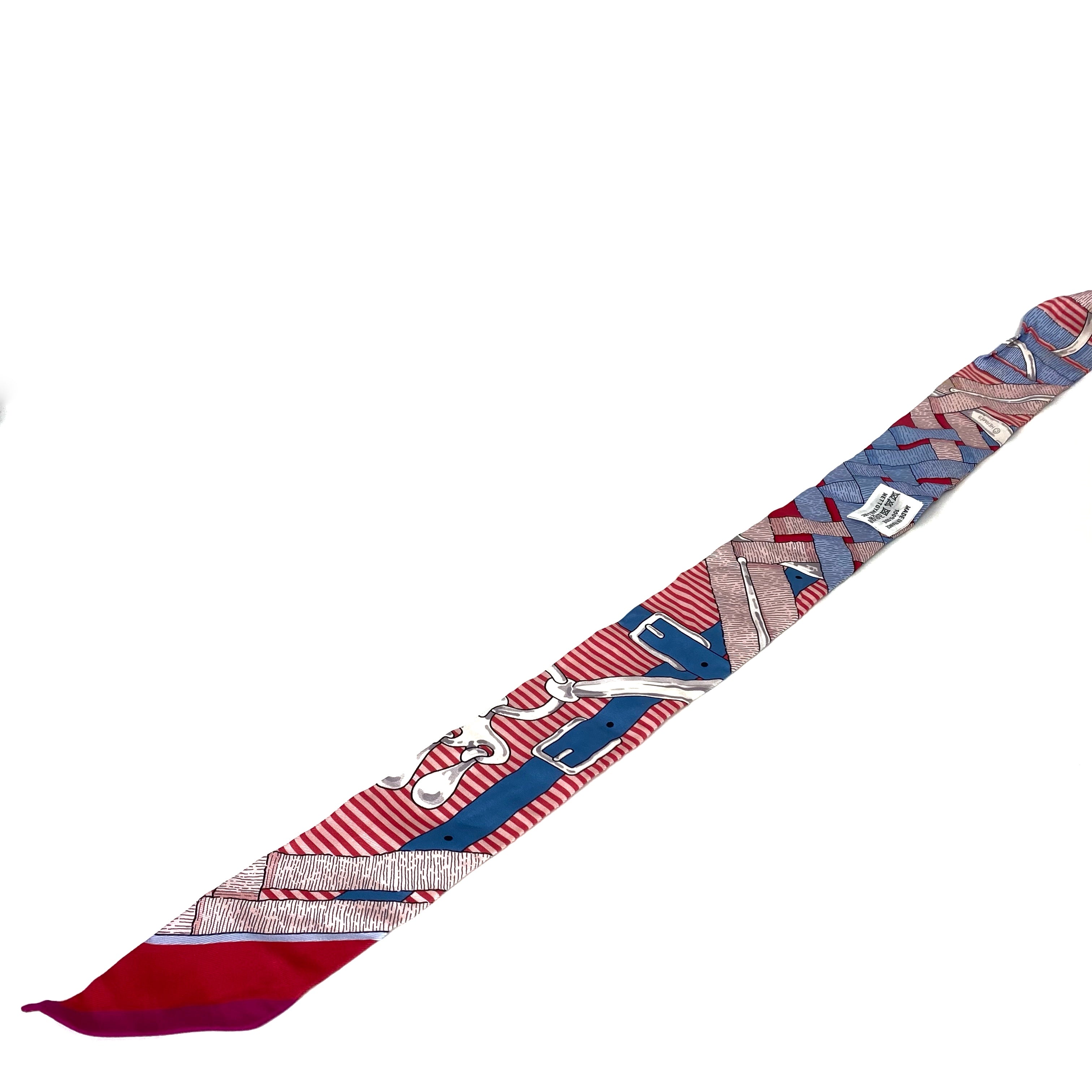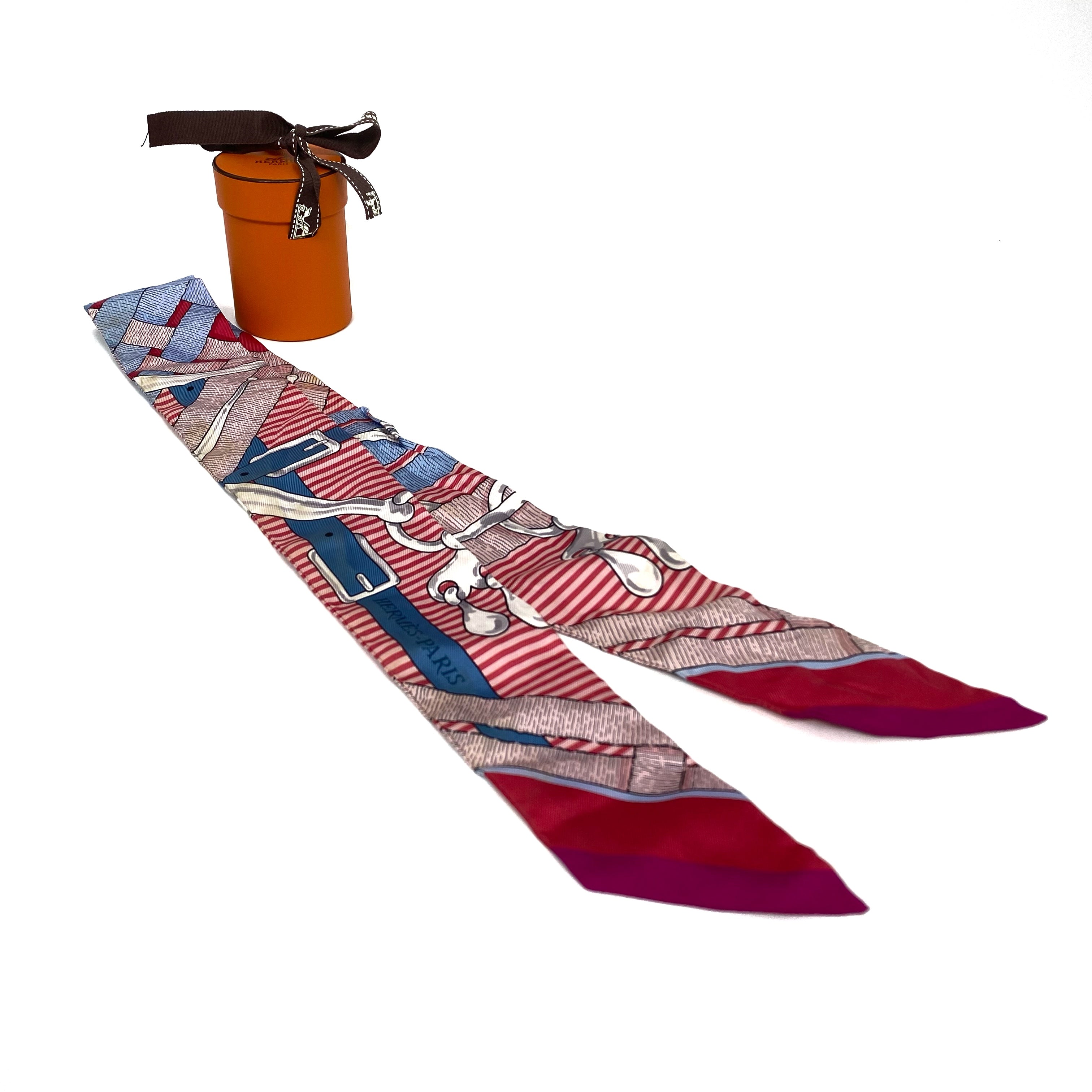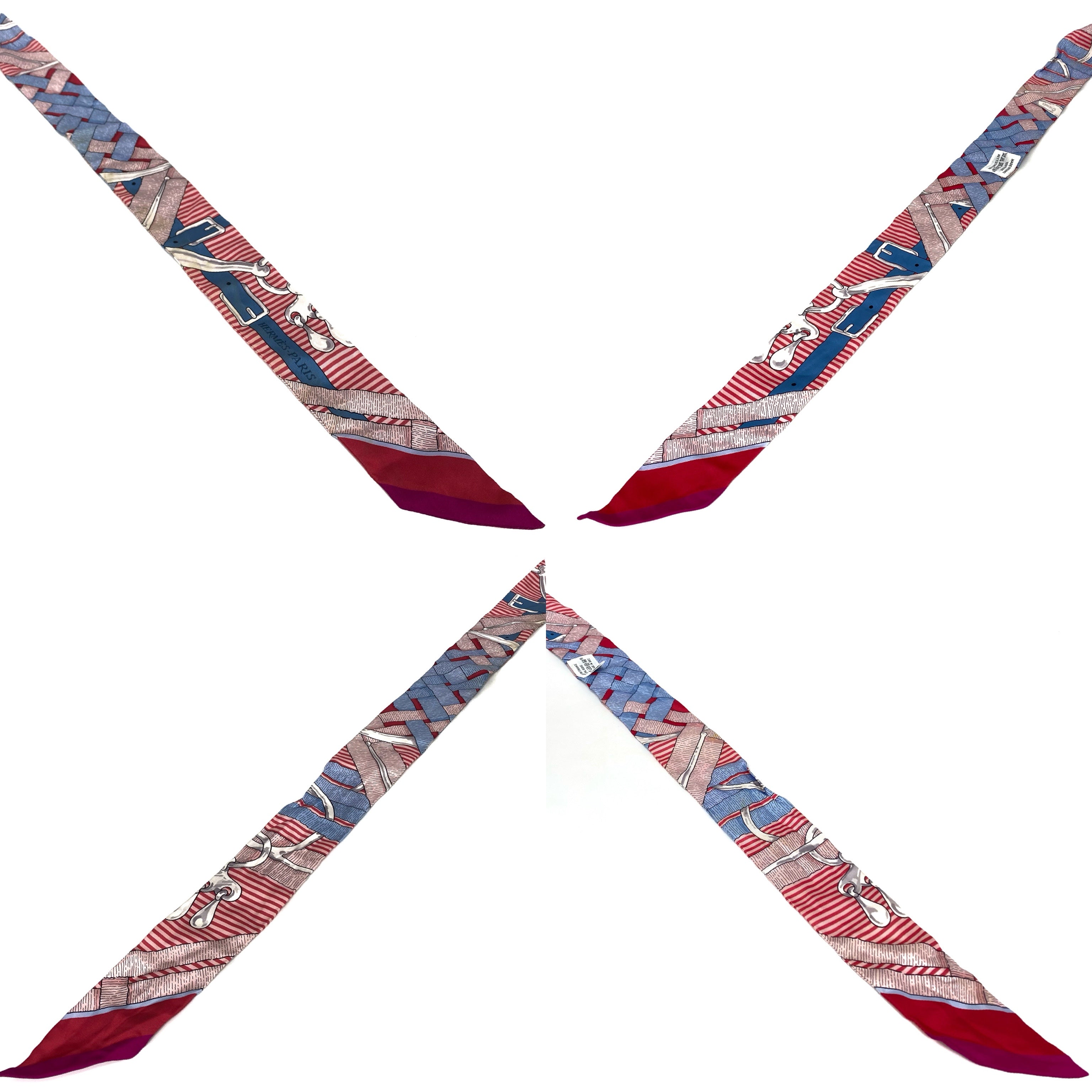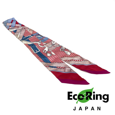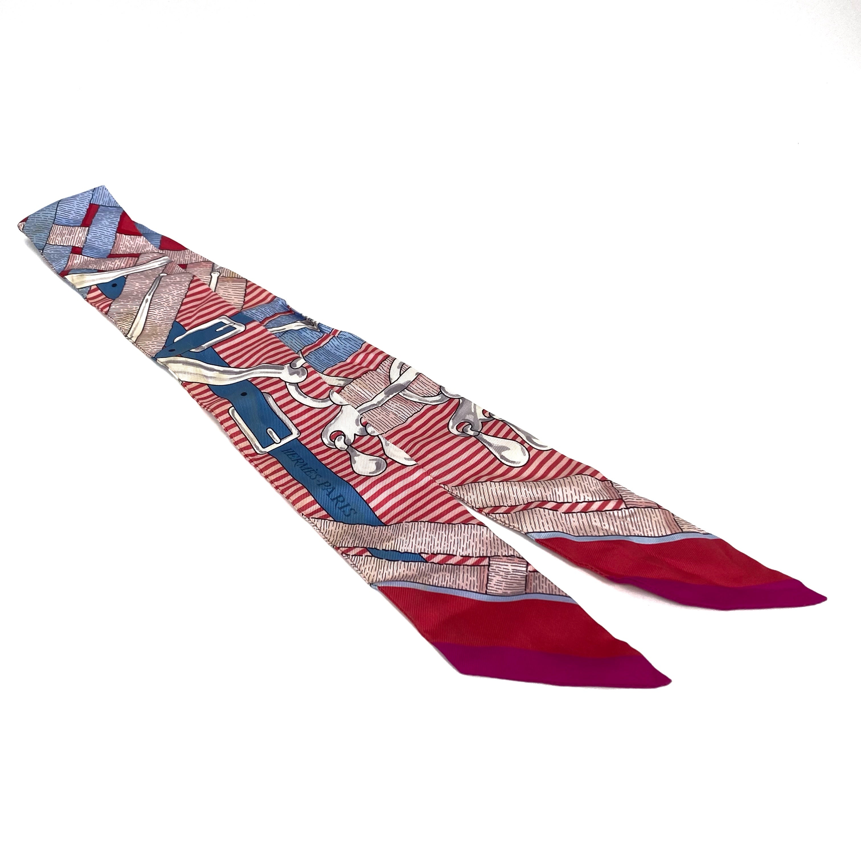 ☆ Hermes 愛馬仕 Pink And Blue 100% Silk Twilly Scarf 粉紅色和藍色100%絲質巾 - 257022130