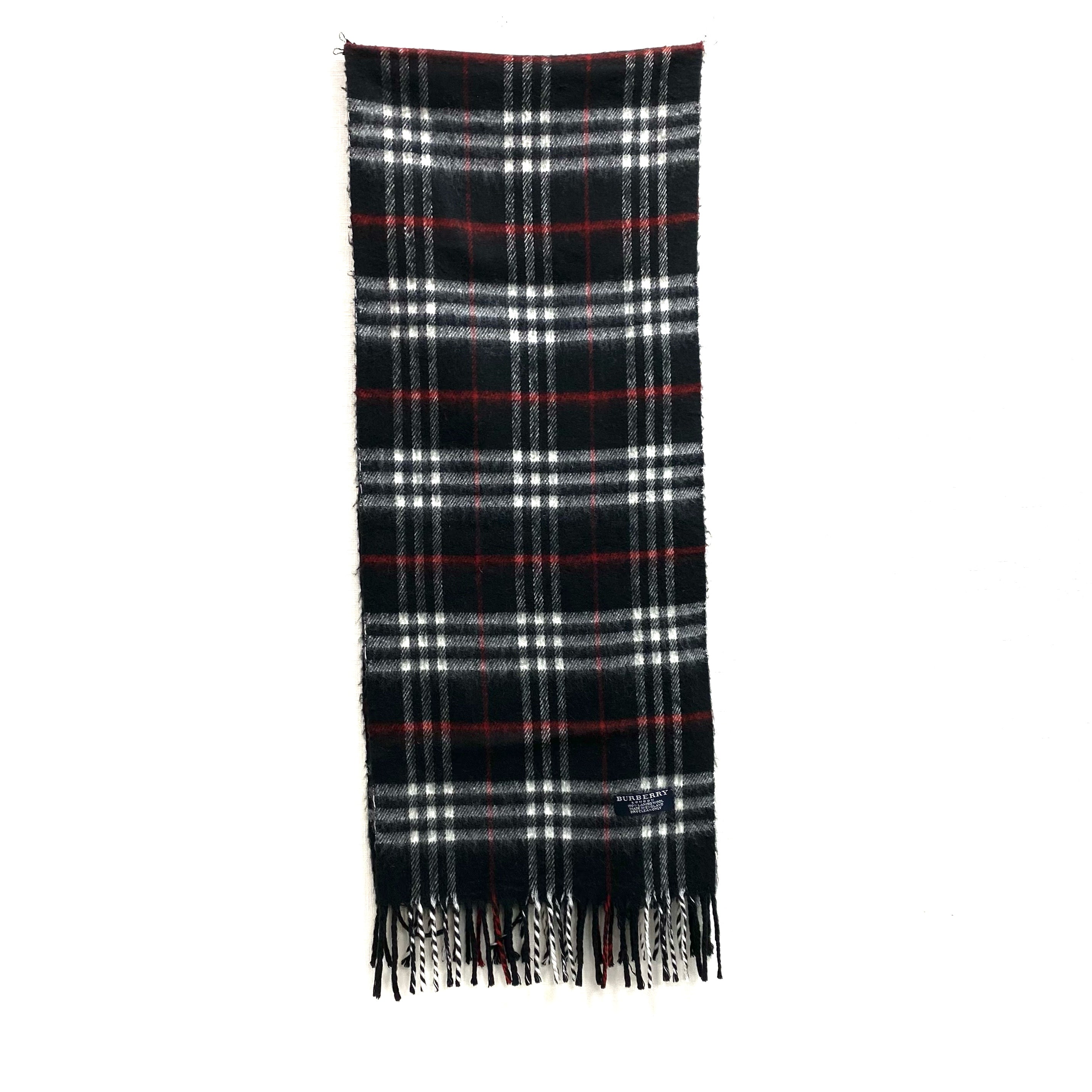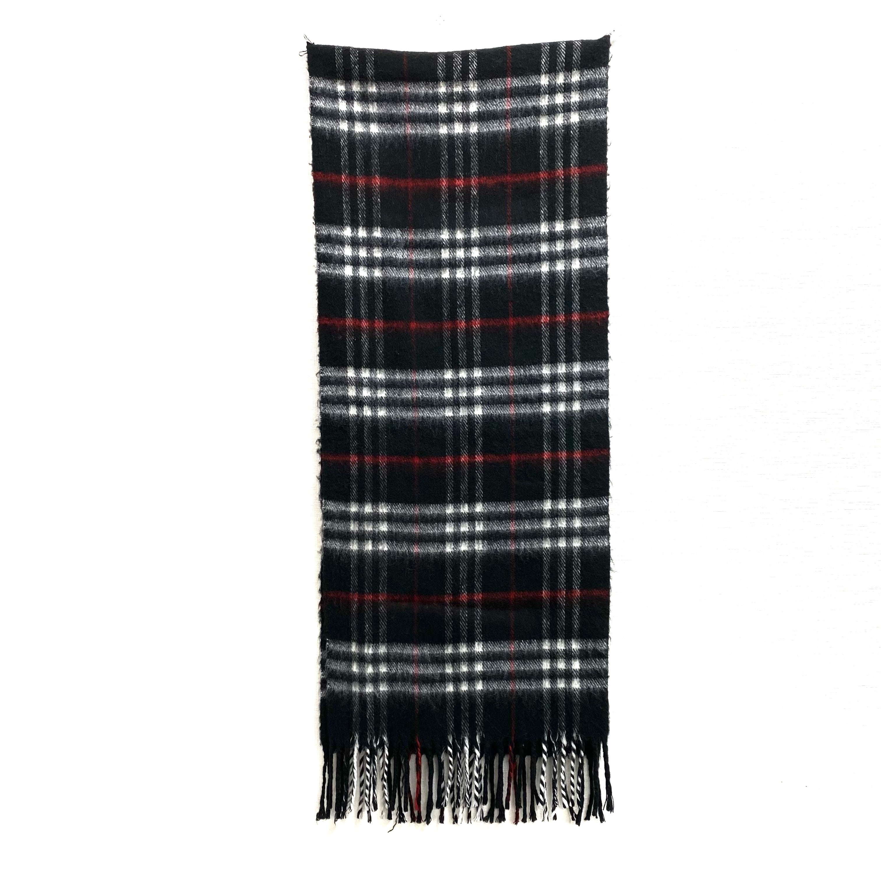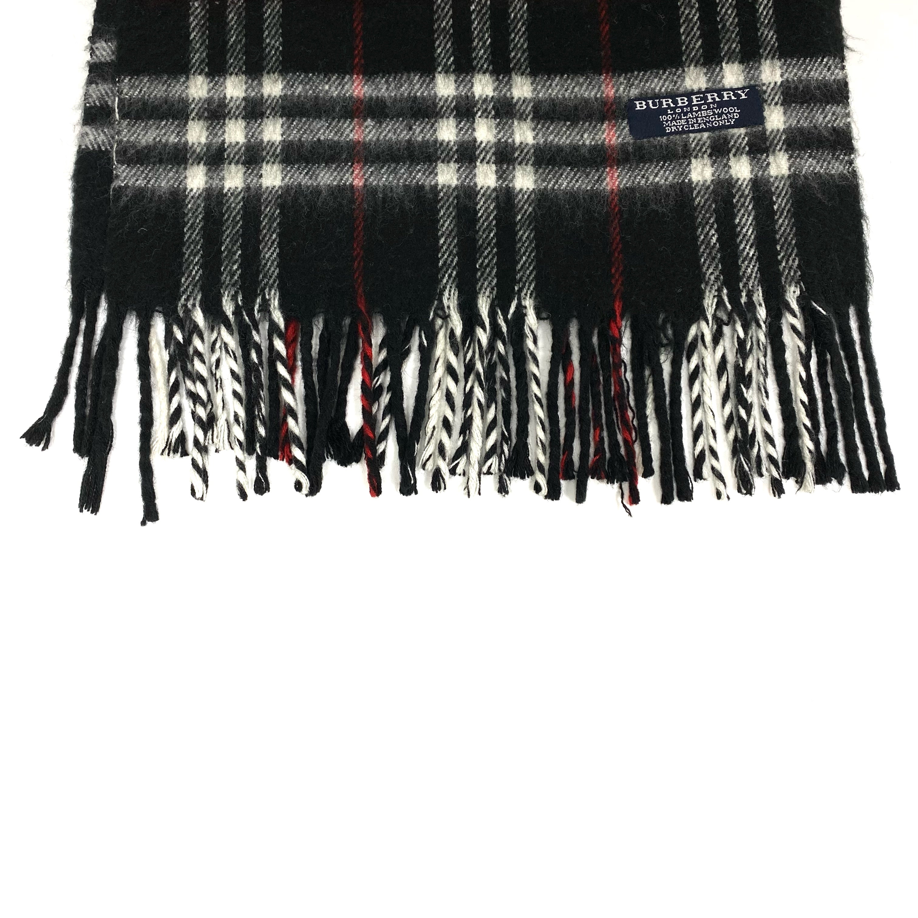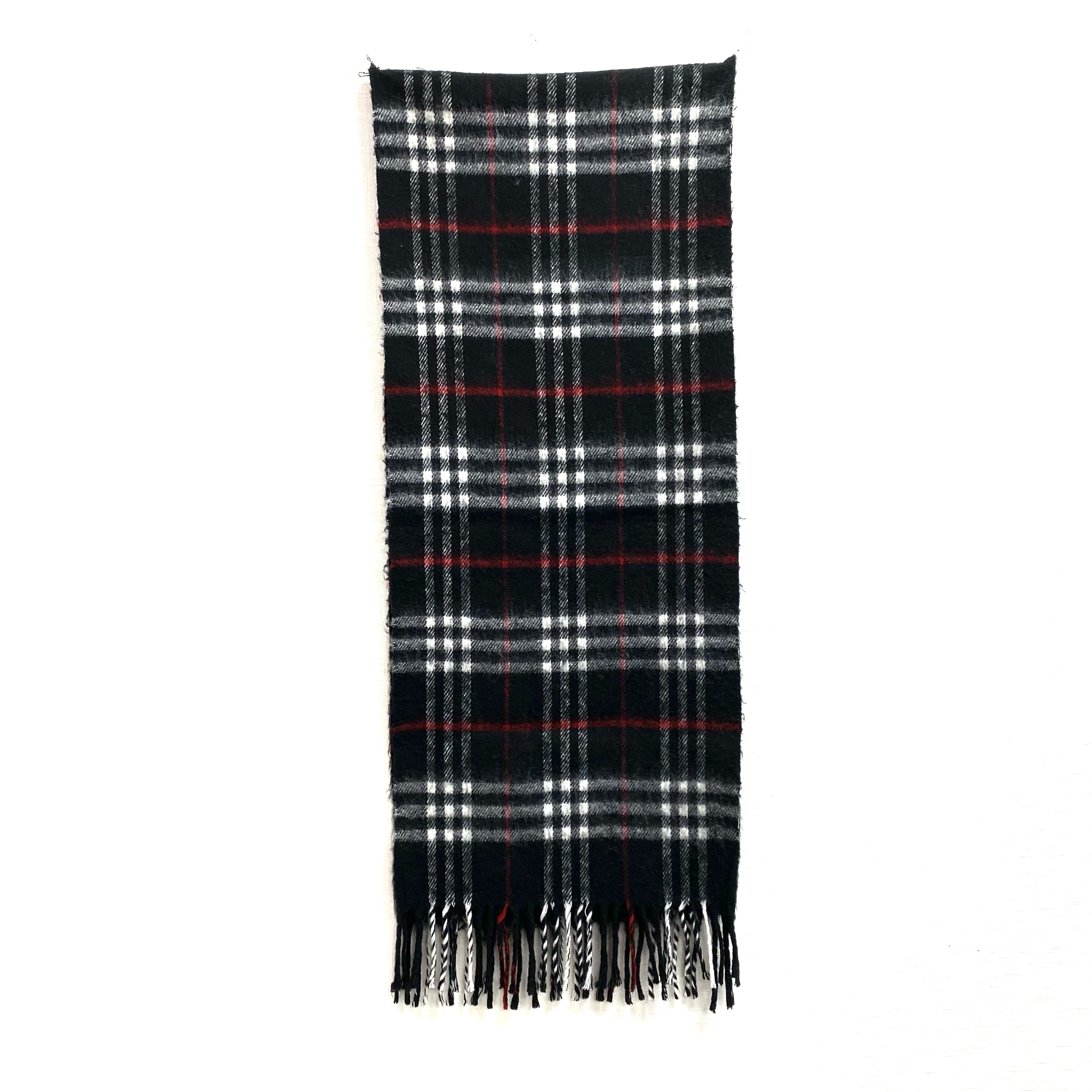 ☆Burberry博柏利 Black, White 100% Lambswool Checkered Scarf 黑色, 白色 100% 羊毛格紋圍巾 -257022379