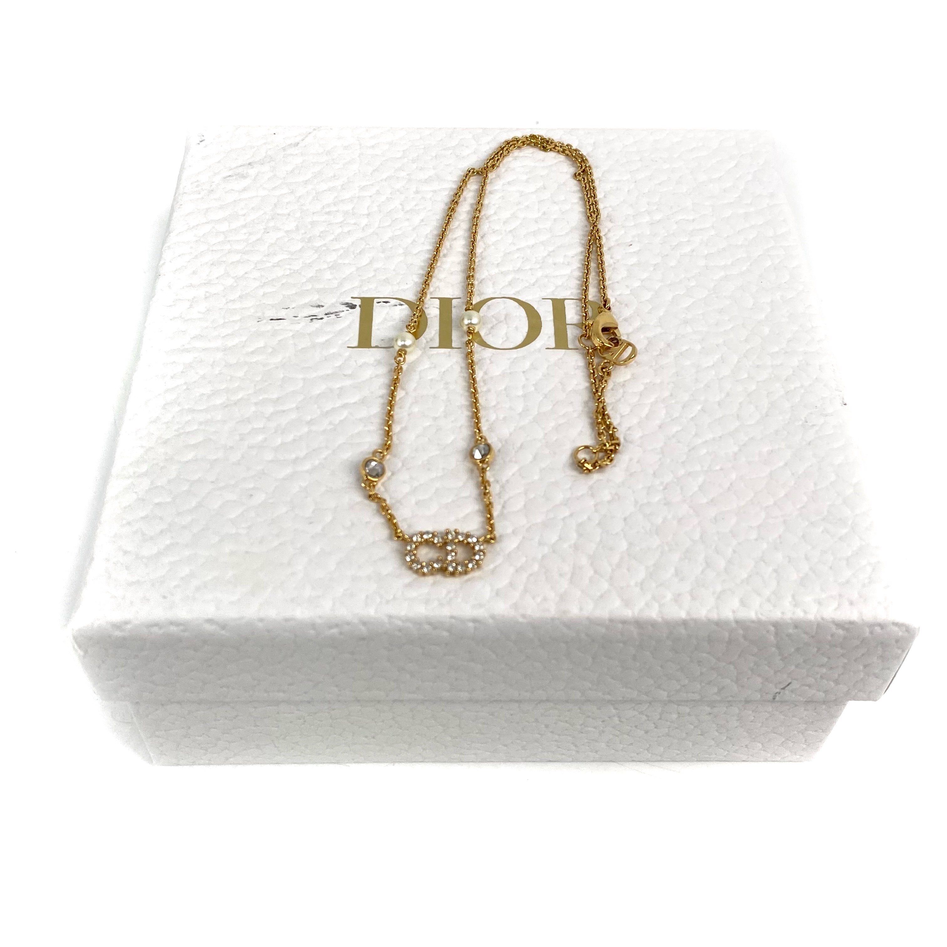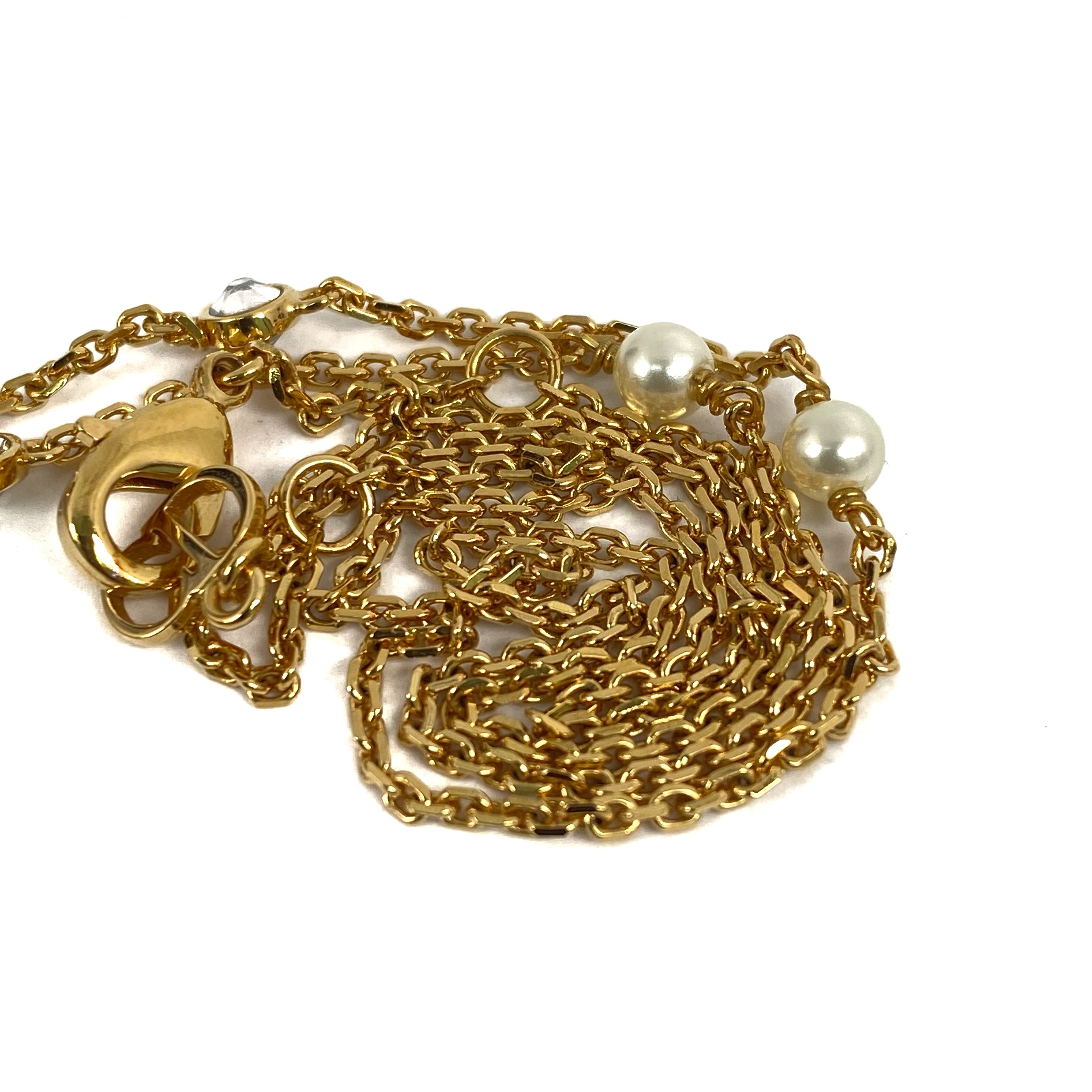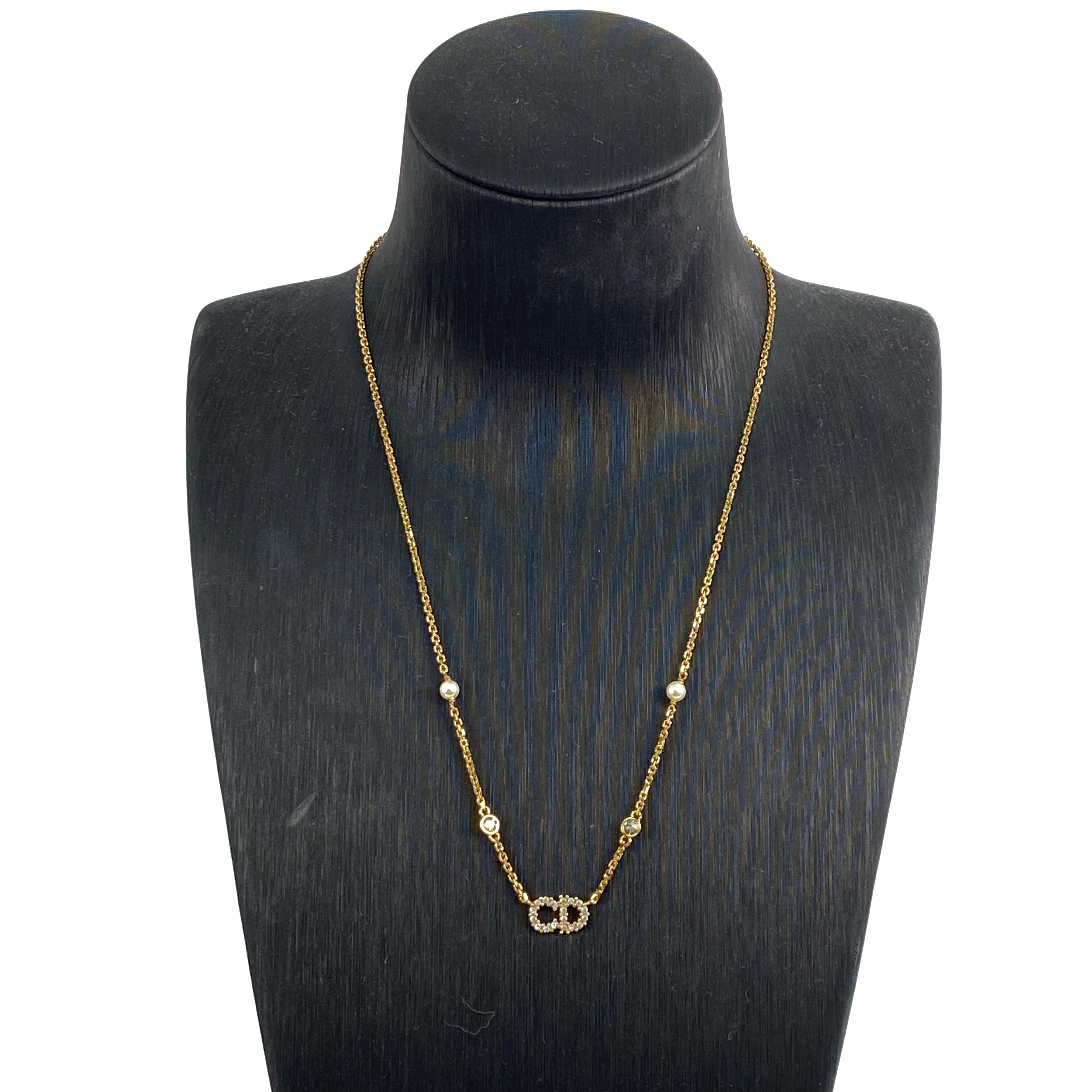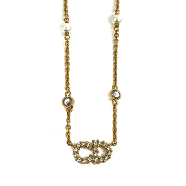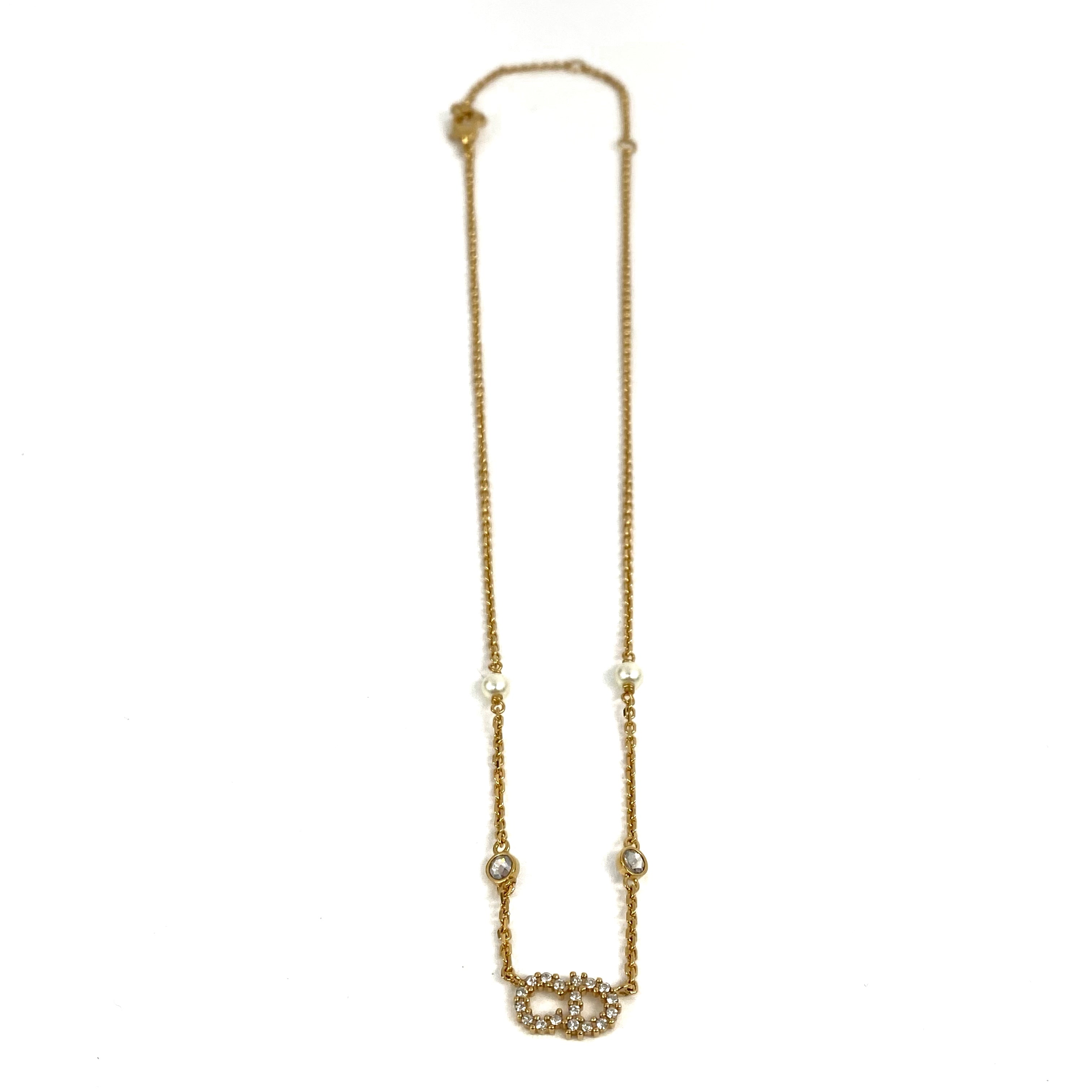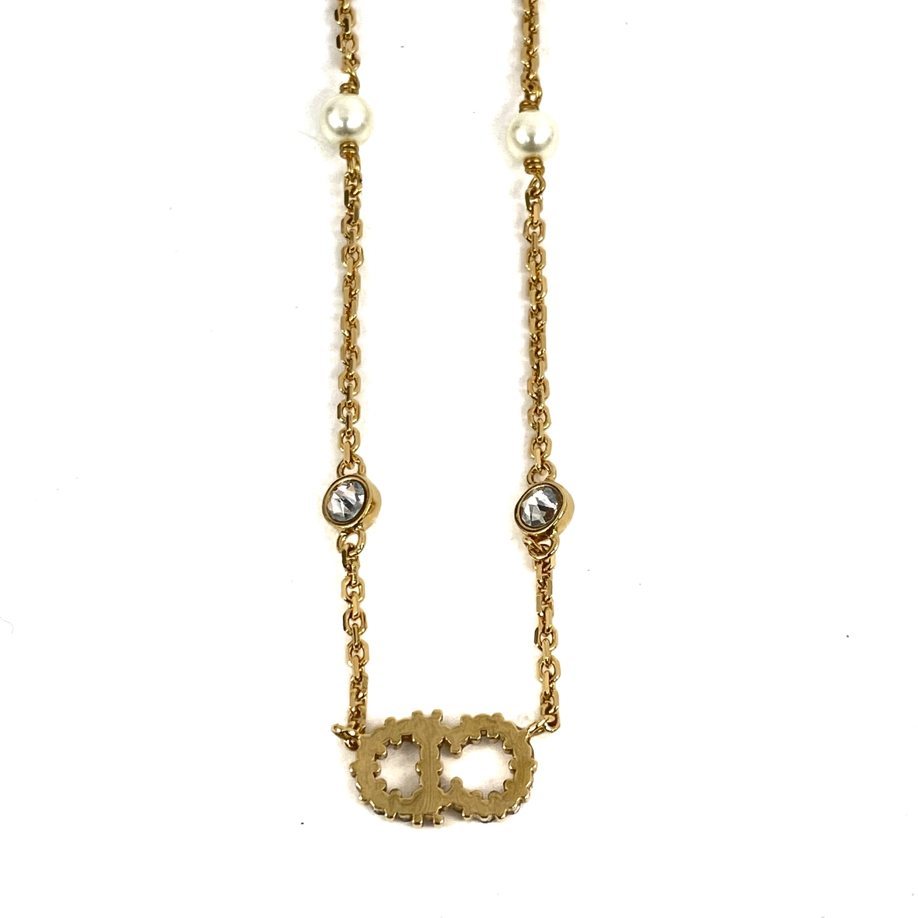 ☆ Christian Dior 迪奧 Gold Tone Metal Rhinestones Faux Pearl Necklace 金色金屬水鑽仿珍珠頸鏈 - 257027637