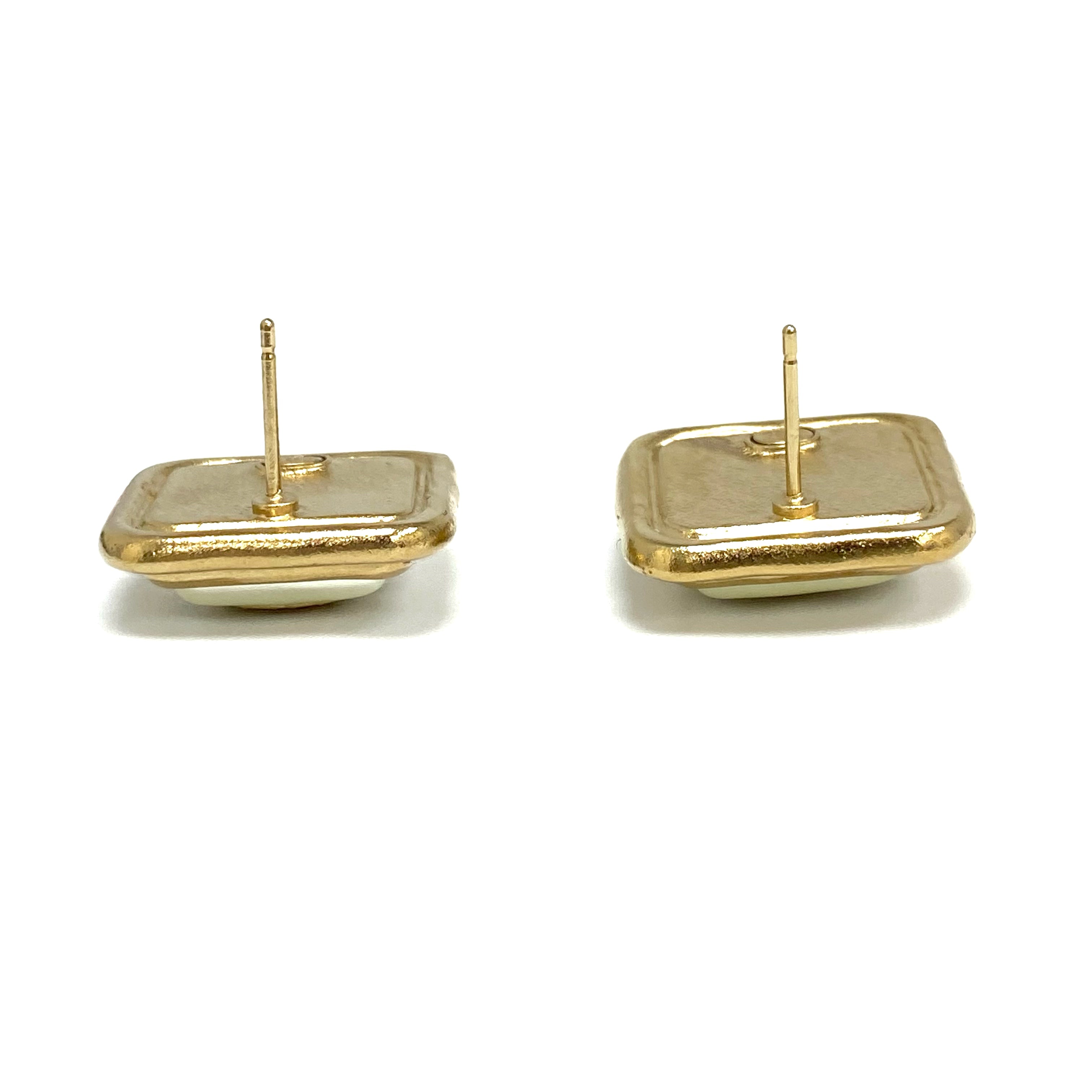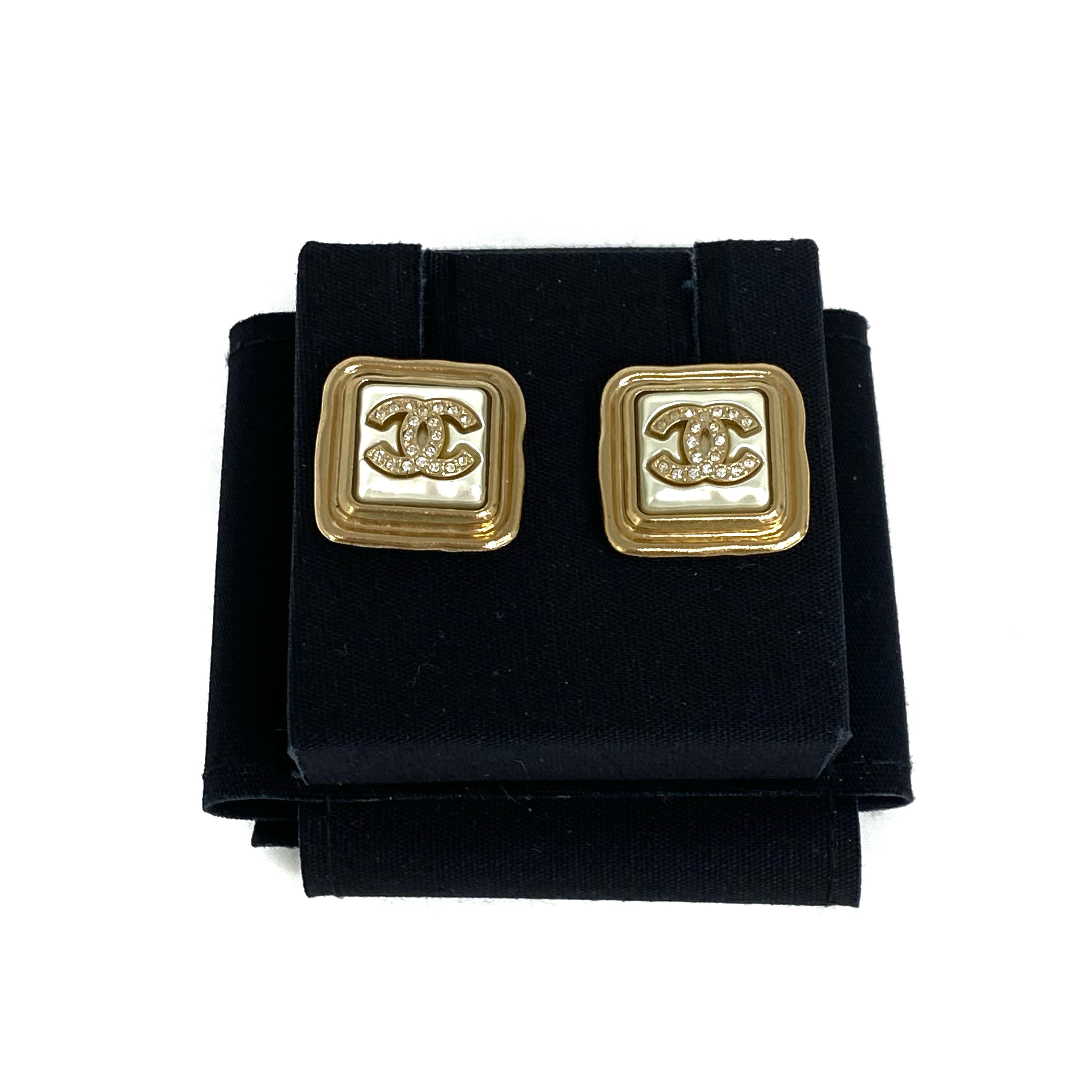 ☆ Chanel 香奈兒 Gold Tone Metal Rhinestones Faux Pearl Square Earrings A22A 金色金屬水鑽仿珍珠方形耳環 A22A - 267000456