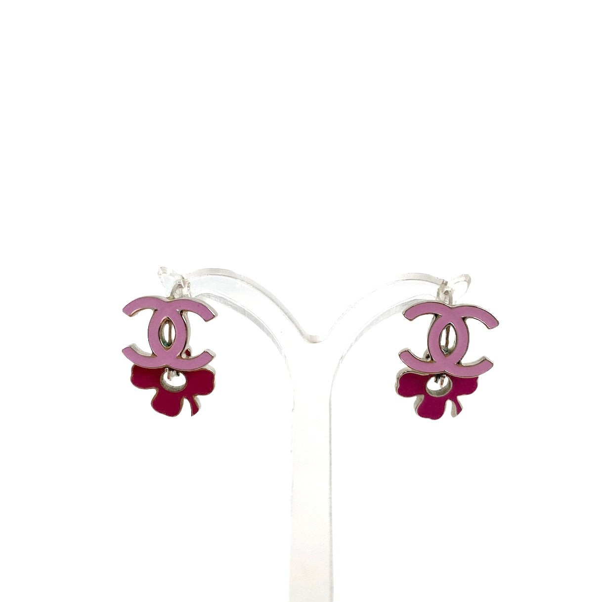 ☆ Chanel 香奈兒 Pink Silver-tone Metal Earrings 04P 粉紅色銀色金屬耳環 04P - 267005275