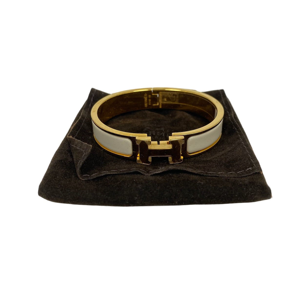 ☆ Hermes 愛馬仕 White Gold-tone Metal Clic H Bangle 白色鍍金金屬手鐲 - 267005163