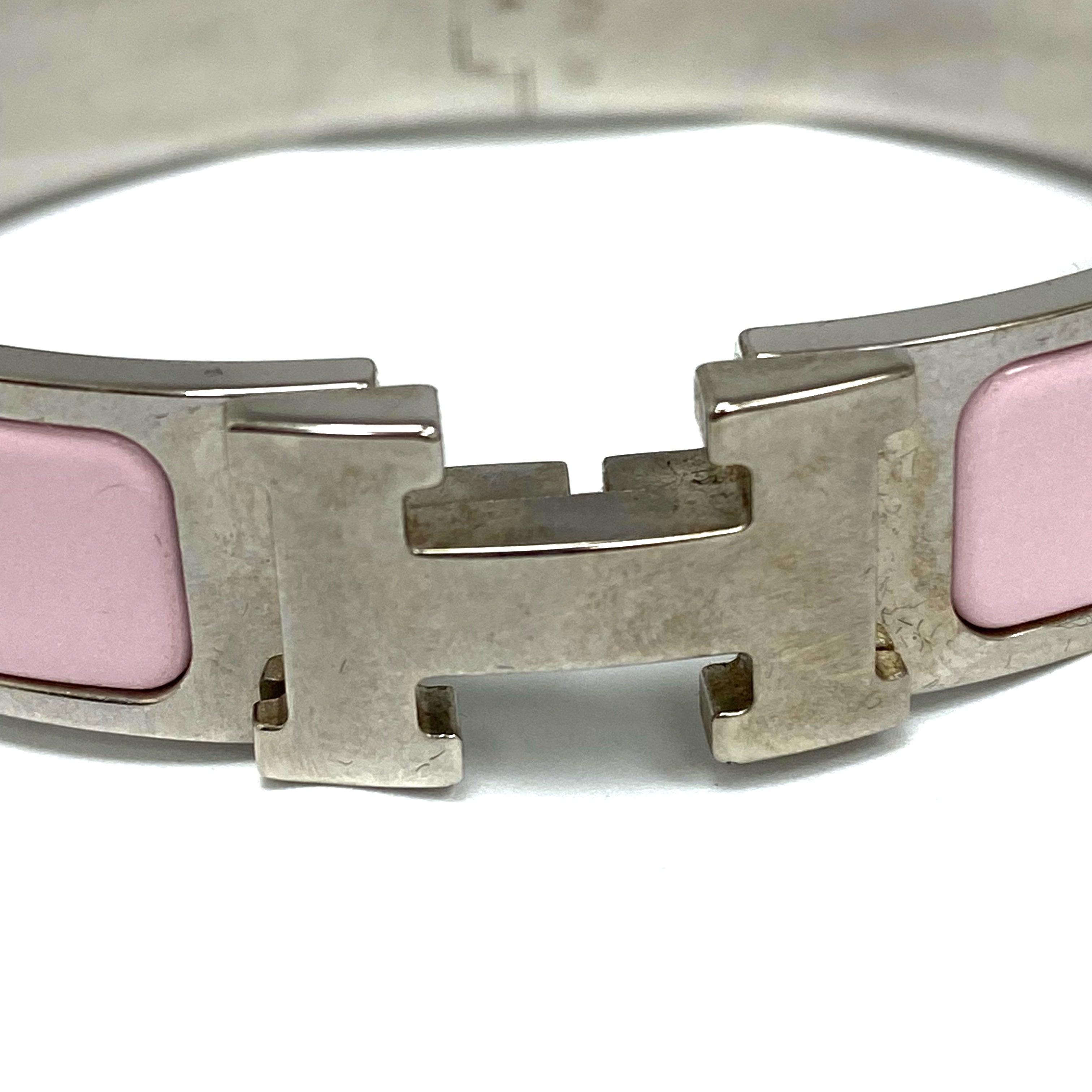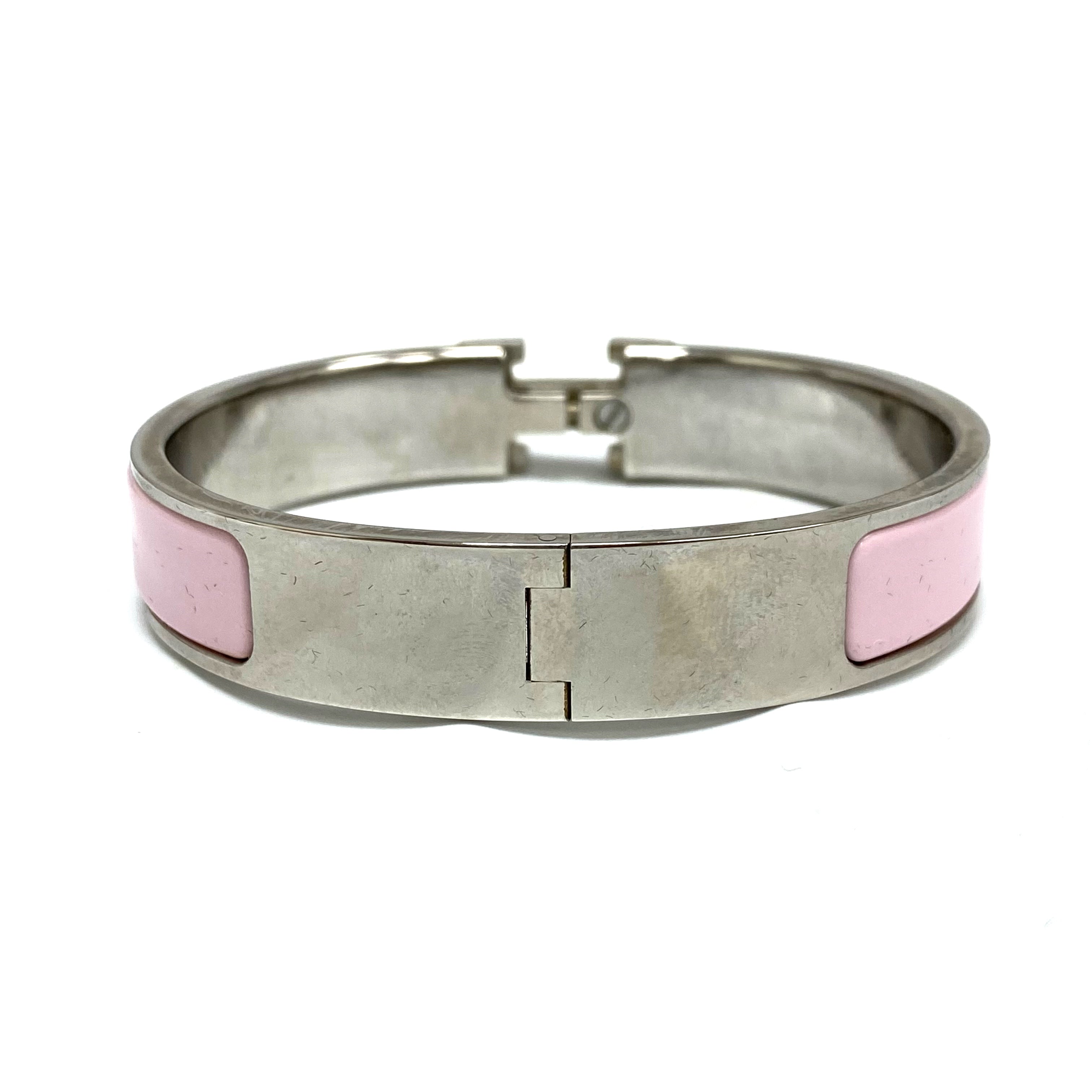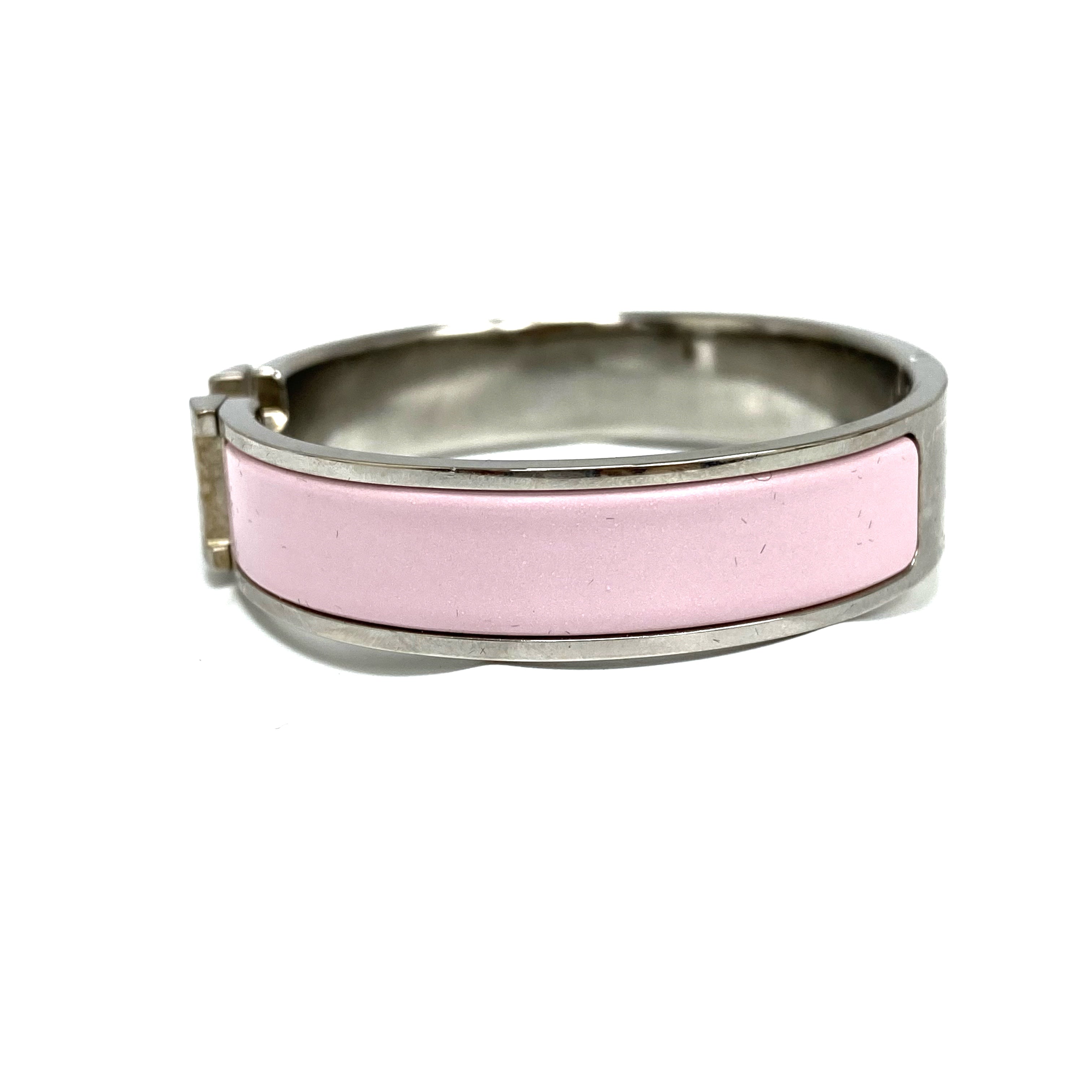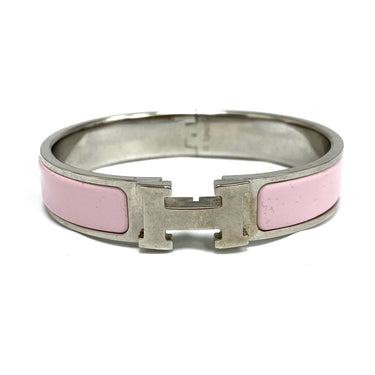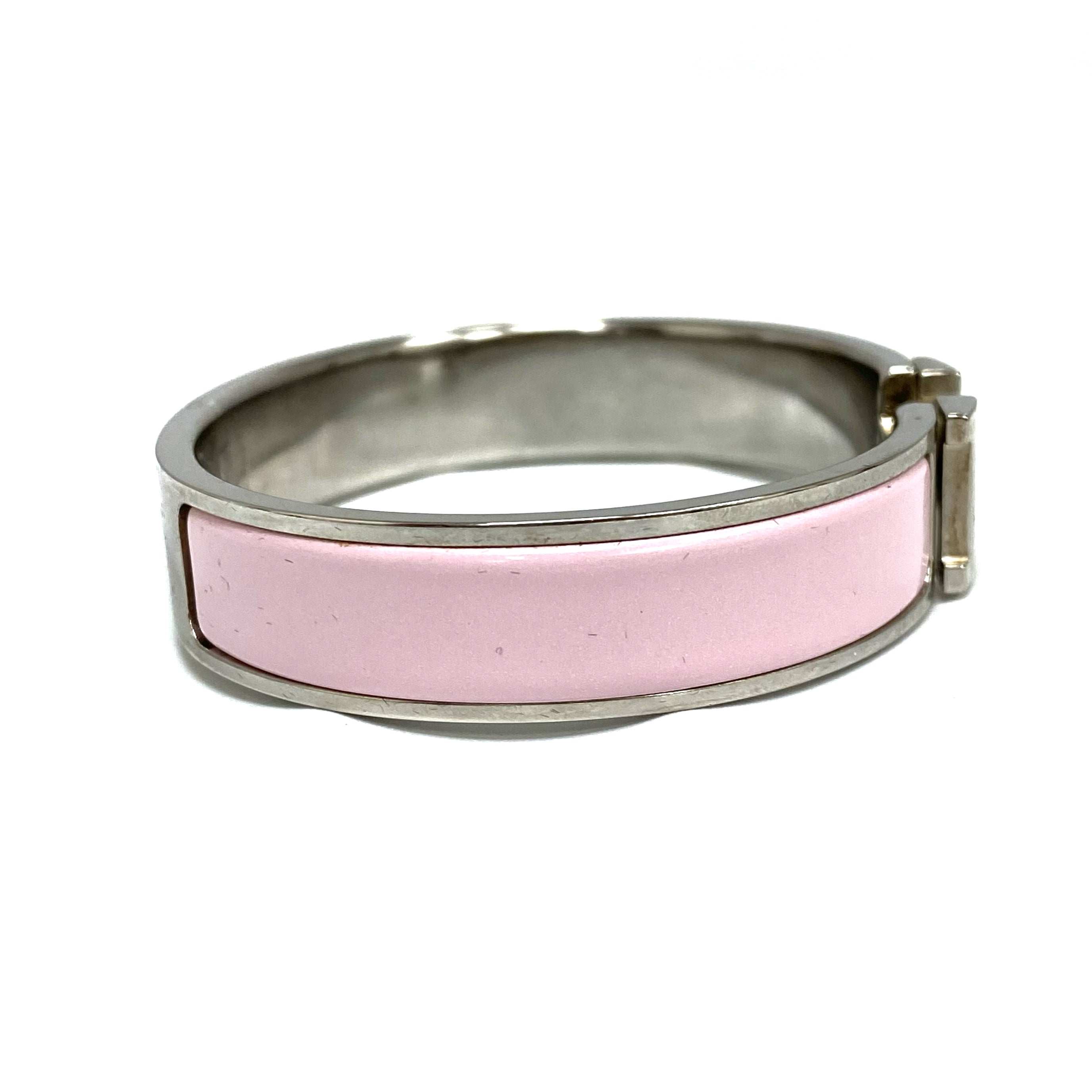 ☆Hermes愛馬仕 Clic H Palladium-plated Hardware Pink Bangle 鍍鈀金屬粉紅色手鐲 -267001782