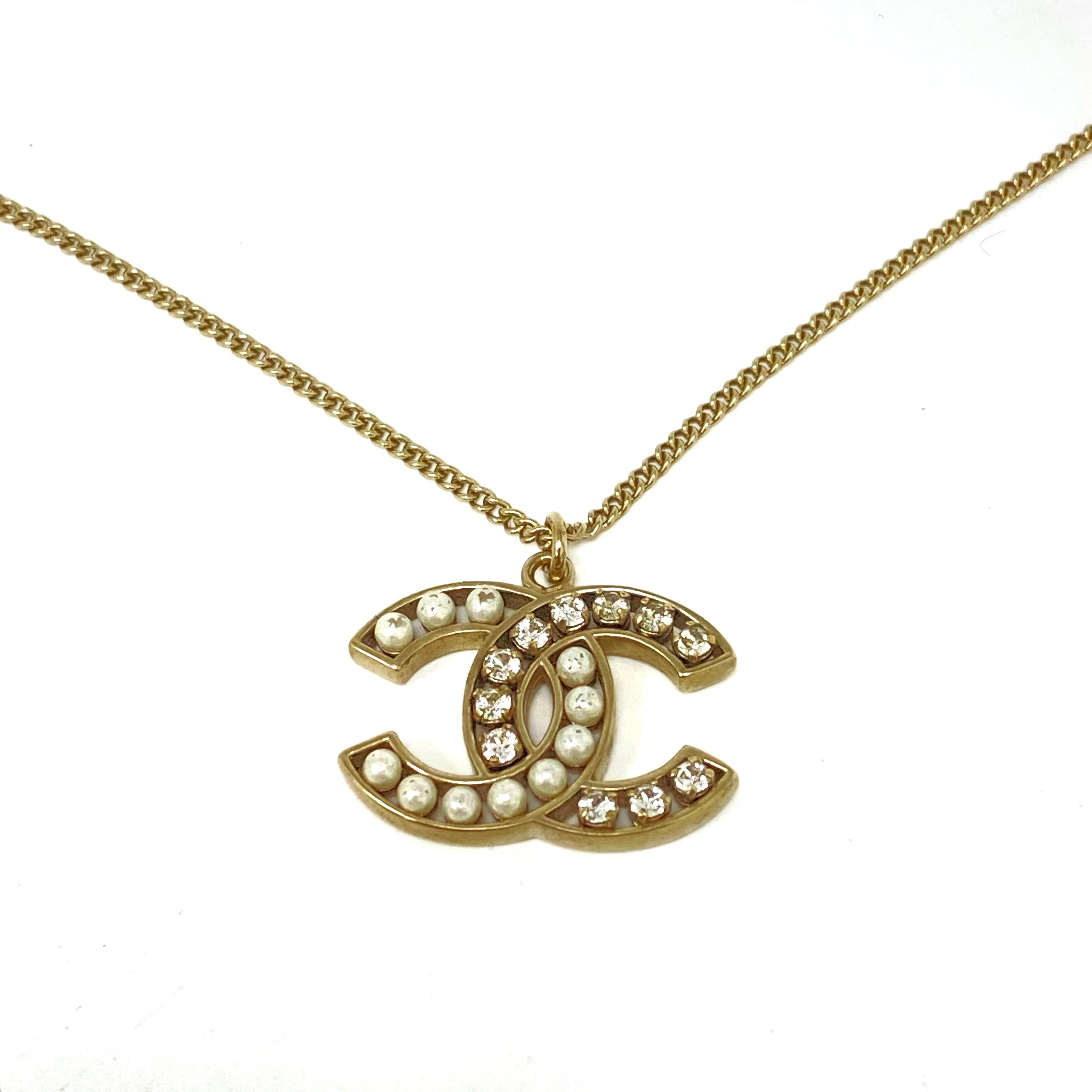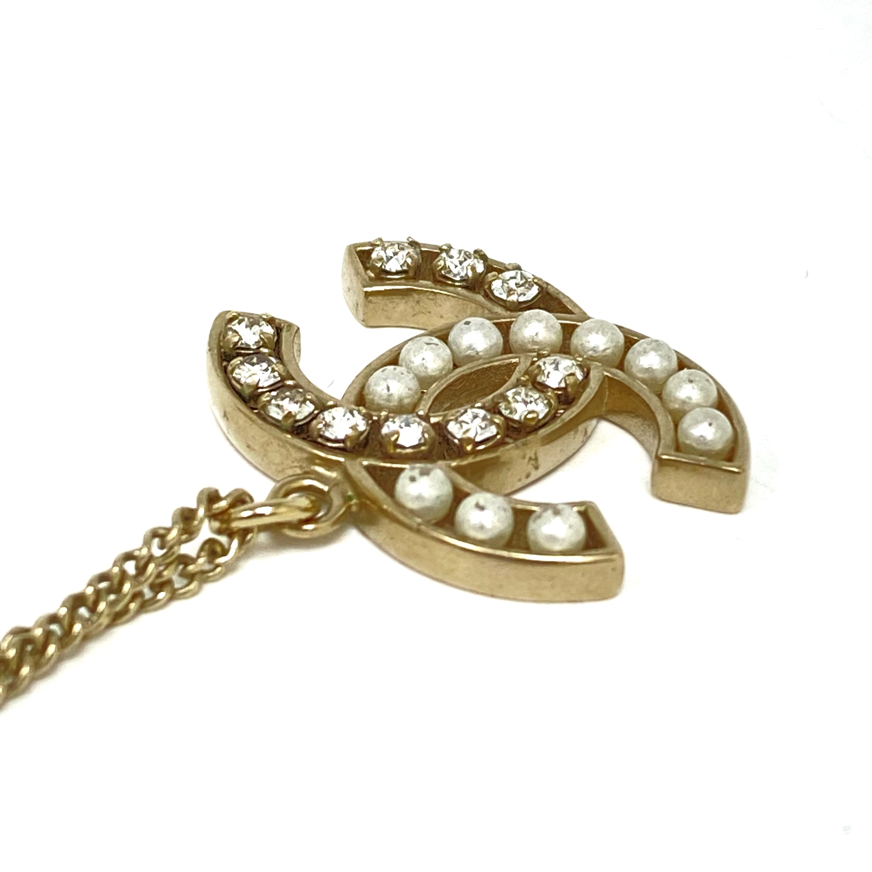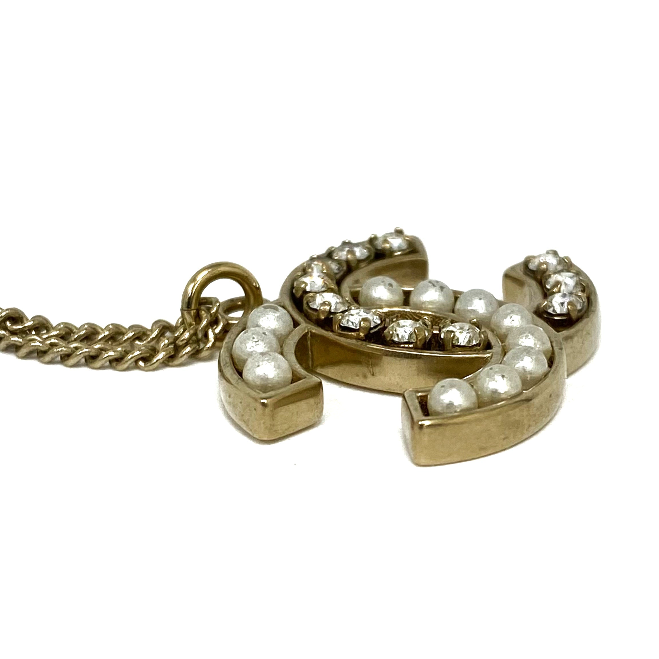 ☆ Chanel 香奈兒 Gold-tone Metal Rhinestone Faux Pearl Necklace B14B 金色金屬水鑽仿珍珠頸鏈 B14B - 257024441
