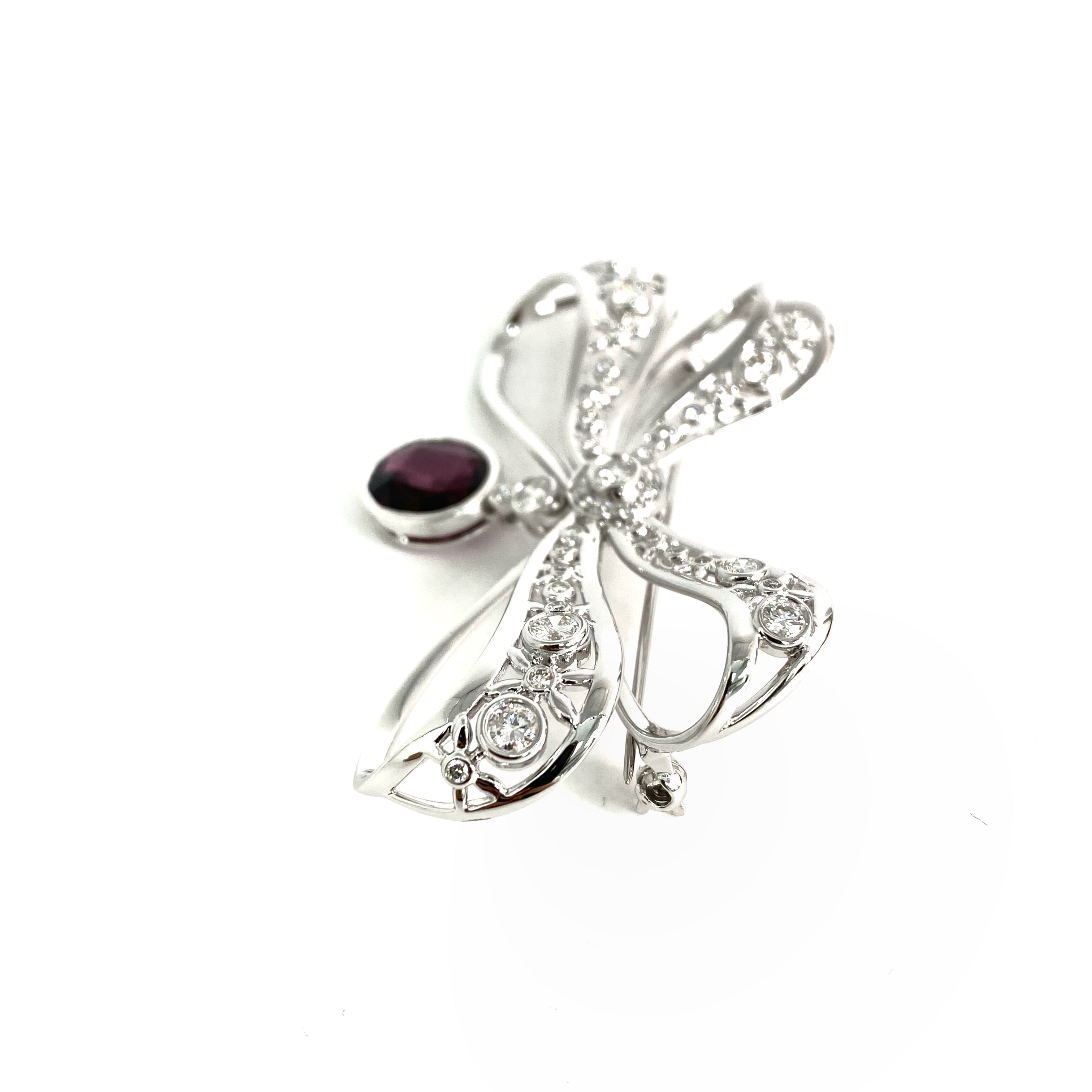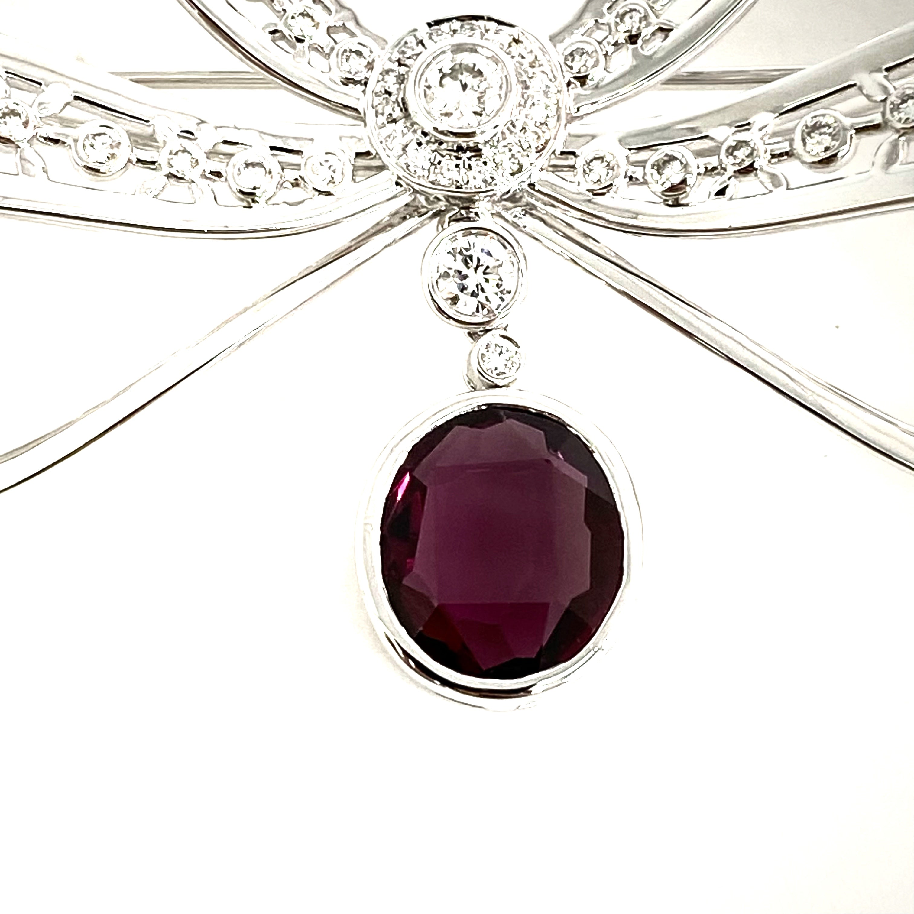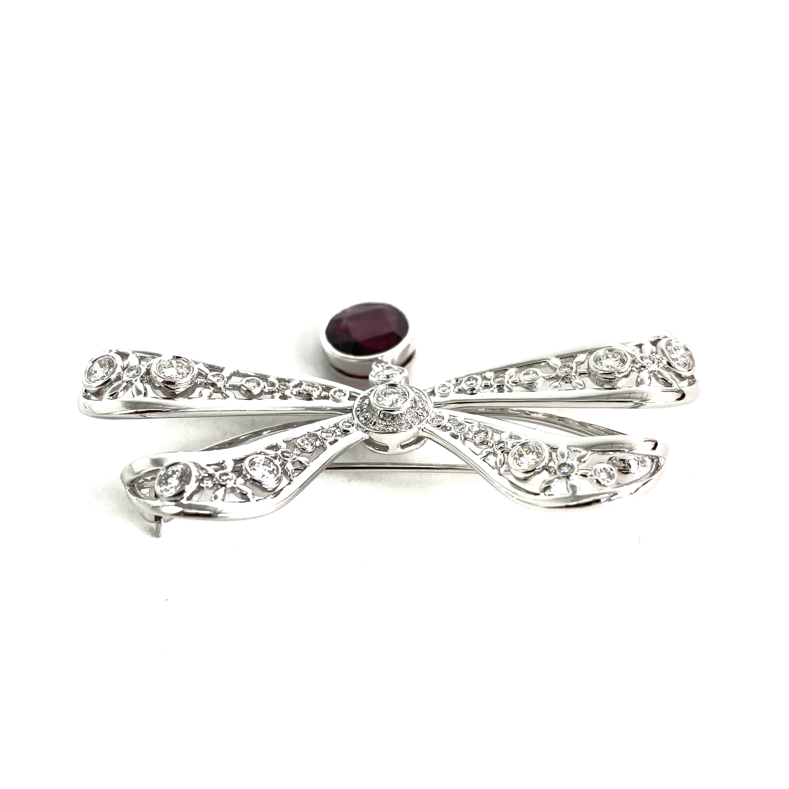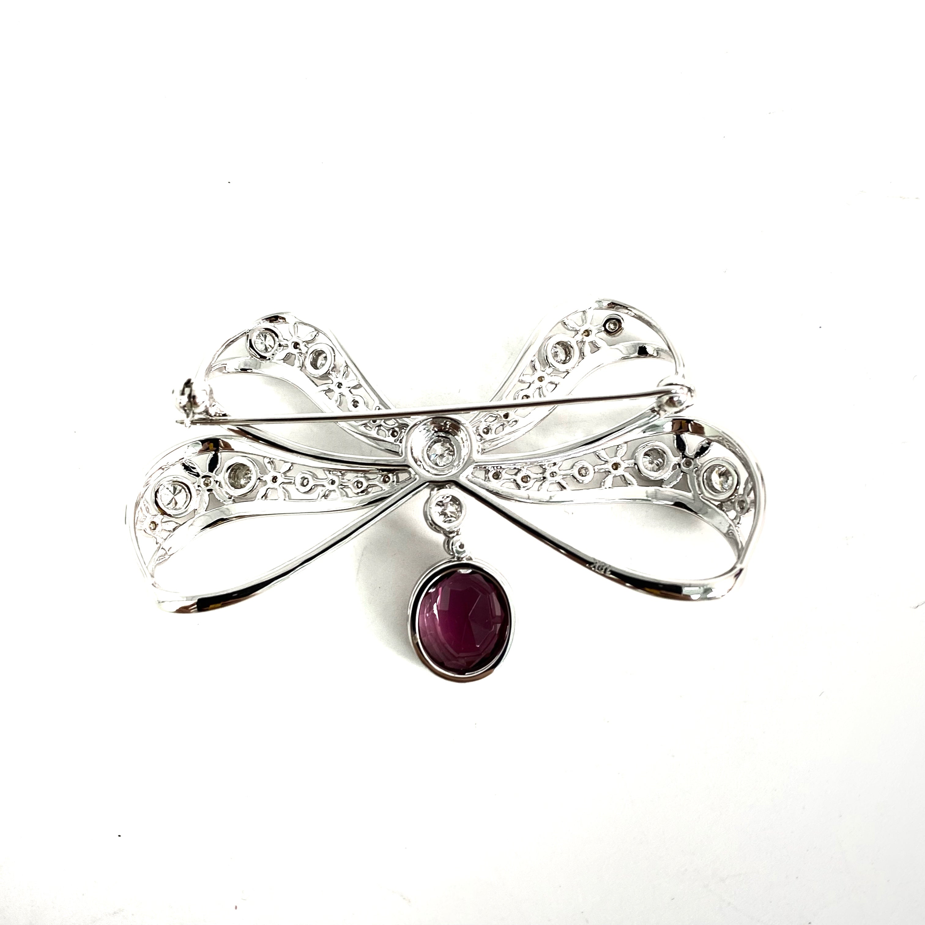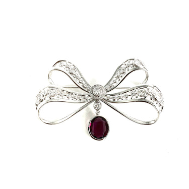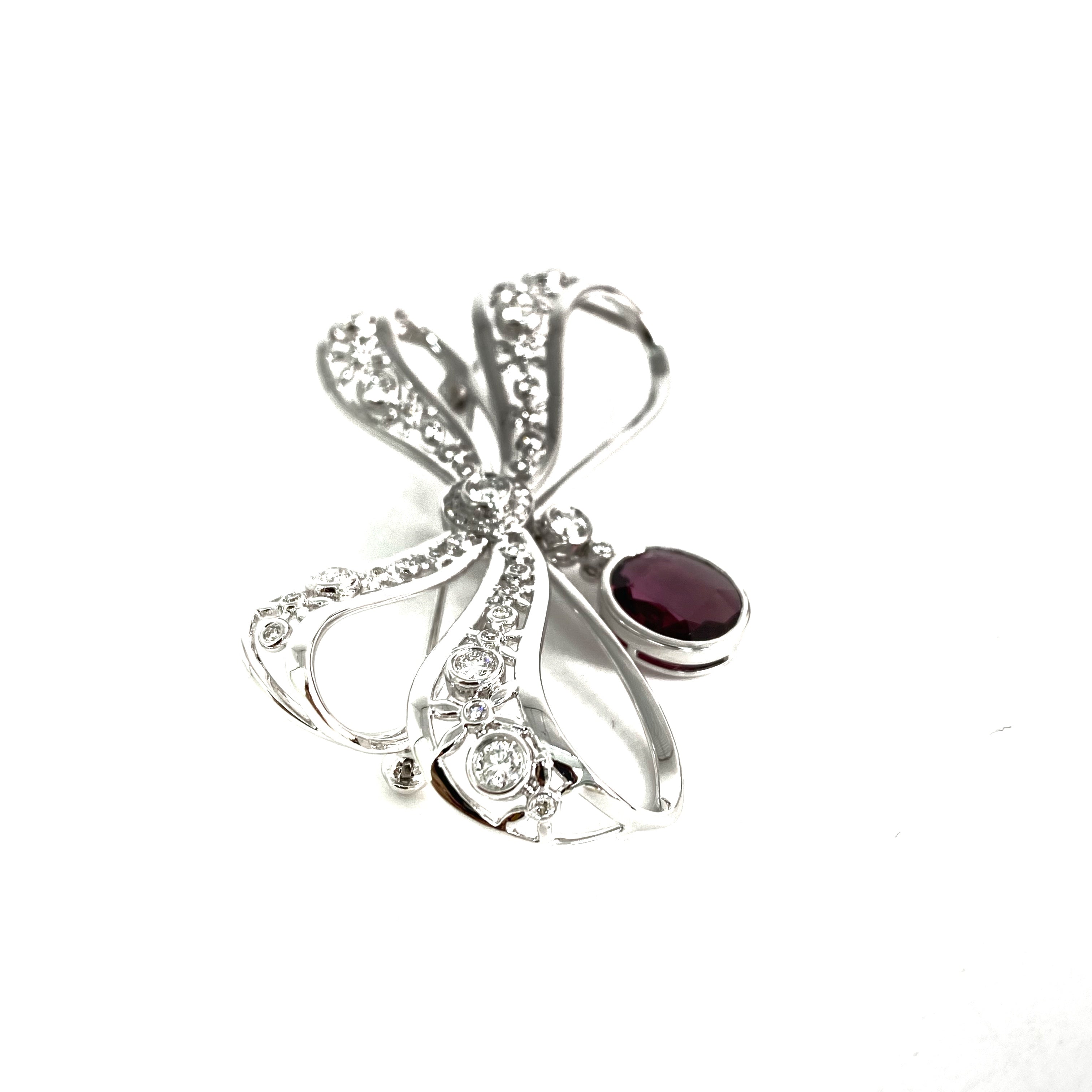 △ 18K White Gold Diamonds And Red Stone Ribbon Brooch 14.01g 18K白金鑽石和紅色色石胸針 - 257028566