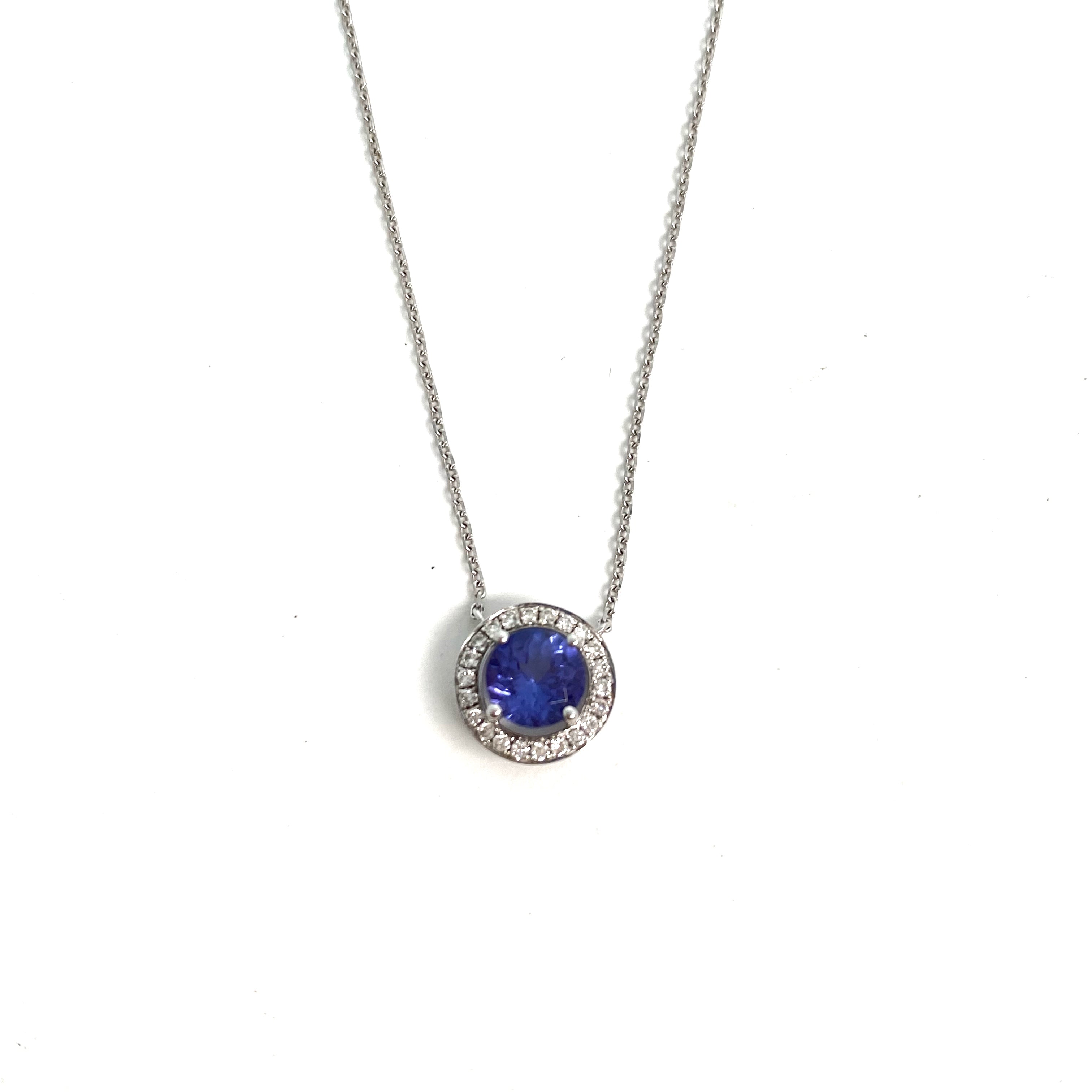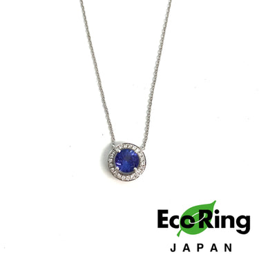 ☆ 18K White Gold Melee Diamond & Blue Stone Necklace 2.19g 18K白金碎鑽和藍色色石頸鏈 2.19g - 257021943