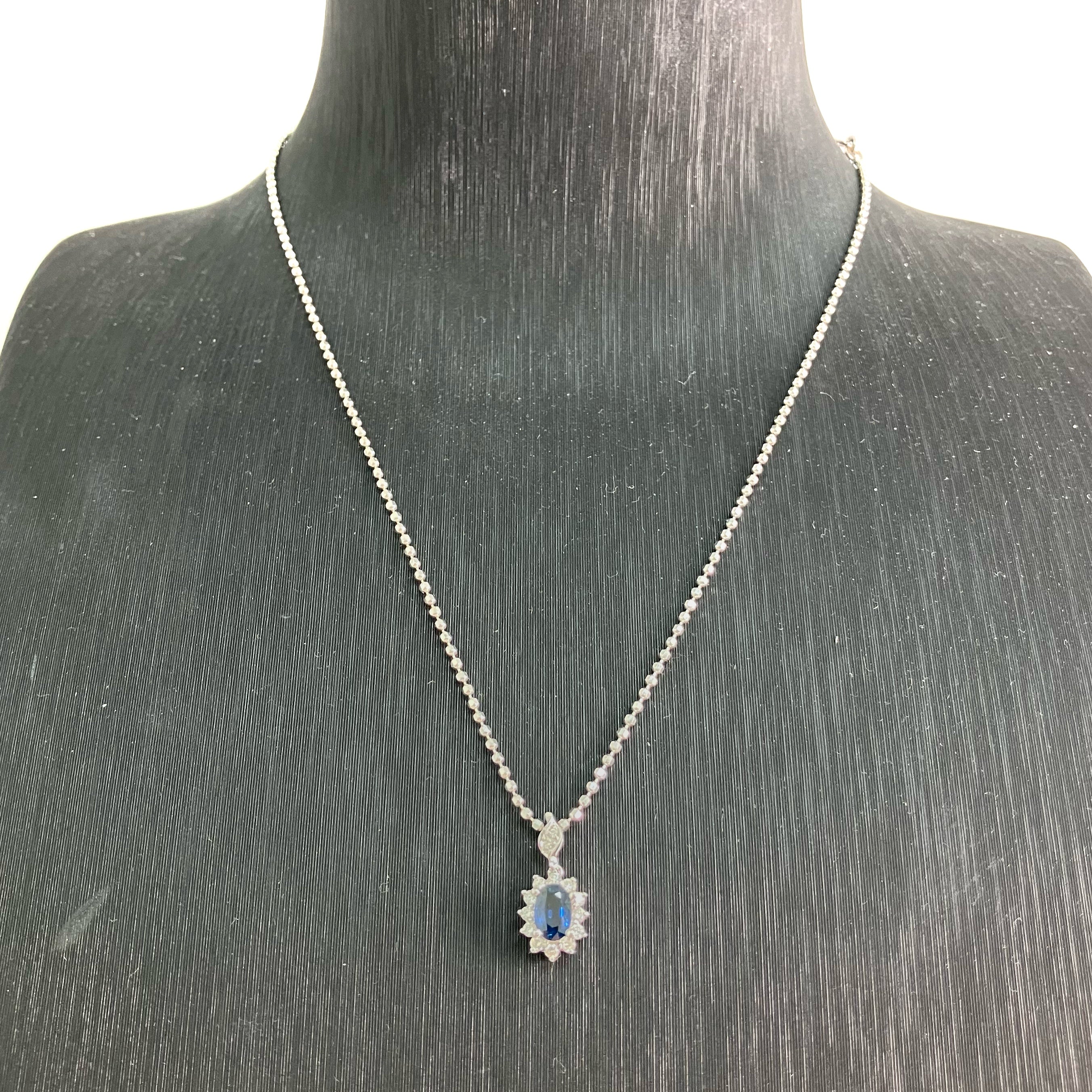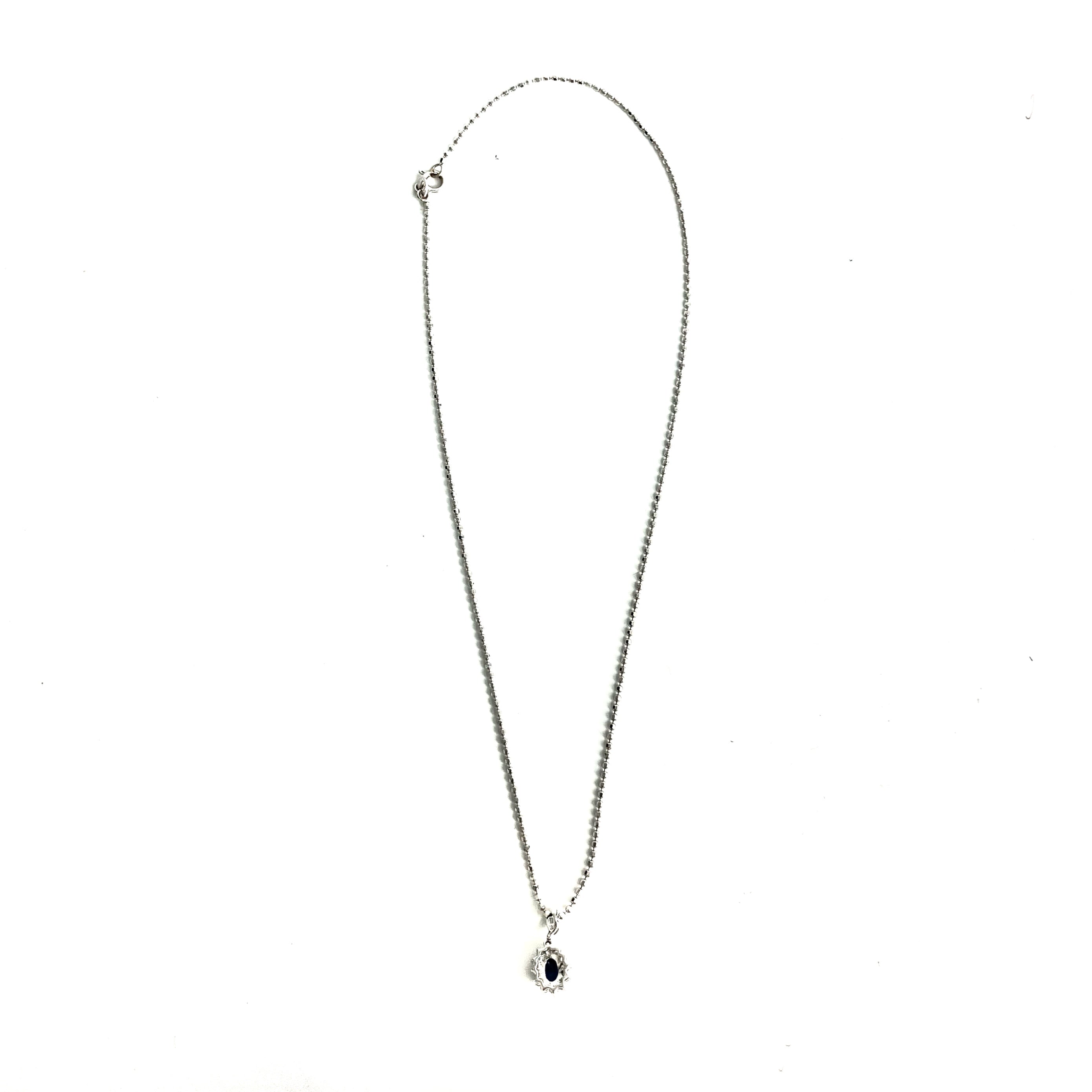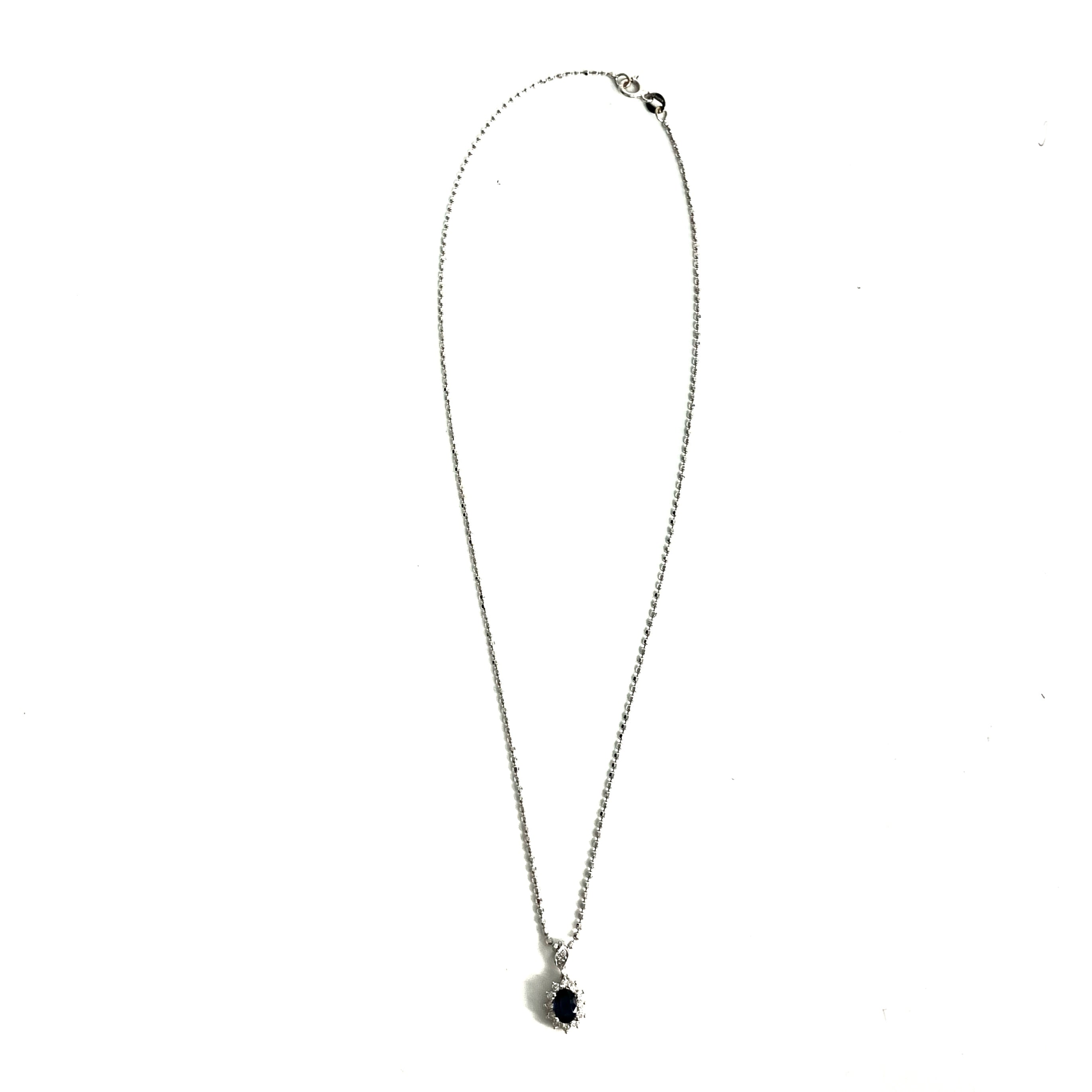 ☆18K White Gold Diamond Blue Stone Necklace 4.44g 18K白金鑽石藍色色石頸鍊4.44g -257023139