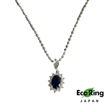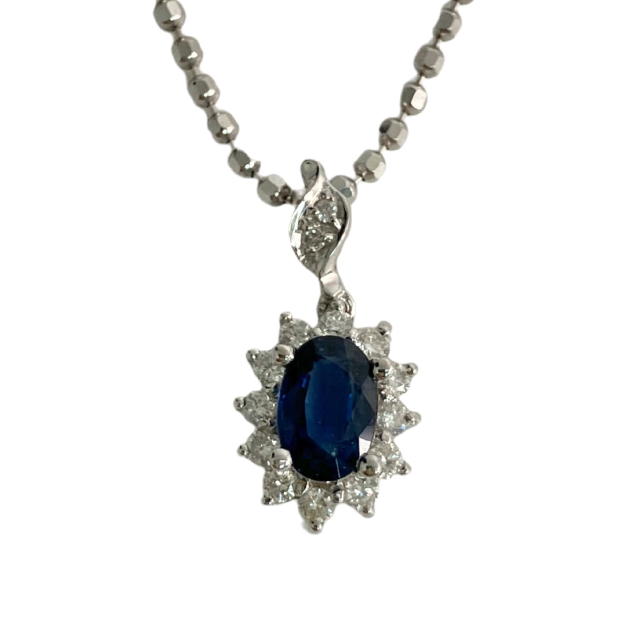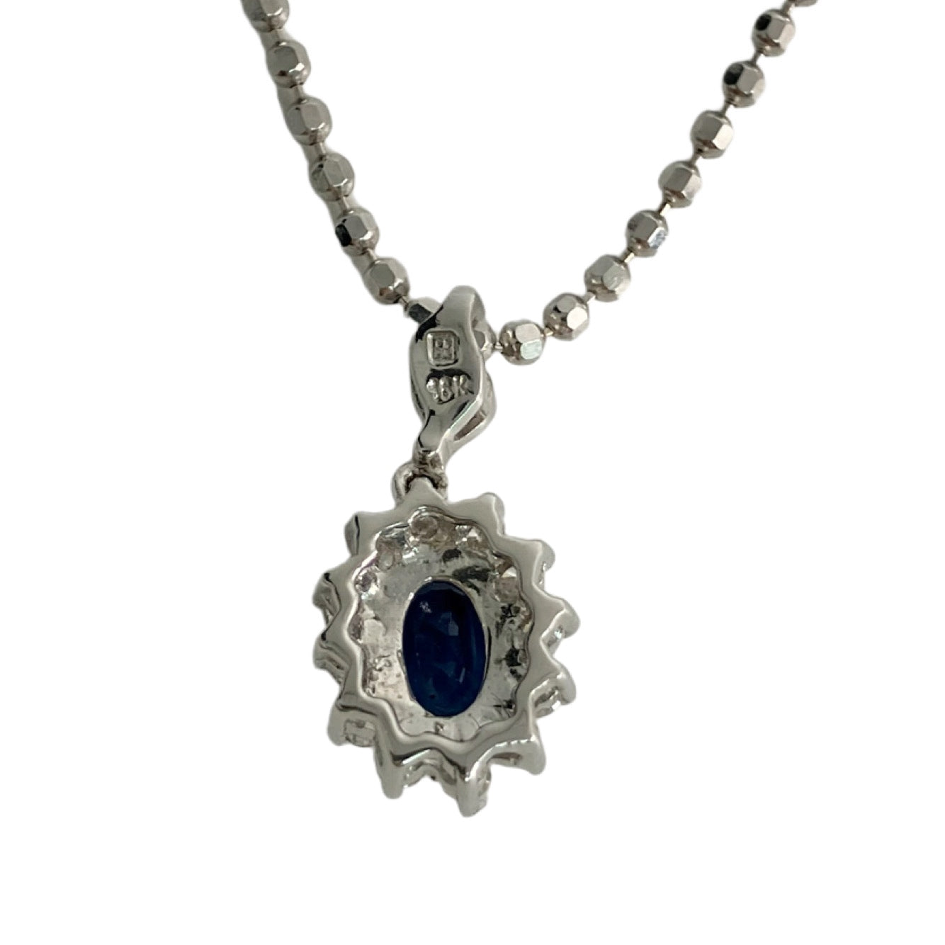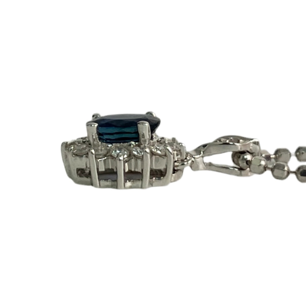 ☆18K White Gold Diamond Blue Stone Necklace 4.44g 18K白金鑽石藍色色石頸鍊4.44g -257023139