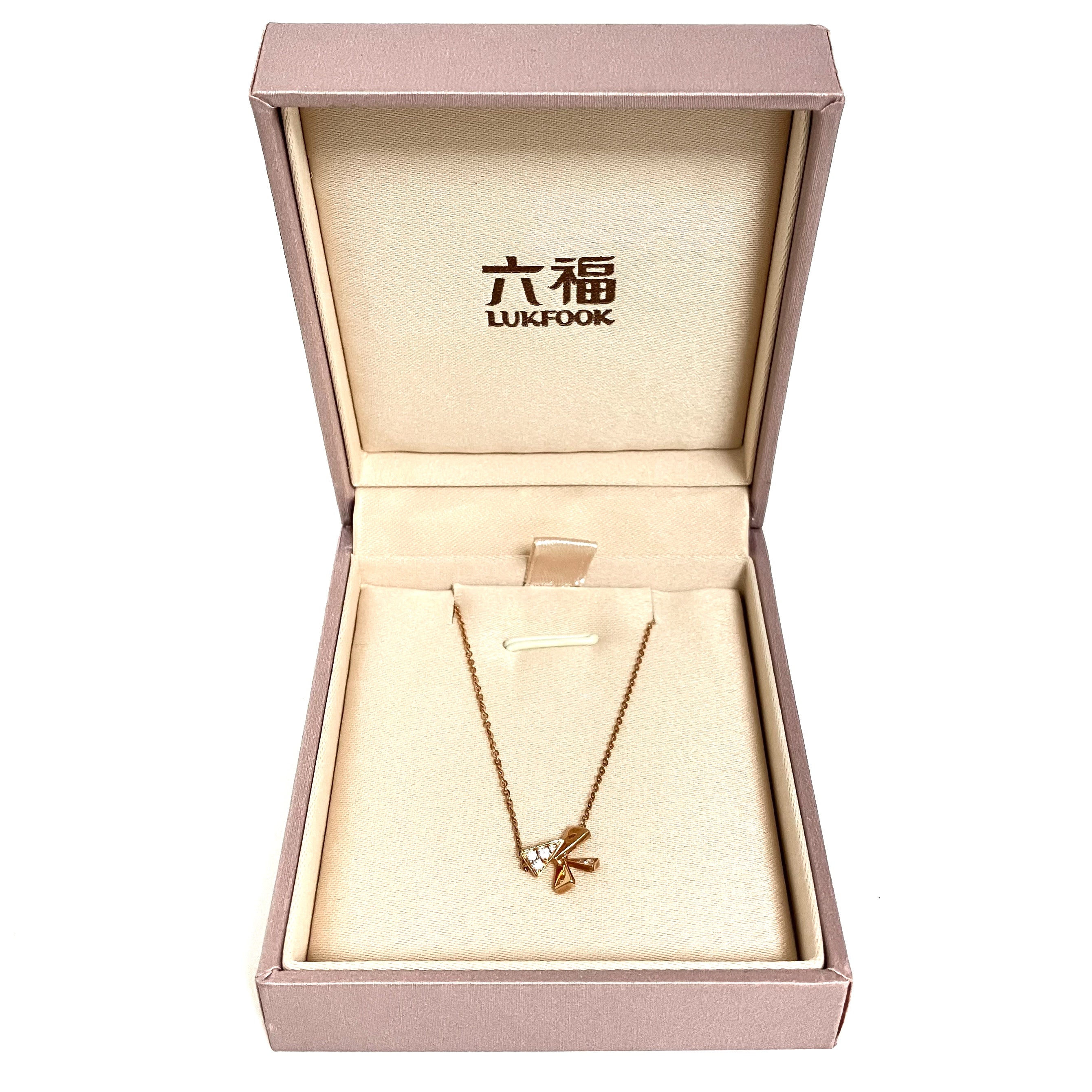 ☆ Lukfook Jewellery 六福珠寶 18K Yellow Gold Diamond Ribbon Necklace 1.62g 18K黃金鑽石蝴蝶結頸鏈 - 267002713