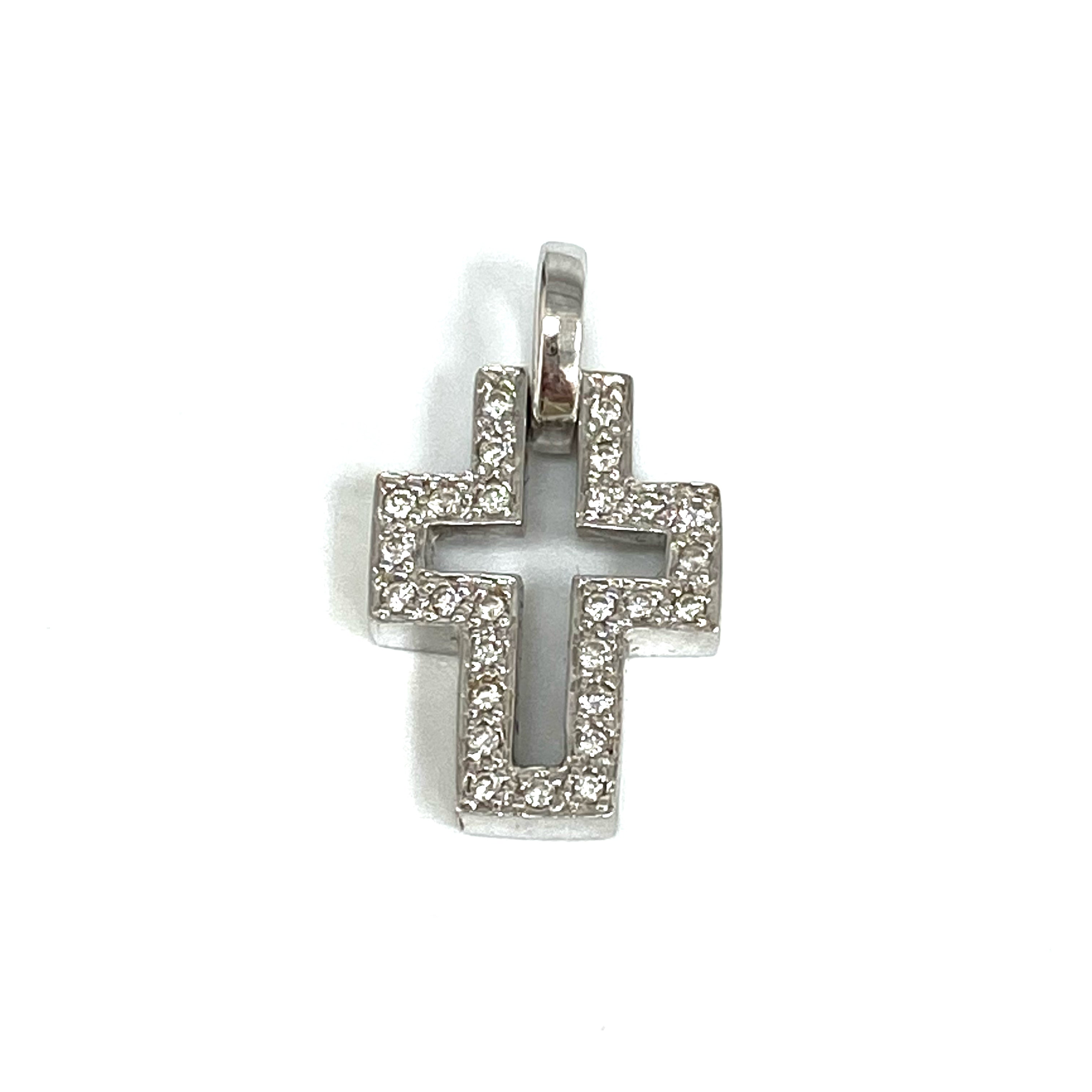 ☆ 18K White Gold Melee Diamond Cross Pendant 2.19g 18K白金碎鑽十字架吊墜 2.19g - 257028802