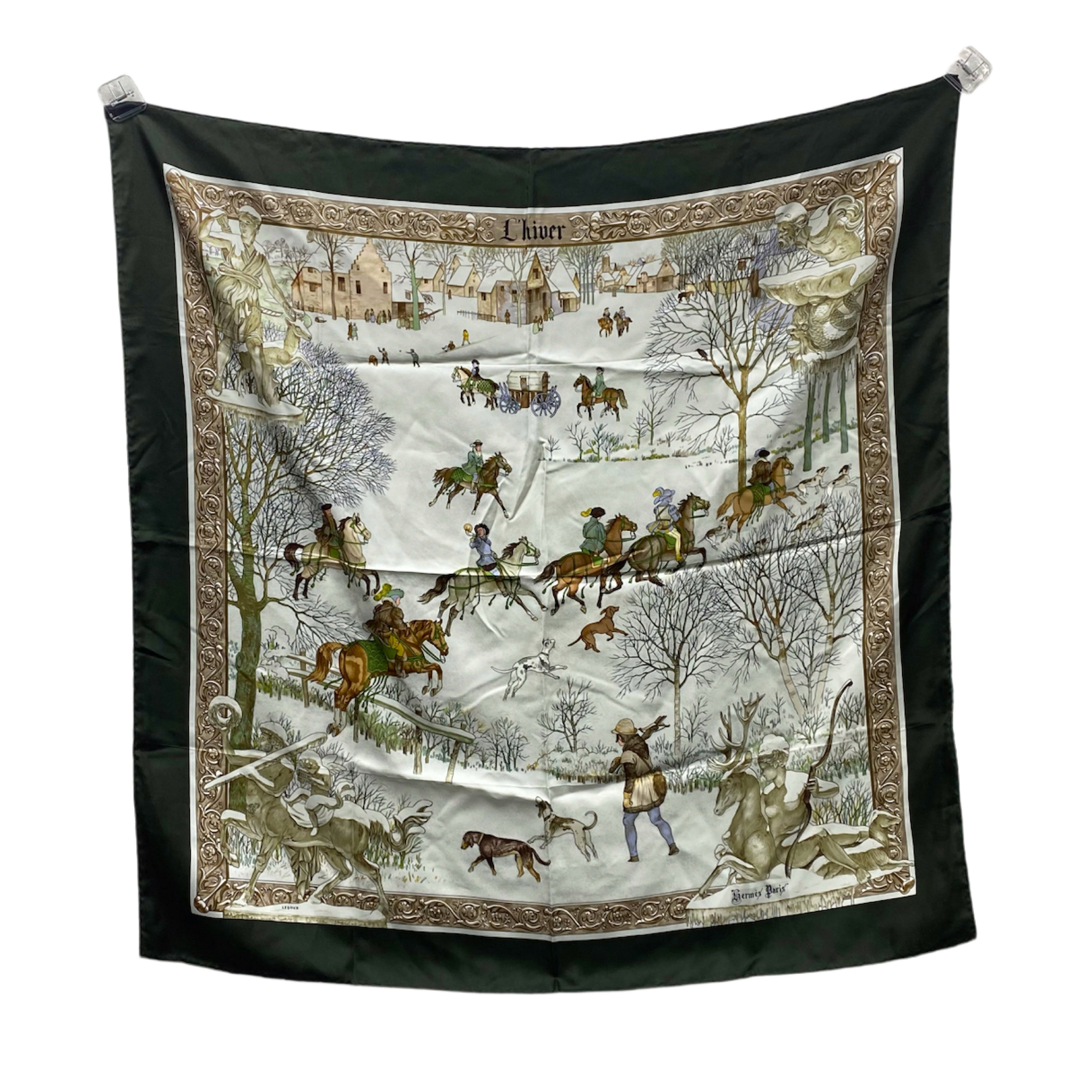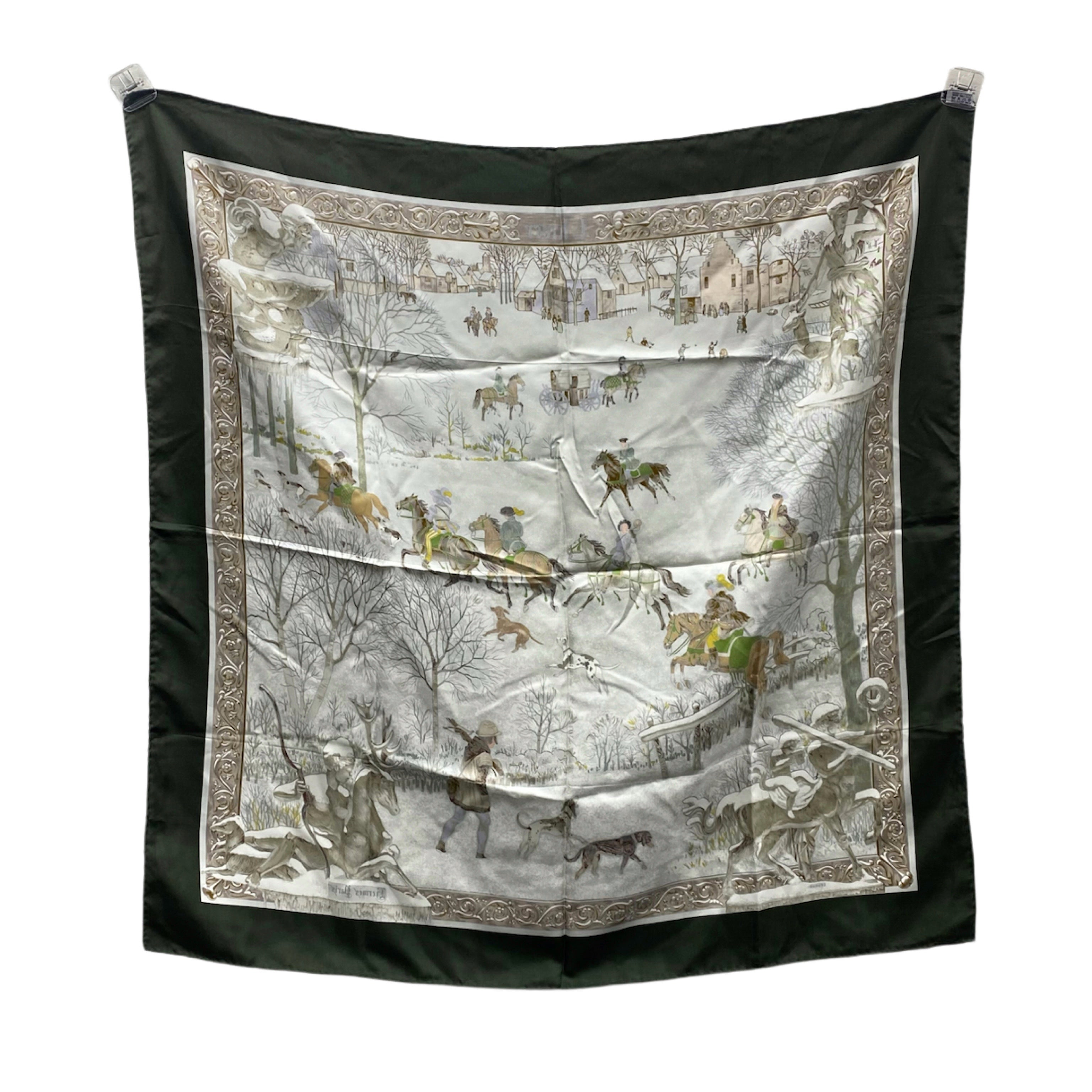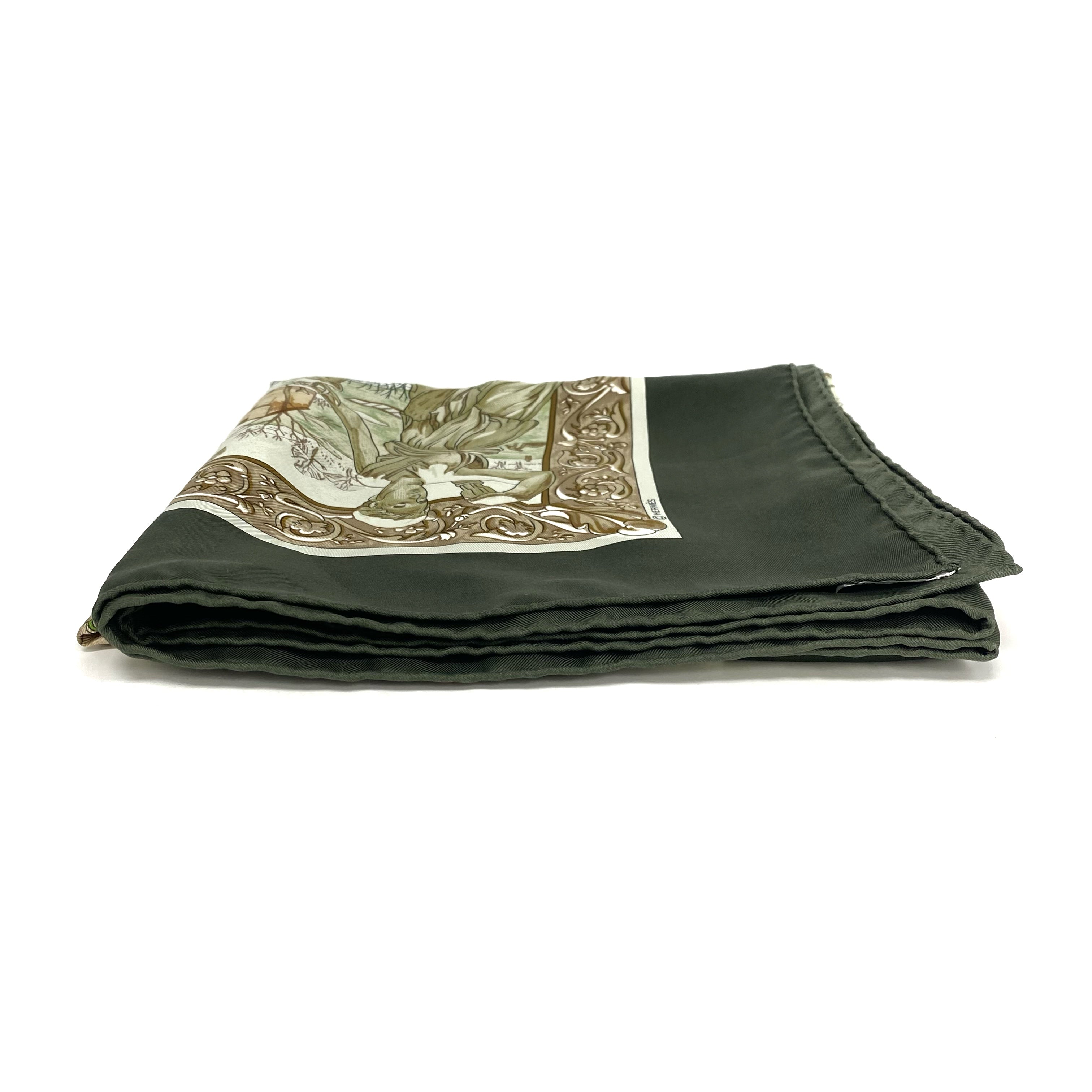 ☆Hermes愛馬仕 Green 100% Silk Scarf 綠色100%絲質絲巾 -257027625