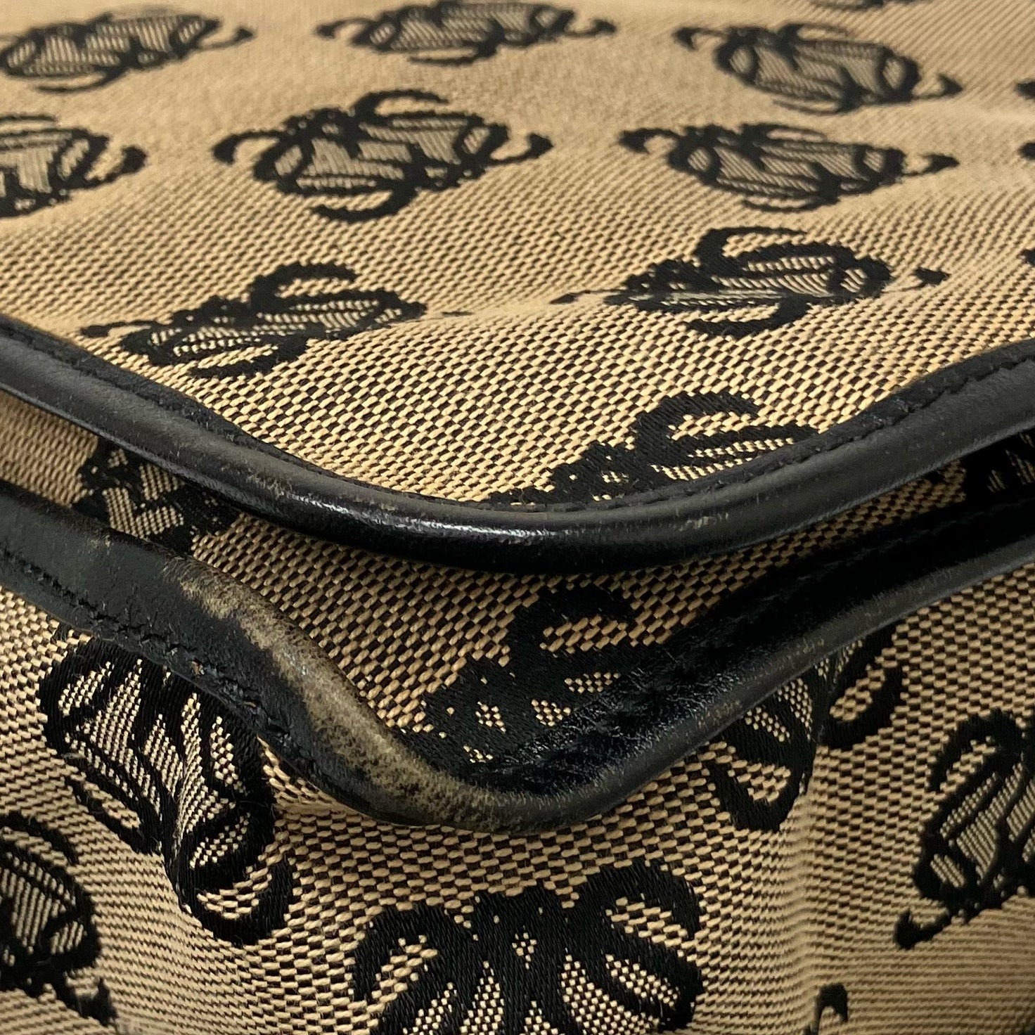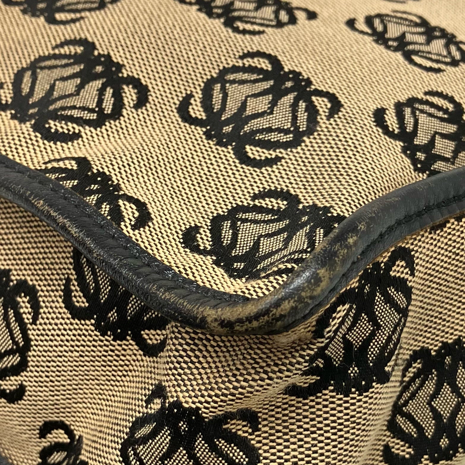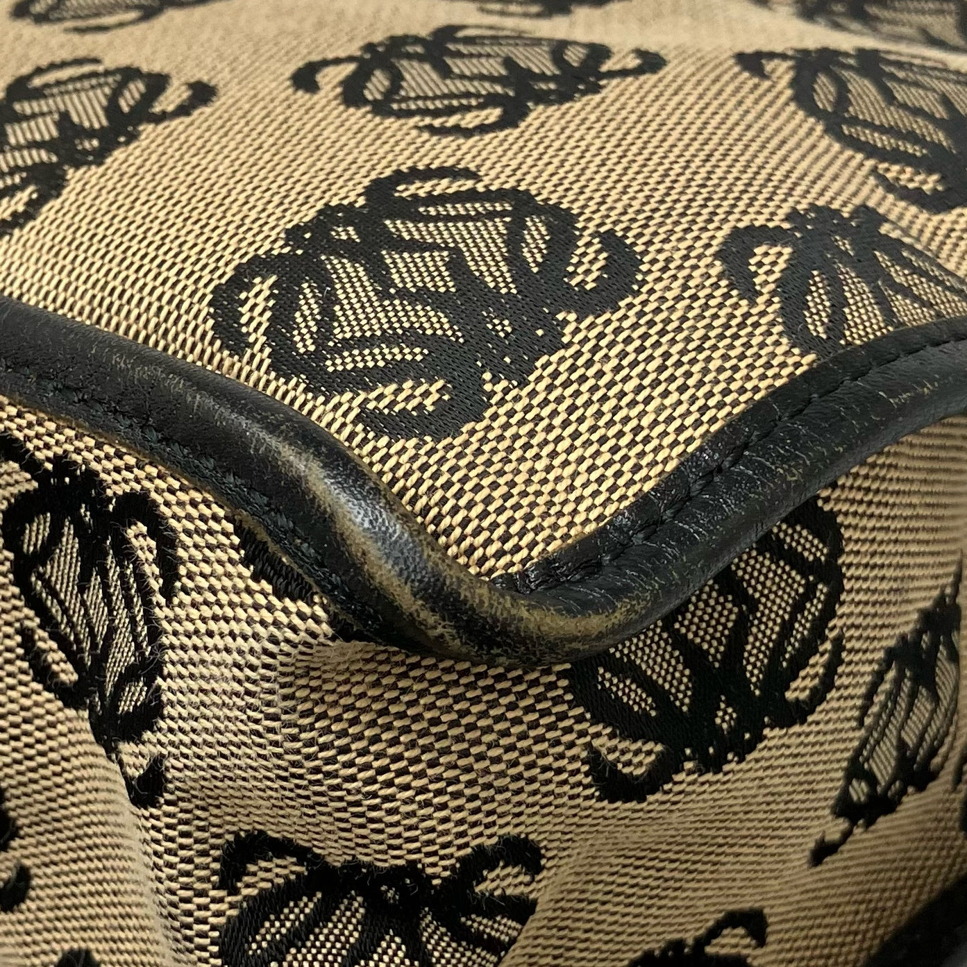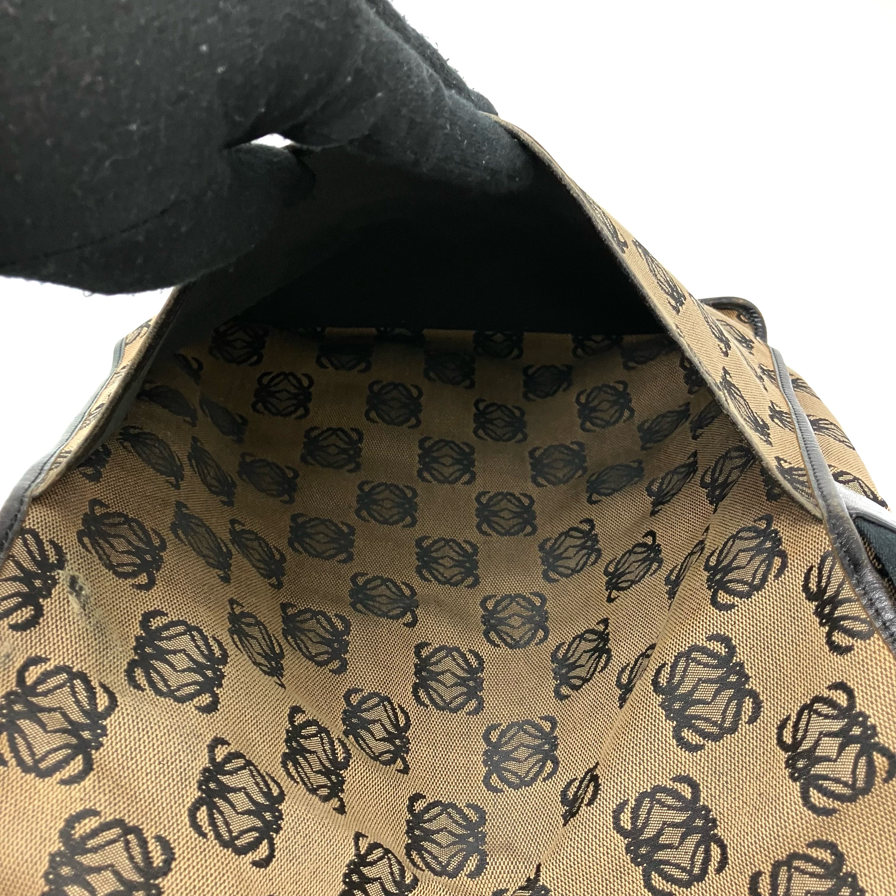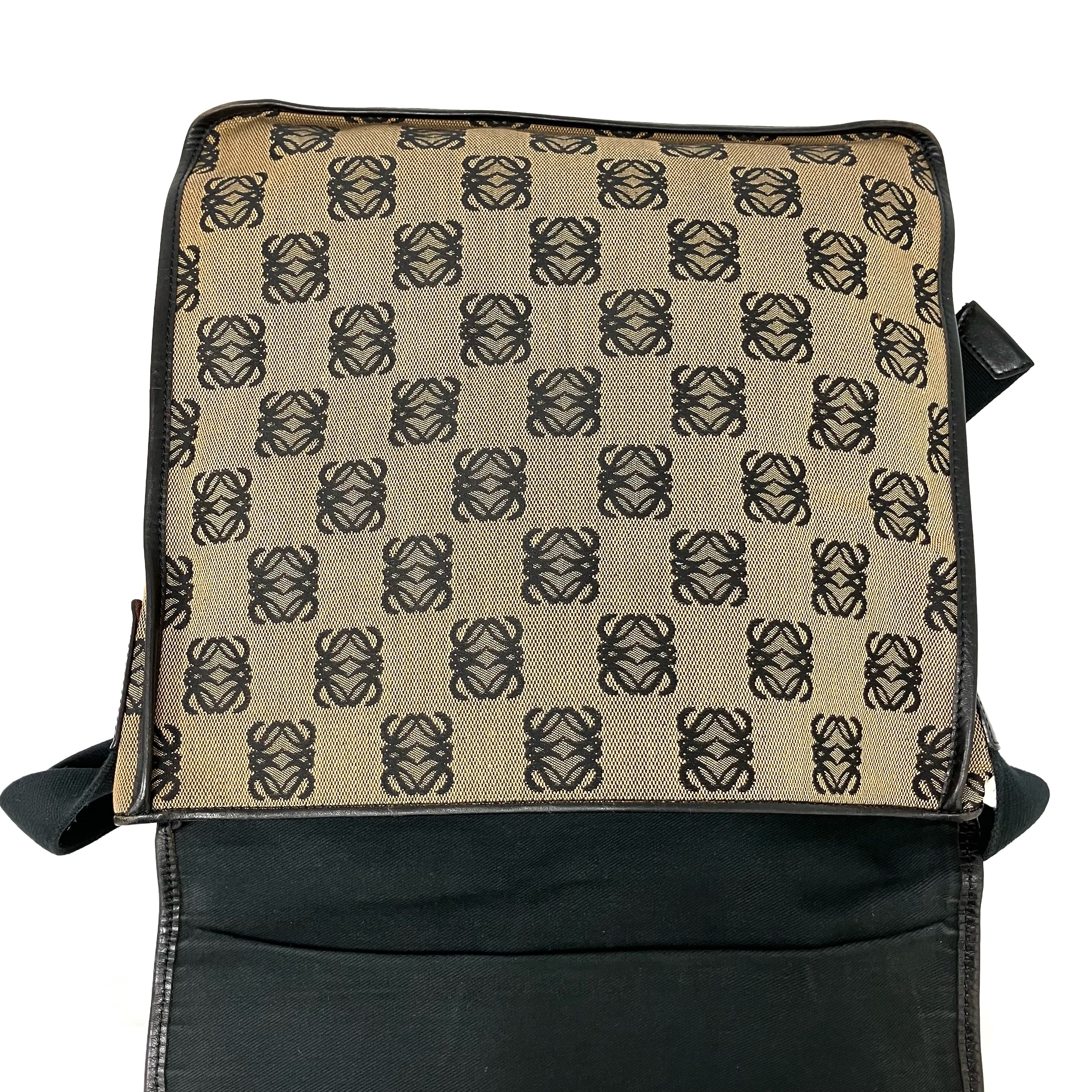 ☆ Loewe 羅意威 Black And Beige Canvas Vintage Crossbody Bag 黑色和淺褐色帆布斜背袋 - 267003443