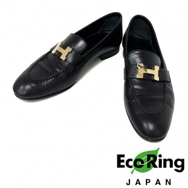 ☆Hermes愛馬仕 Black Lambskin Paris Loafers 36 Size 黑色小羊皮樂福鞋 36 碼 -257013353