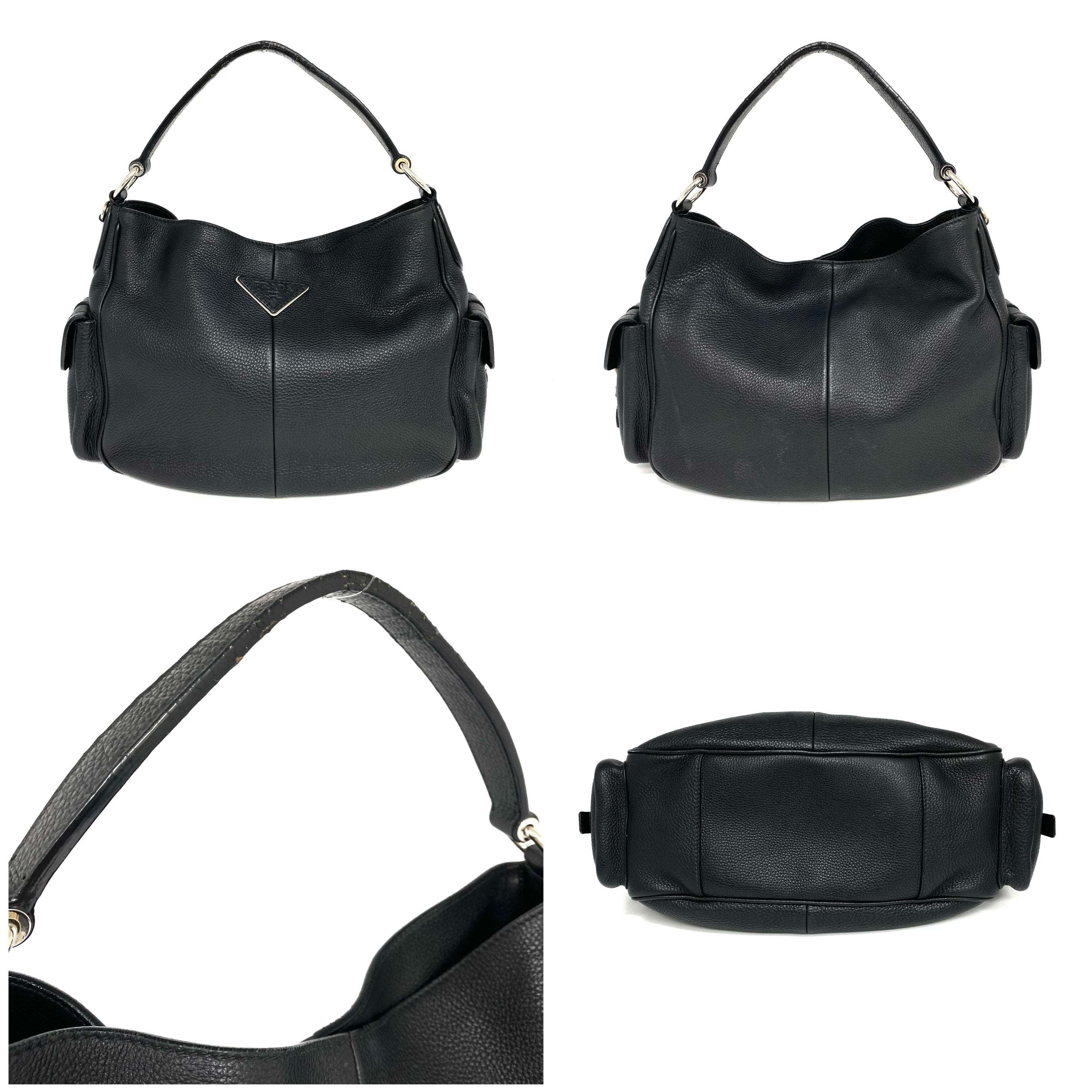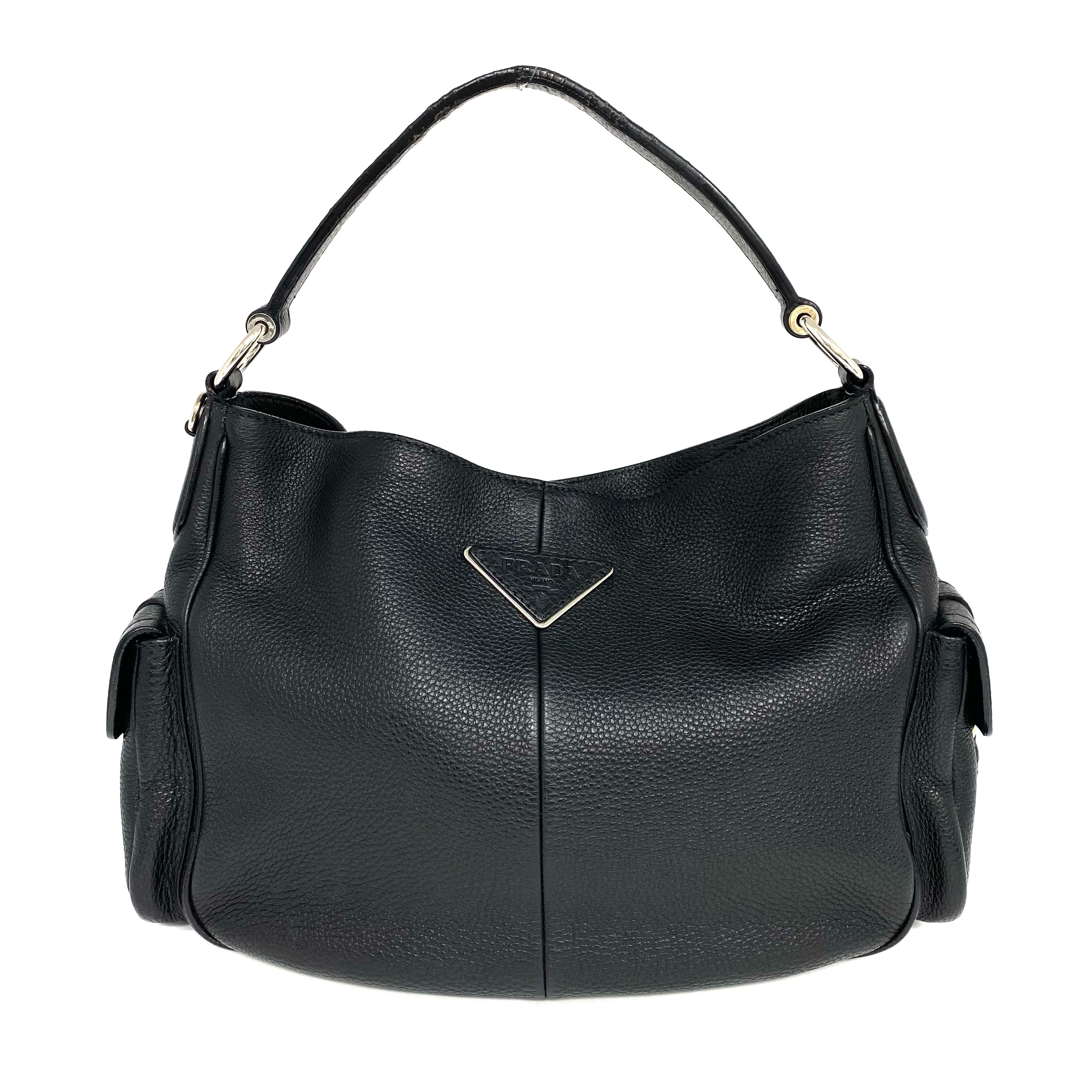 ☆ Prada 普拉達 Black Calfskin Shoulder Bag 黑色小牛皮肩背袋 - 257024112