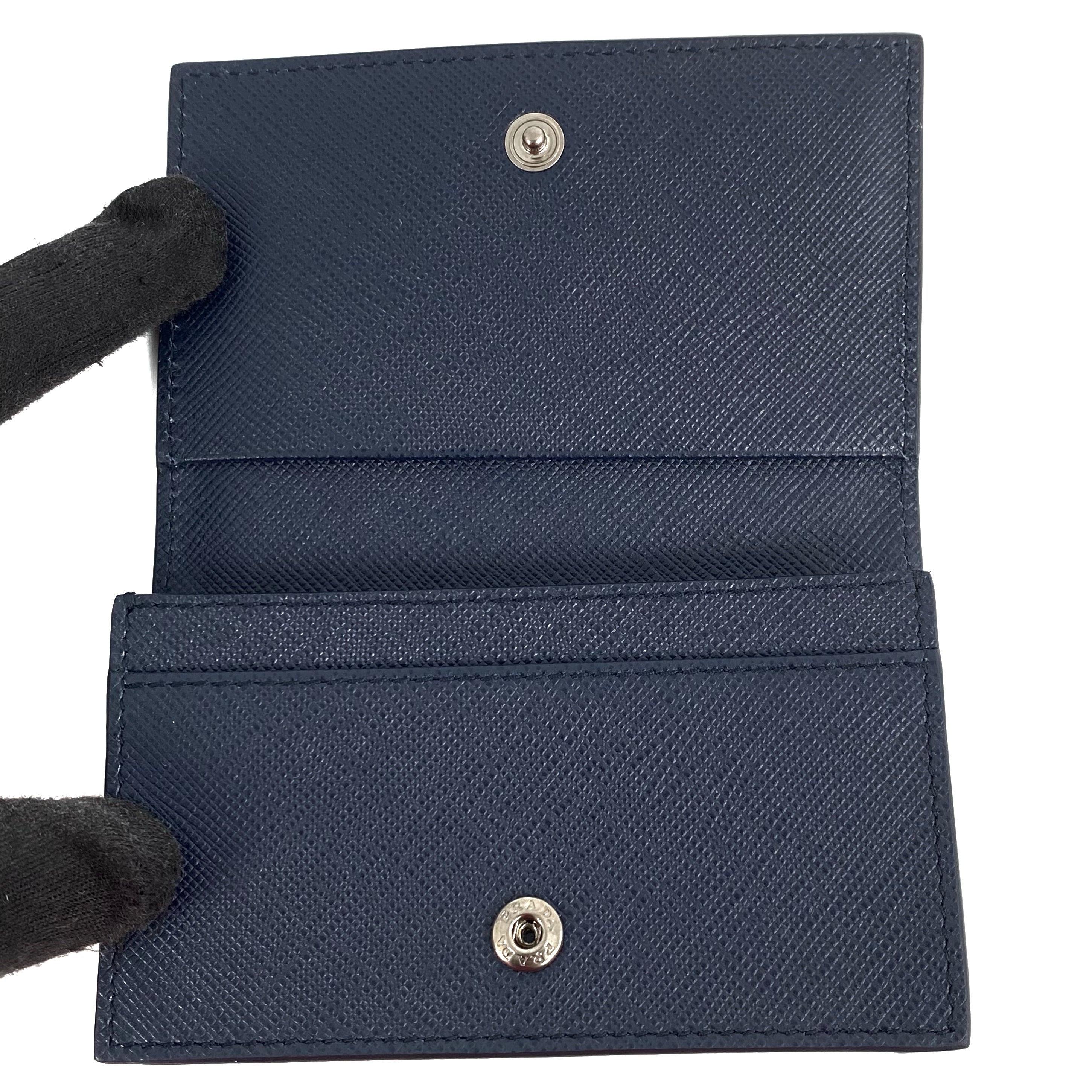 ☆ Prada 普拉達 Navy Saffiano Leather Card Case 深藍色十字壓紋牛皮卡包 - 267006738