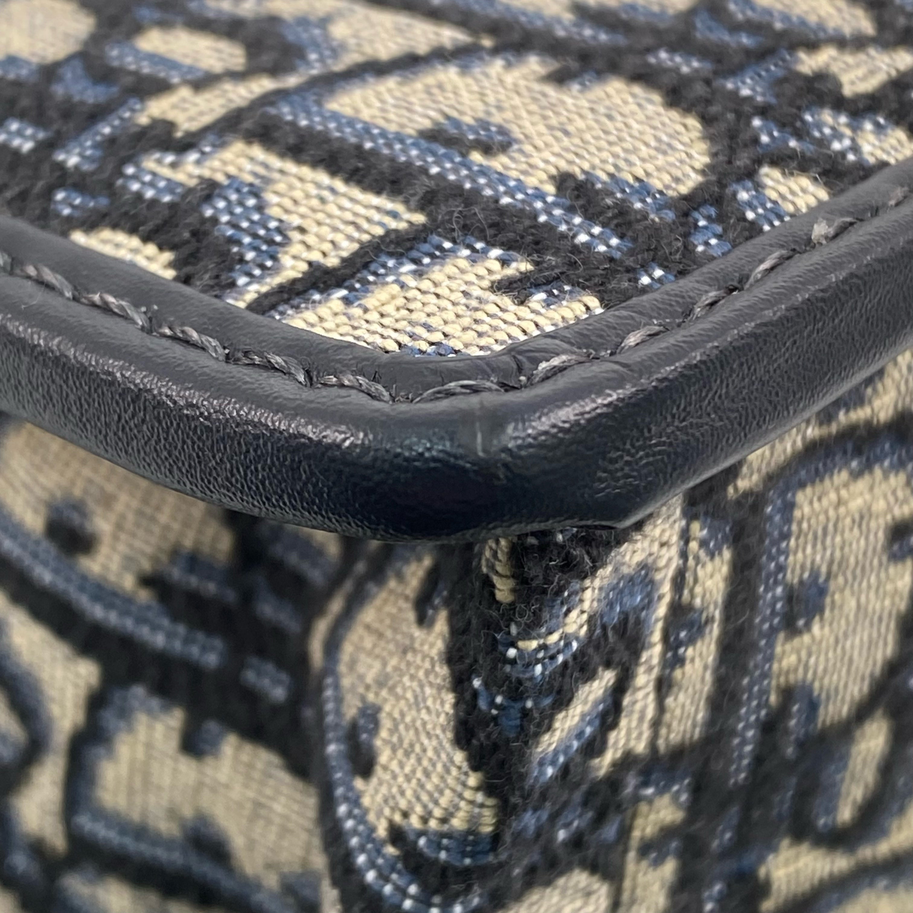 △ Dior 迪奧 Navy And Beige Canvas 30 Montaigne Oblique Shoulder Bag 深藍色和淺褐色帆布鎖鏈肩背袋 - 267003281