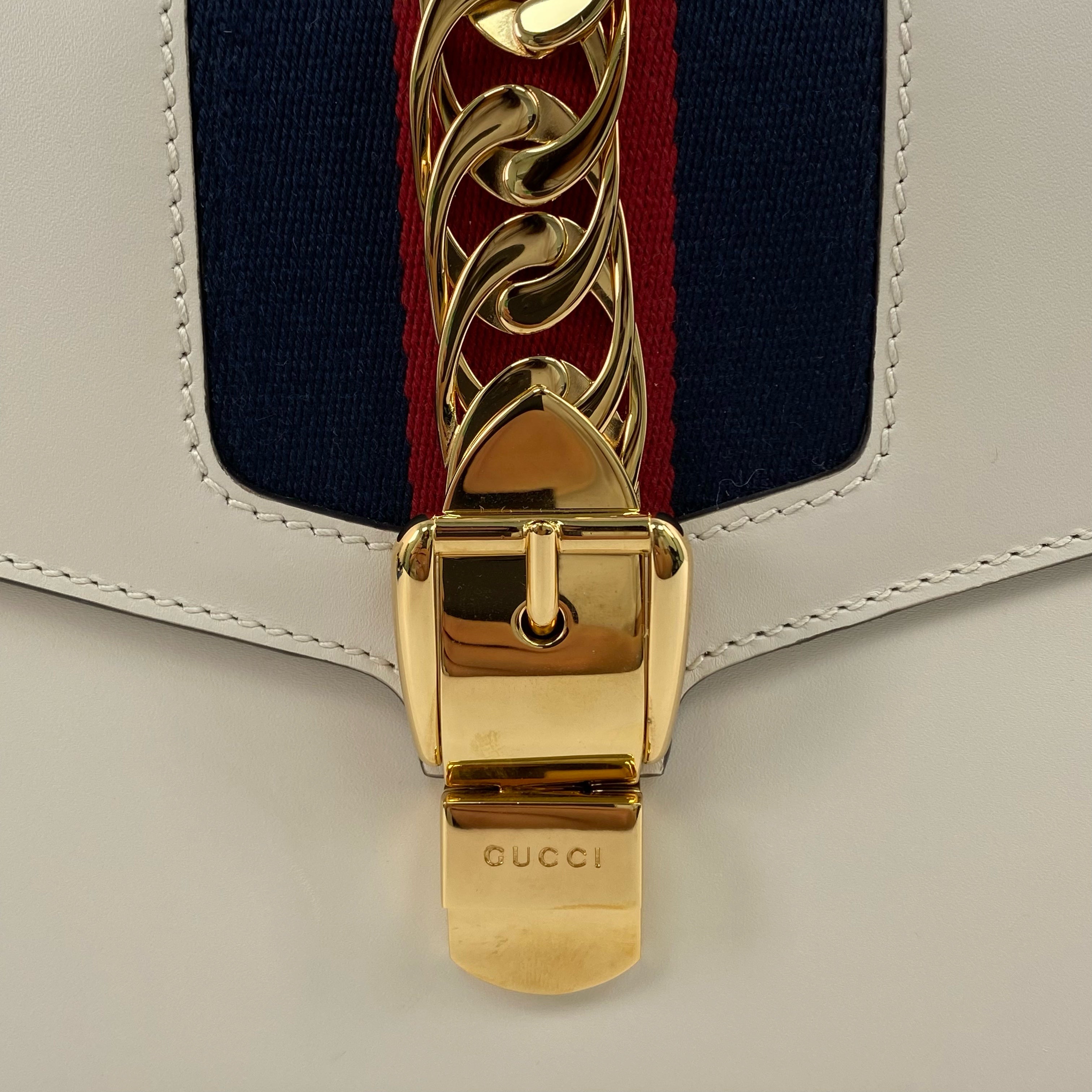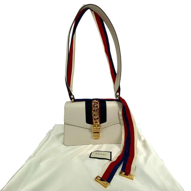 ☆Gucci古馳 Sylvie Beige Calfskin Shoulder Bag 421882 米色小牛皮肩背袋 421882 -267005328