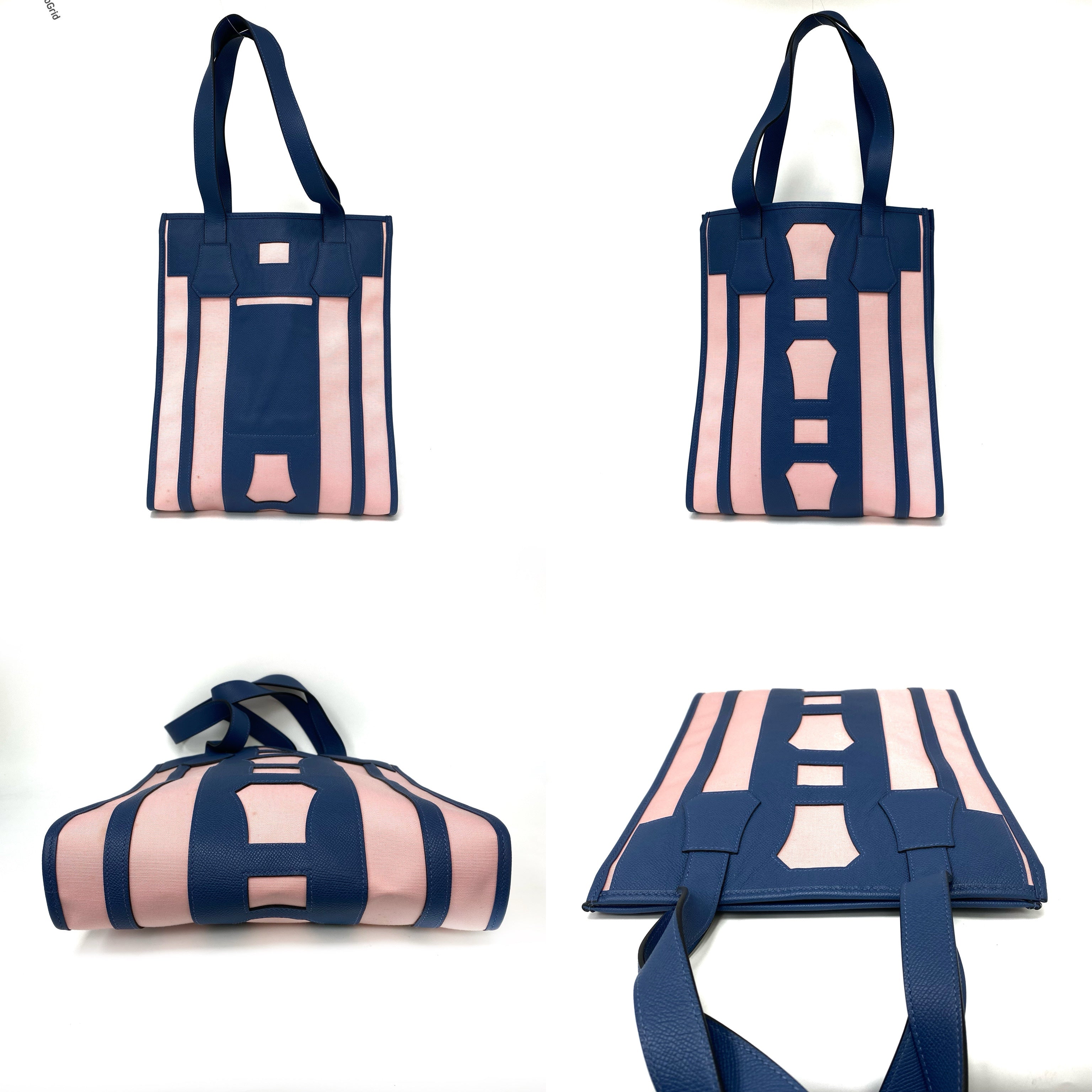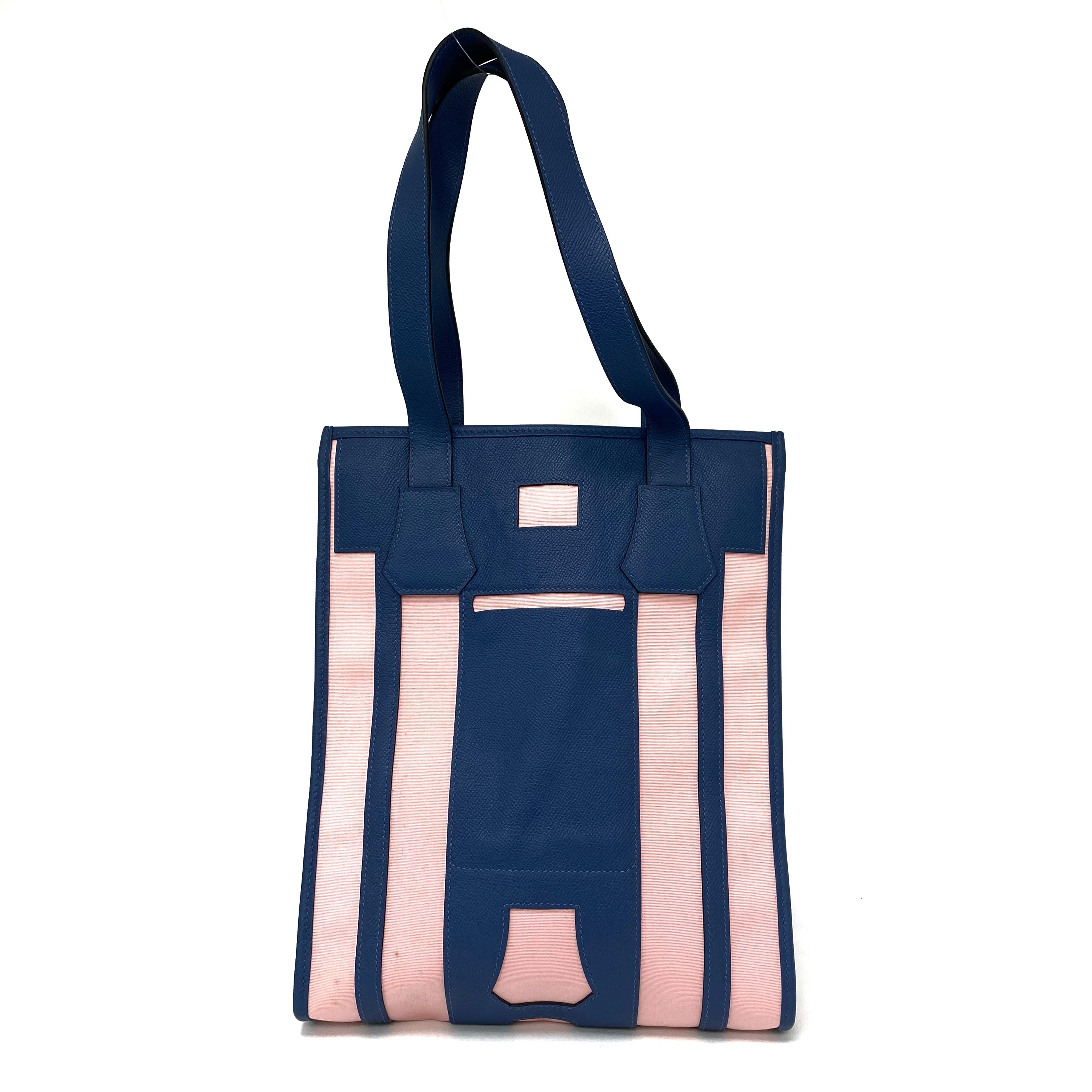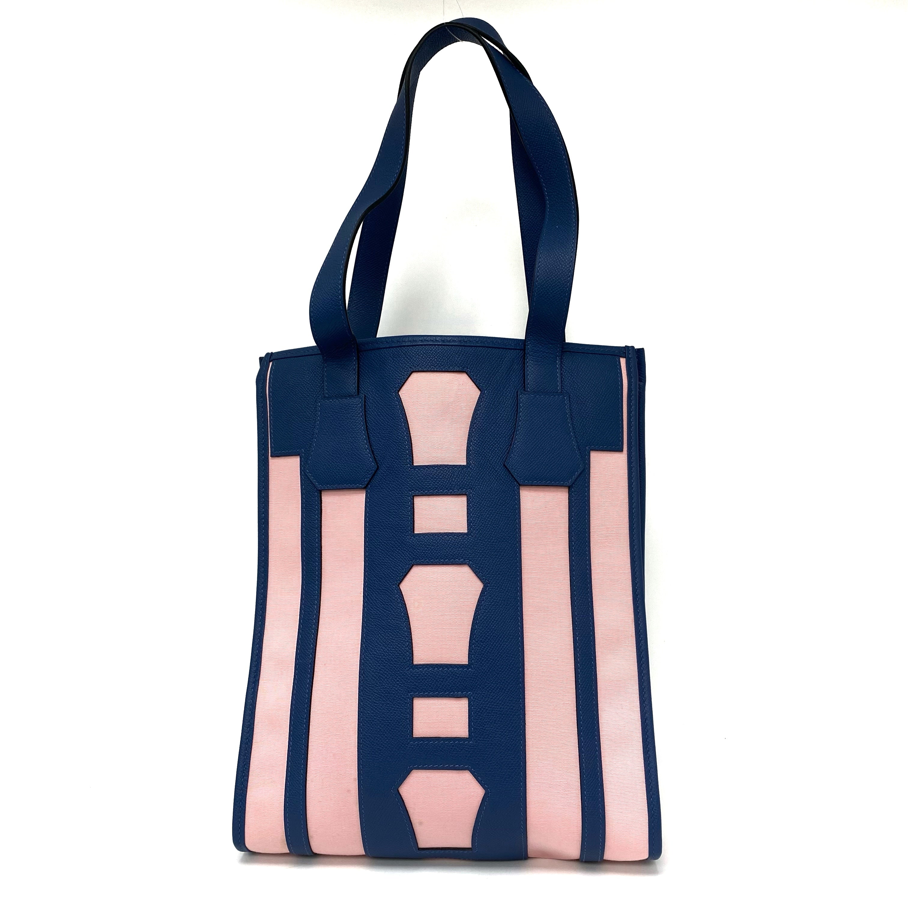 △ Hermes 愛馬仕 Petit H Blue, Pink Canvas, Epsom Calfskin Tote Bag 藍色, 粉紅色帆布, 壓紋小牛皮托特袋 -257021759