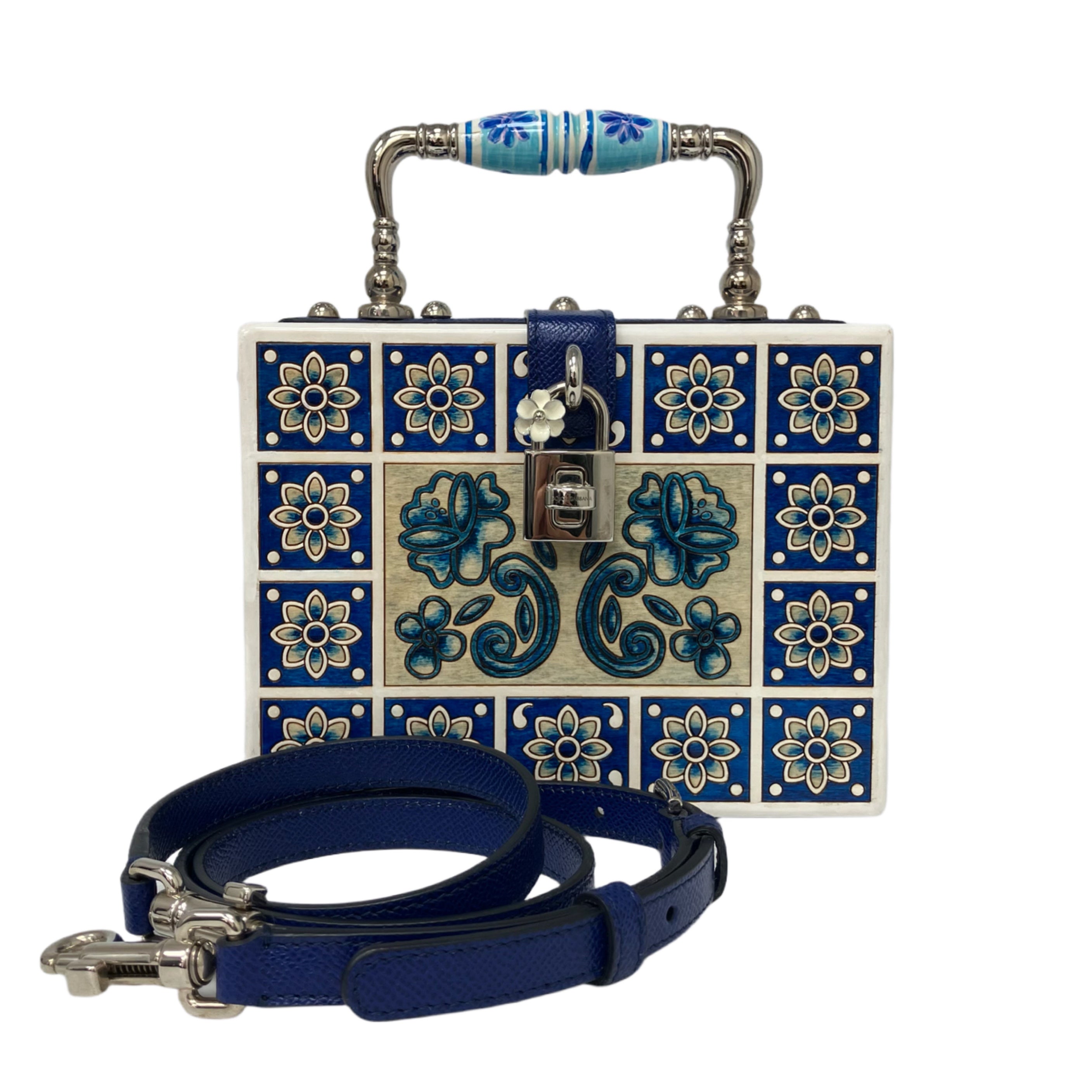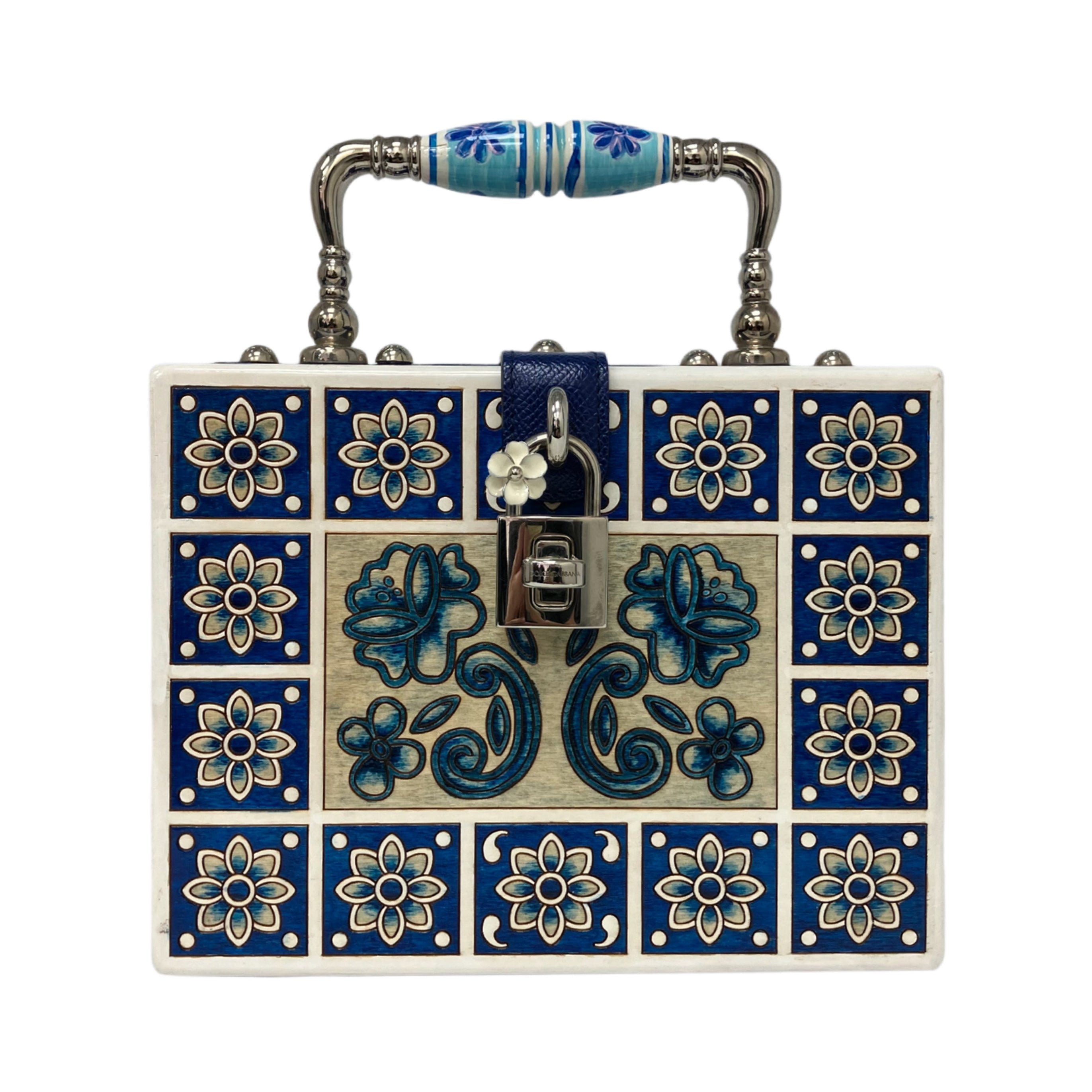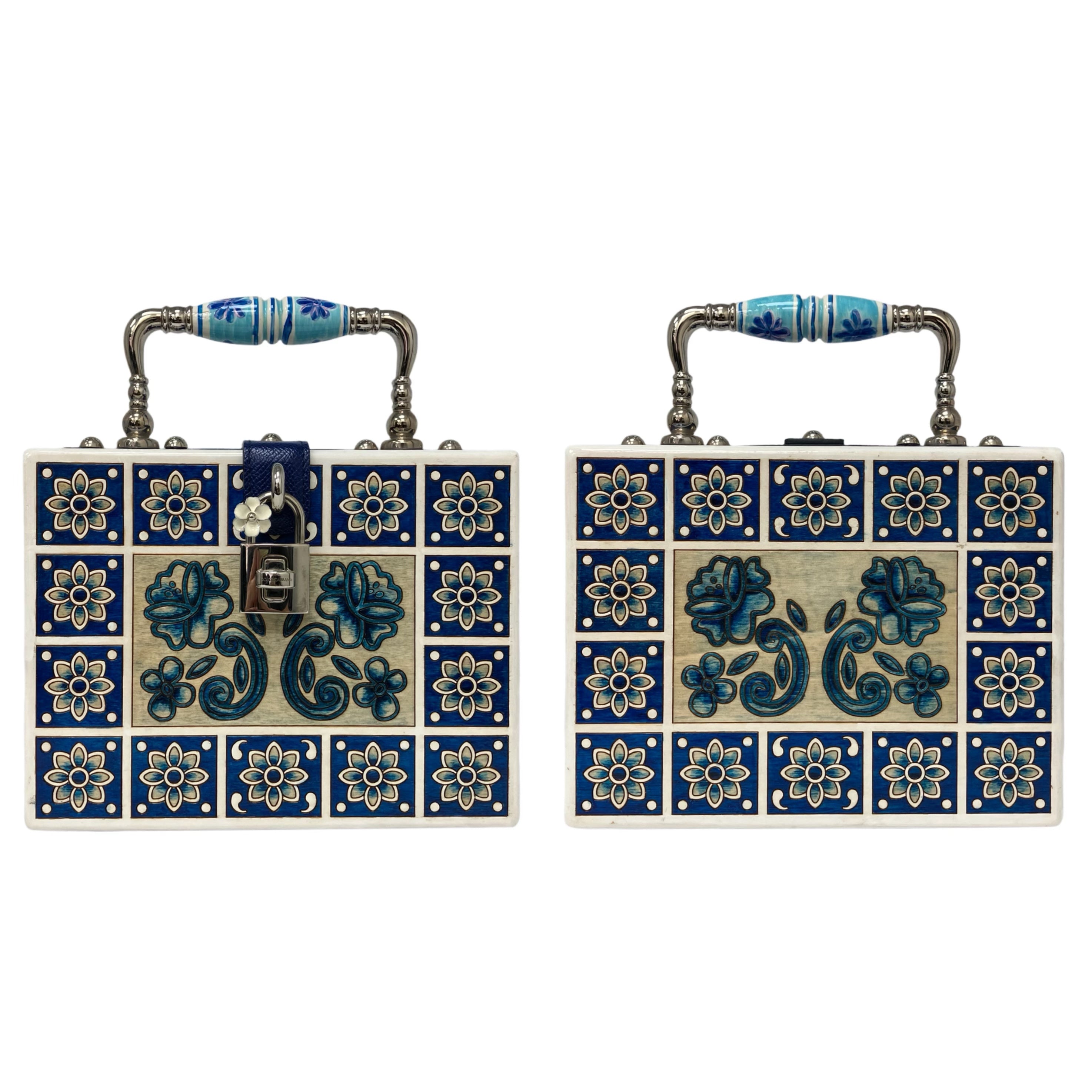 ☆ Dolce & Gabbana 杜嘉班納 White & Blue Wood Maiolica 2Way Bag 白色和藍色木兩用袋 - 257023316