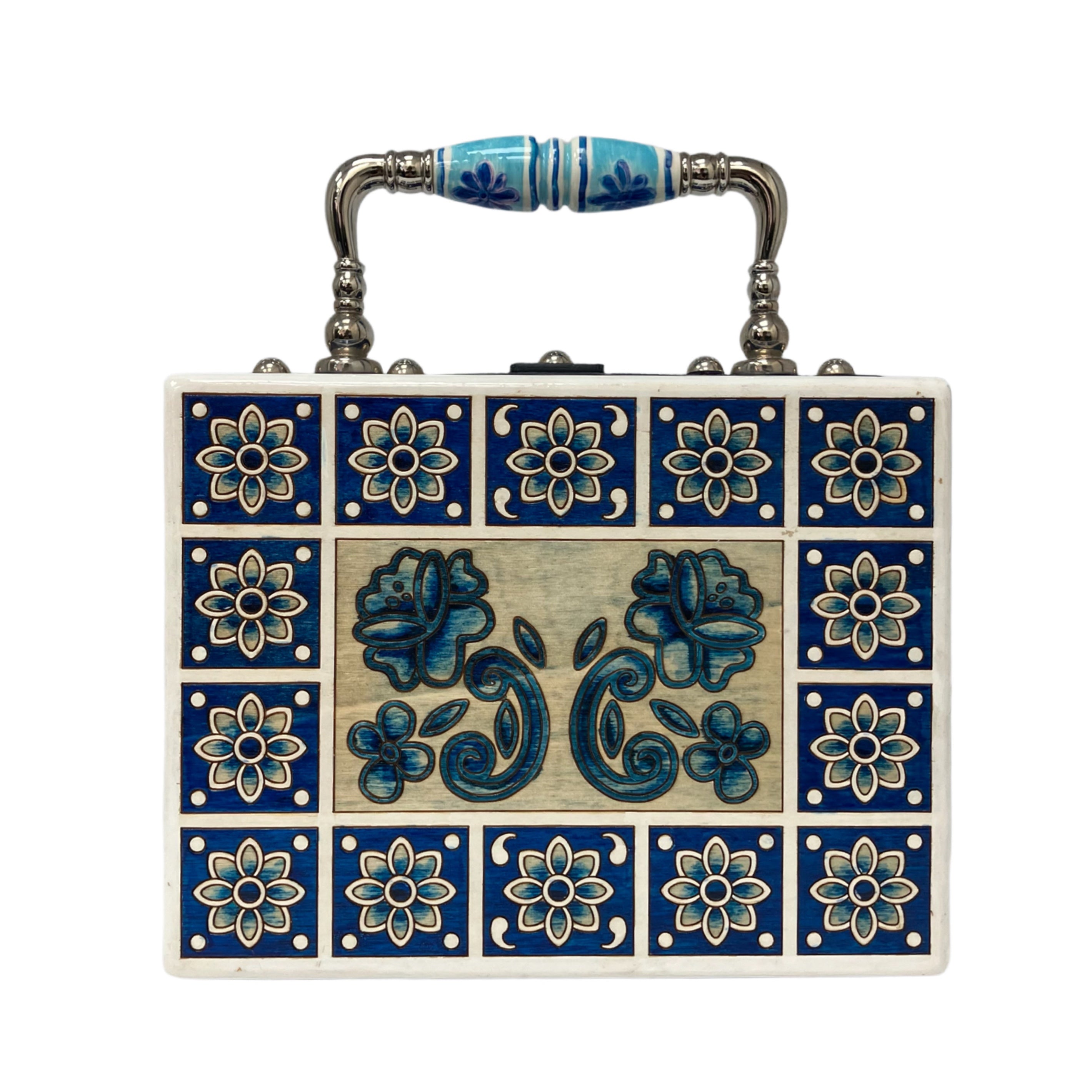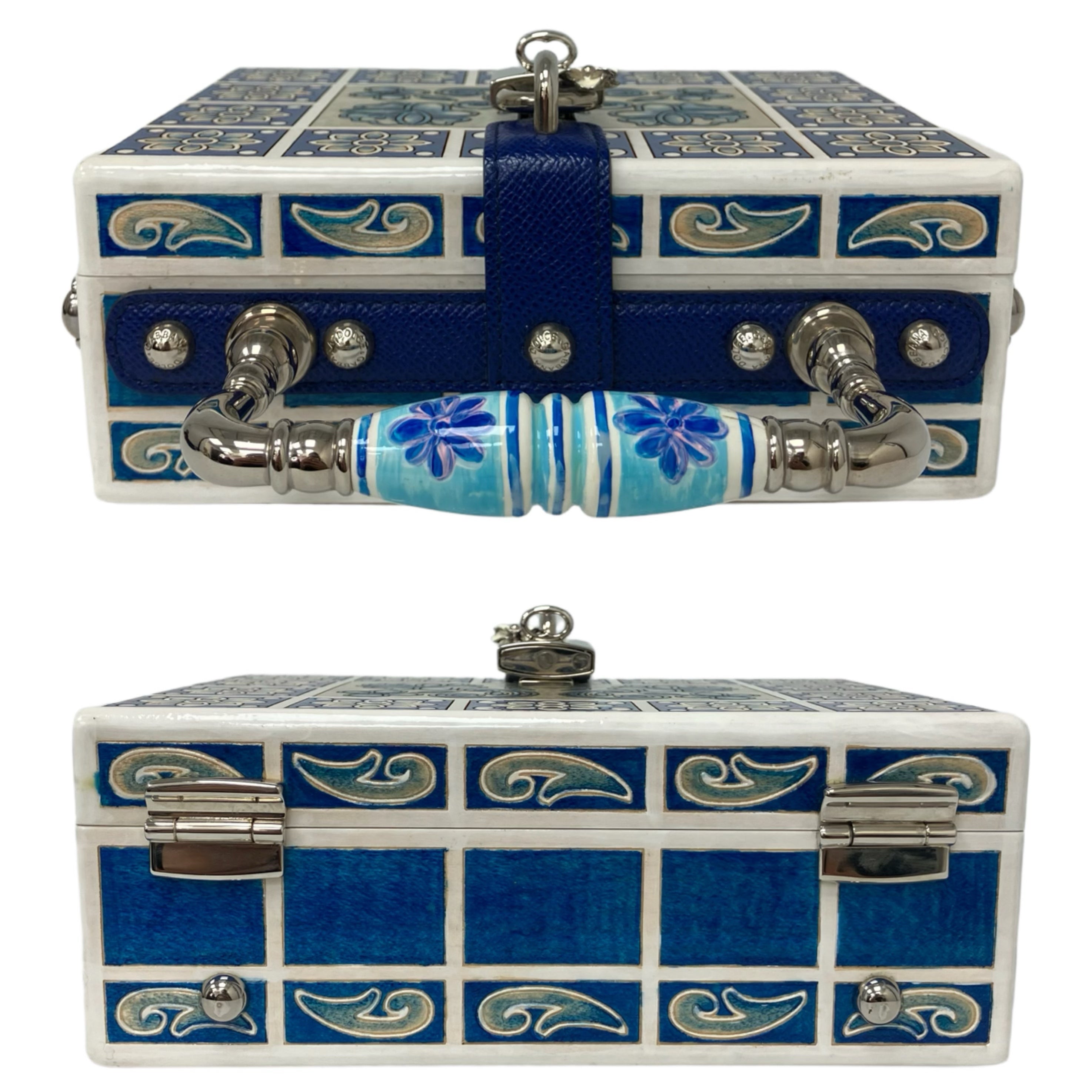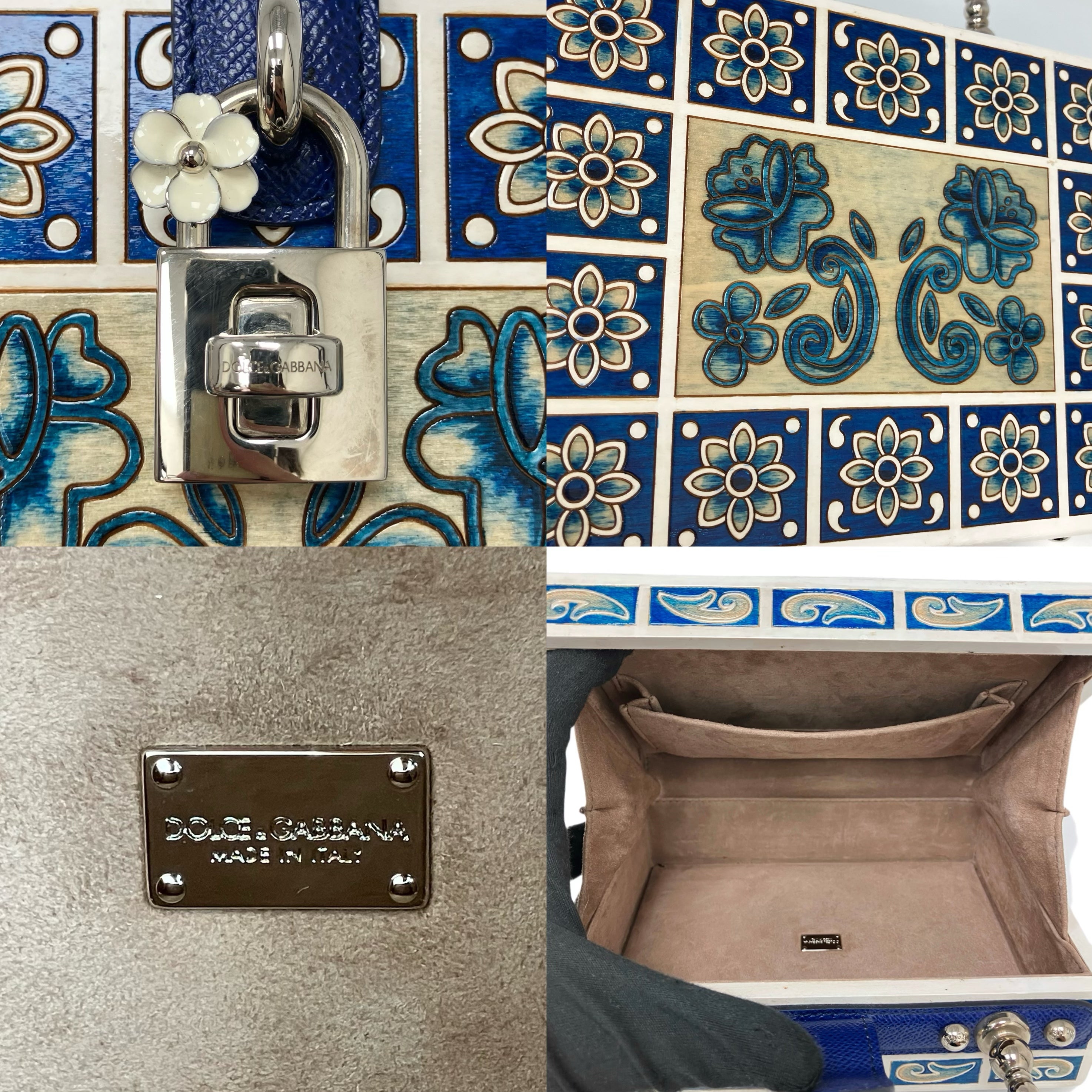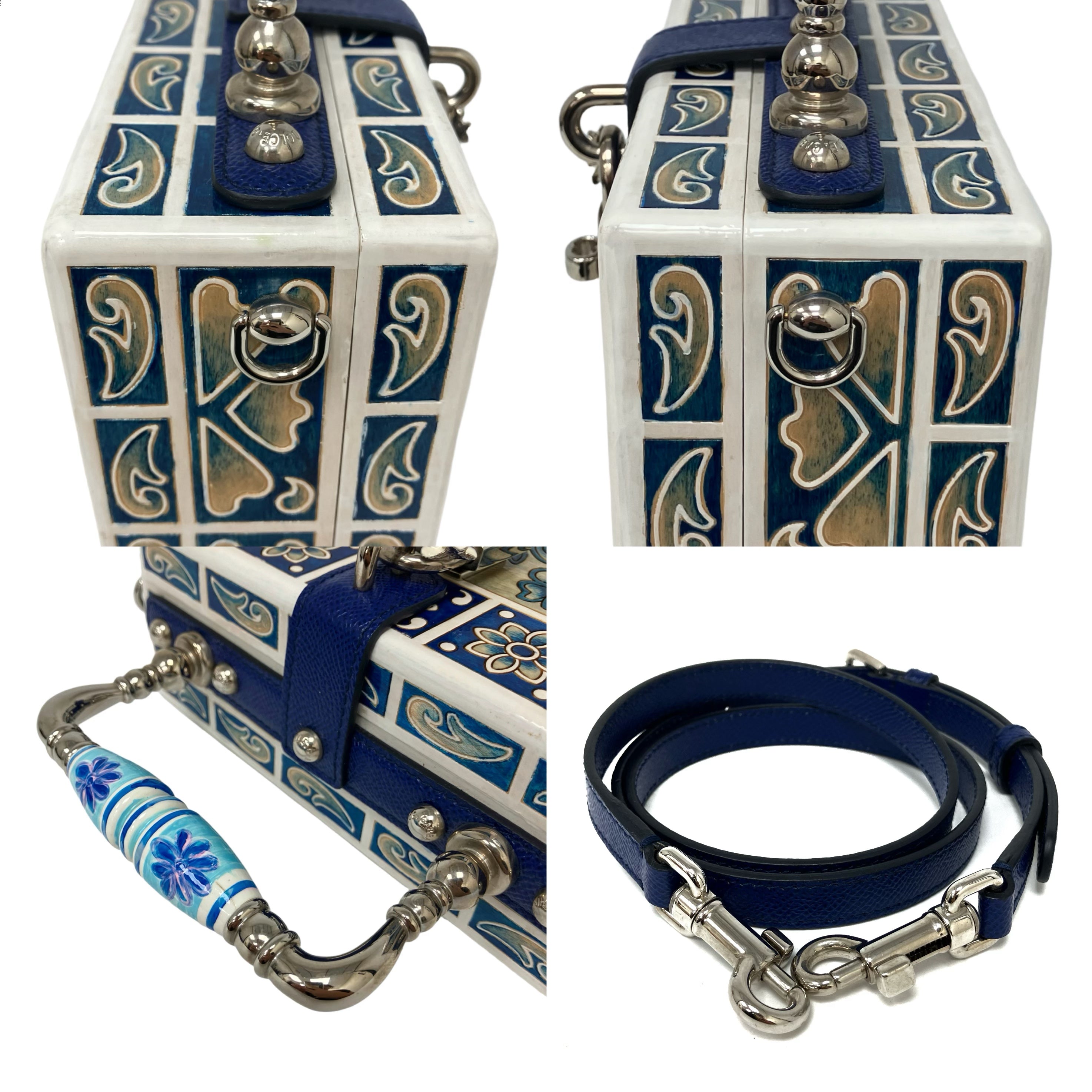 ☆ Dolce & Gabbana 杜嘉班納 White & Blue Wood Maiolica 2Way Bag 白色和藍色木兩用袋 - 257023316