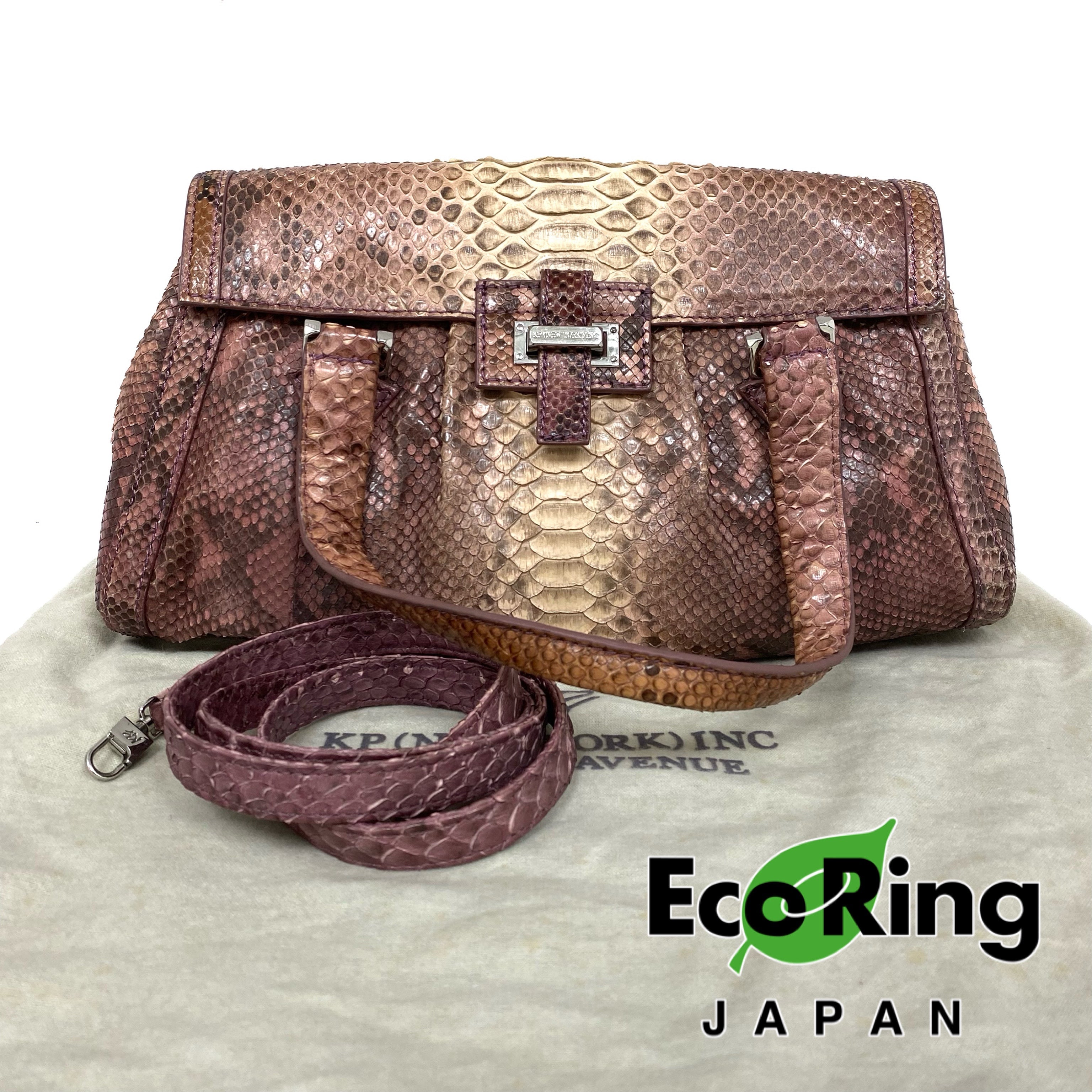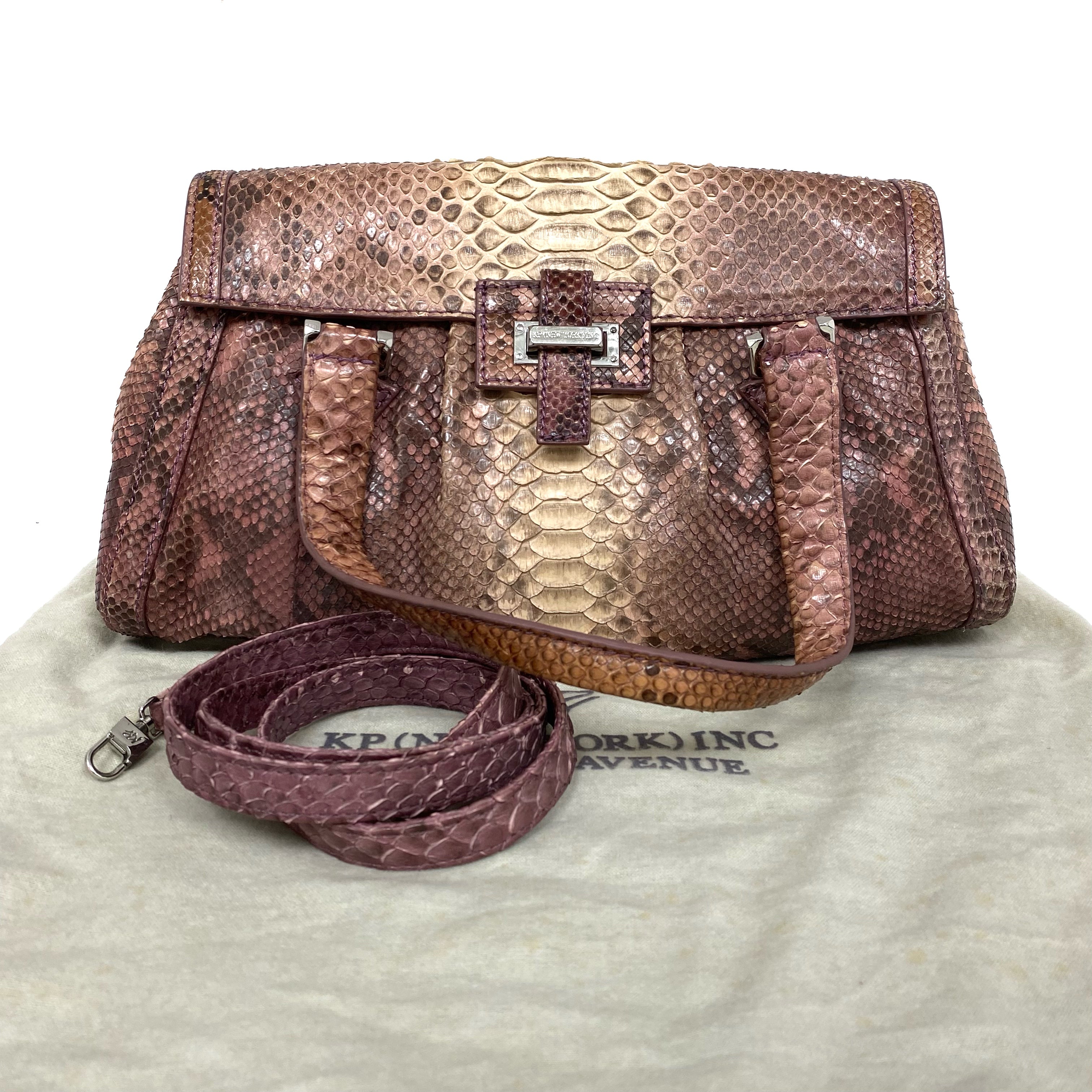 ☆【只寄香港 Ship to HK Only】KP (New York) INC Pink and Beige Python Skin 2Way Bag 粉紅色淺褐色蛇皮兩用袋 - 257024360