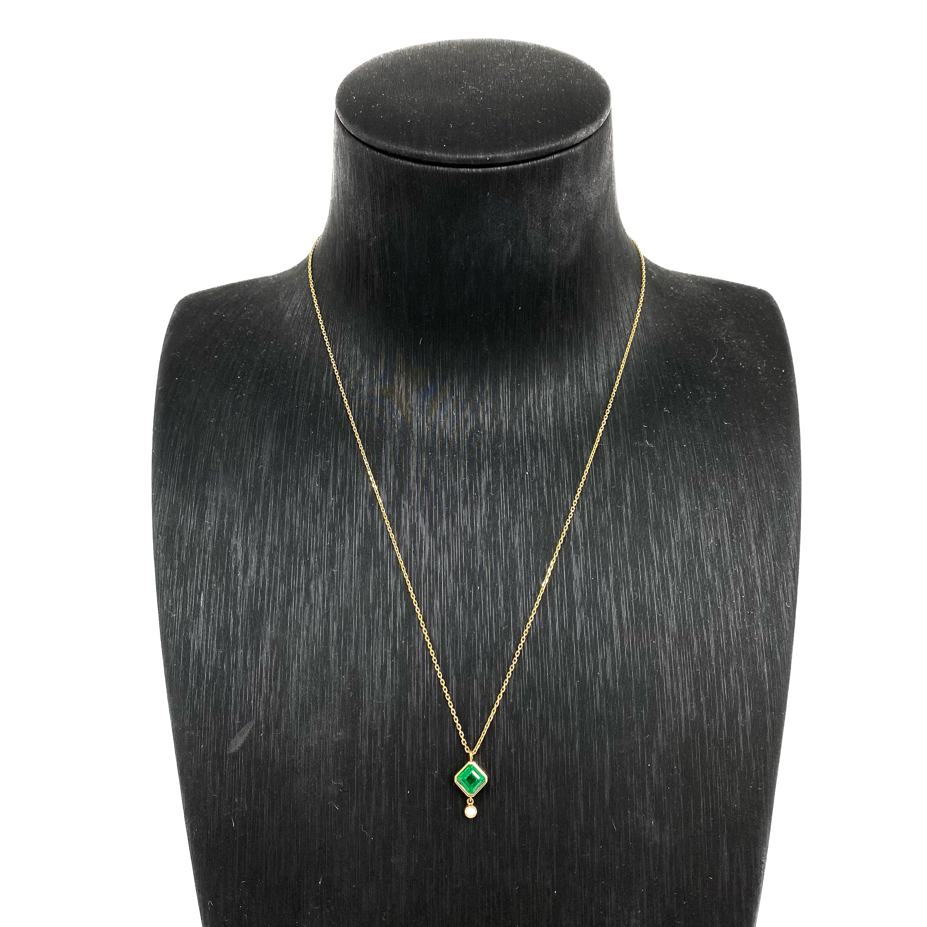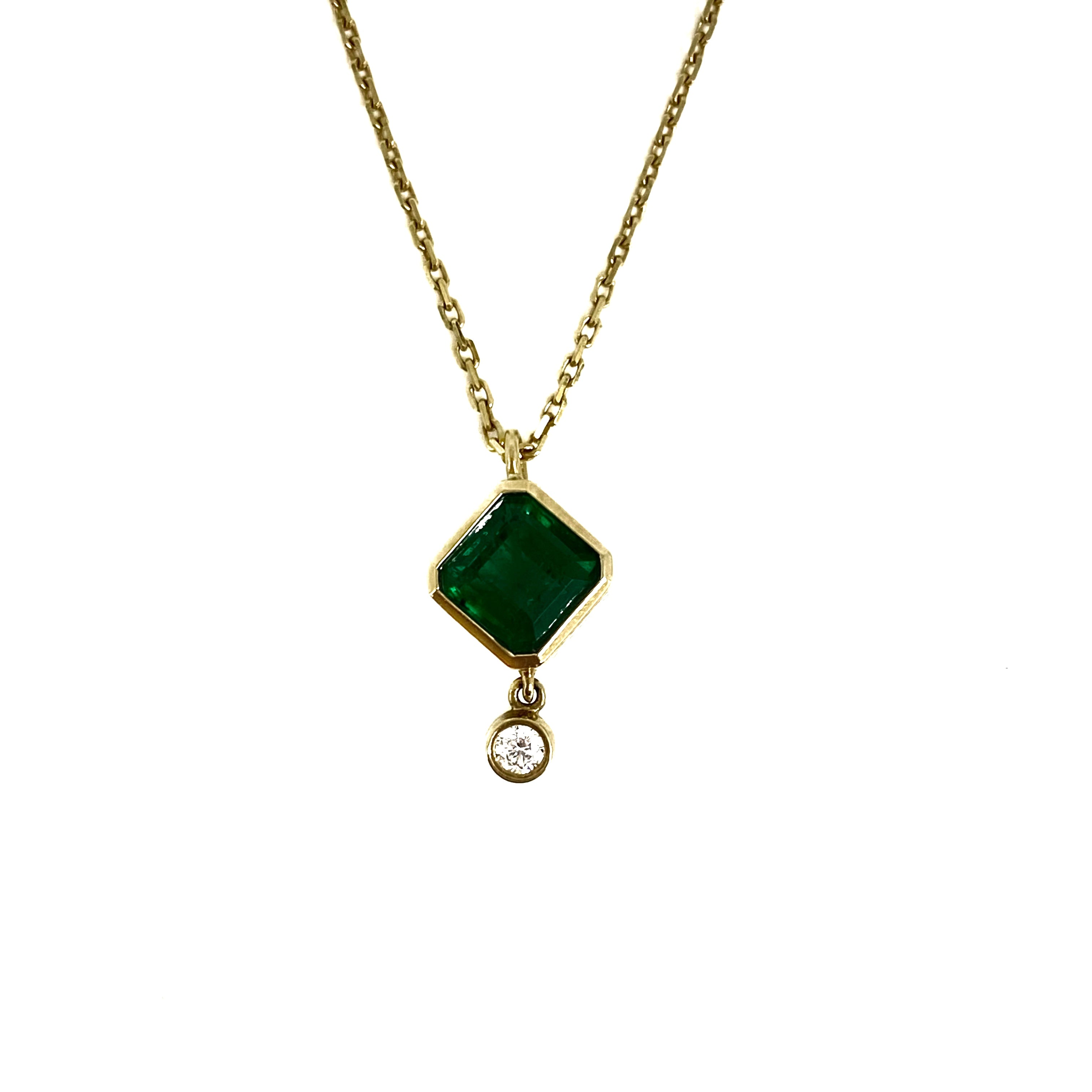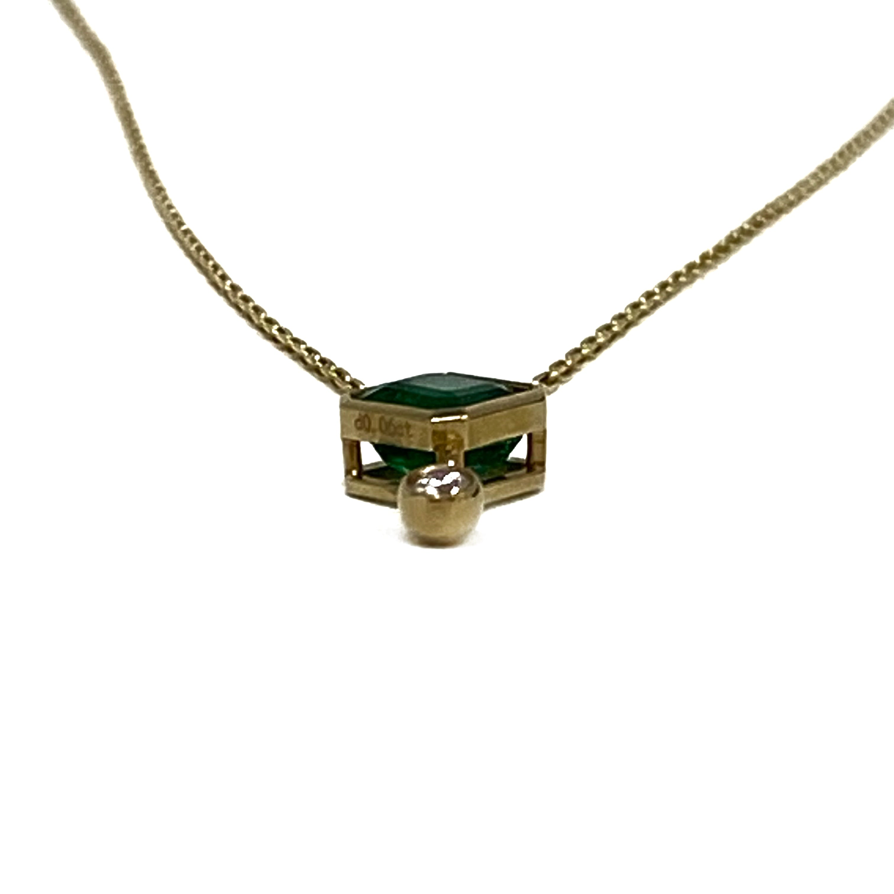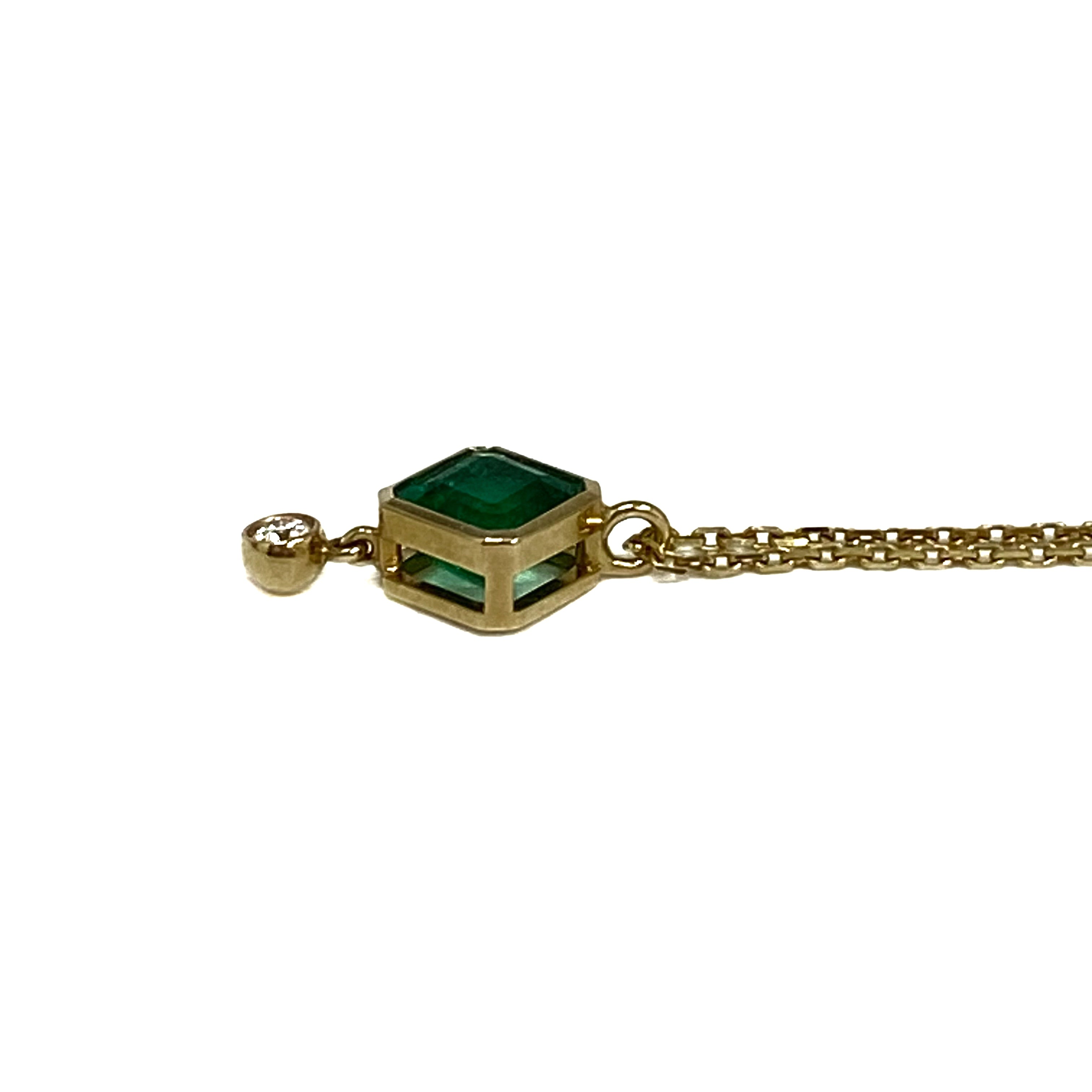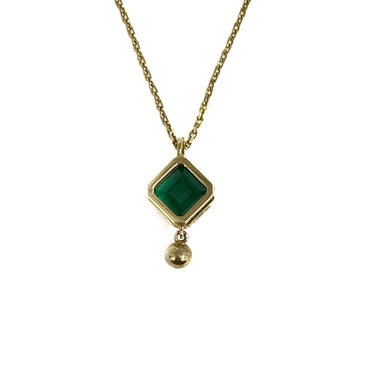 ☆ 18K Yellow Gold Diamond, Green Stone Necklace 2.29g 18K黃金鑽石, 綠色色石頸鏈 2.29g - 267002664