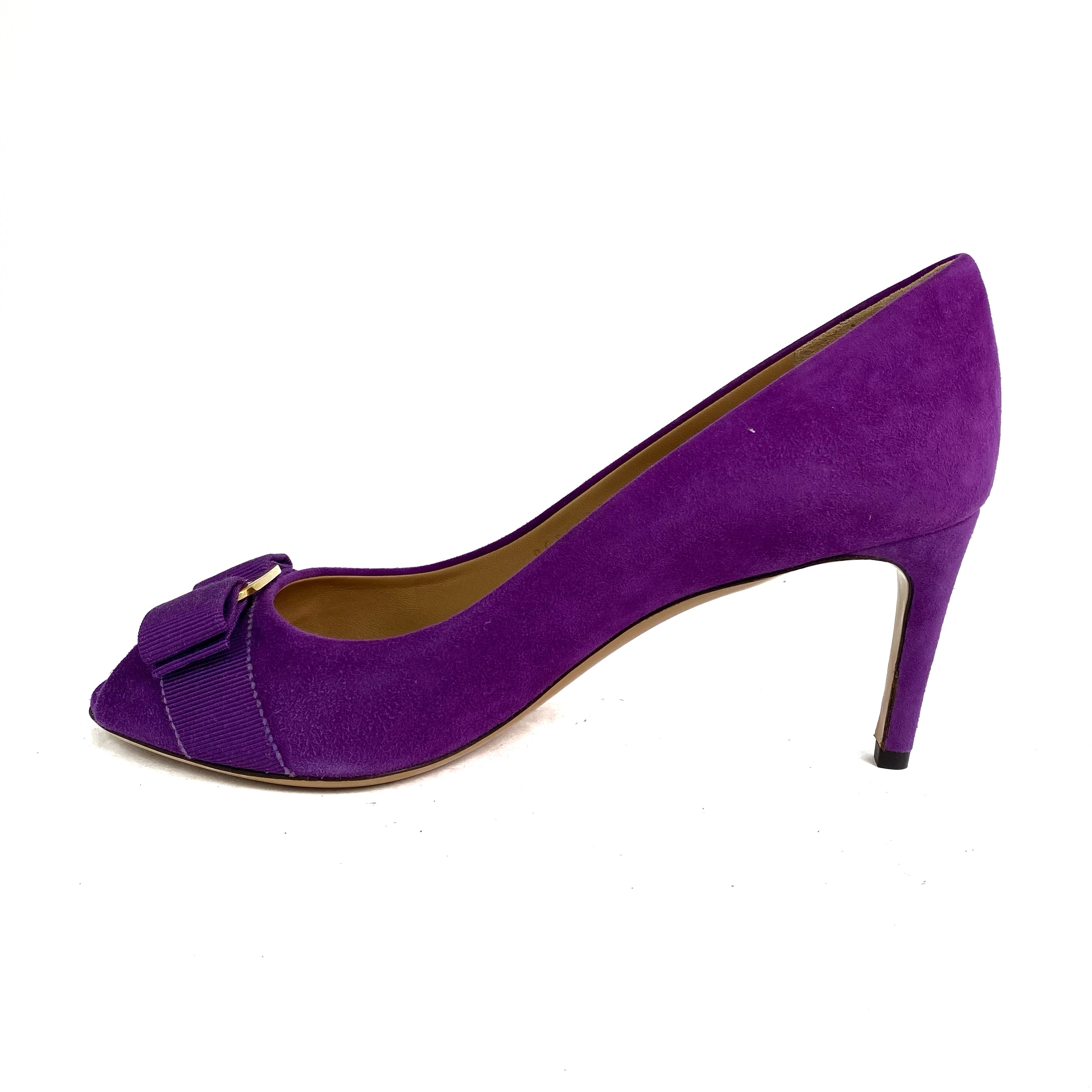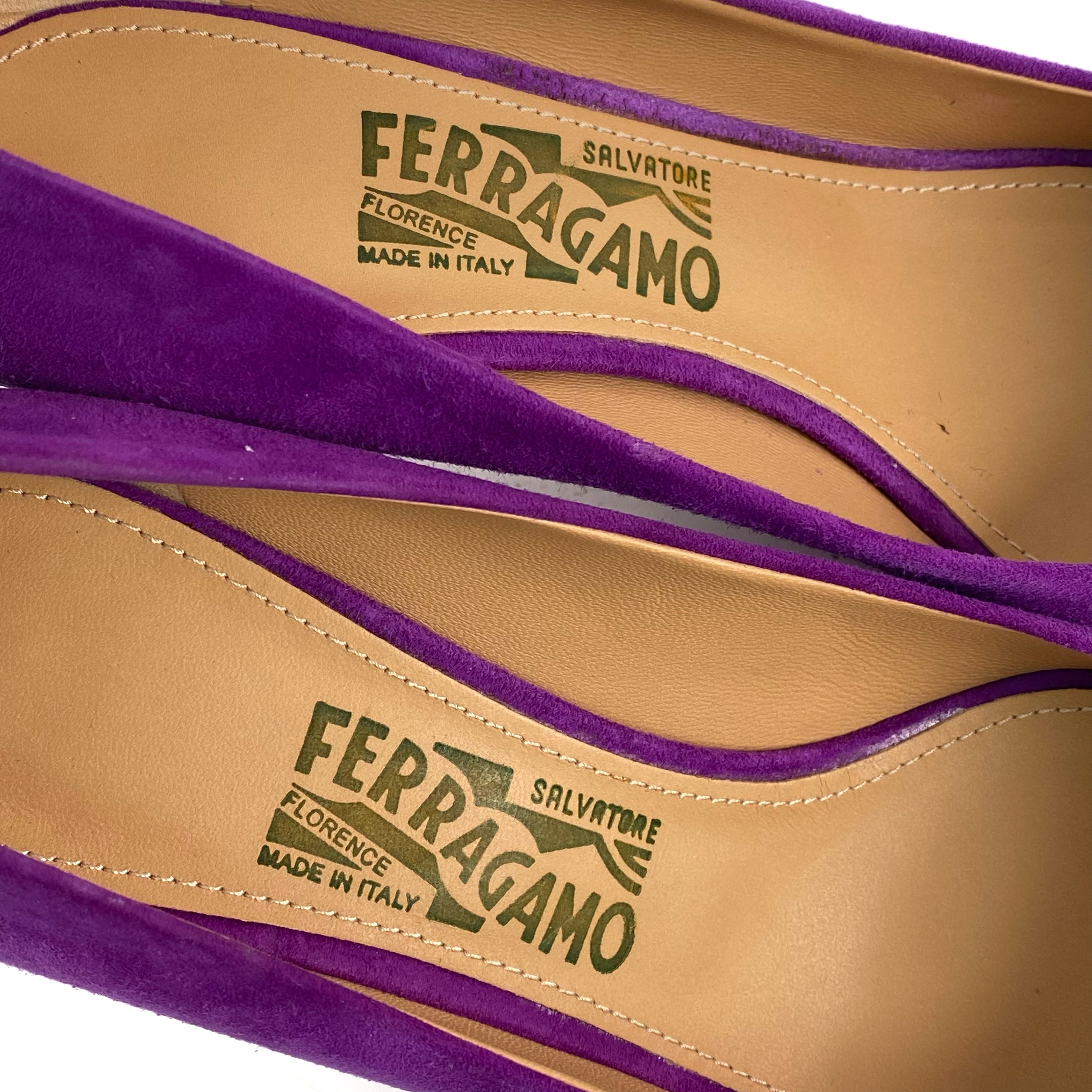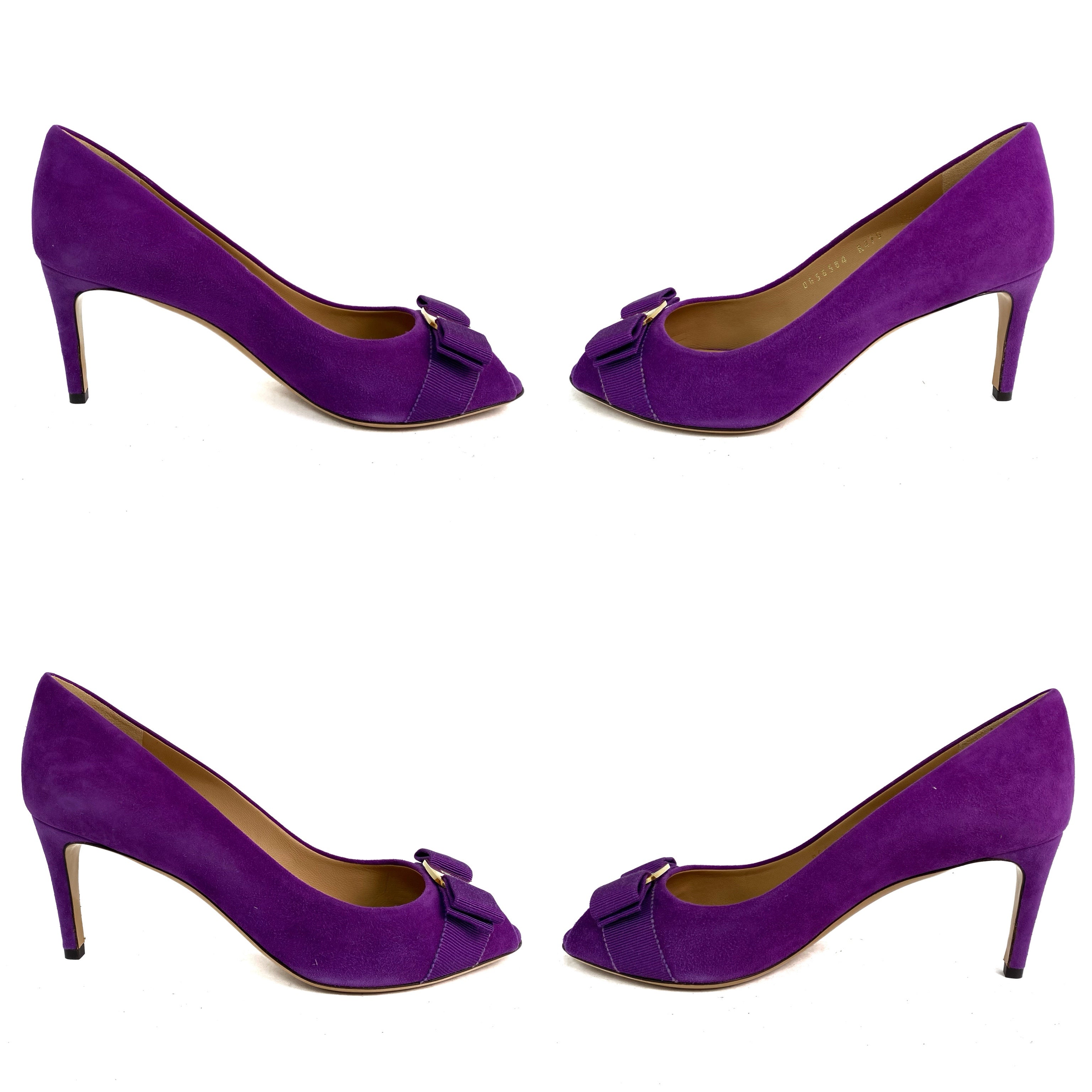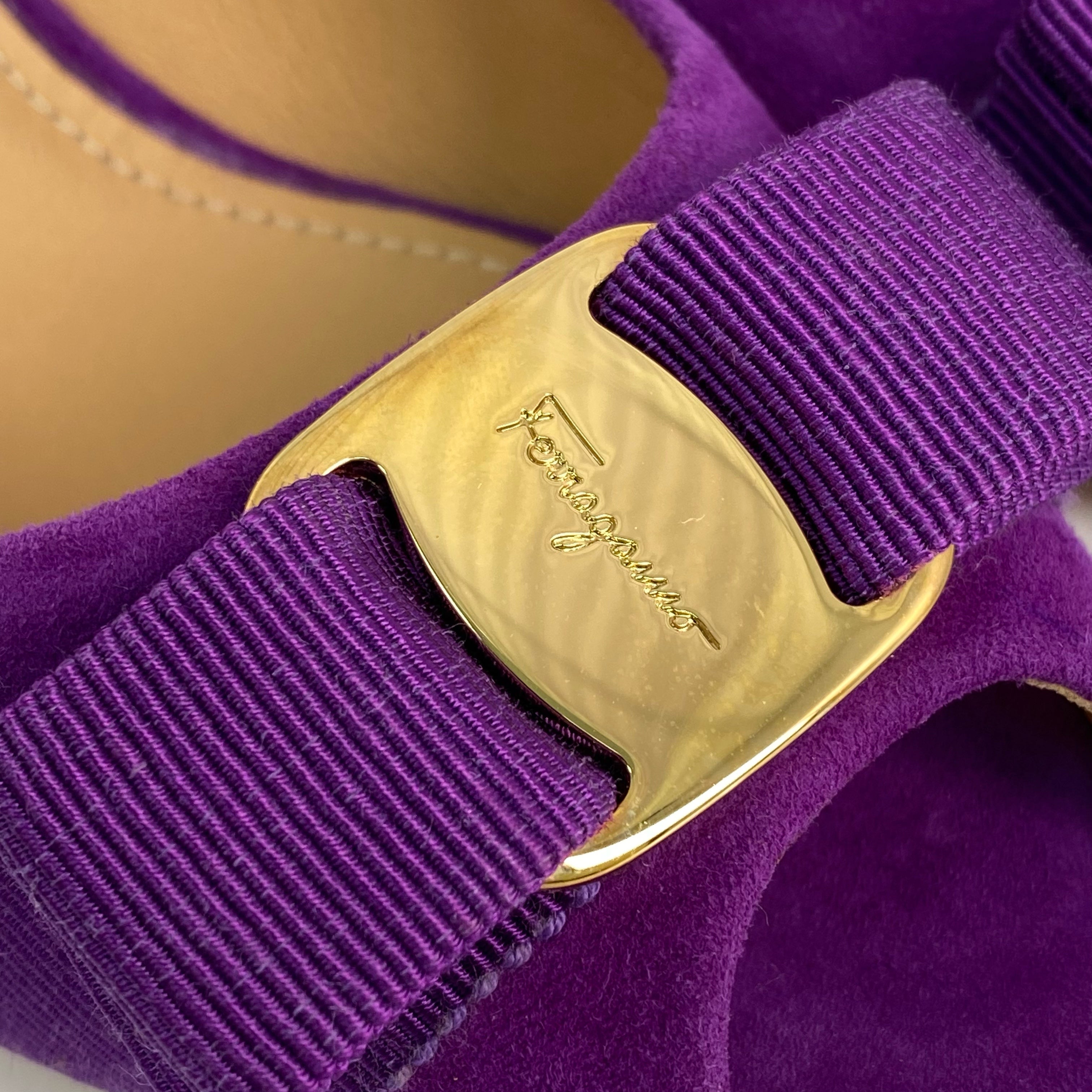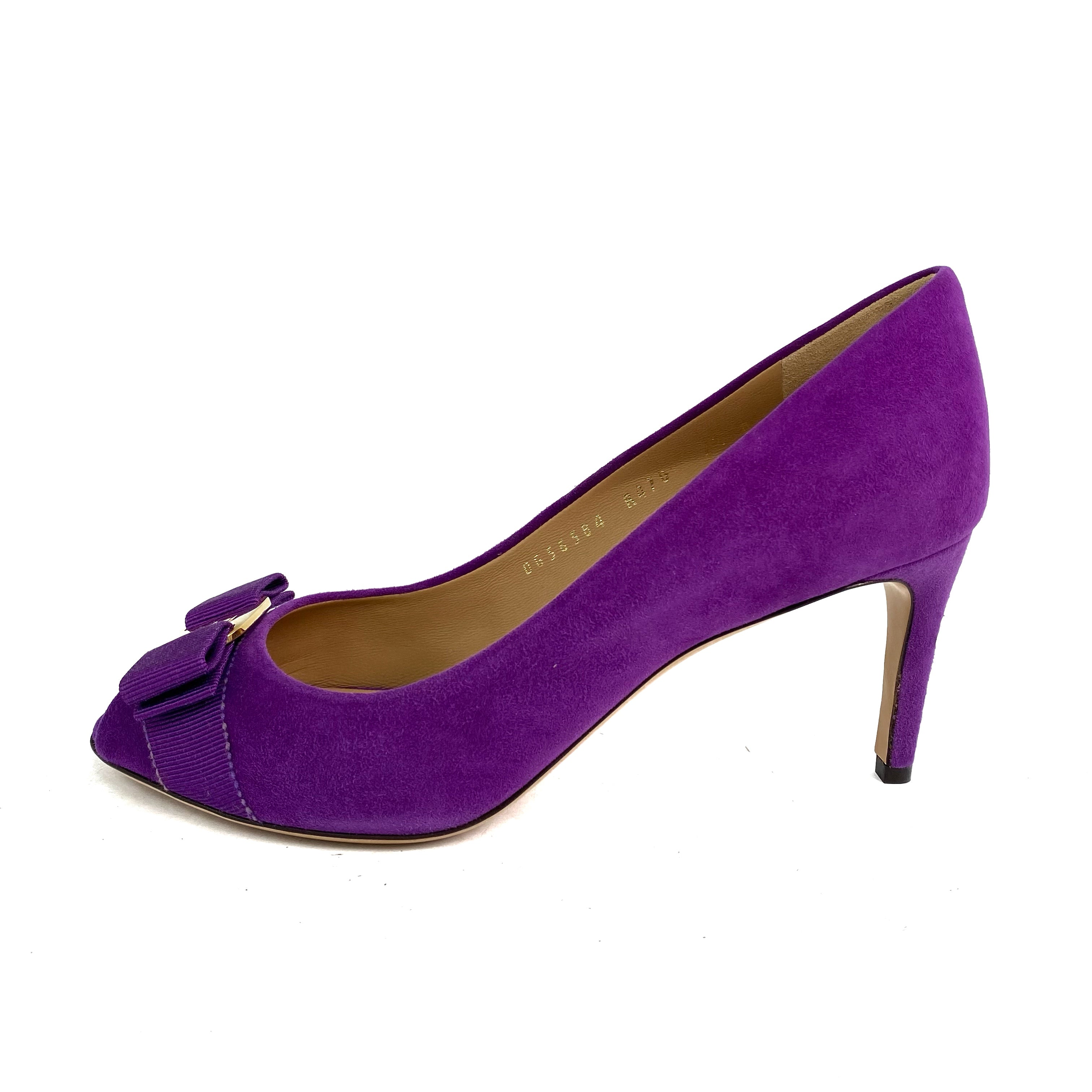 ☆ Salvatore Ferragamo 菲拉格慕 Purple Suede Vara Heels 7.5 紫色麂皮高跟鞋7.5碼 - 257020285