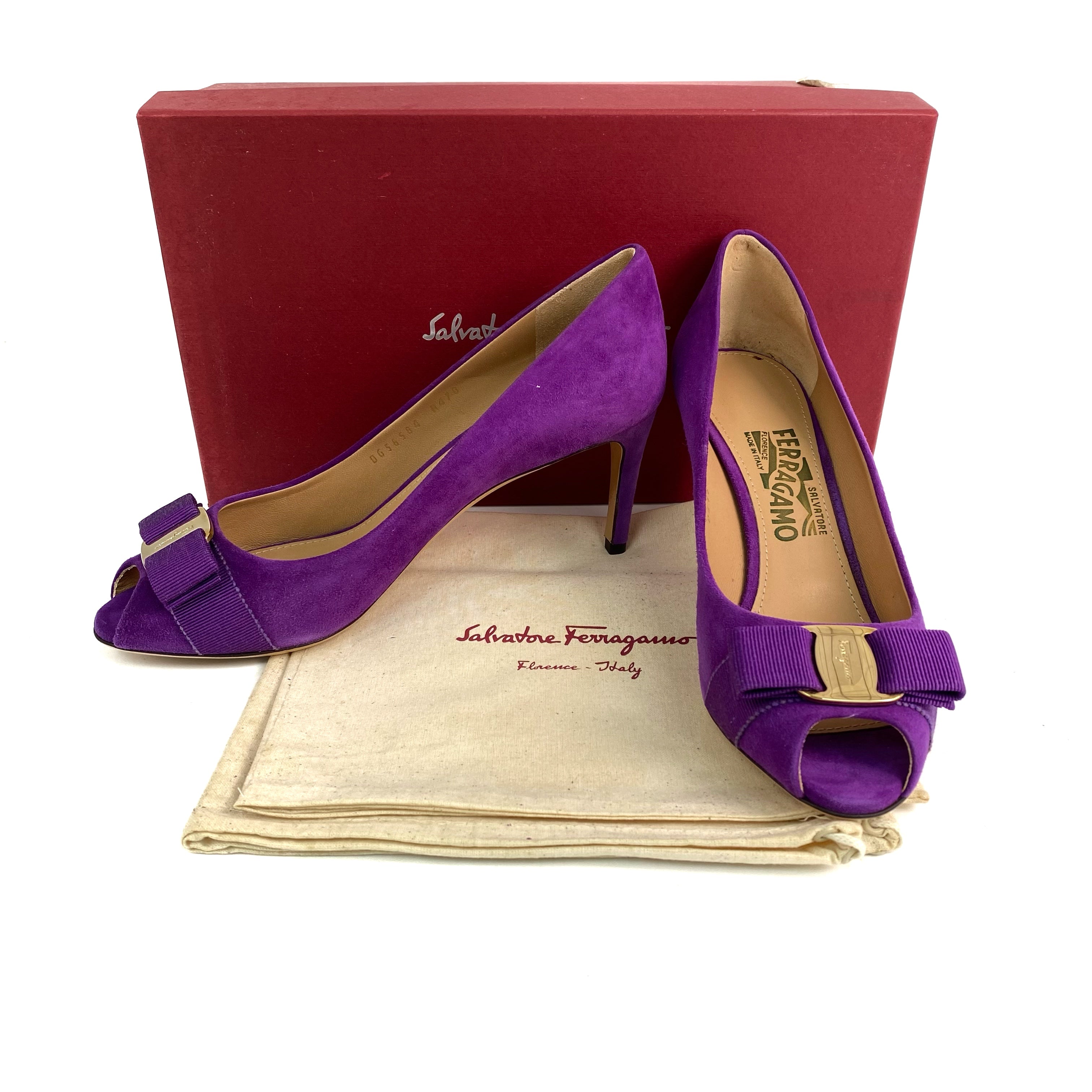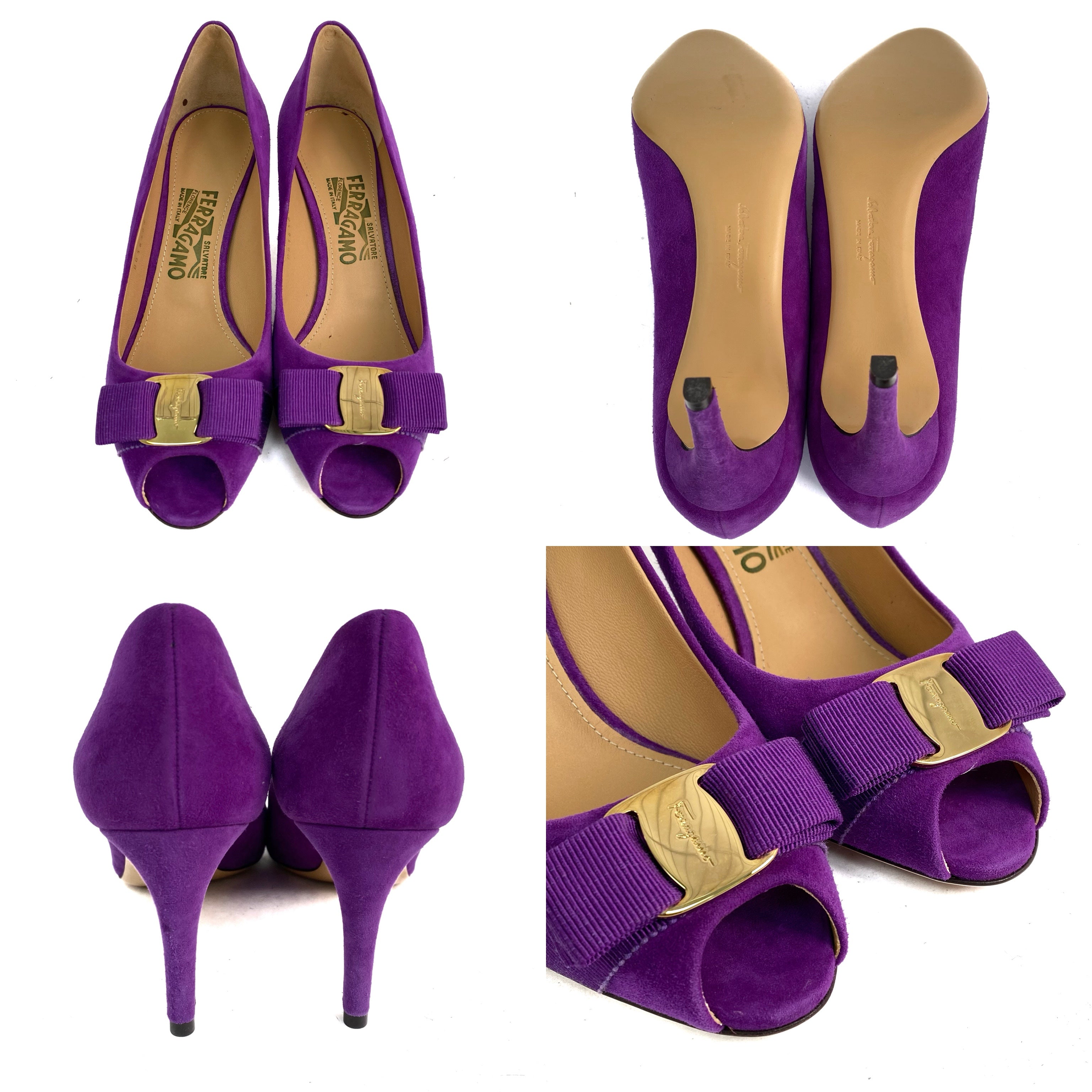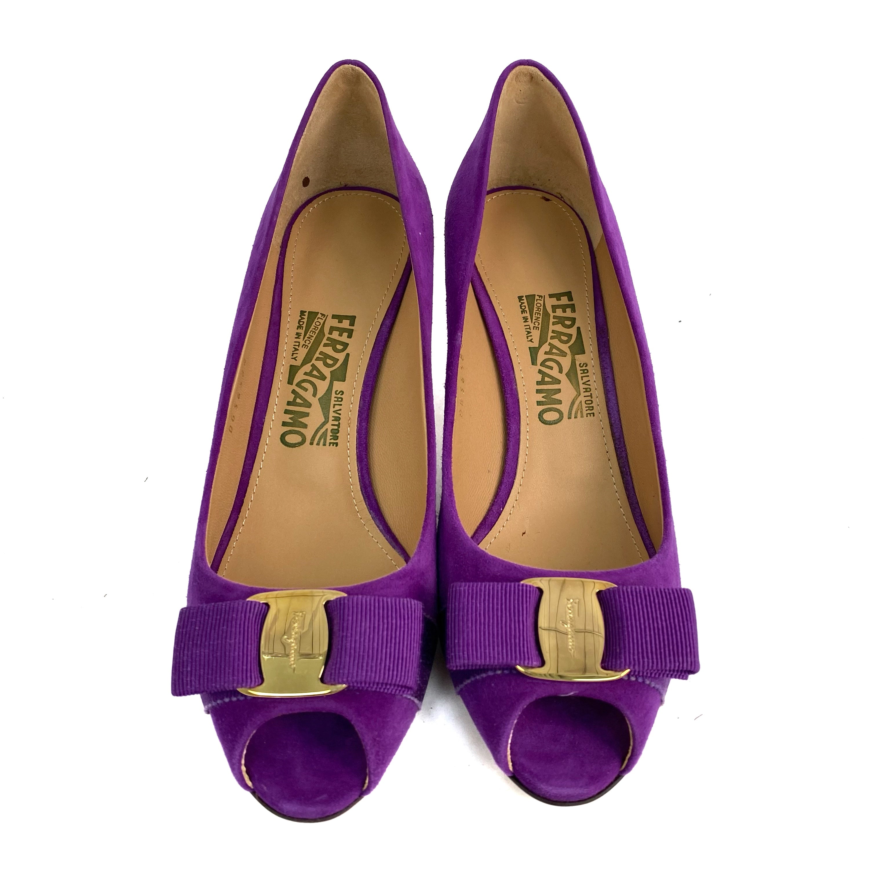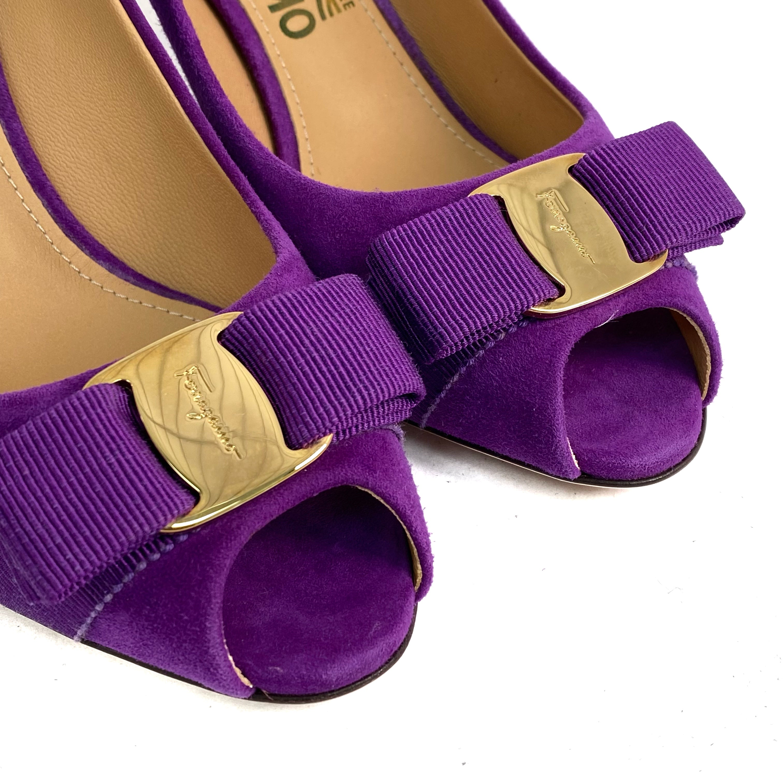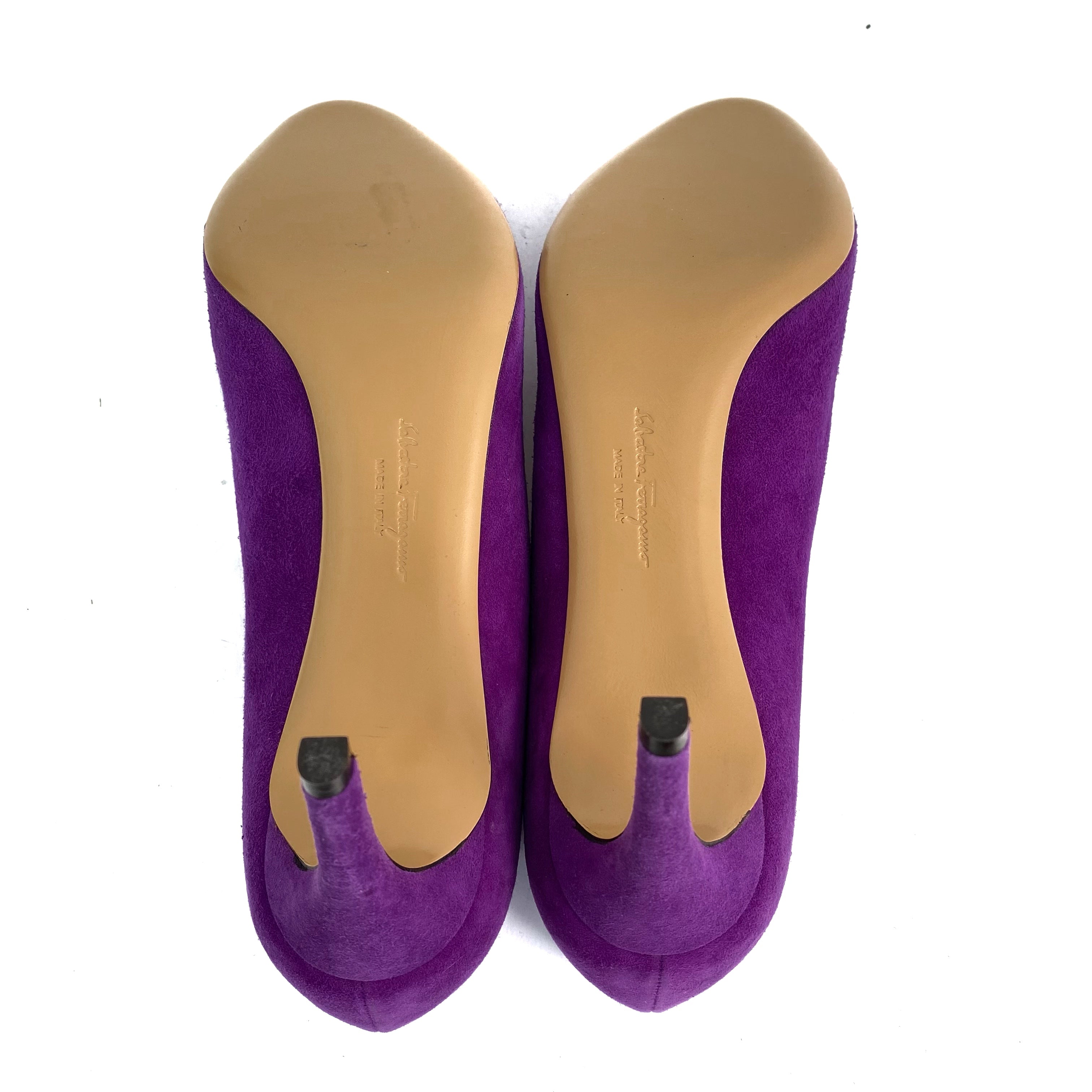 ☆ Salvatore Ferragamo 菲拉格慕 Purple Suede Vara Heels 7.5 紫色麂皮高跟鞋7.5碼 - 257020285