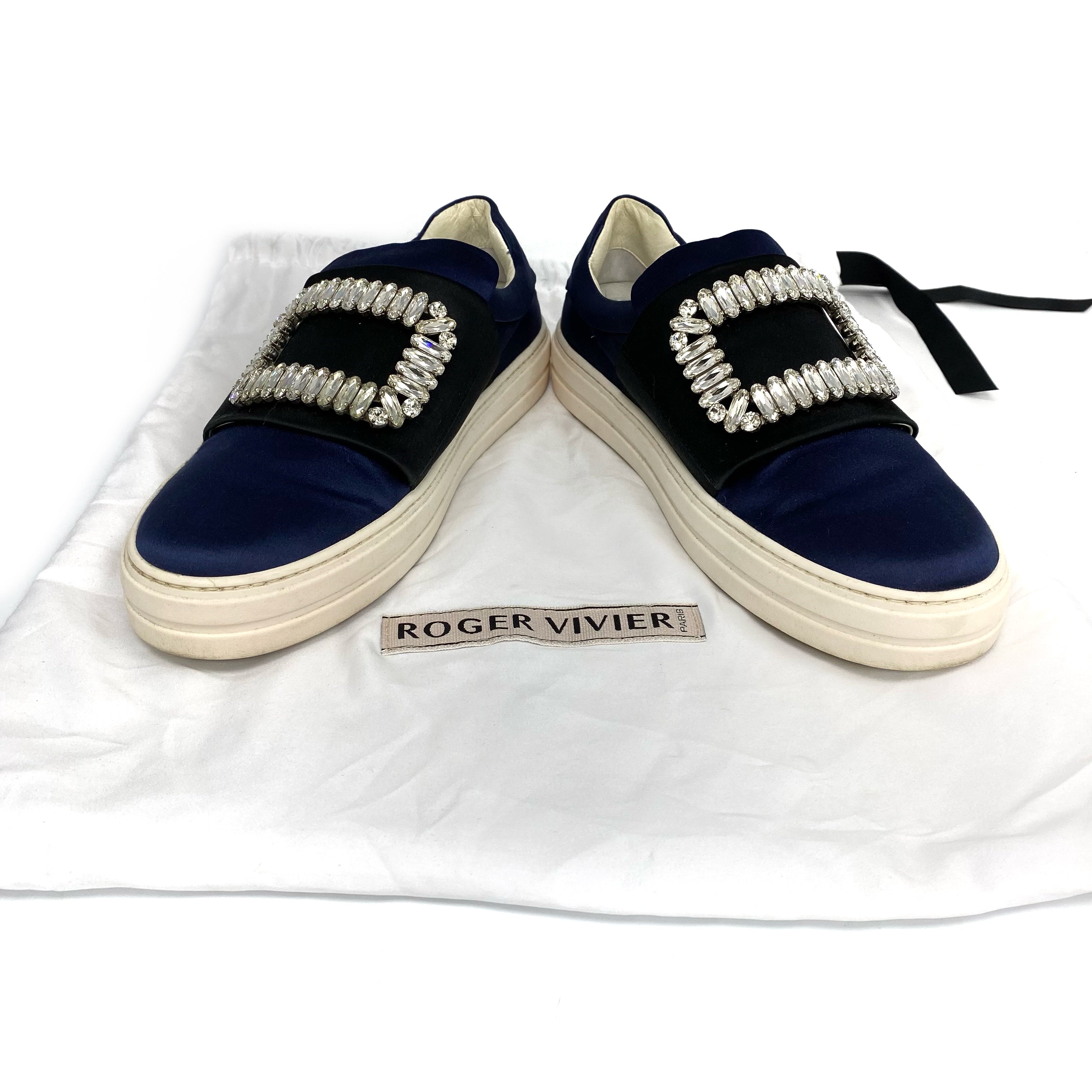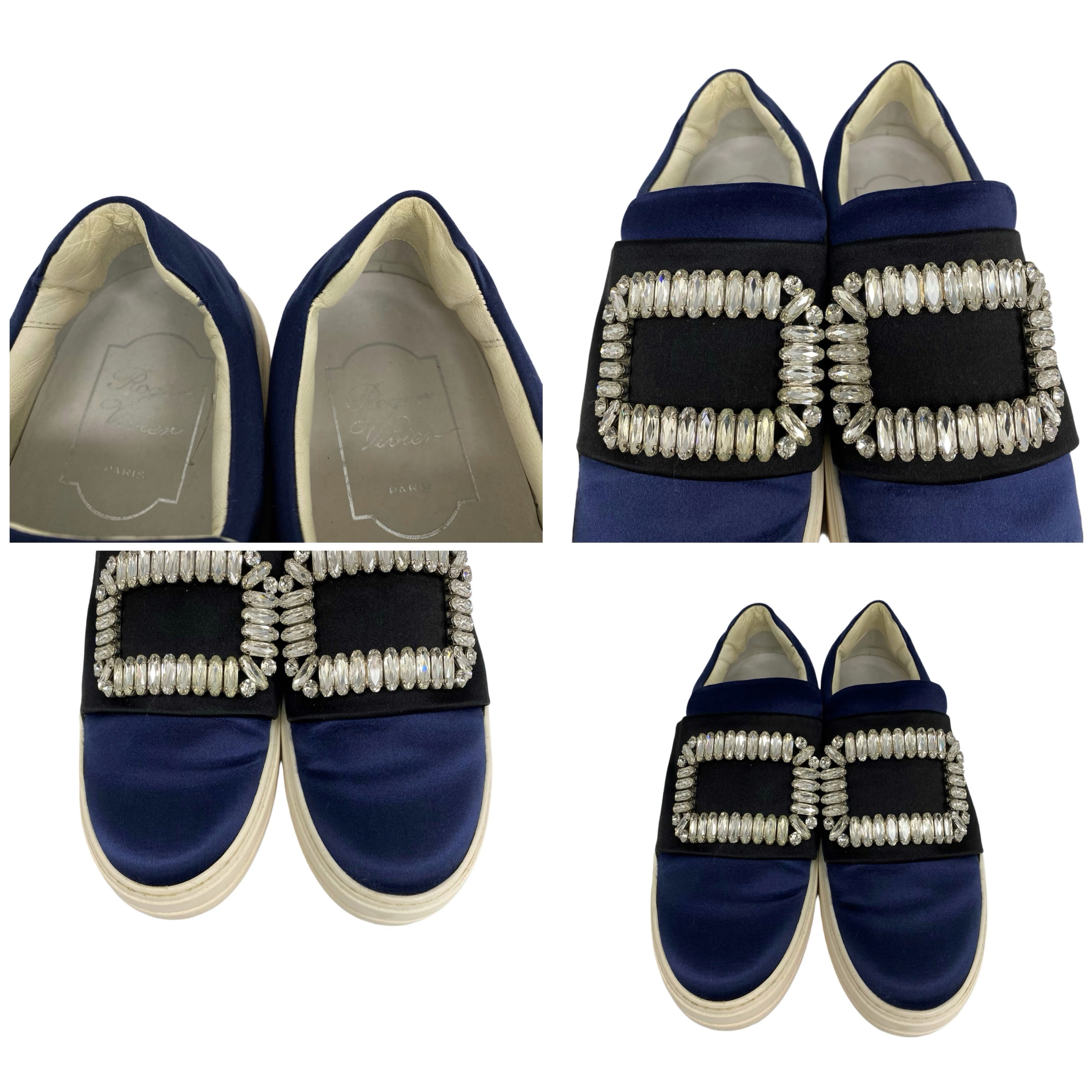 ☆ Roger Vivier 羅傑·維維亞 Navy Black Satin Shoes 35.5 深藍色和黑色緞面鞋 35.5碼 - 257020357