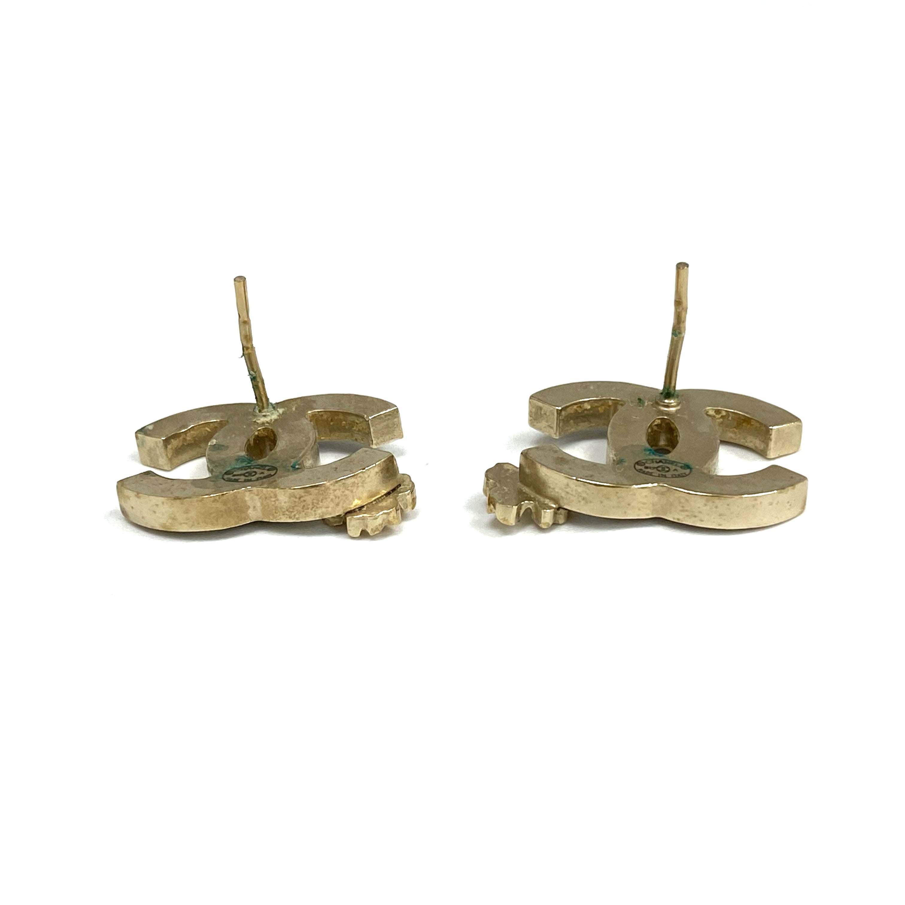☆ Chanel 香奈兒 Black Gold-tone Metal Earrings B12A 黑色金色金屬耳環 B12A - 267005276