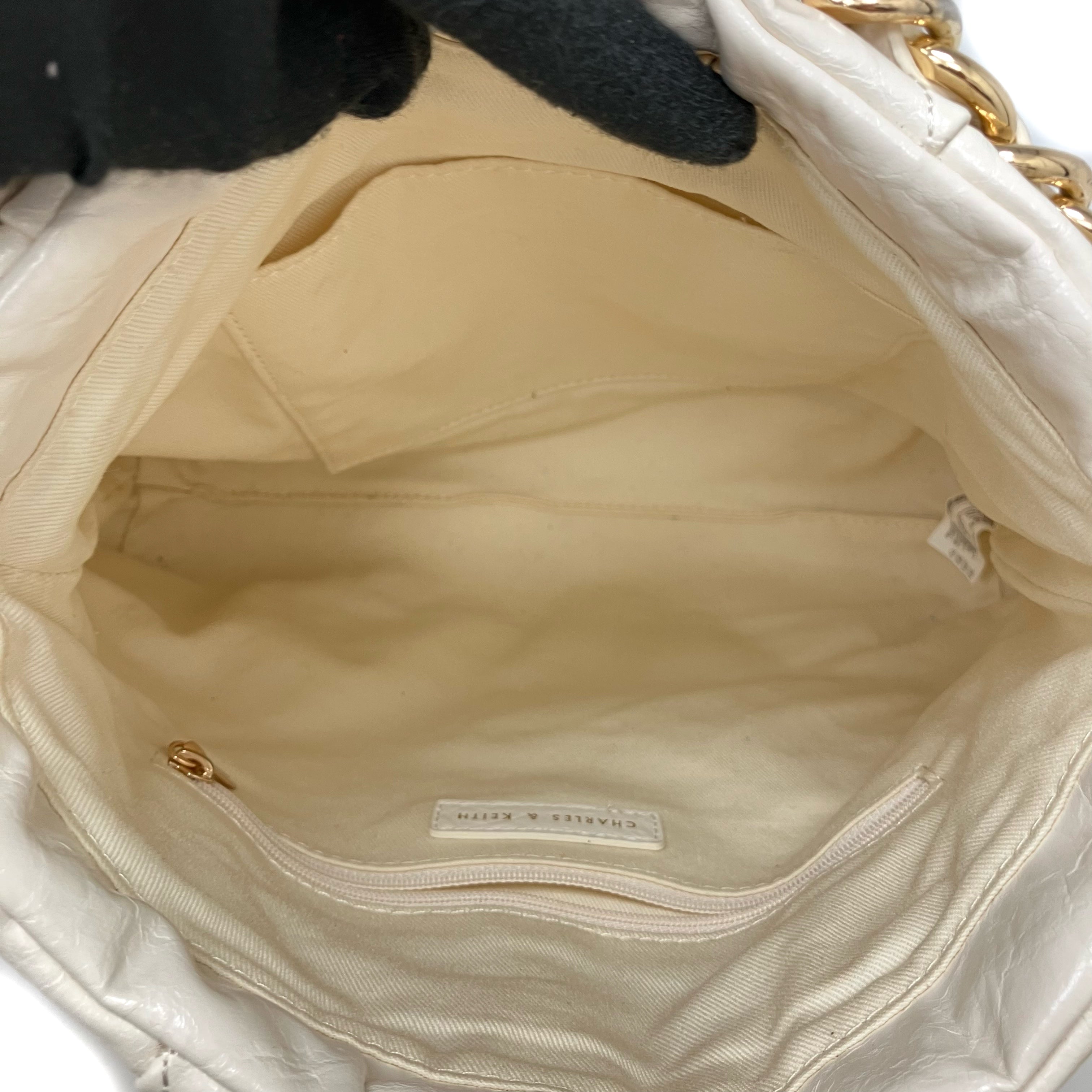 ☆ Charles & Keith White Faux Leather Chain 2 Way Bag 白色仿皮鏈條兩用袋 - 257028394