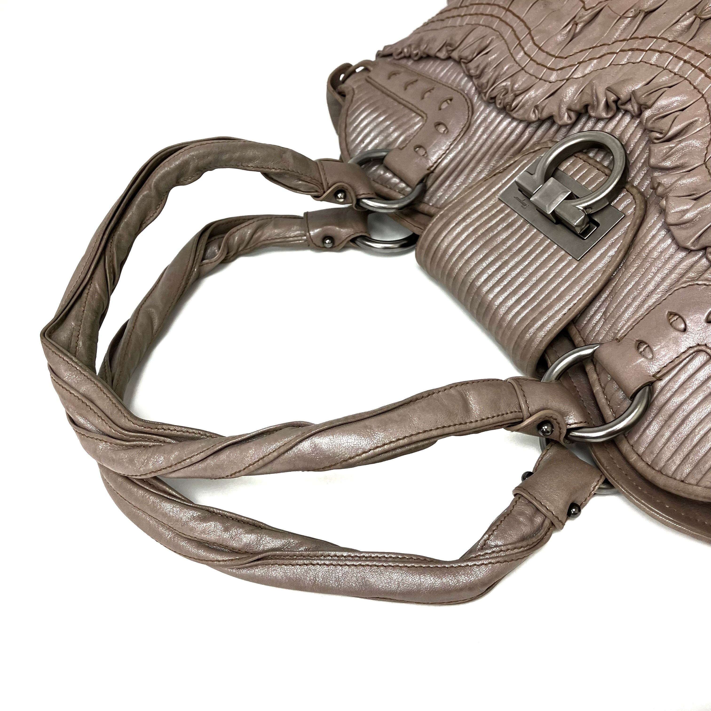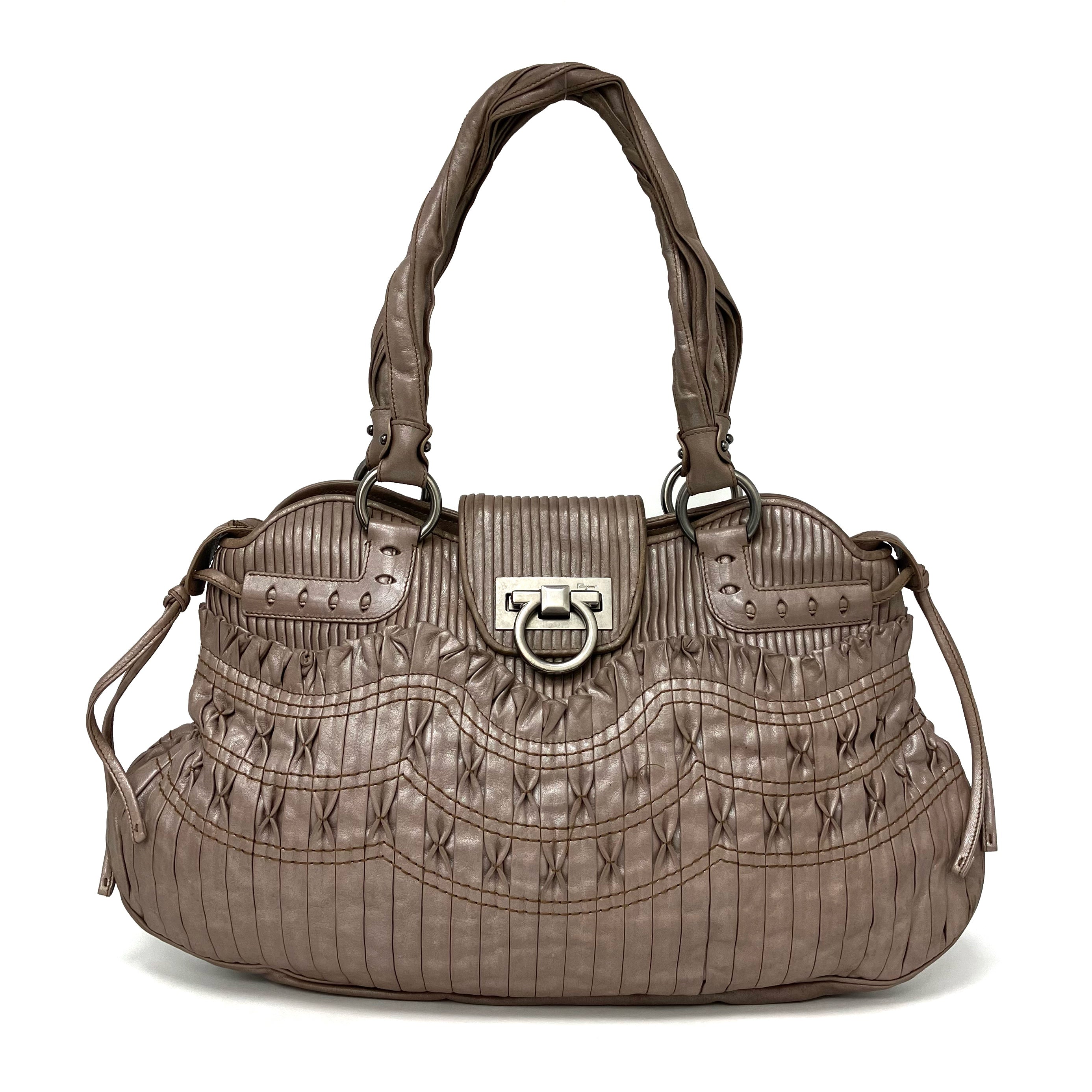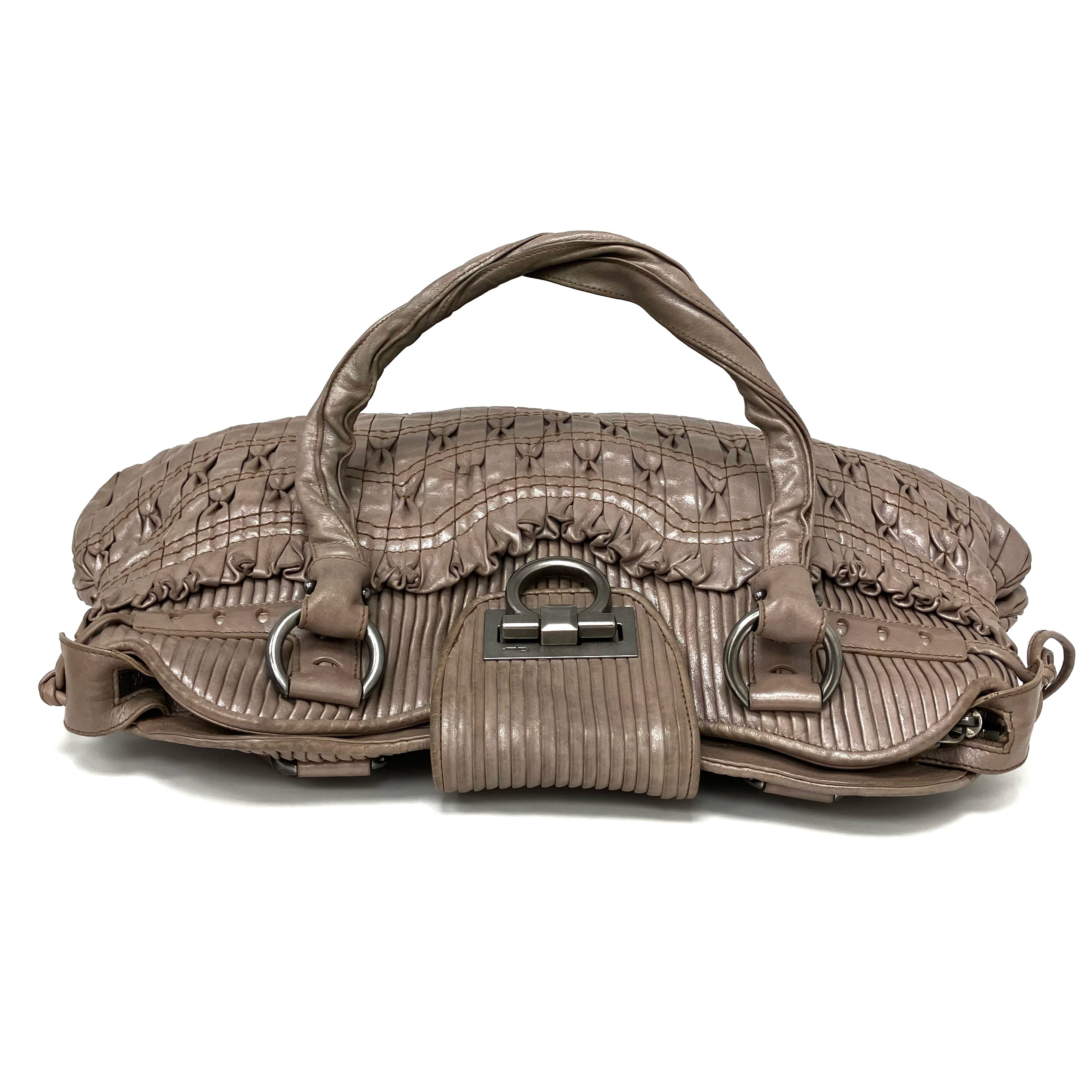 ☆ Salvatore Ferragamo 菲拉格慕 Beige Sheepskin Gancini 2Way Bag 淺褐色羊皮兩用袋 - 267003233
