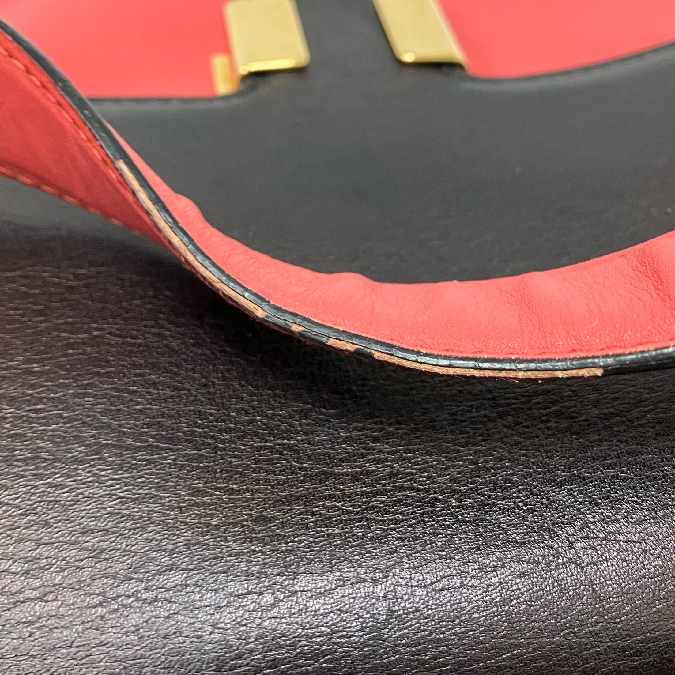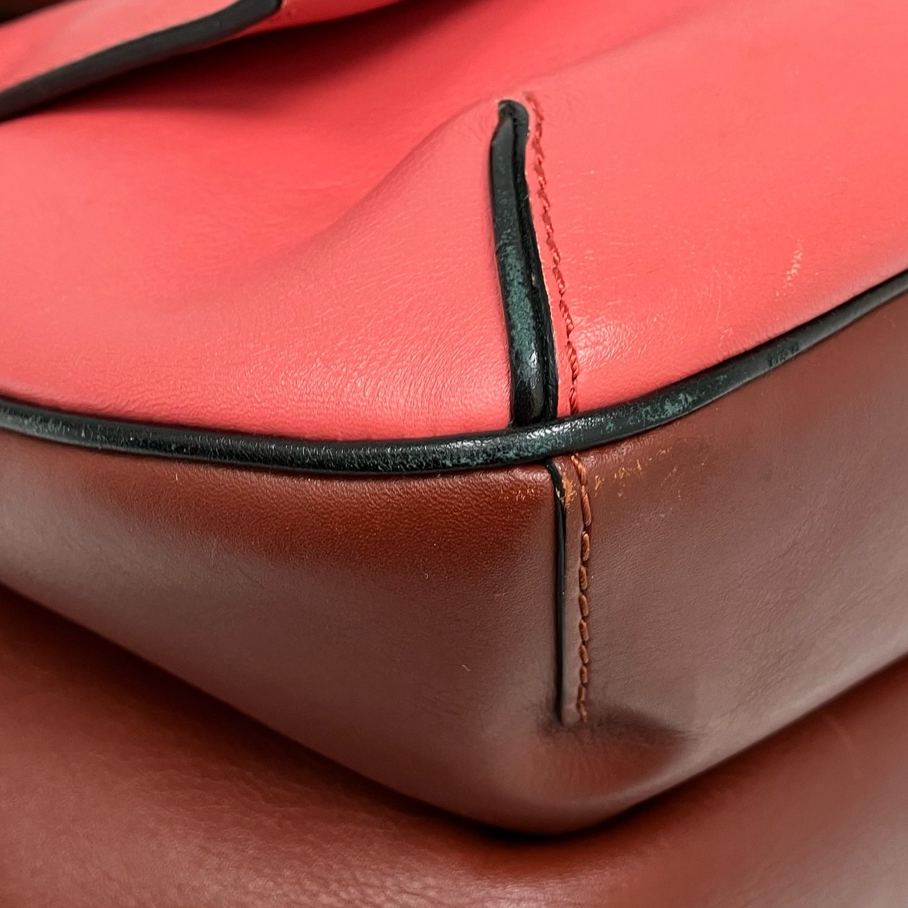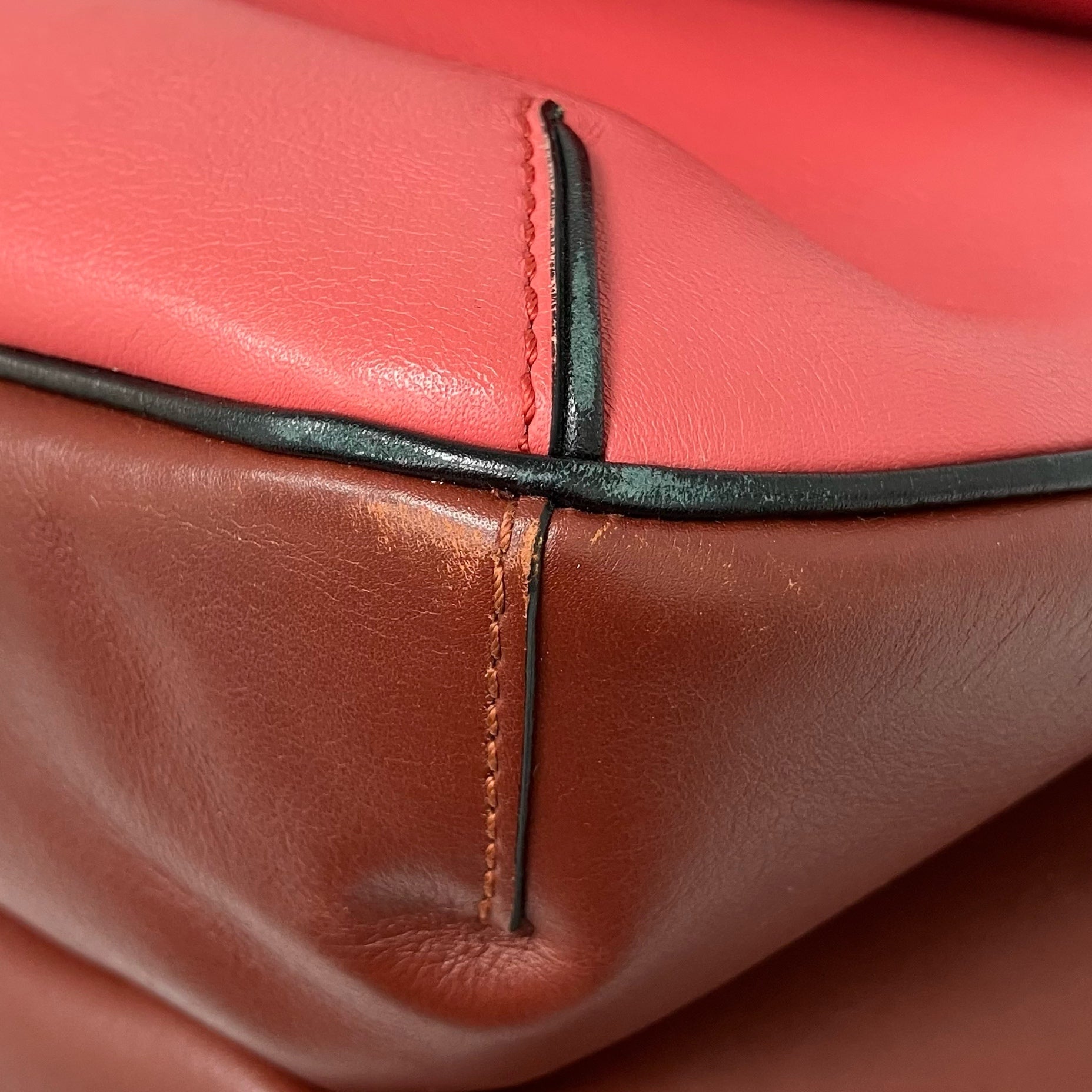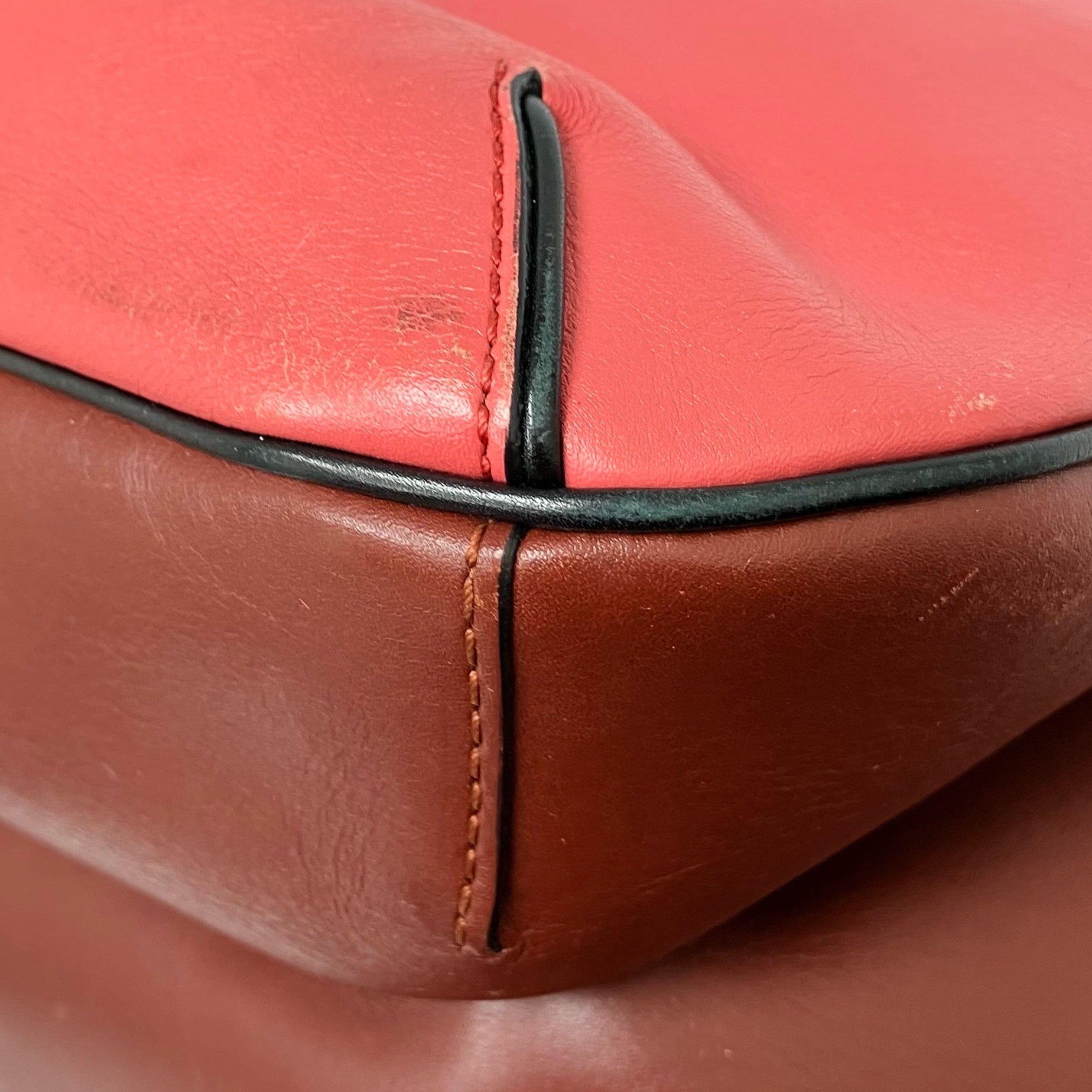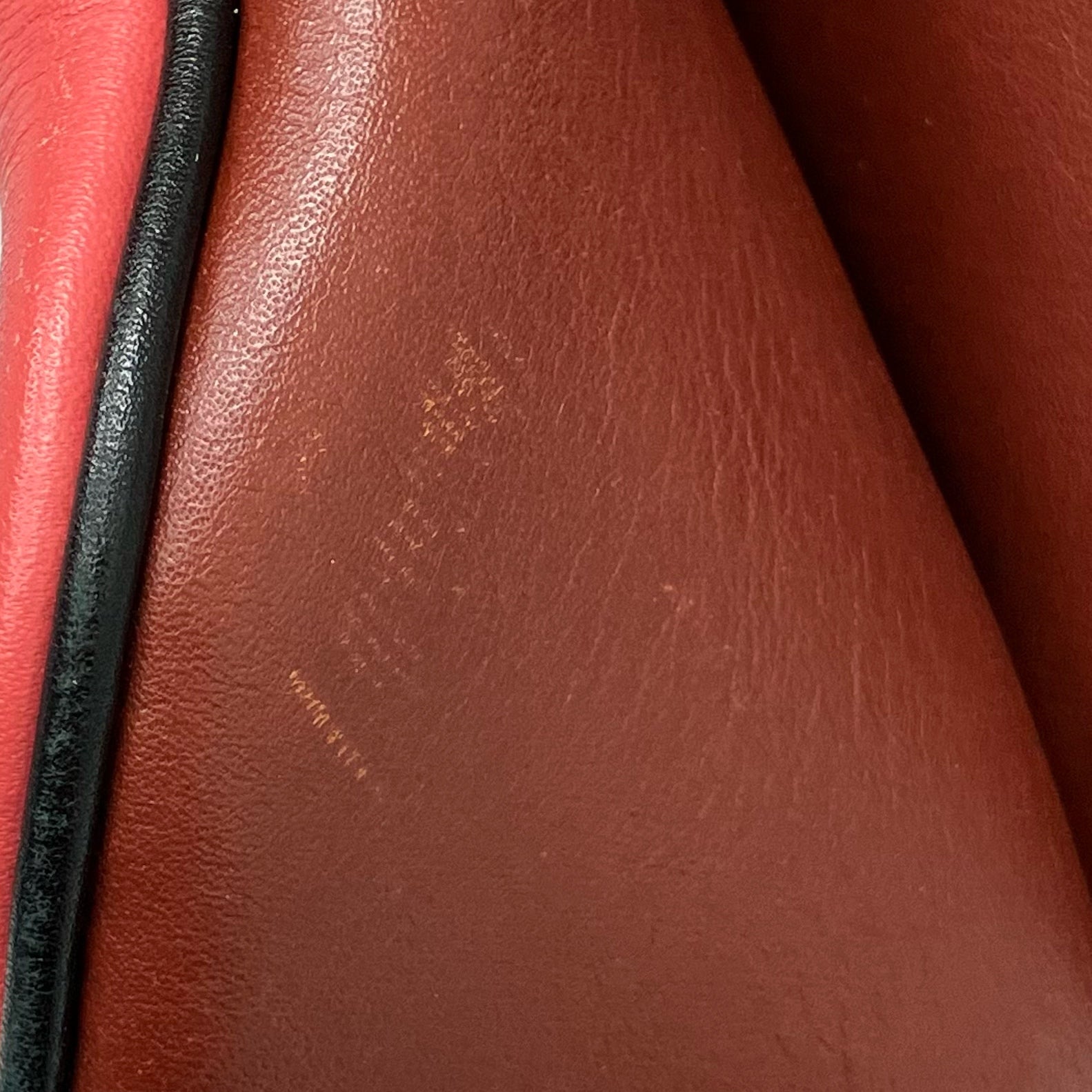 • Some dents, scratches, stains, scuffs, color fading, peel off, on leather