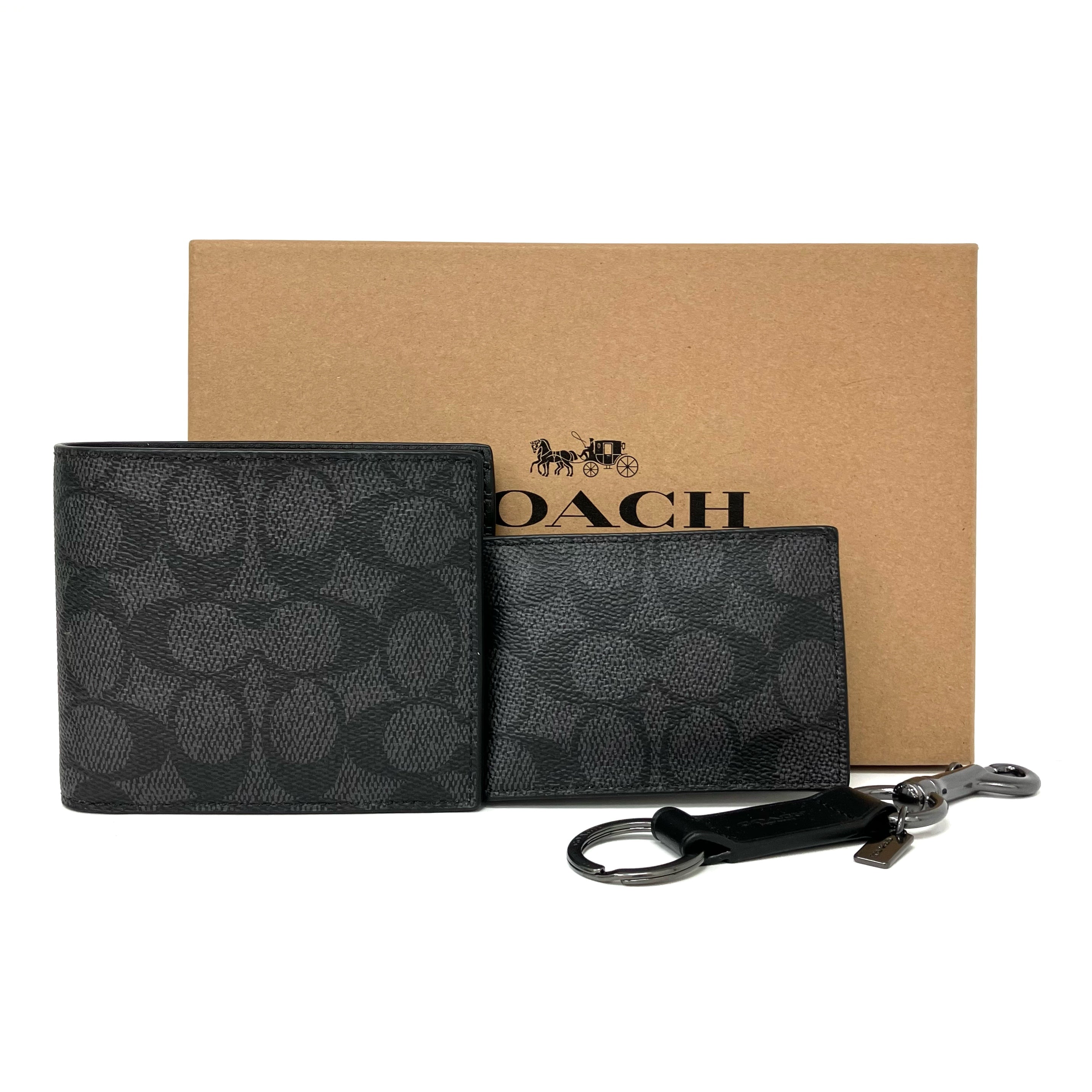 ☆ Coach 蔻馳 Black Coated Canvas Wallet, Card Case and Key Ring Set 黑色塗層帆布銀包, 卡套及掛件套裝 - 267000289