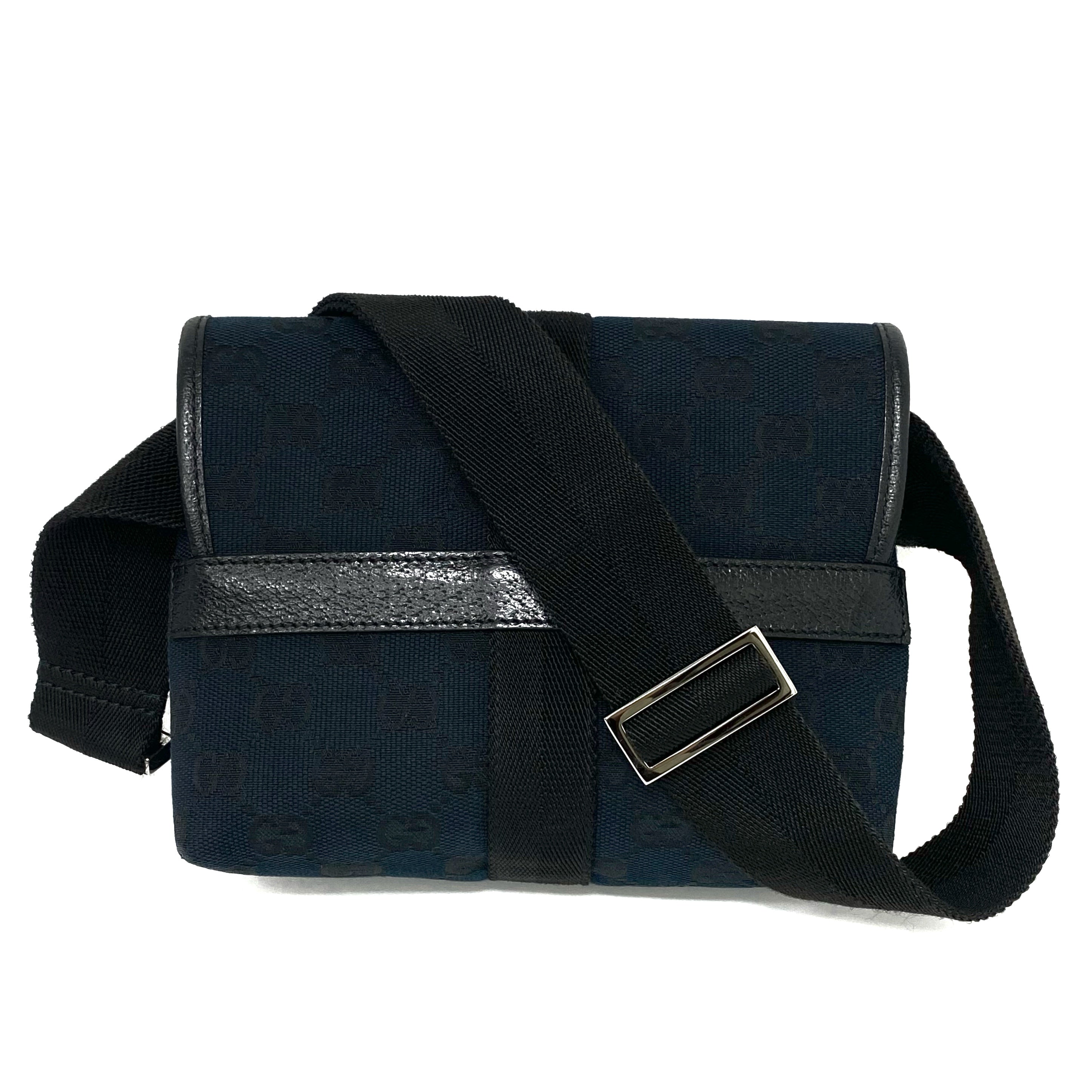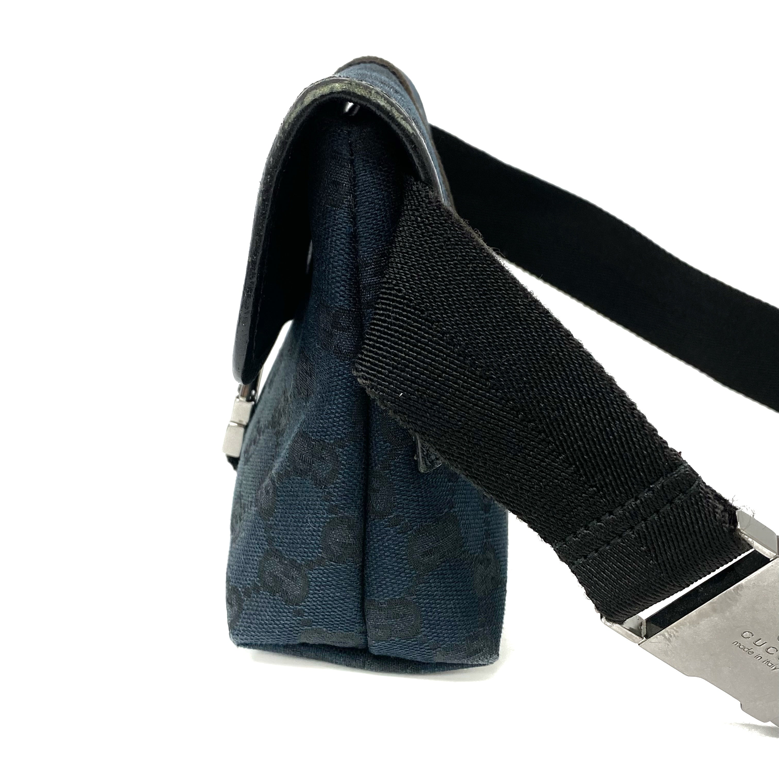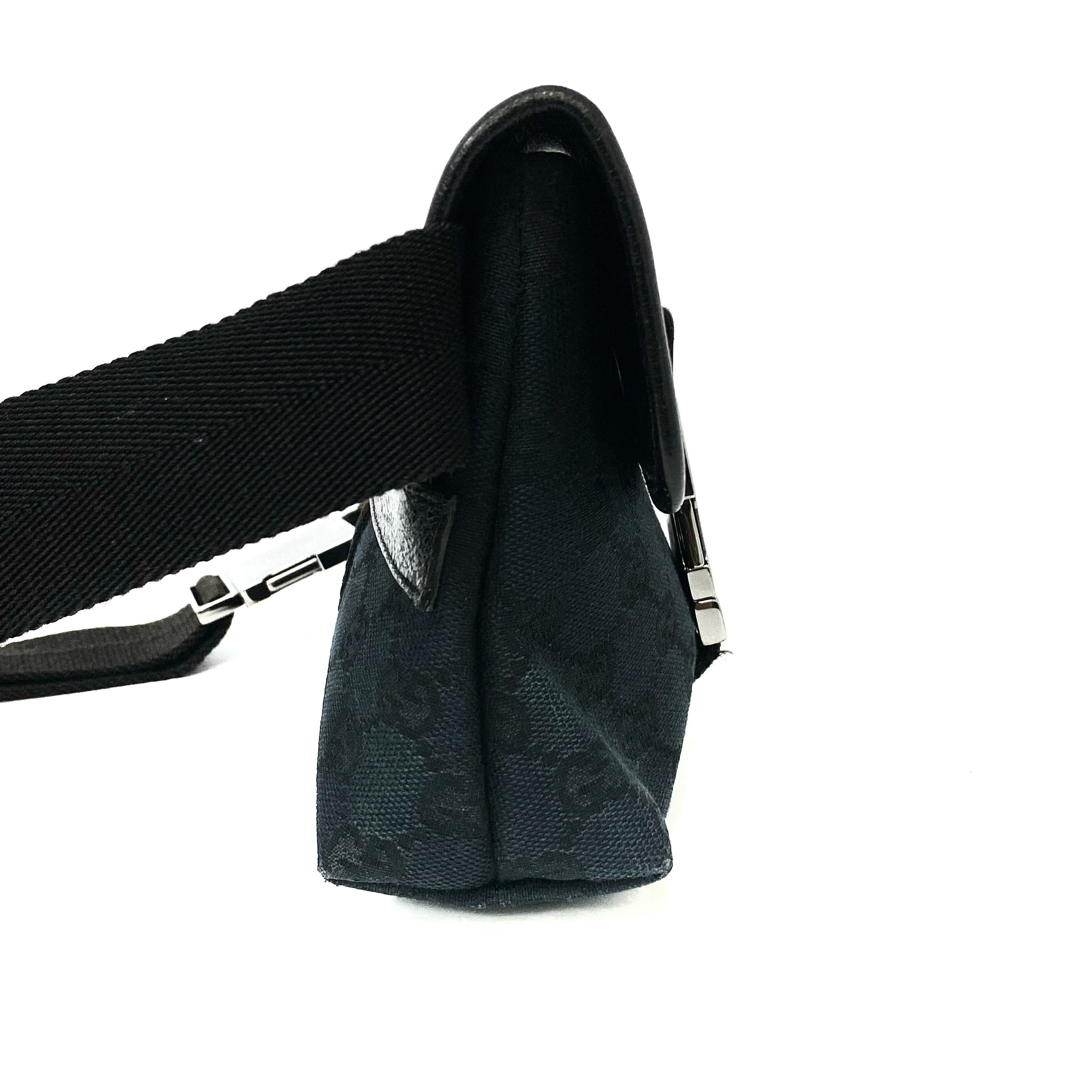 ☆ Gucci 古馳 Black Canvas GG Monogram Waist Bag 131236 黑色帆布GG經典花紋腰包 - 257027271