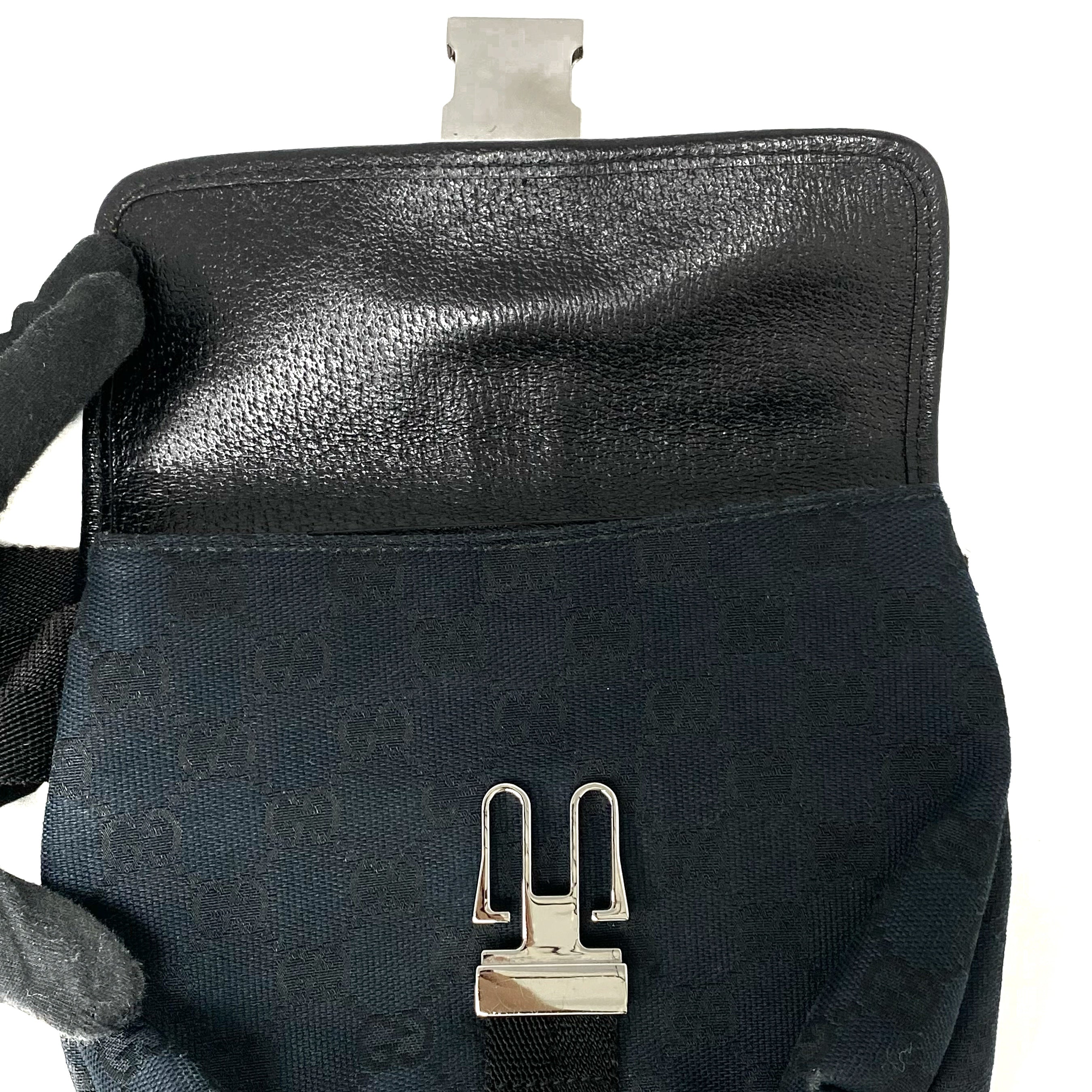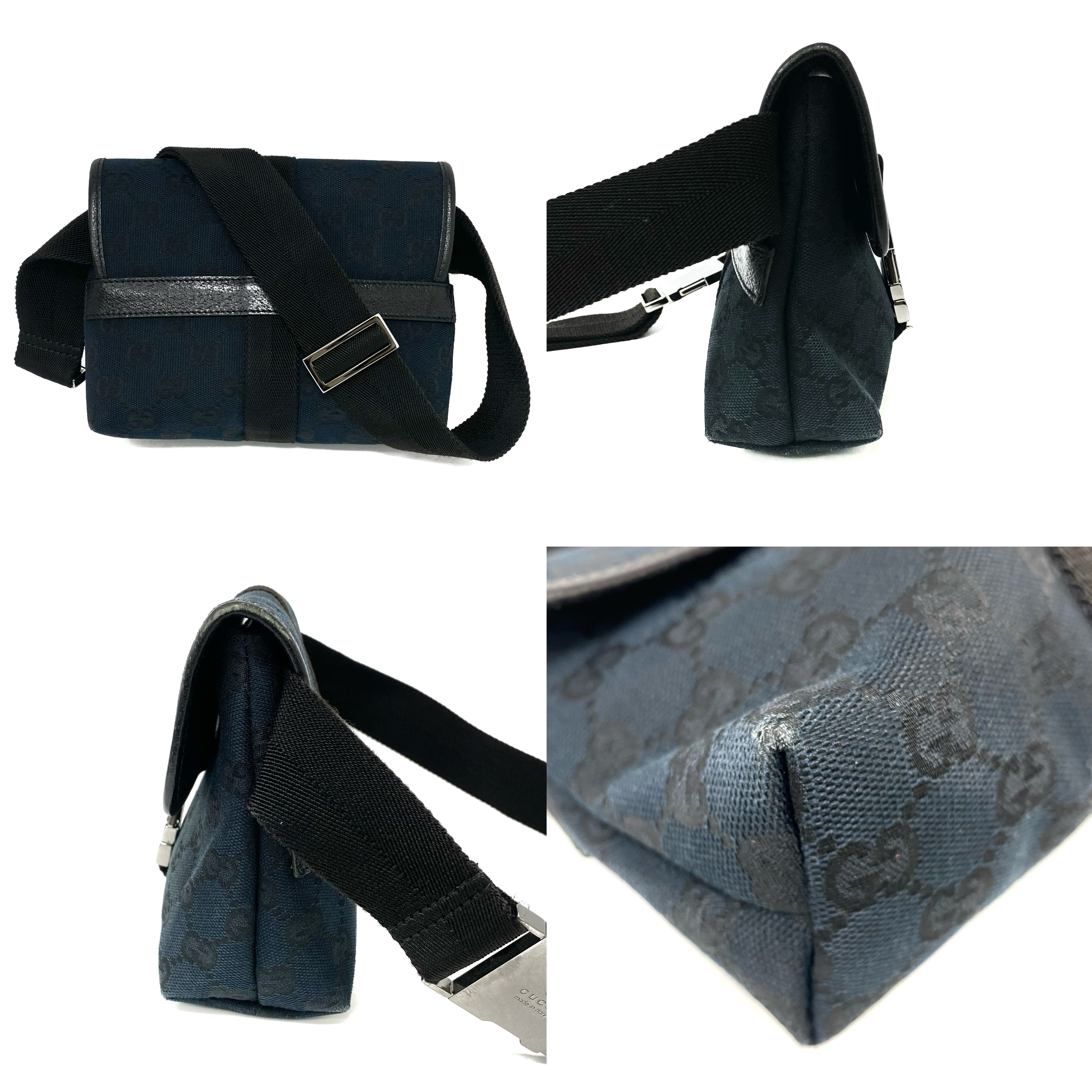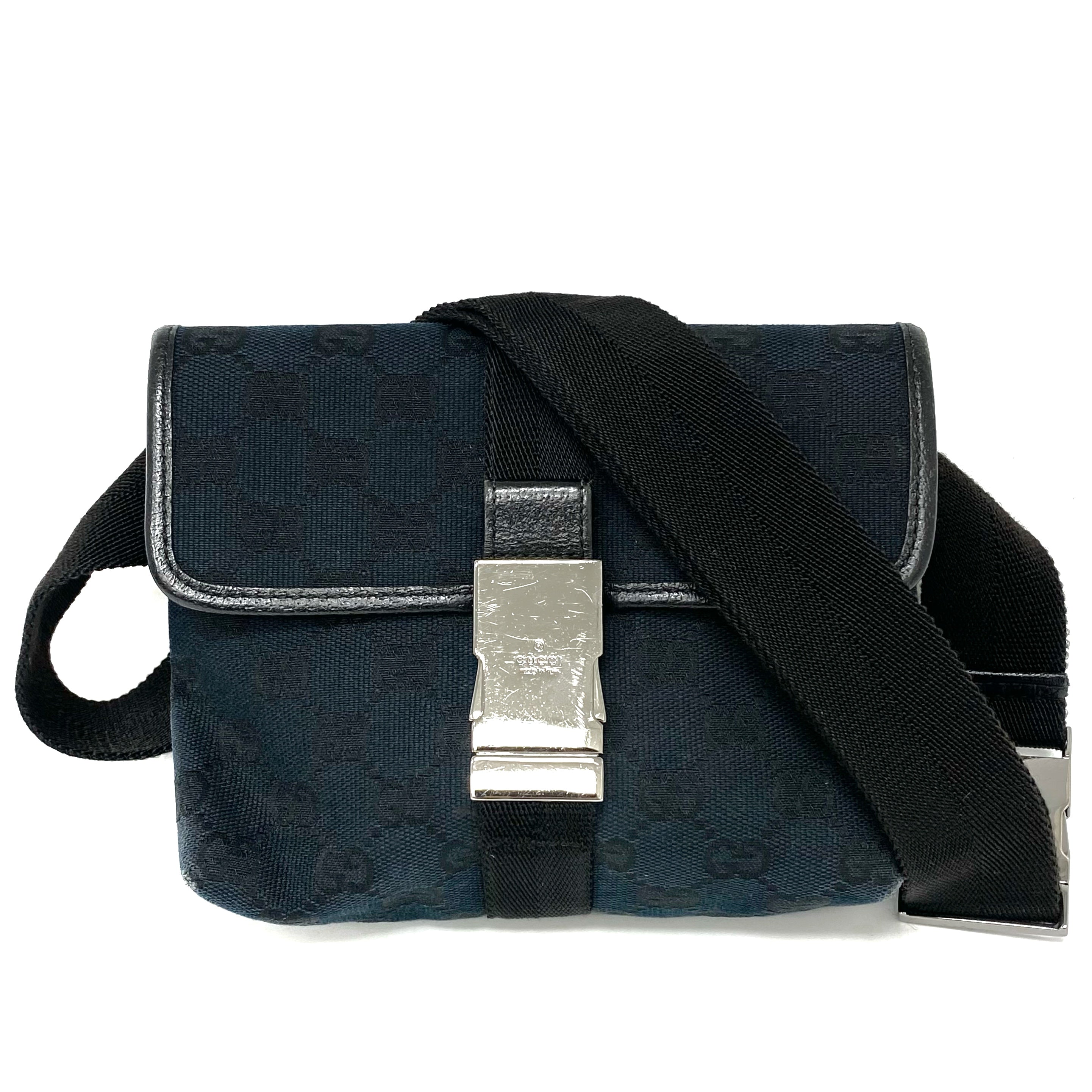 ☆ Gucci 古馳 Black Canvas GG Monogram Waist Bag 131236 黑色帆布GG經典花紋腰包 - 257027271