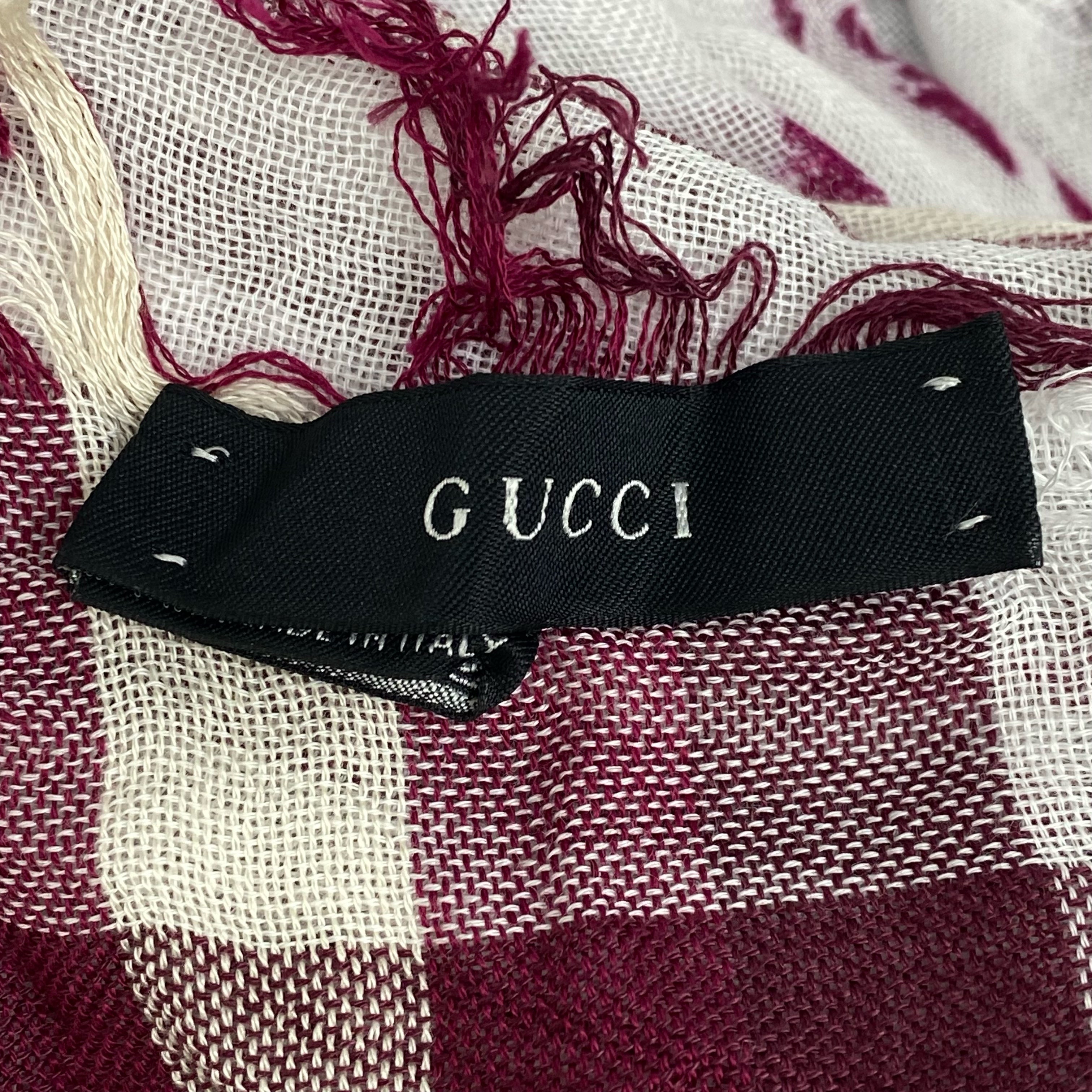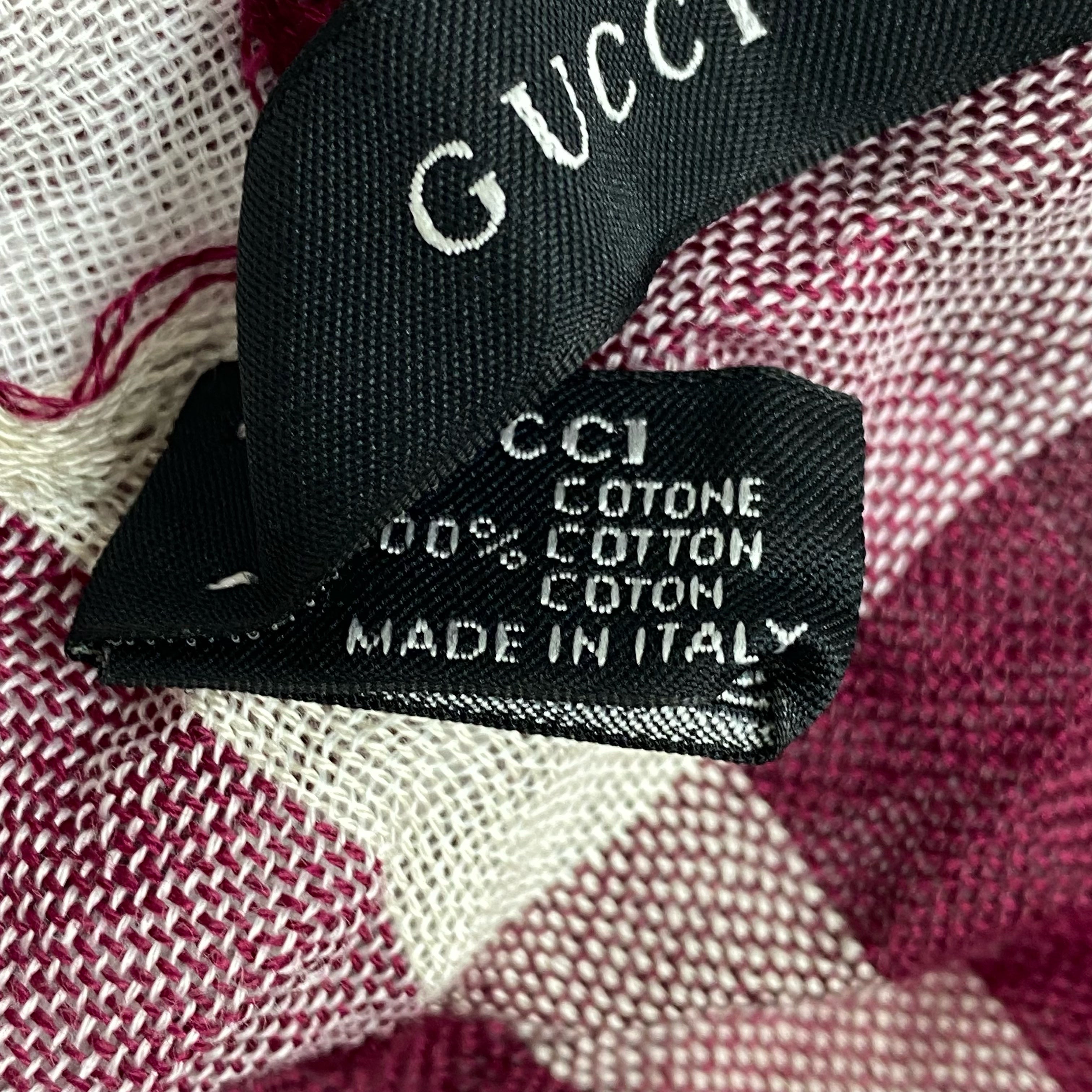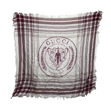 ☆ Gucci 古馳 Red White 100% Cotton Checked Scarf 紅色白色100%棉質格紋巾 - 257027684