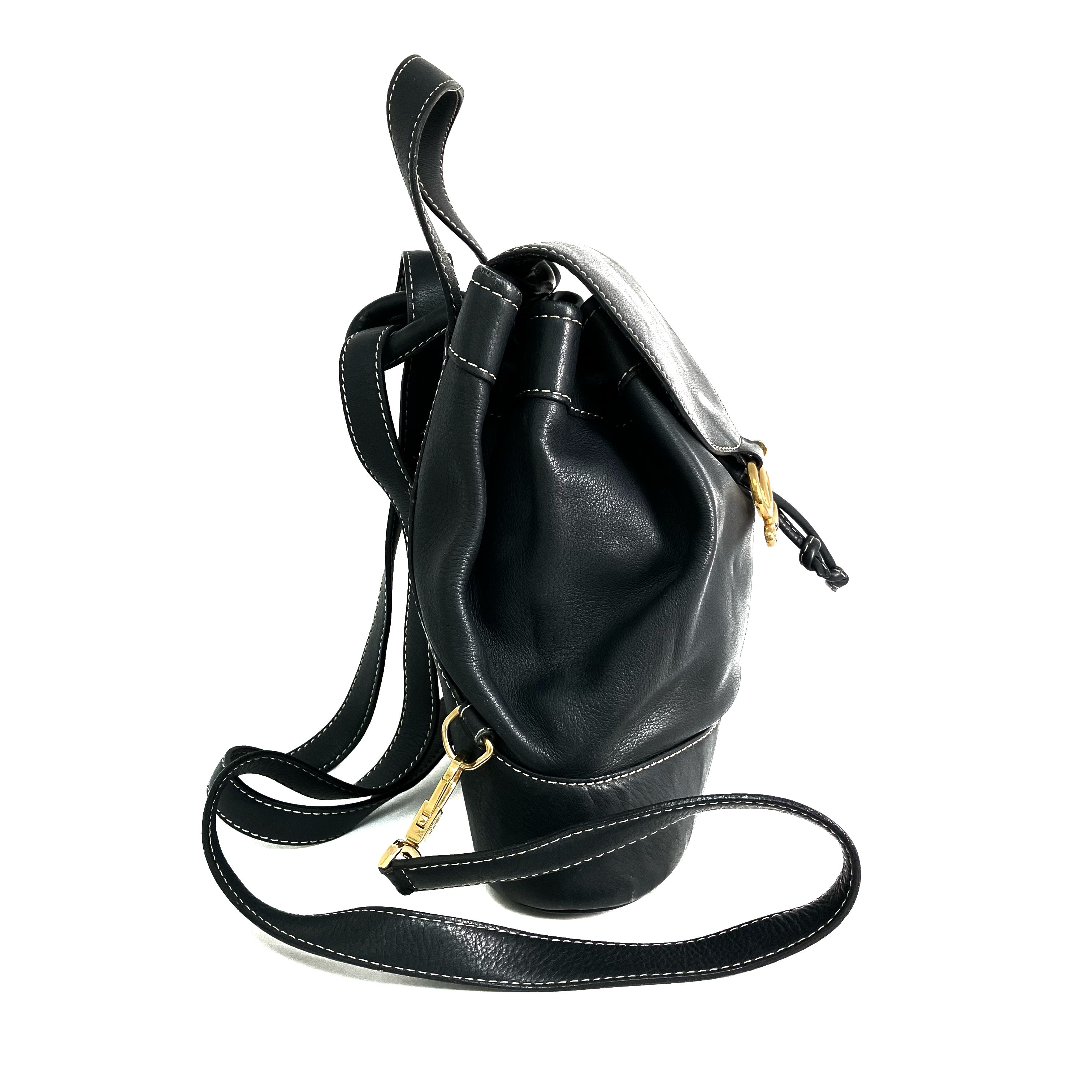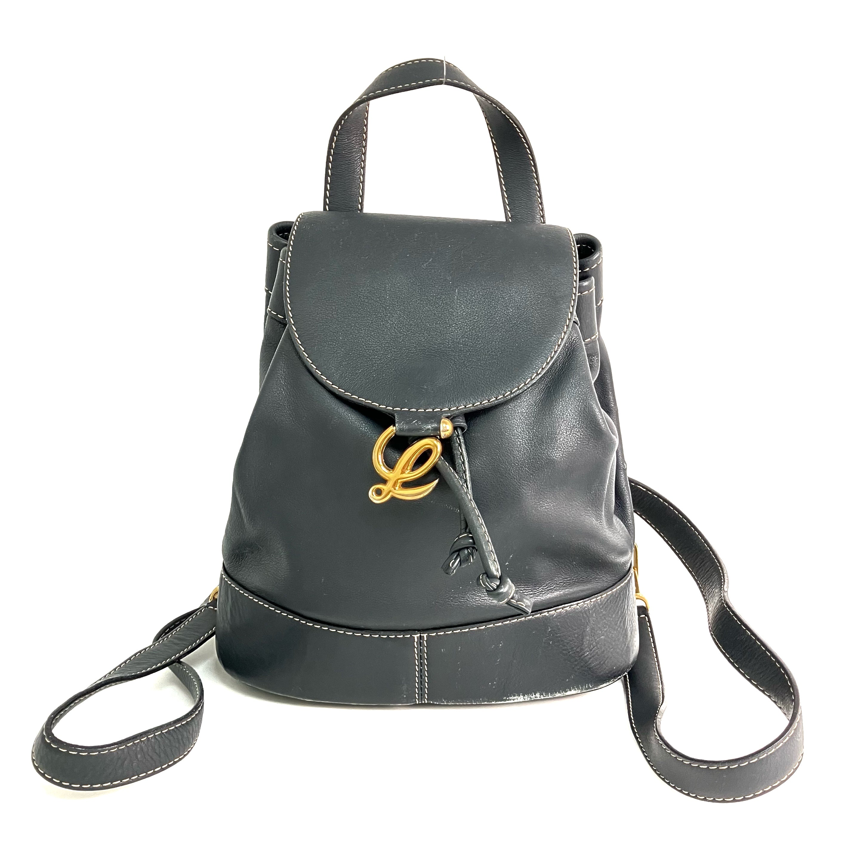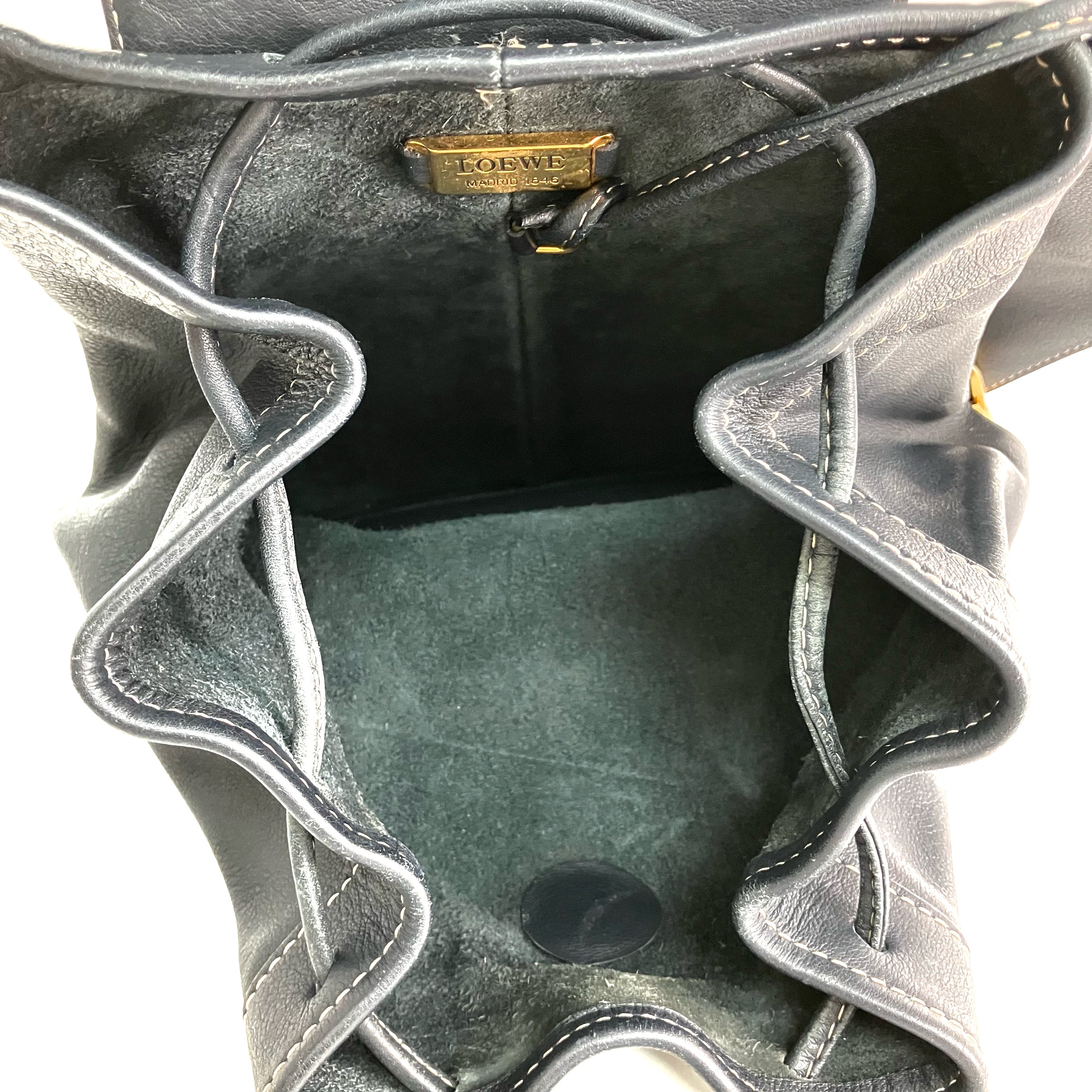 ☆ Loewe 羅意威 Navy Calfskin Vintage Backpack 深藍色小牛皮手背包 - 257027799