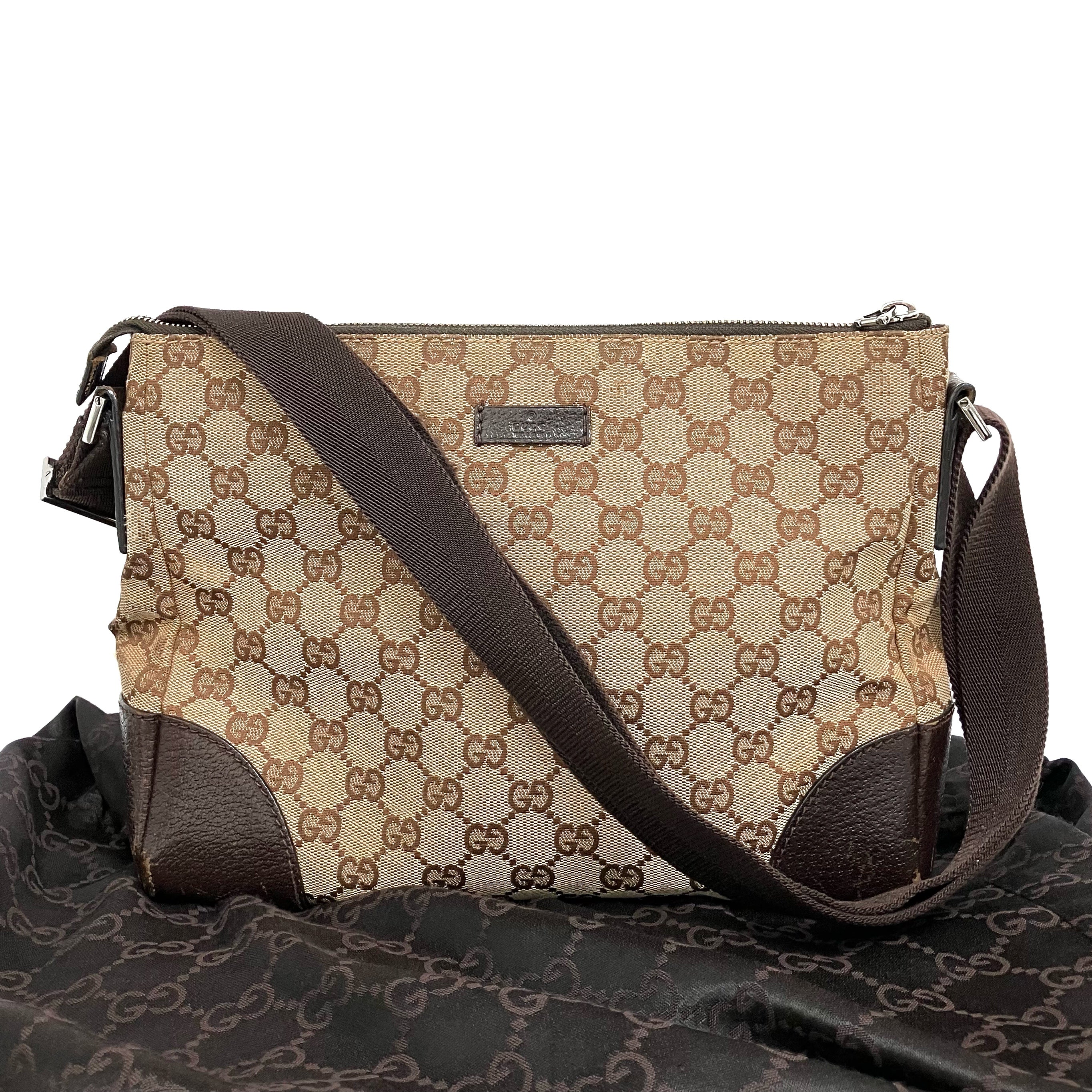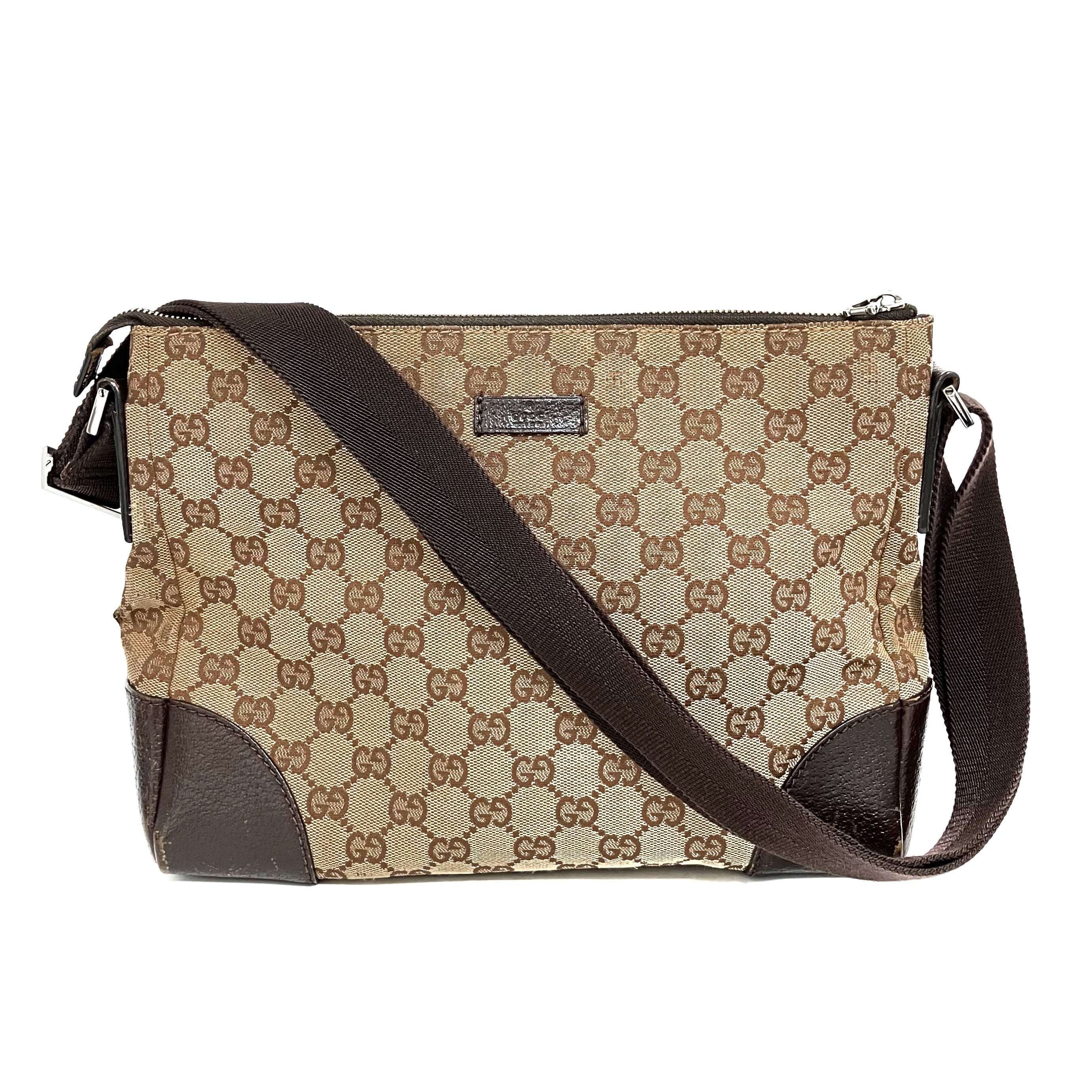 ☆ Gucci 古馳 Beige Canvas GG Monogram shoulder Bag 131236 淺褐色帆布GG經典花紋肩背袋 - 257027049