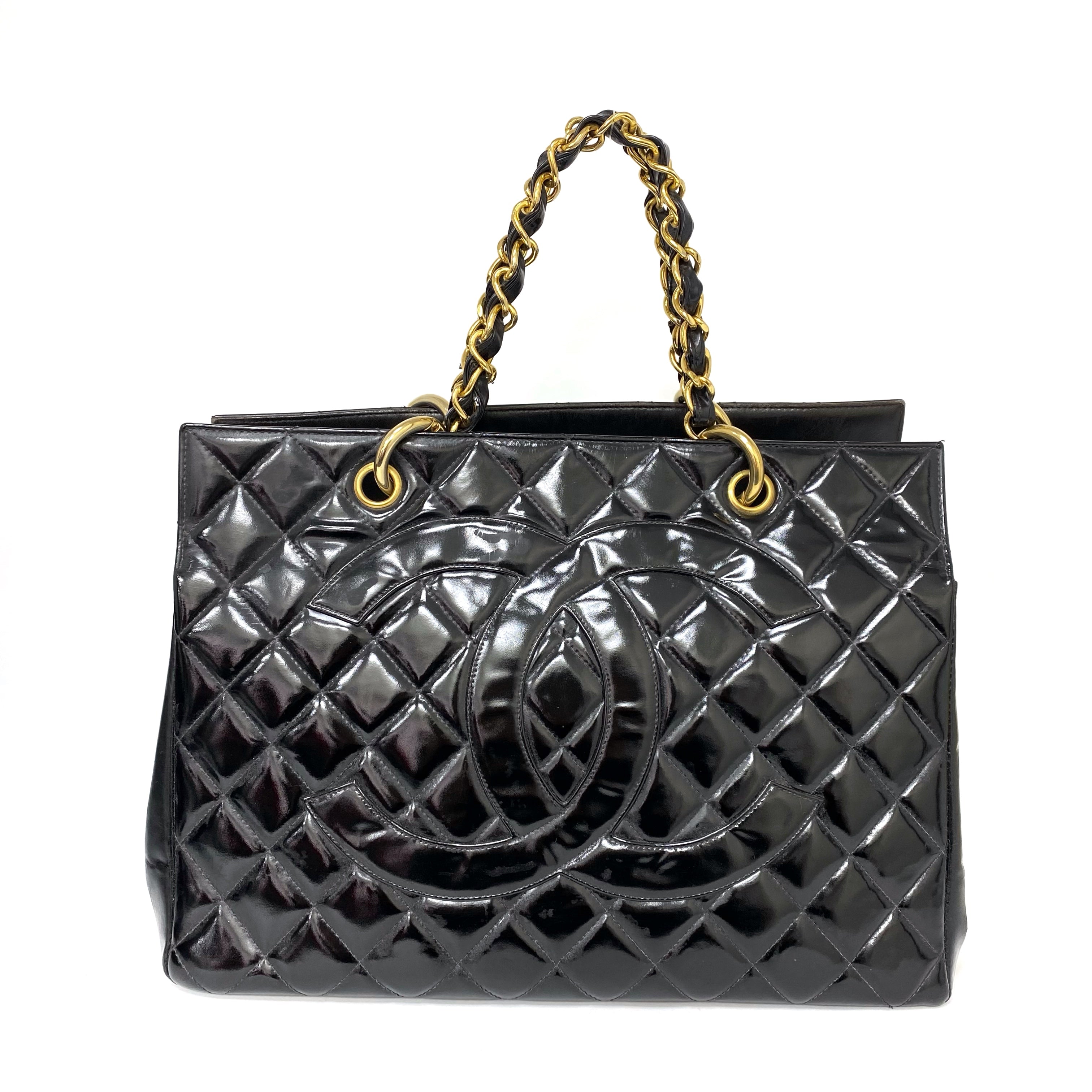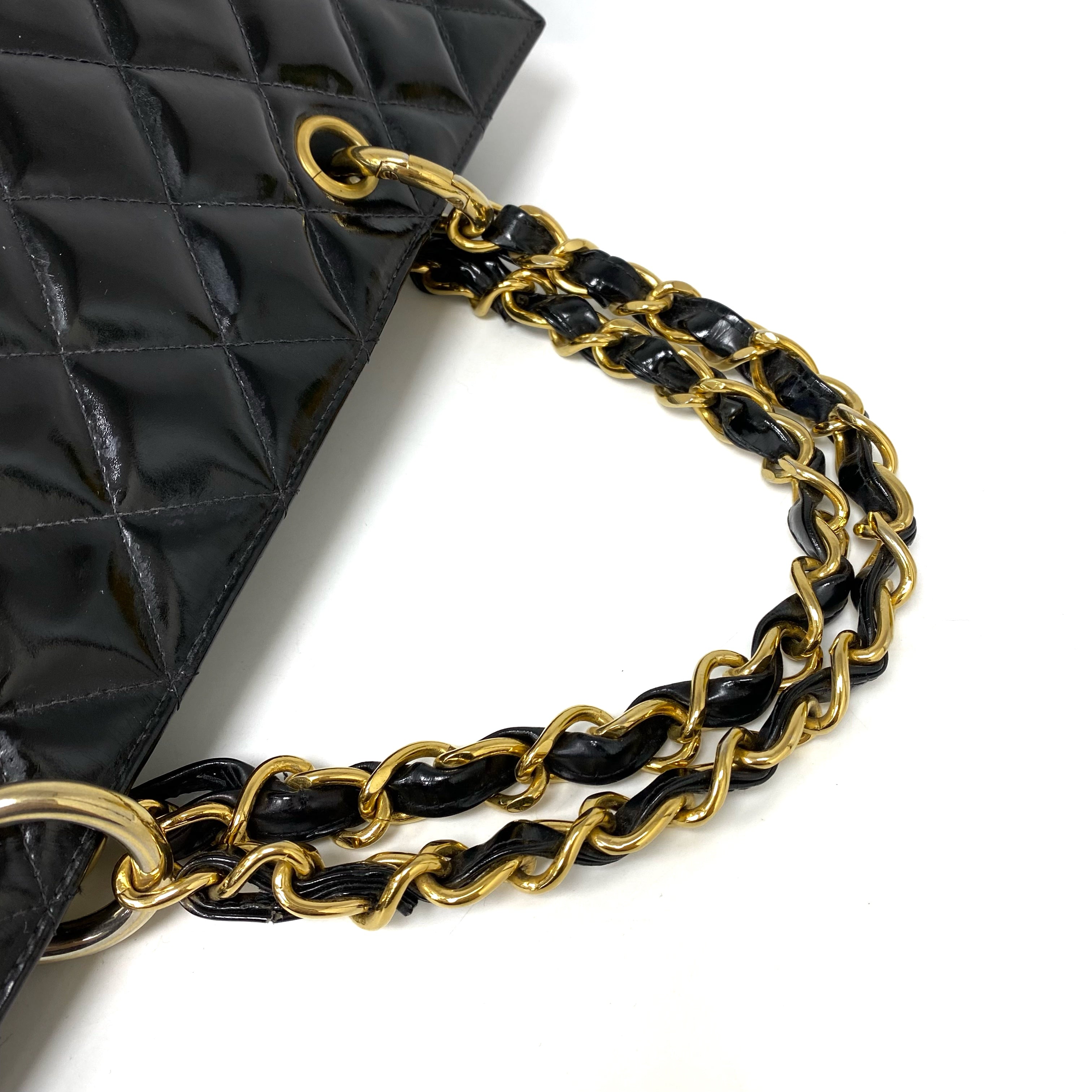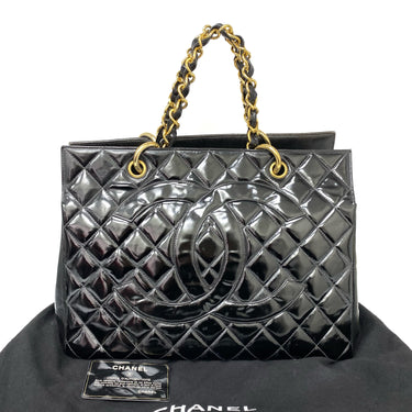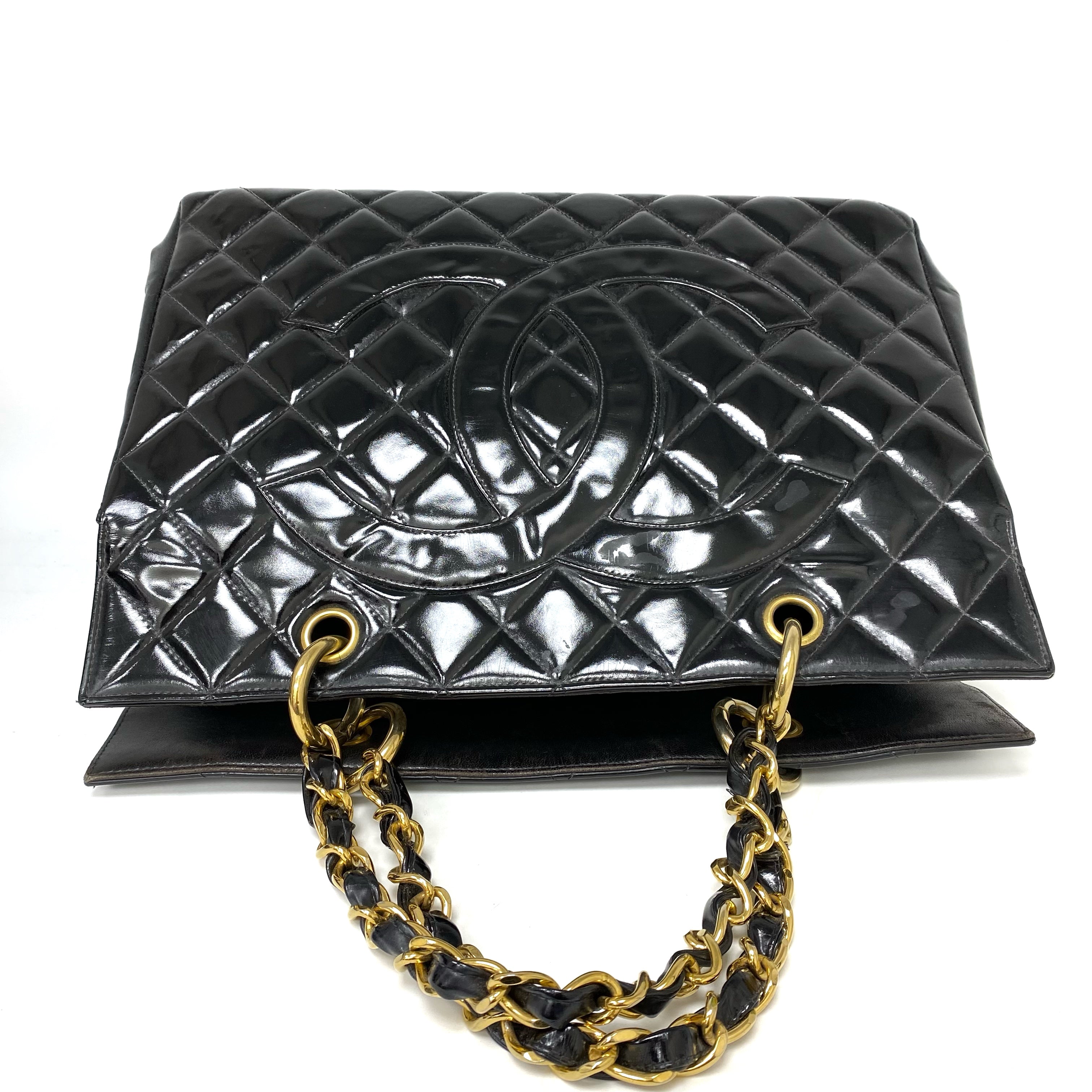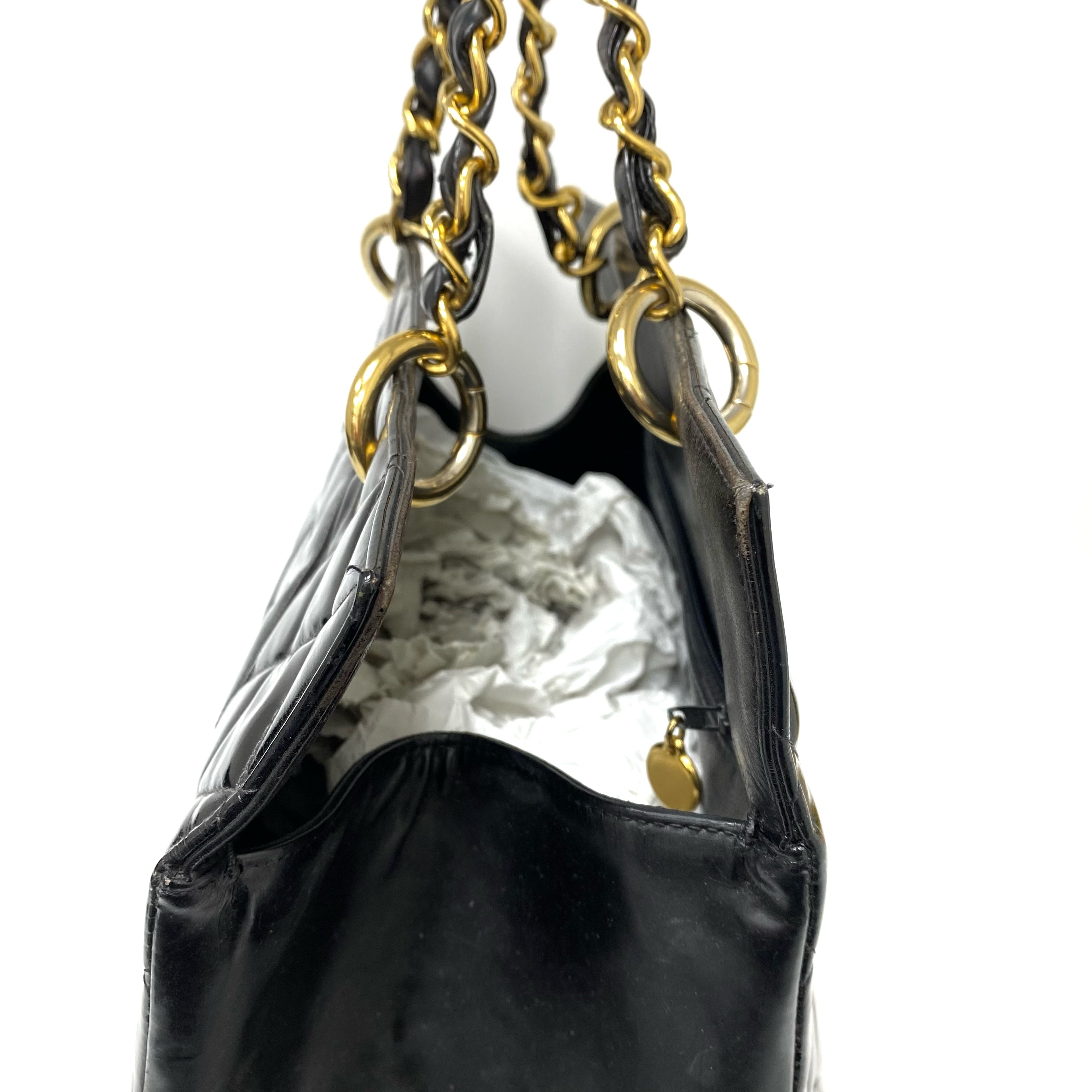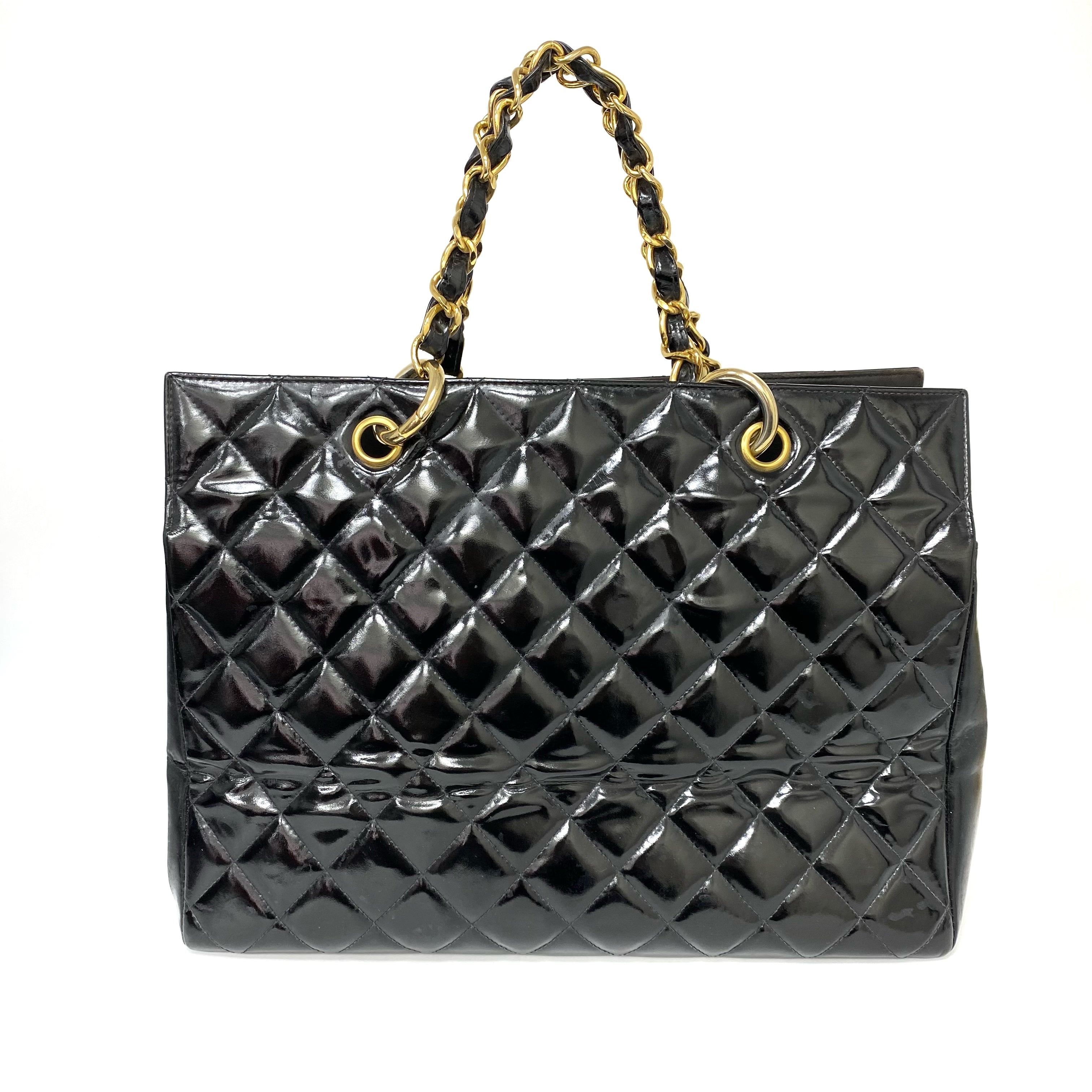△ Chanel 香奈兒 Black Patent Leather Gold Tone Metal Chain Tote Bag No.4 黑色漆皮金色金屬鏈條托特袋 No.4 -267006542