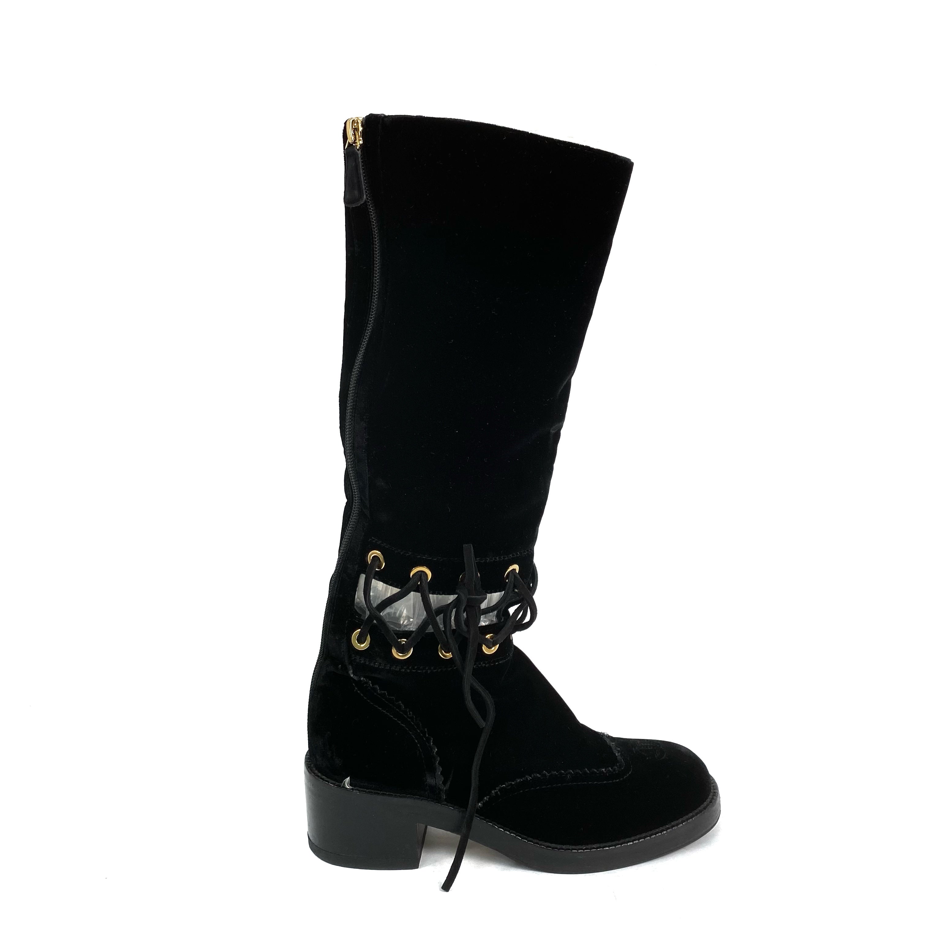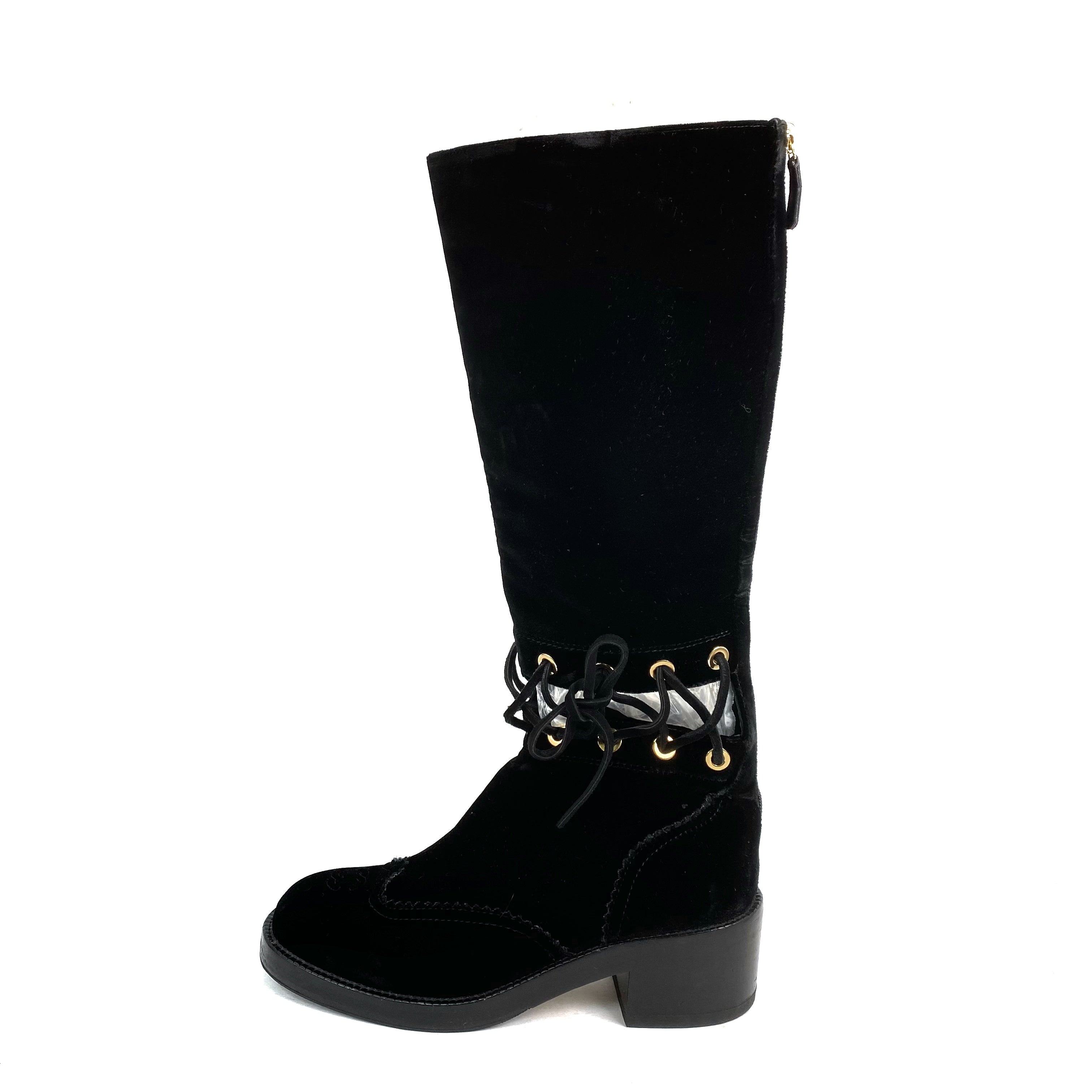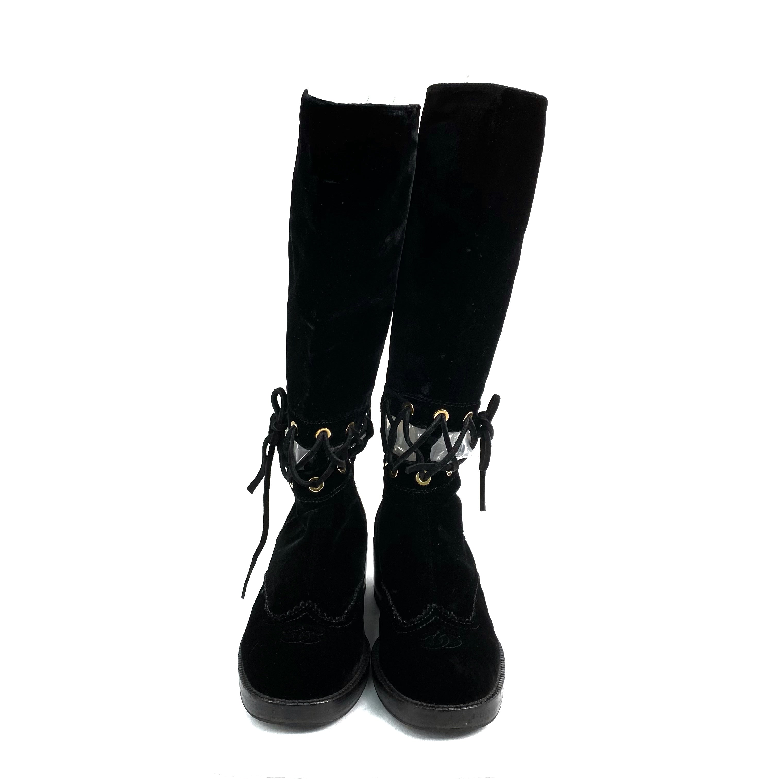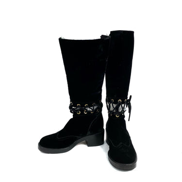 ☆ Chanel 香奈兒 Black Velvet Long Boots #37C 黑色天鵝絨長靴 37C碼- 257028518