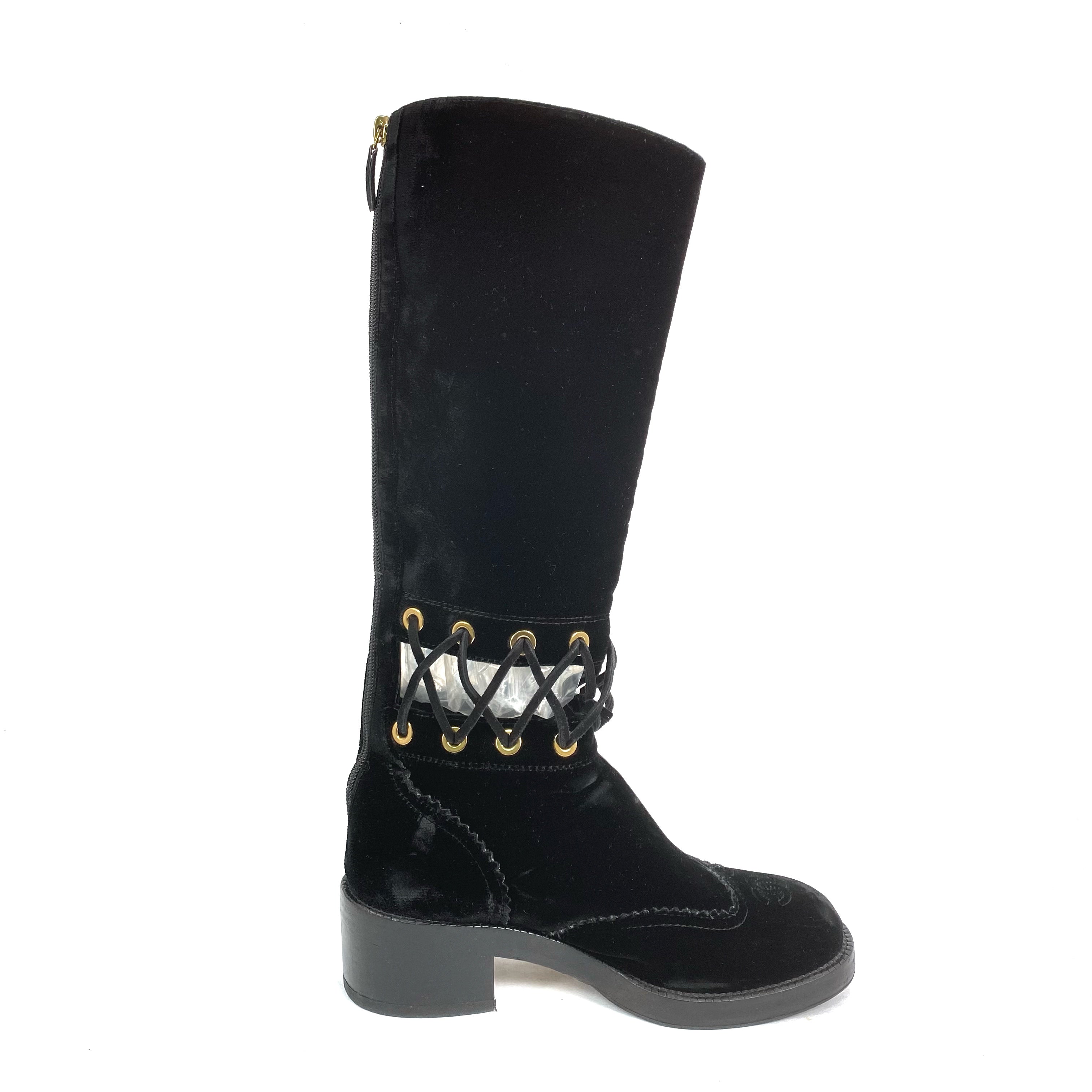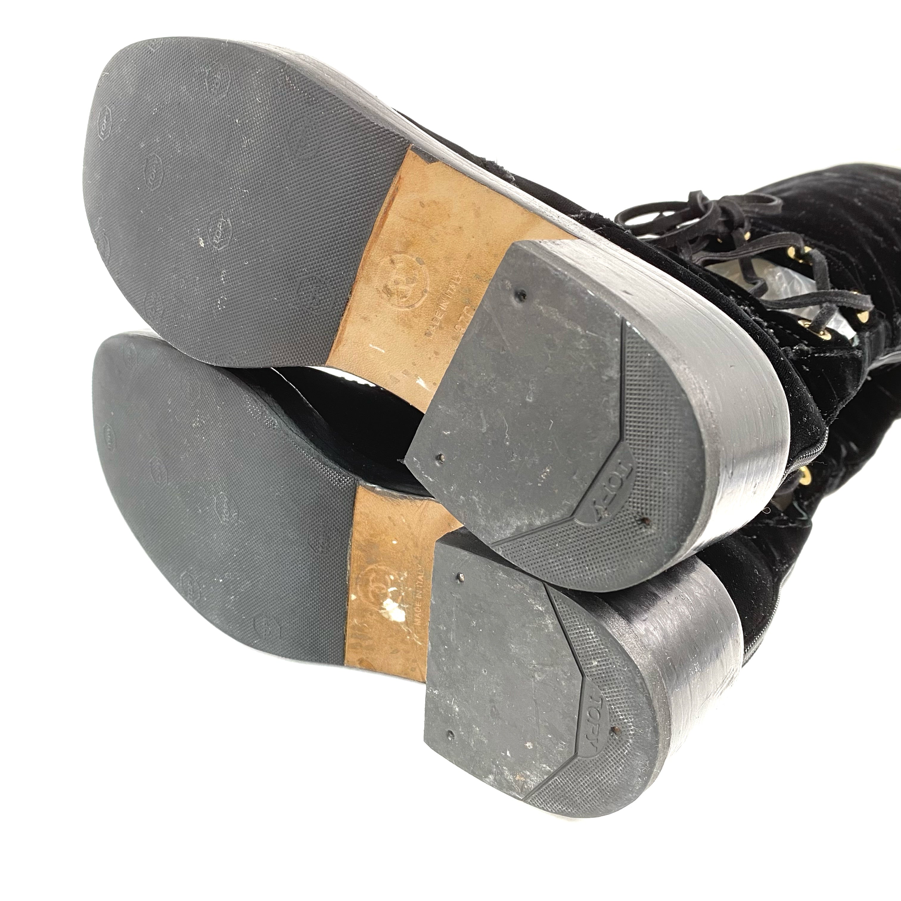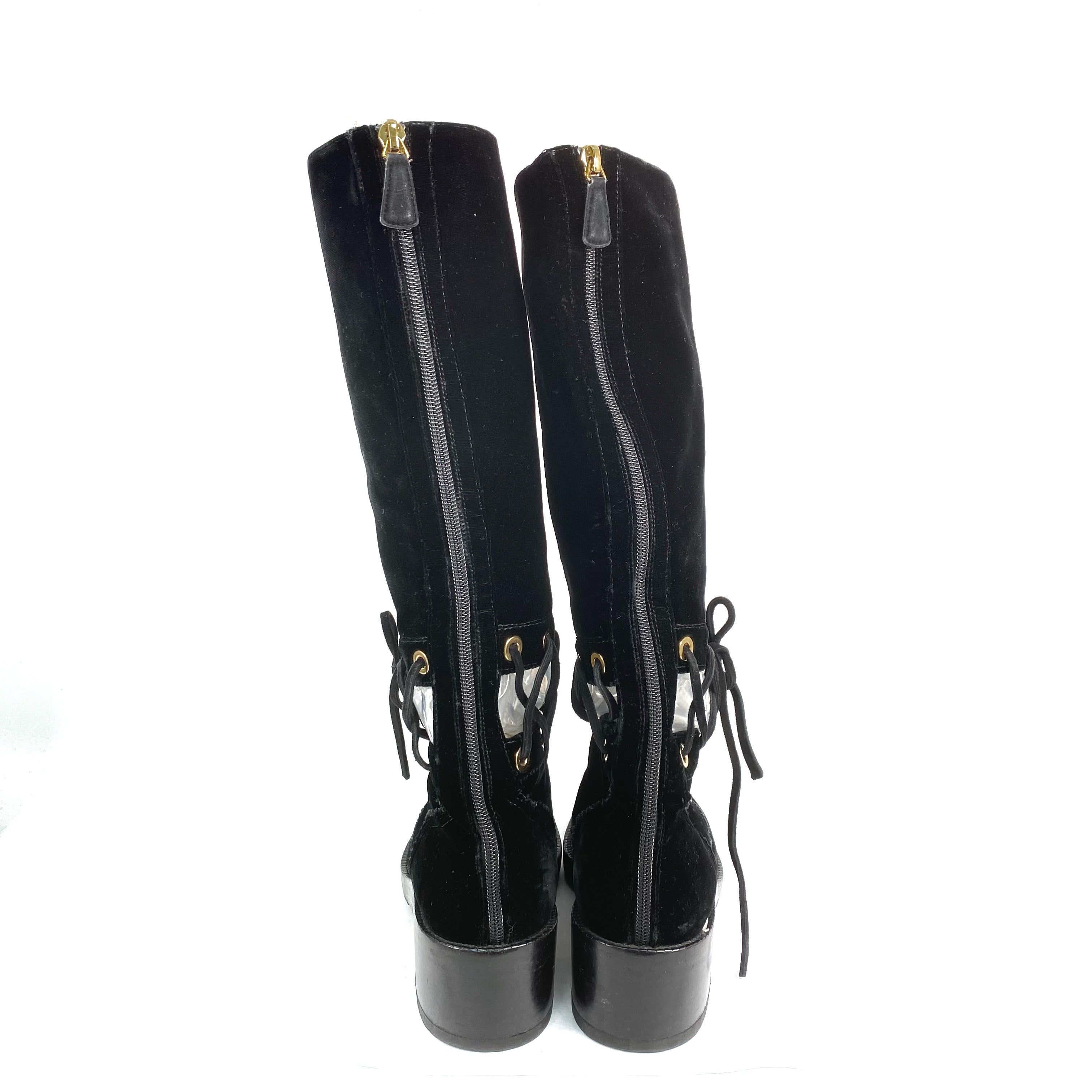 ☆ Chanel 香奈兒 Black Velvet Long Boots #37C 黑色天鵝絨長靴 37C碼- 257028518